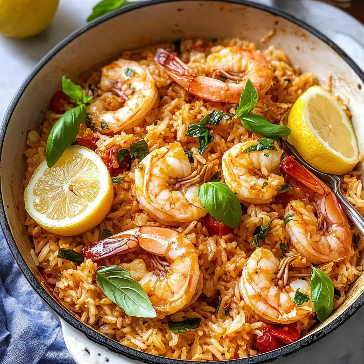 In meinem letzten kulinarischen Abenteuer in der heimischen Küche hatte ich dieses Gefühl von Wehmut, als sich der köstliche Duft von frisch zubereiteten Zutaten ausbreitete. Der 30 Minuten Garnelenreis ist nicht nur ein schnelles Gericht, sondern auch ein wahres Fest für die Sinne. Diese recht unkomplizierte, ein-Pfannen-Mahlzeit verbindet saftige Garnelen, reife Tomaten und süße Paprika zu einer harmonischen Melange, die jeden am Tisch begeistert. Perfekt für hektische Wochentage, zaubert er in nur 30 Minuten ein gesundes und zufriedenstellendes Abendessen. Stellen Sie sich vor, Ihre Liebsten genießen ein köstliches Gericht, das nicht nur den Hunger stillt, sondern auch die Herzen erwärmt. Wer würde da nicht gleich einen zweiten Teller verlangen? Neugierig geworden, wie einfach die Zubereitung ist? Dann lassen Sie uns gleich loslegen! Warum ist dieser Garnelenreis so besonders? Schnelligkeit: In nur 30 Minuten können Sie ein beeindruckendes Gericht zubereiten, das Ihr Abendessen aufwertet. Einfache Zubereitung: Dieses Rezept erfordert nur grundlegende Kochfertigkeiten und eine einzige Pfanne, was den Abwasch minimiert und die Zubereitung erleichtert. Vielseitigkeit: Sie können Prawns oder Shrimps verwenden und sogar die Gemüsearten nach Belieben anpassen – denken Sie an nahrhafte Zucchini oder Pilze! Gesund und Nahrhaft: Mit frischen Zutaten und einer leichten Sauce ist dieses Gericht nicht nur lecker, sondern auch gesund und ausgewogen. Crowd-Pleaser: Die Kombination aus saftigen Garnelen und aromatischer Tomatensauce wird Ihre Familie und Freunde gleichermaßen begeistern. Budgetfreundlich: Verwenden Sie gefrorene Garnelen und saisonales Gemüse, um ein köstliches Essen zu einem erschwinglichen Preis zuzubereiten. Diese Quick-Fix-Mahlzeit ist perfekt, wenn Sie wenig Zeit haben, aber Mehrwert auf dem Tisch haben möchten! Zutaten für 30 Minuten Garnelenreis • Entdecken Sie die einfachen, frischen Zutaten, die dieses Rezept so besonders machen! Für das Gemüse Olivenöl – sorgt für einen reichen Geschmack und hilft beim Anbraten der Zutaten. Alternativ können Sie auch Sonnenblumen- oder Rapsöl verwenden. Knoblauch (3 Zehen) – verleiht dem Gericht ein aromatisches Aroma. Sie können auch mit Knoblauchpulver ersetzen, falls frischer Knoblauch nicht verfügbar ist. Zwiebel (1 gelb oder braun) – bringt Süße und Tiefe ins Gericht. Shallots bieten einen milderen Geschmack als Ersatz. Rote Paprika (1, gehackt) – sorgt für Süße und einen knackigen Biss. Eine andere Option wären gelbe oder grüne Paprika. Reife Tomaten (8 mittelgroße, gehackt) – bilden die Basis der Sauce und bieten Saftigkeit und Säure. Verwenden Sie die Dose, wenn frische Tomaten nicht zur Hand sind. Erbsen (200 g, gefroren) – fügen Süße und Textur hinzu. Sie können auch grüne Bohnen oder Mais verwenden. Für den Hauptbestandteil Garnelen (275 g, gefroren, geschält und aufgetaut) – die Hauptproteinquelle, die dem Gericht eine hervorragende Meeresnote verleiht. Frische Shrimps sind eine gute Alternative. Paprika (¼ Teelöffel) – sorgt für Wärme und Farbe im Gericht; verwenden Sie geräucherte Paprika für einen zusätzlichen Geschmack. Chili-Pulver (¼ Teelöffel) – verstärkt die Würze; weglassen für weniger Schärfe oder mit roten Pfefferflocken ersetzen. Reis (245 g, Basmati oder Langkorn) – die Basis für die Kohlenhydrate. Jasminreis oder Vollkornreis sind ebenfalls tolle Alternativen, erfordern jedoch eine Anpassung der Kochzeit. Gemüsebrühe (500 ml, zubereitet mit Brühewürfel) – sorgt für Tiefe und Geschmack; verwenden Sie Hühnerbrühe für eine nicht-vegetarische Option. Genießen Sie Ihr Kocherlebnis mit diesem schnellen und einfachen Rezept für 30 Minuten Garnelenreis! Schritt-für-Schritt-Anleitung für 30 Minuten Garnelenreis Step 1: Brühe zubereiten Lösen Sie einen Brühewürfel in 500 ml kochendem Wasser auf, um eine schmackhafte Gemüsebrühe zu erhalten. Rühren Sie gut um, bis der Würfel vollständig aufgelöst ist, und stellen Sie die Brühe zur Seite. Die Brühe wird später für den perfekten Garprozess des Reises verwendet und sorgt dafür, dass der 30 Minuten Garnelenreis Geschmack und Tiefe erhält. Step 2: Zwiebeln und Knoblauch anbraten Erhitzen Sie in einer tiefen Pfanne 2 Esslöffel Olivenöl bei mittlerer Hitze. Geben Sie die gehackte Zwiebel und den fein gehackten Knoblauch hinzu und sautieren Sie beides für etwa 5 bis 6 Minuten, bis die Zwiebeln weich und transparent sind. Achten Sie darauf, dass der Knoblauch nicht verbrennt, da dies einen bitteren Geschmack erzeugen kann. Step 3: Tomaten und Paprika hinzufügen Fügen Sie die gehackten Tomaten und die gewürfelte rote Paprika in die Pfanne hinzu. Rühren Sie gründlich um, bis die Tomaten aufbrechen und eine saftige Sauce bilden; dies sollte etwa 3 bis 4 Minuten dauern. Falls es zu trocken erscheint, können Sie einen Schuss Wasser hinzufügen. Step 4: Reis und Gewürze einrühren Mischen Sie nun den Basmati- oder Langkornreis in die Pfanne und rühren Sie ihn unter die Gemüsemischung. Gießen Sie die vorbereitete Gemüsebrühe hinein, gefolgt von Paprika und Chili-Pulver. Lassen Sie die Mischung zunächst aufkochen. Step 5: Erbsen und Garnelen hinzufügen Integrieren Sie die gefrorenen Erbsen und die aufgetauten Garnelen in die Pfanne und bringen Sie alles zum Simmern. Decken Sie die Pfanne mit einem Deckel ab und lassen Sie den 30 Minuten Garnelenreis bei niedriger Hitze etwa 12 bis 15 Minuten köcheln, bis der Reis gar und die Flüssigkeit absorbiert ist. Step 6: Servieren und Garnieren Sobald der Reis weich und die Garnelen zart sind, nehmen Sie die Pfanne vom Herd. Servieren Sie den 30 Minuten Garnelenreis heiß, garniert mit frischem Basilikum und Zitronenscheiben. Diese frischen Zutaten heben den Geschmack hervor und bringen eine schöne Farbe auf den Teller. Was passt gut zu 30 Minuten Garnelenreis? Genießen Sie ein festliches Dinner, das jeden Bissen zu einem 