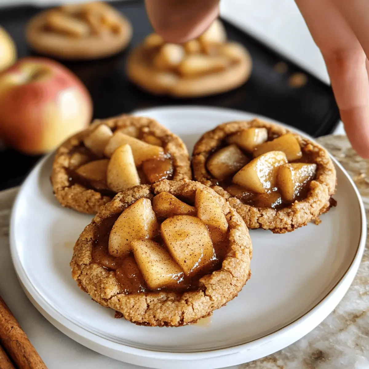Als ich neulich in der Küche stand, durchströmte mich der verführerische Duft von frisch gebackenem Apfelkuchen. Doch anstatt die traditionelle Variante zu wählen, habe ich mich für etwas ganz Besonderes entschieden: die zarten veganen Apfelkekse mit Mandelmehl. Diese kleinen Leckerbissen sind nicht nur köstlich, sondern auch eine gesunde Wahl, perfekt für die kühleren Tage des Jahres. Unsere Apfelkekse mit Mandelmehl sind glutenfrei, mehlfrei und vollkommen frei von raffiniertem Zucker. Mit ihrem saftigen Kern aus Zimt-Äpfeln sind sie ein Genuss, den man ohne Reue naschen kann. Ideal für feierliche Anlässe oder einfach als süßer Snack beim Nachmittagskaffee! Wer kann da widerstehen? Bist du bereit, das Rezept auszuprobieren und deine Gäste zu beeindrucken? Warum solltest du diese Apfelkekse probieren? Gesunde Zutaten: Diese Kekse sind nicht nur köstlich, sondern auch vollgepackt mit Nährstoffen. Sie bestehen aus Mandelmehl und Tapioka-Stärke, die eine perfekte Basis bieten. Süße ohne Reue: Anstelle von raffiniertem Zucker verwenden wir Kokoszucker, der für einen sanften, karamelligen Geschmack sorgt und gleichzeitig gesund bleibt. Einfach zu machen: Die Zubereitung ist unkompliziert und erfordert nur wenige Schritte. Du wirst überrascht sein, wie schnell du diese köstlichen Kekse backen kannst! Vielfältiger Genuss: Ob zum Nachmittagskaffee oder als Dessert bei einem Fest, diese Apfelkekse begeistern jeden. Du kannst sie auch wunderbar mit veganem Vanilleeis kombinieren oder mit veganem Karamell betören. Wunderbare Textur: Außenseitig zart und innen saftig – sie bieten das perfekte Mundgefühl, das an einen Mini-Apfelkuchen erinnert. Apfelkekse mit Mandelmehl Zutaten • Du benötigst diese gesunden und köstlichen Zutaten für deine Apfelkekse: Für den Teig Mandelmehl – sorgt für eine perfekte Struktur und feuchte Kekse; du kannst auch Cashewmehl verwenden, beachte jedoch, dass sich der Geschmack ändern kann. Tapioka-Stärke – dient als Bindemittel, um die Kekse zusammenzuhalten; ersetzt werden kann sie durch Pfeilwurzelstärke. Kokoszucker – verleiht den Keksen einen zarten, karamelligen Geschmack; kann durch braunen Zucker oder andere granulierte Zuckerarten ersetzt werden. Backpulver – hilft den Keksen beim Aufgehen und sorgt für eine fluffige Textur. Kürbispüree – bringt Feuchtigkeit und Geschmack in den Teig; falls du eigenes Püree verwendest, achte auf die Feuchtigkeit und passe die Menge an Mandelmehl an. Vanilleextrakt – intensiviert das Aroma der Kekse. Für die Füllung Apfel (gewürfelt) – sorgt für die köstliche Apfel-Küchlein-Füllung; wähle süße Äpfel wie Fuji oder Granny Smith. Kokoszucker (für die Füllung) – süßt die Apfelmischung; du kannst auch normalen Zucker verwenden, wenn du magst. Milchalternative – sorgt für Feuchtigkeit in der Füllung; jede pflanzliche Milch ist geeignet. Zitronensaft – bringt die Säure, um die Süße in der Füllung auszugleichen. Zimt – unverzichtbar für den klassischen Apfelkuchen-Geschmack. Maisstärke – dient zum Andicken der Apfelfüllung; kann ebenfalls durch Pfeilwurzelstärke ersetzt werden. Salz – hebt den Gesamtgeschmack der Kekse hervor. Schritt-für-Schritt-Anleitung für Apfelkekse mit Mandelmehl Step 1: Teig vorbereiten Mische in einer großen Schüssel das Mandelmehl, die Tapioka-Stärke, den Kokoszucker und das Backpulver gründlich. Fügen Sie das Kürbispüree und den Vanilleextrakt hinzu und rühren Sie, bis ein homogener Teig entsteht. Sollte der Teig zu klebrig sein, fügen Sie nach und nach mehr Mandelmehl hinzu, bis die gewünschte Konsistenz erreicht ist. Step 2: Kühlen Wickeln Sie den Teig in Frischhaltefolie und legen Sie ihn für mindestens 30 Minuten in den Kühlschrank. Das Kühlung hilft, die Zutaten zu binden und sorgt dafür, dass die Apfelkekse beim Backen die richtige Form behalten. Nutzen Sie diese Zeit, um die Füllung vorzubereiten. Step 3: Füllung vorbereiten Schneiden Sie die Äpfel in kleine Stücke und geben Sie diese mit dem Kokoszucker, der pflanzlichen Milch, dem Zitronensaft, dem Zimt und der Maisstärke in einen Topf. Erhitzen Sie die Mischung bei mittlerer Hitze, bis sie zu kochen beginnt. Reduzieren Sie dann die Hitze und lassen Sie die Mischung 3 Minuten köcheln, bis sie dicklich wird. Step 4: Ofen vorheizen Heizen Sie den Ofen auf 180°C vor und legen Sie ein Backblech mit Backpapier aus. Diese Temperatur ist ideal, um die Apfelkekse gleichmäßig zu backen und eine goldene Farbe zu erreichen. Bereiten Sie währenddessen die Kekse zum Backen vor. Step 5: Kekse formen Teilen Sie den gekühlten Teig in 9 gleich große Portionen und rollen Sie jede Portion zu einer Kugel. Verteilen Sie die Teigkugeln gleichmäßig auf dem Backblech und drücken Sie in jede Kugel eine kleine Mulde, um Platz für die Füllung zu schaffen. Achten Sie darauf, genügend Platz zwischen den Keksen zu lassen, damit sie beim Backen nicht zusammenkleben. Step 6: Füllen Löffeln Sie die vorbereitete Apfelfüllung in die Mulden der Kekse. Diese Füllung sollte gut verteilt sein, um jeden Keks mit köstlichem Apfelgeschmack zu versehen. Achten Sie darauf, nicht zu viel Füllung zu verwenden, damit die Kekse beim Backen nicht überlaufen. Step 7: Backen Backen Sie die Kekse für 15 bis 20 Minuten im vorgeheizten Ofen, bis sie eine goldene Farbe annehmen. Halten Sie Ausschau nach einem leicht gebräunten Rand, der ein Zeichen dafür ist, dass die Apfelkekse mit Mandelmehl fertig sind. Step 8: Abkühlen Lassen Sie die Kekse nach dem Backen auf einem Kühlgitter auskühlen. Dies ist wichtig, damit sie ihre zarte, saftige Textur behalten und sich leicht vom Blech lösen lassen. Genießen Sie die Kekse nach dem Abkühlen, um den vollen Geschmack der Apfelfüllung und die Aromen der Gewürze zu erleben. Was passt zu Apfelkeksen mit Mandelmehl? Diese zarten Kekse laden förmlich ein, ein ganzes Menü zu gestalten – ob für eine Herbstfeier oder für einen 