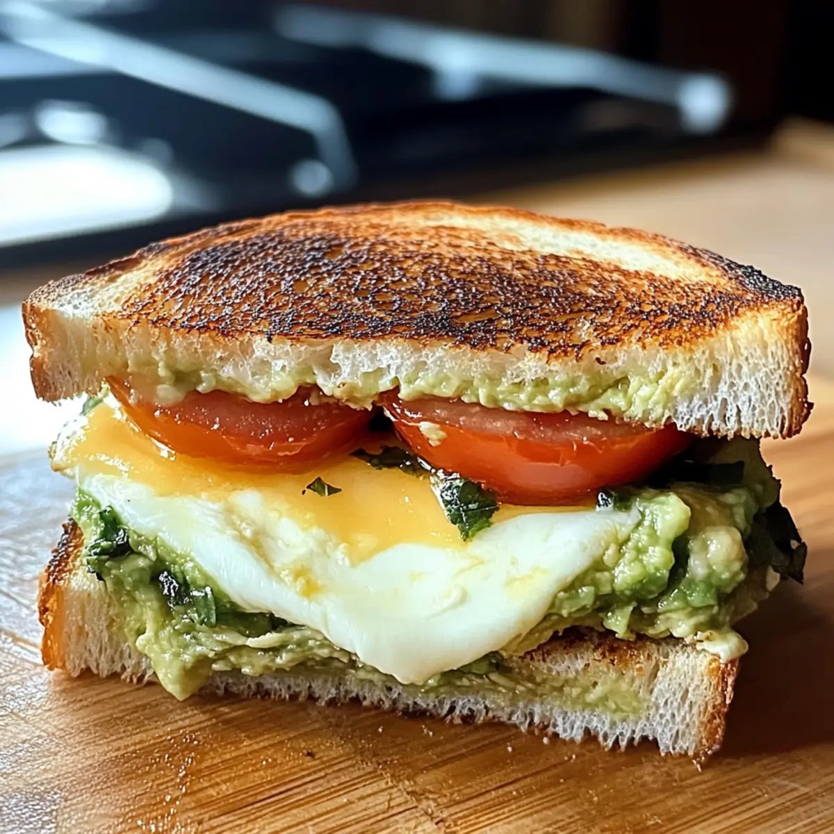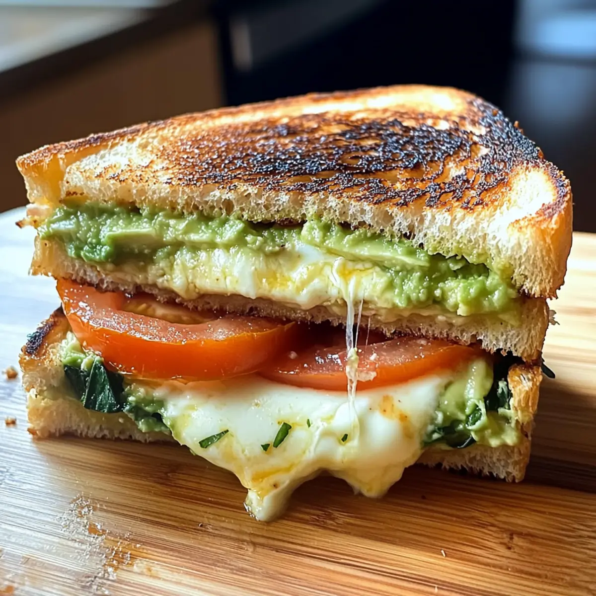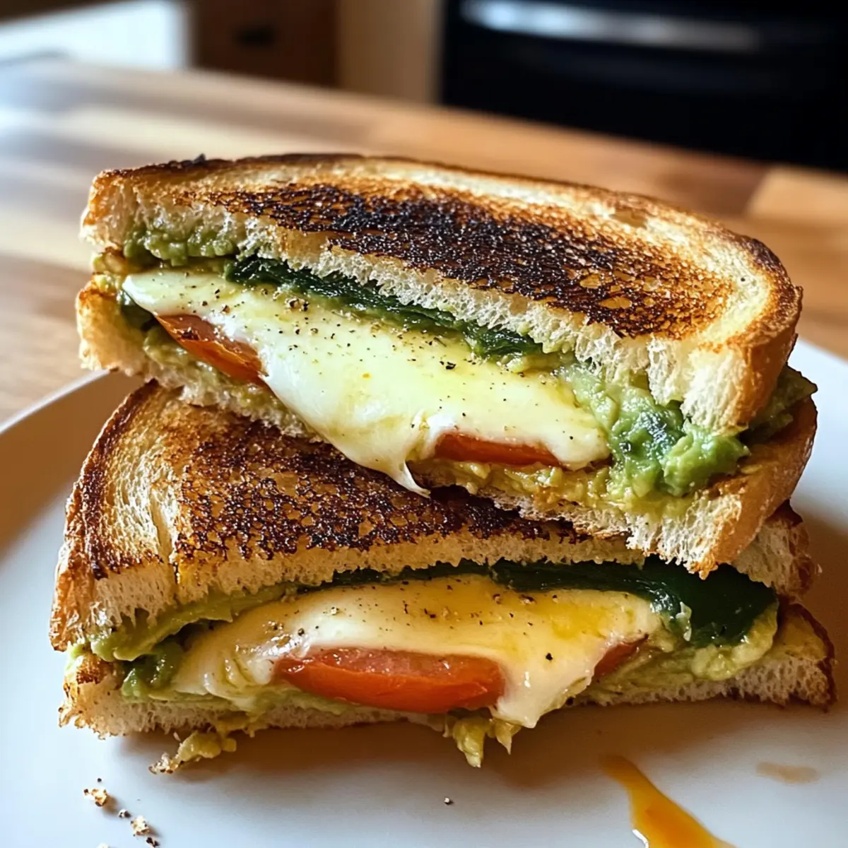 Ein warmer Duft von geschmolzenem Käse und frisch gebackenem Brot erfüllt die Küche, während ich mich auf einen meiner liebsten Comfort Food-Klassiker vorbereite: Avocado, Mozzarella und Tomaten gegrillter Käse. Dieser leckere Twist auf das traditionelle Sandwich bringt nicht nur ein Stück Genuss in hektische Wochentage, sondern eignet sich auch perfekt für entspannte Wochenendbrunches. Die Kombination aus cremiger Avocado, zarter Mozzarella und saftigen Tomaten sorgt für eine Geschmacksexplosion, die selbst die schnellsten Fertiggerichte vergessen lässt. Und das Beste daran? Dieses Rezept ist unglaublich einfach und schnell zuzubereiten, sodass du in kürzester Zeit ein herrliches Gericht auf dem Tisch hast. Bist du bereit, deine Grillkäse-Spiele auf das nächste Level zu heben? Warum wirst du dieses Rezept lieben? Einfachheit: Die Zubereitung ist unkompliziert und benötigt nur wenige Zutaten – perfekt für alle, die eine schnelle Mahlzeit möchten. Vielseitigkeit: Du kannst die Füllungen ganz nach deinem Geschmack anpassen – warum nicht mal frische Basilikumblätter oder eine Prise Pesto hinzufügen? Sättigende Cremigkeit: Die Kombination aus geschmolzener Mozzarella und cremiger Avocado sorgt für ein unvergessliches Geschmackserlebnis. Wohlfühl-Essen: Dieser gegrillte Käse ist das perfekte Comfort Food, das dich an kalten Tagen wärmt. Perfekte Begleitung: Genieße das Sandwich gemeinsam mit einer Tomate Mozzarella Spiese oder einem leckeren Salat für eine ausgewogene Mahlzeit. Avocado, Mozzarella und Tomaten Zutaten • Für die Füllung Avocado – sorgt für eine cremige Textur und gesunde Fette; du kannst sie auch durch Hummus ersetzen, wenn du eine andere Konsistenz möchtest. Mozzarella – bietet einen reichhaltigen, schmelzenden Geschmack; alternativ kannst du auch einen scharfen Cheddar für eine würzige Note verwenden. Tomaten – bringen Frische und Säure ins Spiel; probiere geröstete rote Paprika für einen intensiveren Geschmack. • Für das Brot Brot – bildet die Basis für das Sandwich; wähle Vollkorn- oder glutenfreie Varianten, wenn du eine spezielle Diät einhältst. • Für die Bräunung Butter oder Öl – hilft, goldene, knusprige Ränder zu erzielen; verwende Olivenöl oder vegane Butter für ein anderes Geschmacksprofil. Dieses Rezept für Avocado, Mozzarella und Tomaten gegrillter Käse ist nicht nur einfach, sondern auch voller köstlicher Aromen, die deinen Gaumen erfreuen werden! Schritt-für-Schritt-Anleitung für Avocado, Mozzarella und Tomaten gegrillter Käse Step 1: Zutaten vorbereiten Schneide die Avocado und die Tomaten in dünne Scheiben. Die Mozzarella solltest du entweder in Scheiben schneiden oder, falls du möchtest, sie grob zerreißen. Achte darauf, dass die Avocado schön reif ist, damit sie die gewünschte Cremigkeit für deinen Avocado, Mozzarella und Tomaten gegrillter Käse erreicht. Step 2: Sandwich zusammenstellen Nehme zwei Scheiben deines gewählten Brotes und lege zwischen sie zuerst die Avocadoscheiben, dann die Mozzarella und schließlich die Tomaten. Achte darauf, dass die Füllung gleichmäßig verteilt ist, damit jeder Bissen deines gegrillten Käses voller Geschmack ist. Step 3: Pfanne erhitzen Erhitze eine beschichtete Pfanne bei mittlerer Temperatur. Füge einen Esslöffel Butter oder einen Schuss Olivenöl hinzu, um eine schöne Bräunung zu erreichen. Lass die Pfanne einige Minuten heiß werden, bis das Fett schmilzt und leicht zu sieden beginnt. Step 4: Sandwich grillen Platziere das zusammengestellte Sandwich vorsichtig in die heiße Pfanne. Lass es für etwa 3-4 Minuten braten, bis die Unterseite goldbraun ist. Um sicherzustellen, dass der Käse schmilzt und die Aromen gut miteinander verschmelzen, drücke das Sandwich leicht mit einem Spatel an. Step 5: Wenden und weiterbraten Nach 3-4 Minuten schau dir die Unterseite deines Avocado, Mozzarella und Tomaten gegrillter Käse an – sie sollte schön knusprig und goldbraun sein. Wende das Sandwich vorsichtig und brate die andere Seite ebenfalls für weitere 3-4 Minuten, bis sie ebenfalls goldbraun und knusprig wird. Step 6: Servieren Sobald beide Seiten perfekt gebräunt sind und der Käse gut geschmolzen ist, nimm das Sandwich aus der Pfanne. Lasse es für ein bis zwei Minuten ruhen, damit sich die Füllungen setzen. Danach schneide es diagonal durch und serviere es warm, um den vollsten Geschmack deines Avocado, Mozzarella und Tomaten gegrillter Käse zu genießen. Expertentipps für Avocado, Mozzarella und Tomaten gegrillter Käse • Reife Avocado wählen: Achte darauf, dass deine Avocado schön reif ist, um die beste Cremigkeit und den besten Geschmack in deinem Avocado, Mozzarella und Tomaten gegrillter Käse zu erzielen. • Nicht überladen: Überfülle das Sandwich nicht, da es sonst schwierig wird, es gleichmäßig zu grillen. Halte dich an eine moderate Menge an Füllung. • Die Pfanne vorbereiten: Stelle sicher, dass die Pfanne gut vorgeheizt ist, damit das Brot schön knusprig wird. Verwende dafür etwas Butter oder Olivenöl. • Käse gleichmäßig schmelzen: Decke die Pfanne mit einem Deckel ab, um die Hitze zu speichern und den Käse schneller schmelzen zu lassen. • Zutaten anpassen: Experimentiere mit Variationen, wie zum Beispiel veganem Käse oder anderen Gemüsesorten, um deinen Avocado, Mozzarella und Tomaten gegrillter Käse noch interessanter zu machen. Variationen für Avocado, Mozzarella und Tomaten gegrillter Käse Du kannst dieses Rezept auf so viele köstliche Arten anpassen und verfeinern! Veganer Käse: Verwende pflanzlichen Käse, um das Rezept milchfrei zu gestalten. So genießt jeder das Sandwich! Basilikum-Pesto: Füge eine Schicht frischen Basilikum oder pesto hinzu für einen aromatischen Italien-Twist. Es bringt die Aromen zum Strahlen! Geröstete Paprika: Tausche frische Tomaten gegen geröstete rote Paprika aus. Die Intensität des Geschmacks wird jedes Mal überraschen. Süßkartoffel-Scheiben: Ergänz