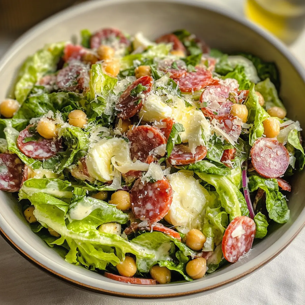 Wenn ich an erfrischende Salate denke, kommt mir sofort der berühmte La Scala gehackte Salat in den Sinn. Dieses Rezept bietet nicht nur einen Hauch von Hollywood-Glamour, sondern überzeugt auch mit seiner unglaublichen Frische und Vielfalt an Aromen. Die Kombination aus knackigem Romana-Salat, herzhaftem Salami und einer würzigen Vinaigrette macht ihn zum perfekten Begleiter für jede Gelegenheit – sei es als schnelles Mittagessen oder als stilvolle Beilage zum Grillabend. Mit einer Zubereitungszeit von weniger als 15 Minuten ist dieser Salat nicht nur einfach zu machen, sondern auch ideal für Meal Prep-Planer, die eine gesunde und köstliche Option suchen. Bereit, diesen Klassiker nachzukochen? Lasst uns gemeinsam in die Welt des La Scala gehackten Salats eintauchen! Warum ist dieser Salat so besonders? Erfrischend und knackig: Der berühmte La Scala gehackte Salat bietet eine perfekte Mischung aus frischem Romana-Salat und herzhaften Zutaten. Einfache Zubereitung: In weniger als 15 Minuten können Sie diese geschmackvolle Speise zubereiten – ideal für hektische Tage! Vielseitig anpassbar: Experimentieren Sie mit Zutaten wie Feta oder Avocado für einen individuellen Duft von Aromen. Nährstoffreich: Mit Proteinen aus Kichererbsen ist er nicht nur lecker, sondern auch gesund. Ideal für Mahlzeiten: Perfekt als leichtes Mittagessen oder als Beilage zu Grillfesten – dieser Salat wird immer ein Hit sein! Schauen Sie sich auch unsere Ideen für Zitronenkuchen mit Puderzucker oder erfrischenden Joghurt Zitronen Kuchen an, um Ihre Mahlzeiten zu bereichern! Berühmter La Scala gehackter Salat Zutaten Für den Salat Römersalat – Ist die Basis des Salats und sorgt für Knackigkeit und Frische; kann auch durch Eisbergsalat oder Butterkopfsalat ersetzt werden. Genoa Salami – Fügt herzhaften Geschmack und Tiefe hinzu; kann für eine vegetarische Variante durch Prosciutto oder ganz weggelassen werden. Geriebener Mozzarella – Sorgt für Cremigkeit und Textur; kann durch Feta oder Ziegenkäse für eine andere Geschmacksrichtung ersetzt werden. Kichererbsen – Liefern Protein und machen den Salat gehaltvoll; verwenden Sie Dosen- oder gekochte Kichererbsen, oder für eine leichtere Option, gleich viel gewürfelte Avocado. Für das Dressing Olivenöl – Das Hauptfett für das Dressing, um Reichtum zu verleihen; kann auch durch Avocadoöl ersetzt werden. Rotweinessig – Fügt Säure und Helligkeit zum Dressing hinzu; kann durch Weißweinessig oder Apfelessig ersetzt werden. Dijon-Senf – Gibt dem Dressing eine würzige Note; kann durch normalen Senf für einen milderen Geschmack ersetzt werden. Oregano – Sorgt für Kräuteraromen im Dressing; frische Kräuter wie Basilikum oder Thymian können ebenfalls verwendet werden. Salz und Pfeffer – Unverzichtbar für die Würze; verwenden Sie frisch gemahlenen Pfeffer für besseren Geschmack. Dieser berühmte La Scala gehackte Salat ist der perfekte Weg, um gesunde Frische auf den Tisch zu bringen. Bereiten Sie ihn einfach und schnell zu und genießen Sie jeden Biss! Schritt-für-Schritt-Anleitung für das Berühmte La Scala gehackte Salat Rezept Schritt 1: Zutaten vorbereiten Beginnen Sie damit, den Romana-Salat gründlich zu waschen und in kleine, gleichmäßige Stücke zu schneiden. Schneiden Sie auch die Genoa-Salami und den geriebenen Mozzarella in ähnliche, mundgerechte Stücke. Dies sorgt dafür, dass jeder Biss harmonisch ist und alle Aromen des berühmten La Scala gehackten Salats zur Geltung kommen. Schritt 2: Zutaten kombinieren Nehmen Sie eine große Salatschüssel und geben Sie den geschnittenen Romana-Salat, die Salami, den Mozzarella und die Kichererbsen hinein. Mischen Sie die Zutaten vorsichtig, damit sie gleichmäßig verteilt sind, und genießen Sie dabei die Farbvielfalt und die frischen Aromen der hochwertigen Zutaten. Schritt 3: Dressing zubereiten In einer separaten Schüssel verquirlen Sie 60 ml Olivenöl, 30 ml Rotweinessig, 1 Teelöffel Dijon-Senf, und eine Prise Oregano. Fügen Sie nach Geschmack Salz und frisch gemahlenen Pfeffer hinzu und rühren Sie gut um, bis das Dressing emulgiert und eine cremige Textur erreicht wird. Dieses Dressing verleiht dem berühmten La Scala gehackten Salat den perfekten würzigen Kick. Schritt 4: Salat vermengen Gießen Sie das frisch zubereitete Dressing über die Mischung aus Salat, Salami, Mozzarella und Kichererbsen. Verwenden Sie eine große Zange oder Löffel, um alle Zutaten gut durchzumischen, sodass das Dressing gleichmäßig auf allen Zutaten haftet. Achten Sie darauf, dass Sie die Stücke sanft behandeln, um ihre Knackigkeit zu erhalten. Schritt 5: Ruhen und Servieren Lassen Sie den Salat für etwa 5 bis 10 Minuten stehen, bevor Sie ihn servieren. Diese kurze Ruhezeit ermöglicht es den Aromen, sich zu verbinden und verleiht dem berühmten La Scala gehackten Salat eine exquisite Geschmacksintensität. Servieren Sie den Salat allein oder als Beilage zu Ihren Lieblingsgerichten. Was passt zum berühmten La Scala gehackten Salat? Genießen Sie diesen erfrischenden Salat als Teil eines köstlichen, ausgewogenen Essens, das nicht nur schmeckt, sondern auch bei jedem Bissen begeistert. Gegrilltes Hähnchen: Das zarte, saftige Fleisch ergänzt die knackigen Elemente des Salats und bietet eine proteinreiche Mahlzeit. Geröstete Gemüse: Knackige, saisonale Gemüse wie Zucchini oder Paprika bringen zusätzliche Geschmäcker und Farben, wodurch das Gericht lebendiger wird. Sie harmonieren perfekt mit der Würze des Salats. Frisches Baguette: Ein Stück knuspriges Baguette eignet sich hervorragend, um den letzten Rest vom Dressing aufzutunken. Es verleiht dem Essen eine gemütliche Note. Roséwein: Ein kühler Rosé bringt Frische in die Kombination und unterstreicht die fruchtigen Aromen des Dressings. Ideal für gesellige Abende! Zitronensorbet: Als Dessert rundet dieses erfrischende Sorbet das Essen perfekt ab und bietet ein leichtes, süßes Ende nach dem knackigen Salat. 