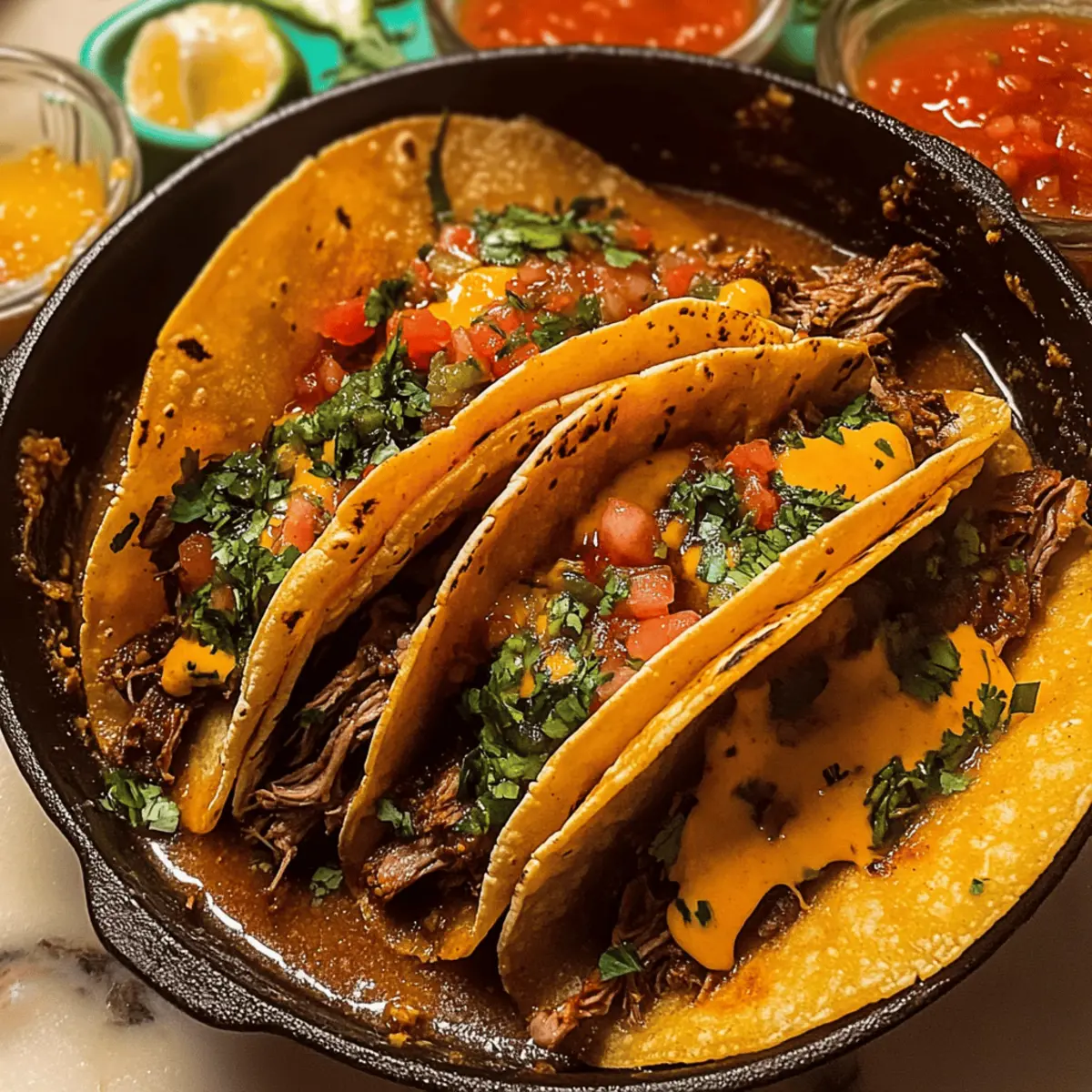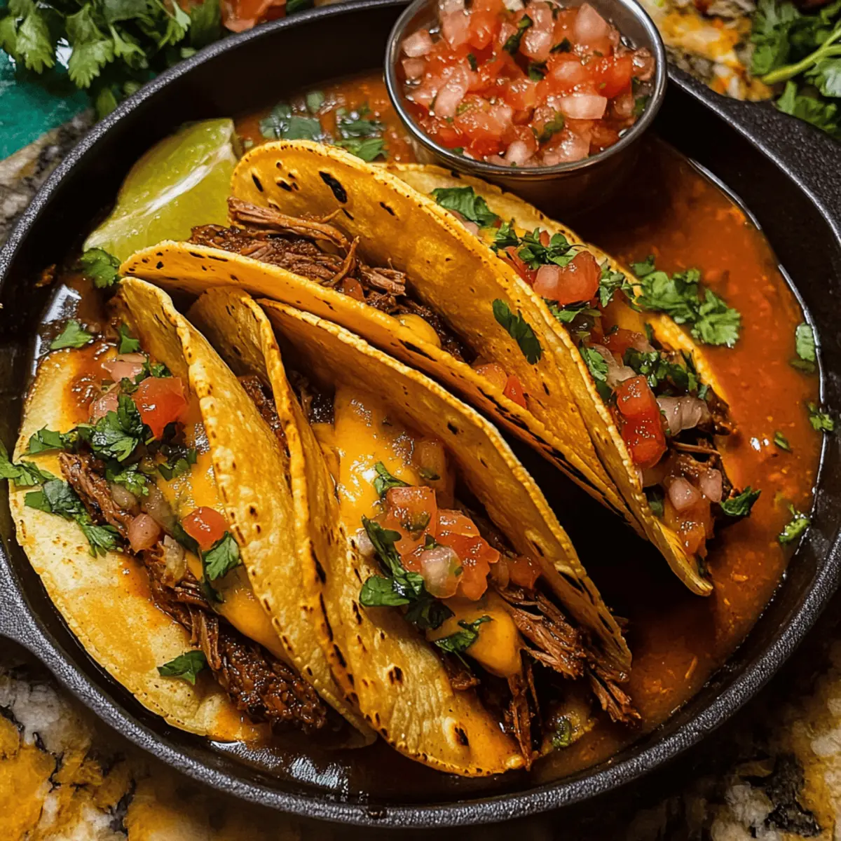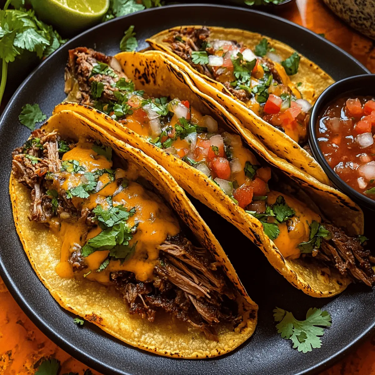 Wenn ich an die letzten Ferientage denke, fühle ich noch immer die Aufregung beim Bissen in eine perfekt zubereitete Birria-Taco. Diese köstlichen Röllchen sind nicht nur ein Genuss für den Gaumen, sie verbinden Tradition und Kreativität auf unvergleichliche Weise. In meinem Rezept für die besten Birria-Tacos teile ich mit euch die Geheimnisse, wie ihr das zarte, geschmorte Fleisch und den schmelzenden Käse in eine knusprige Hülle verwandelt. Egal, ob ihr euch für die klassische Variante mit Rindfleisch entscheidet oder eine kreative Kombination mit Jackfruit ausprobieren möchtet, diese Tacos sind nicht nur ein Hit bei jeder Gelegenheit, sondern auch gluten- und milchfrei verfügbar. Lasst uns gemeinsam eintauchen in die Welt dieser Mexikanischen Köstlichkeit – könnt ihr den Duft bereits riechen? Warum sind Birria-Tacos so beliebt? Einheit von Tradition und Geschmack: Diese Birria-Tacos sind nicht nur ein Klassiker der mexikanischen Küche, sondern bieten auch eine spannende Kombination aus Aromen, die jeden Gaumen erfreuen. Einfache Zubereitung: Mit nur wenigen Schritten zaubert ihr ein Gericht, das den Reichtum slow-cooked Geschmäcker zur Geltung bringt. Vielseitigkeit: Ob mit saftigem Rindfleisch oder als vegane Variante mit Jackfruit – jeder findet hier sein Lieblingsrezept. Perfekt für Geselligkeit: Diese Tacos sind ideal für Feiern und lassen sich bequem im Voraus zubereiten. Familientradition: Birria-Tacos bringen Freunde und Familie zusammen und sind ein Zeichen für Liebe, die durch den Magen geht. Bereitet euch darauf vor, dass selbst die skeptischsten Esser begeistert sein werden! Birria-Taco Zutaten Für die Chilipaste Getrocknete Guajillo-Chilis – Fügt einen tiefen, reichhaltigen Geschmack hinzu; kann durch zusätzliche Ancho-Chilis ersetzt werden. Getrocknete Ancho-Chilis – Bringt Süße und Schärfe; kann durch mehr Guajillo-Chilis ersetzt werden. Chipotle-Chilis in Adobo – Sorgt für rauchige Schärfe; frische Jalapeños sind eine milde Alternative. Für die Füllung Zwiebel – Basisgeschmack für Sauce und Füllung; Schalotten sind eine gute Alternative. Knoblauchzehen – Verbessern den Gesamtgeschmack; Knoblauchpulver kann verwendet werden, wenn frische nicht verfügbar ist. Crushed Tomatoes – Fügt Säure und Reichhaltigkeit zur Sauce hinzu; frische gewürfelte Tomaten können als Ersatz dienen. Bio-Rinderbrühe – Verleiht der Sauce Tiefe; für eine vegetarische Option kann Gemüsebrühe verwendet werden. Apfelessig – Balanciert die Aromen; kann mit Limettensaft für mehr Frische ersetzt werden. Lorbeerblätter – Fügen während des Kochens aromatische Aromen hinzu; können weggelassen werden, wenn nicht verfügbar. Mexikanischer Oregano – sorgt für einen würzigen Geschmack; herkömmlicher Oregano ist ebenfalls akzeptabel. Getrockneter Thymian, Kreuzkümmel, Zimt, geräuchertes Paprika, gemahlener Piment – Gewürze, die das herzhaft Profil verbessern; Mengen nach Geschmack anpassen. Bio-Schmorbraten (Rind) – Hauptprotein, langsam gegart bis zart; kann durch Lamm, Ziege oder Huhn ersetzt werden. Natives Olivenöl extra – Zum Anbraten des Fleisches verwendet; kann durch Raps- oder Avocadoöl ersetzt werden. Meersalz, schwarzer Pfeffer, Knoblauchpulver – Essentielle Gewürze für den Geschmack; nach Geschmack anpassen. Für die Tacos Bio-Mais-Tortillas – Dienen als Taco-Schalen; Weizentortillas können für eine weichere Alternative verwendet werden. Geriebener Oaxaca-Käse – Schmelzender Belag für die Tacos; kann durch jeden schmelzenden Käse wie Mozzarella ersetzt werden. Frisch gehackter Koriander – Frische und Garnitur; Petersilie kann verwendet werden, wenn Koriander nicht gemocht wird. Pico de Gallo – Frische Salsa serviert als Belag; sowohl selbstgemachte als auch gekaufte Optionen sind in Ordnung. Die Zutatenliste für die köstlichen Birria-Tacos lässt euch bereits beim Lesen das Wasser im Mund zusammenlaufen! Schritt-für-Schritt-Anleitung für köstliche Birria-Tacos Step 1: Chilipaste zubereiten Weichen Sie getrocknete Guajillo- und Ancho-Chilis in heißer Bio-Rinderbrühe für etwa 15 Minuten ein, bis sie weich sind. Anschließend die eingeweichten Chilis zusammen mit dem Knoblauch, Zwiebel, crushed tomatoes, Apfelessig und Gewürzen in einem Mixer pürieren, bis eine glatte Paste entsteht. Diese aromatische Chilipaste wird die Basis für die köstlichen Birria-Tacos sein. Step 2: Fleisch anbraten Erhitzen Sie in einem großen Schmortopf etwas natives Olivenöl bei mittlerer Hitze. Braten Sie die Stücke des Bio-Schmorbratens für ca. 5-7 Minuten an, bis sie eine goldbraune Kruste haben. Nehmen Sie das Fleisch heraus und braten Sie die Zwiebeln im verbliebenen Fett an, bis sie etwa 3 Minuten lang glasig sind. Fügen Sie dann die zuvor hergestellte Chilipaste hinzu und rühren Sie gut um. Step 3: Schmorprozess Legen Sie das angebratene Fleisch zurück in den Topf und gießen Sie genug Rinderbrühe hinzu, sodass das Fleisch leicht bedeckt ist. Fügen Sie Lorbeerblätter, mexikanischen Oregano und die restlichen Gewürze hinzu. Decken Sie den Topf ab, reduzieren Sie die Temperatur und lassen Sie die Mischung ca. 2,5 Stunden bei 160°C schmoren, bis das Fleisch sehr zart ist und sich leicht zerteilen lässt. Step 4: Fleisch zerteilen Nehmen Sie den Topf aus dem Ofen und entfernen Sie das Fleisch vorsichtig. Lassen Sie es etwas abkühlen, bevor Sie es mit zwei Gabeln in zarte Stücke zerteilen. Dieser Schritt sorgt dafür, dass die zarten Stücke perfekt für die Füllung der Birria-Tacos geeignet sind. Bewahren Sie etwas der Brühe auf, um Ihre Tacos später zu dippen. Step 5: Tacos zubereiten Tauchen Sie die Bio-Mais-Tortillas kurz in die aufbewahrte Brühe, bevor Sie sie in einer Pfanne bei mittlerer Hitze braten. Fügen Sie auf eine Hälfte jeder Tortilla eine großzügige Menge zerkleinertes Fleisch und geriebenen Oaxaca-Käse hinzu. Klappen Sie die Tortilla zusammen und braten Sie sie etwa 3-4 Minute