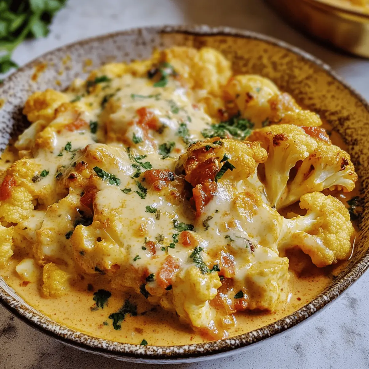 Das Aroma von sanft geröstetem Gemüse und aromatischen Gewürzen kann selbst die müdesten Gemüter aufwecken. Heute lade ich dich ein, mit mir zusammen einen köstlichen Blumenkohl Curry aus dem Backofen zu kreieren. Dieser Auflauf kombiniert zarten Blumenkohl mit einer cremigen Kokosmilch-Currysoße und einer knusprigen Käsekruste – perfekt für alle, die sich nach einer gemütlichen, veganen Mahlzeit sehnen. In weniger als 40 Minuten zubereitet, ist er nicht nur zeitsparend, sondern auch ein echtes Familienliebling, das alle begeistern wird. Hast du schon einmal darüber nachgedacht, wie vielseitig Blumenkohl in der Küche sein kann? Lass uns gemeinsam in die Welt der Gewürze und Aromen eintauchen! Warum wirst du dieses Rezept lieben? Einfachheit pur: Die Zubereitung dieses Blumenkohl Currys aus dem Backofen ist kinderleicht und benötigt nur grundlegende Kochfähigkeiten. Würzige Aromen: Durch die Mischung aus Gewürzen und Kokosmilch erhält der Auflauf eine intensive, köstliche Note, die jeden Gaumen erfreut. Vielseitigkeit: Du kannst dieses Rezept ganz nach deinem Geschmack variieren, indem du zum Beispiel Kichererbsen oder frischen Spinat hinzufügst. Familienfreundlich: Dieses Gericht begeistert die ganze Familie und ist eine großartige Möglichkeit, Gemüse zu genießen. Schnelle Zubereitung: In weniger als 40 Minuten steht ein herzhaftes Gericht auf dem Tisch – ideal für hektische Wochentage! Perfekte Beilage: Serviere ihn mit Naan, Roti oder Reis für ein rundum leckeres Essen. Verpasse nicht auch meine Tipps für Aufbewahrung und Aufwärmen. Blumenkohl Curry Zutaten Für den Auflauf: • Blumenkohl – sorgt für Struktur und Volumen im Gericht; nicht zu weich kochen! • Gewürfelte Tomaten (250 g) – bringen Frische und Saftigkeit; frische Tomaten sind ebenfalls eine gute Wahl. • Knoblauch (3 Zehen) – verleiht intensiven Geschmack; kann auch durch Knoblauchpulver ersetzt werden. • Frischer Ingwer (2 ½ cm) – gibt eine würzige Note; Kurkuma ist ein geraffter Ersatz. • Currypulver (2 TL) – für die typisch indische Tiefe; variiere mit unterschiedlichen Würzmischungen. • Salz (½ TL), Zwiebelpulver (½ TL), Knoblauchpulver (½ TL), Paprika (½ TL), gemahlener Kreuzkümmel (½ TL) – Gewürze zur Geschmacksabrundung; nach Belieben anpassen. Für die Soße: • Kokosmilch (120 g) – sorgt für eine cremige Konsistenz; alternativ kann Pflanzenmilch verwendet werden. • Maisstärke oder Tapiokastärke (½ EL) – zum Andicken der Soße; kann bei Bedarf auch weggelassen werden. • Hefeflocken (1 EL, optional) – für einen käsigen Geschmack; durch veganen Parmesankäse ersetzbar. • Schwarzer Pfeffer (¼ TL) – für zusätzlichen Geschmack; gerne erhöhen nach deinem Gusto. • Geriebener veganer Käse – sorgt für Geschmack und eine leckere Kruste; suche dir deinen Lieblingskäse aus! Genieße diesen Blumenkohl Curry aus dem Backofen, der nicht nur schnell zubereitet ist, sondern auch ein wahres Geschmackserlebnis bietet! Schritt-für-Schritt-Anleitung für Blumenkohl Curry aus dem Backofen Step 1: Blumenkohl vorbereiten Teile den Blumenkohl in kleine Röschen und bringe einen Topf mit Salzwasser zum Kochen. Gib die Blumenkohlröschen hinein und koche sie für etwa 10 Minuten, bis sie leicht weich, aber noch bissfest sind. Danach gieße sie gut ab und stelle sie beiseite, damit sie etwas abkühlen können. Step 2: Ofen vorheizen Heize den Ofen auf 180 °C vor, während du die anderen Zutaten vorbereitest. Dies gewährleistet, dass der Blumenkohl Curry aus dem Backofen gleichmäßig gart und eine schöne, goldene Kruste entsteht. Bereite eine Auflaufform vor, indem du sie leicht einfettest oder mit Backpapier auslegst. Step 3: Soße zubereiten In einer großen Schüssel vermische die gewürfelten Tomaten, fein gehackten Knoblauch, geriebenen Ingwer und alle Gewürze wie Currypulver, Salz, Zwiebelpulver, Paprika und Kreuzkümmel. Rühre alles gut um, bis du eine gleichmäßige Mischung erhältst, in die du dann die abgetropften Blumenkohlröschen einfügst und vorsichtig unterhebst. Step 4: Kokosmilchsoße gießen In einer separaten Schüssel vermenge die Kokosmilch, die Stärke und optional die Hefeflocken. Rühre diese Mischung gut durch, bis sie cremig und ohne Klümpchen ist. Gieße die Soße gleichmäßig über den Blumenkohl und achte darauf, dass alle Röschen gut bedeckt sind. Step 5: Backen Platziere die Auflaufform in den vorgeheizten Ofen und backe den Blumenkohl Curry für 10 Minuten. Nimm ihn dann heraus und rühre vorsichtig um, damit sich die Soße gut verteilt. Bestreue das Gericht anschließend mit geriebenem veganem Käse und schiebe es für weitere 10 Minuten in den Ofen, bis der Käse geschmolzen und leicht goldbraun ist. Step 6: Servieren Nehme das fertige Blumenkohl Curry aus dem Backofen und lasse es kurz abkühlen. Serviere es warm zusammen mit frisch gebackenem Naan, Roti oder einer Portion Reis. Dies sorgt für ein vollständiges und befriedigendes Essen, das sowohl lecker als auch gesund ist. Aufbewahrungstipps für Blumenkohl Curry aus dem Backofen Kühlschrank: Lagere Reste des Blumenkohl Currys in einem luftdichten Behälter für bis zu 3 Tage. So bleibt die Frische und der Geschmack optimal erhalten. Gefrierschrank: Lass den Auflauf vollständig abkühlen, bevor du ihn in einem gefrierfesten Behälter für bis zu 1 Monat einfrierst. Achte darauf, ihn gut einzuwickeln, um Gefrierbrand zu vermeiden. Auftauen: Zum Auftauen lege den gefrorenen Auflauf über Nacht in den Kühlschrank oder lasse ihn bei Raumtemperatur auftauen. Wiedererwärmen: Erhitze den Auflauf im Ofen bei 180 °C für etwa 20 Minuten oder in der Mikrowelle, bis er durchgehend warm ist. So bleibt die Textur angenehm und die Aromen bleiben erhalten. Expert Tips für Blumenkohl Curry Genügend bissfest: Achte darauf, den Blumenkohl nicht zu weich zu kochen, da er beim Backen noch etwas gart und die perfekte Textur behält. Soße anpassen: Um die Kokos