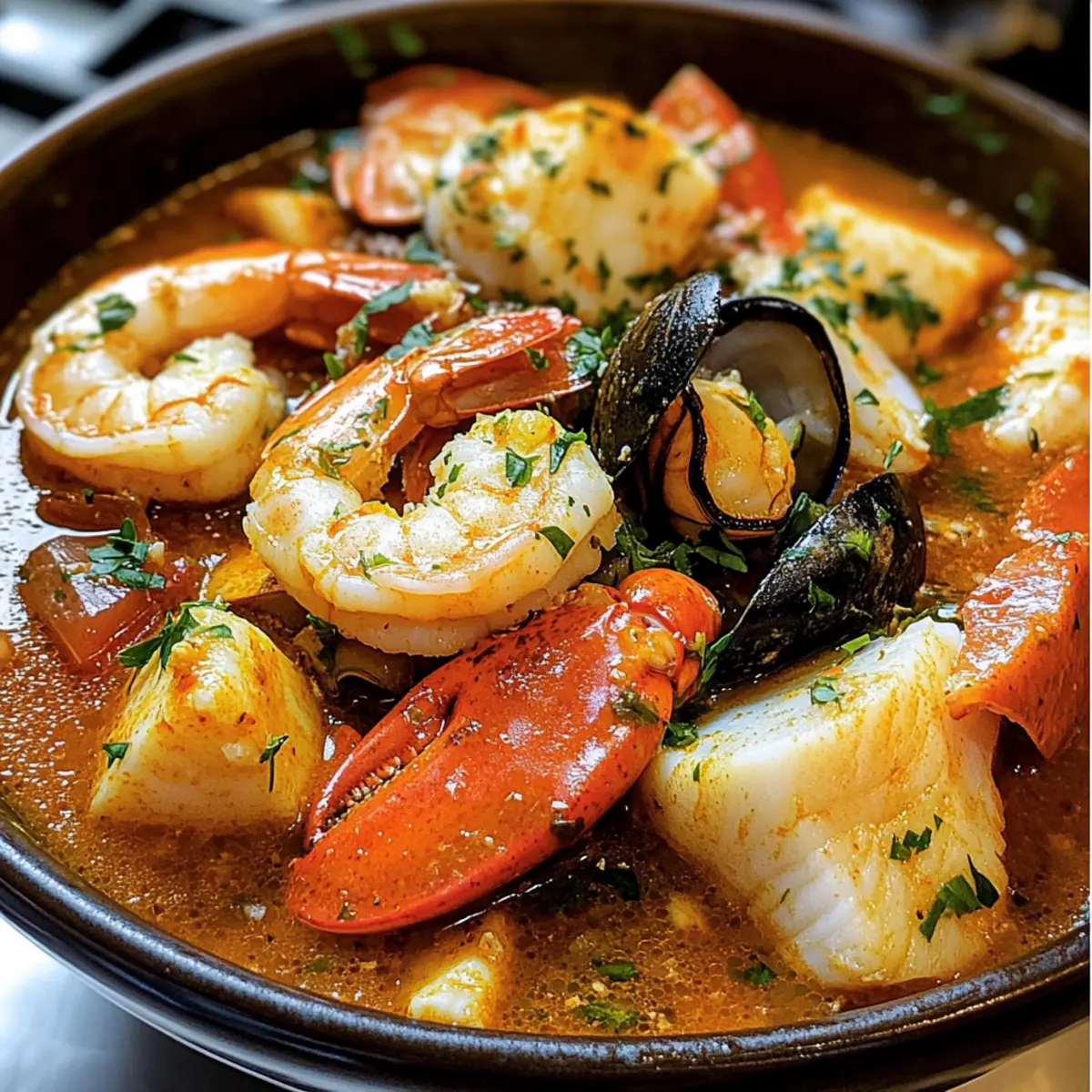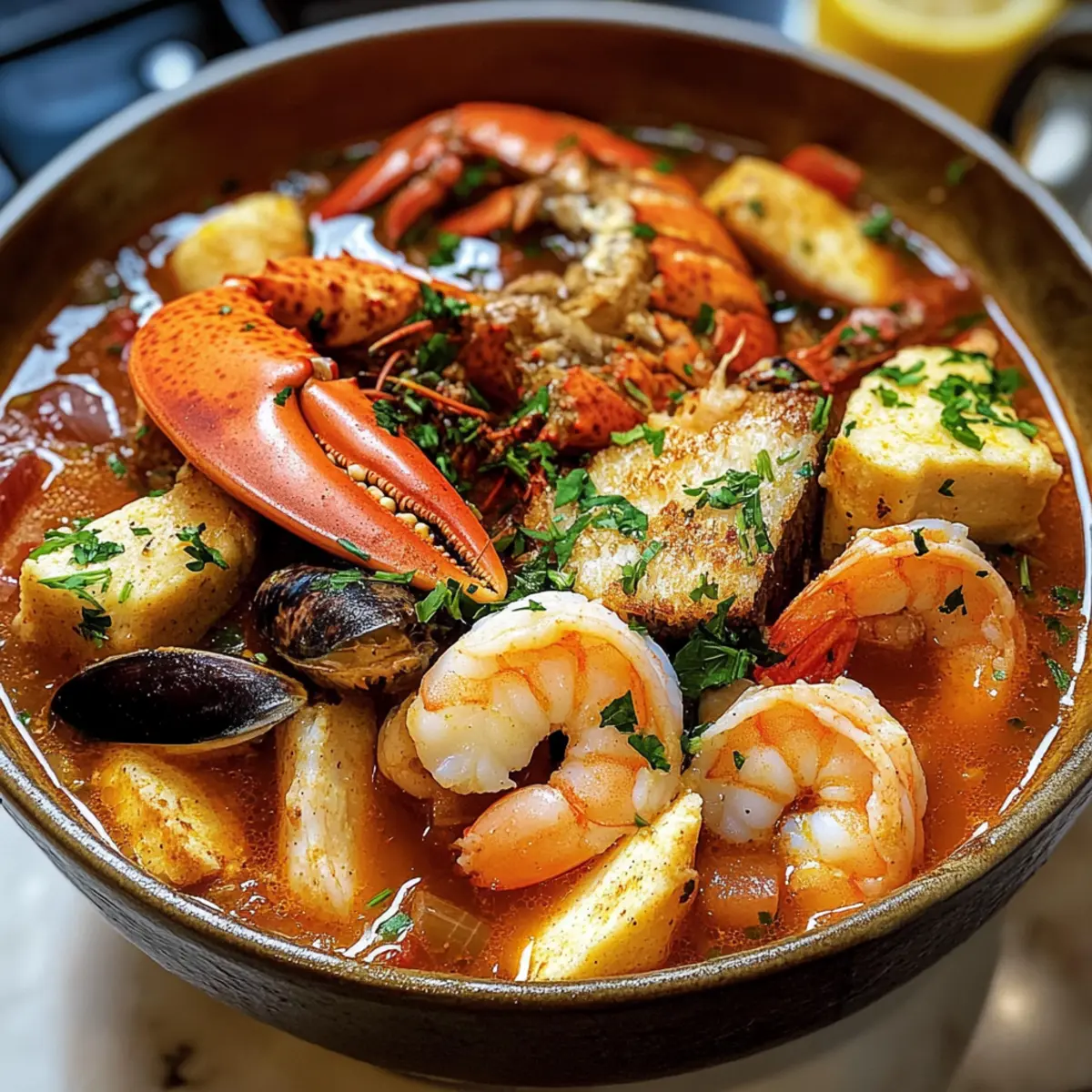 Die Sonne strahlt über die malerischen Küsten von Marseille, und ich kann bereits den köstlichen Duft einer traditionell zubereiteten Bouillabaisse (Fischsuppe) in der Luft spüren. Diese mediterrane Fischsuppe vereint frisches Seafood mit aromatischen Kräutern und Gewürzen, die zusammen ein Geschmackserlebnis bieten, das sowohl bei festlichen Anlässen als auch bei gemütlichen Familienessen wunderbar zur Geltung kommt. Mit ihrer reichhaltigen Brühe und der Farbenpracht ist die Bouillabaisse nicht nur ein Gaumenschmaus, sondern auch ein tolles Gericht für entspannte Abende. Und das Beste daran? Sie ist nicht nur sättigend und vielseitig, sondern auch einfach zuzubereiten! Welche geheimen Zutaten werden Sie hinzufügen, um Ihr ganz persönliches Rezept zu kreieren? Warum lieben Sie Bouillabaisse? Vielseitigkeit: Diese Bouillabaisse passt perfekt zu verschiedenen Meeresfrüchten und Kräutern, sodass Sie sie ganz nach Ihrem Geschmack anpassen können. Aromatische Brühe: Die Kombination aus frischen Zutaten und Gewürzen sorgt für eine reichhaltige, geschmackvolle Brühe, die zum Löffeln einlädt. Familienliebling: Ideal für gemütliche Abendessen mit der Familie oder Essenseinladungen mit Freunden – jeder wird begeistert sein! Gesund und nährstoffreich: Vollgepackt mit gesundem Seafood ist dieses Gericht nicht nur lecker, sondern auch nahrhaft. Einfache Zubereitung: Trotz seiner raffinierten Aromen ist die Zubereitung kinderleicht, sodass auch Kochanfänger in den Genuss dieser Delikatesse kommen können. Probieren Sie es aus und verfeinern Sie es mit frischen Kräutern oder genießen Sie es mit einer Beilage wie Knuspriger Baguette für das perfekte mediterrane Erlebnis! Bouillabaisse Zutatenliste Hinweis: Hier sind die Zutaten für eine köstliche Bouillabaisse, die Ihr Zuhause mit mediterranen Aromen erfüllen wird. Für die Brühe Shrimp und Lobster Shells – Frische Schalen geben der Brühe außergewöhnlichen Geschmack. Olivenöl – Ideal zum Anbraten und sorgt für reichhaltigen Geschmack. Schalotten, Zwiebel und Lauch – Aromatische Gemüsemischung für den Geschmacksgrundstock. Schwarzer Pfeffer und Salz – Essenzielle Gewürze für die richtige Würze. Muschelsaft und Wasser – Bilden die Hauptflüssigkeit der Suppe. Tomatenmark und gewürfelte Tomaten – Fügen Süße und Säure hinzu, um die Aromen auszubalancieren. Safran – Verleiht der Bouillabaisse ihre charakteristische Farbe und ein unverkennbares Aroma. Harissagewürz – Für eine pikante Tiefe im Geschmack. Für das Seafood Fisch (z.B. Steinbutt, Hummer, Tintenfisch, Jakobsmuscheln, Muscheln, Garnelen) – Jeder bringt einzigartige Texturen und Aromen mit, die die Bouillabaisse lebendig machen. Frische Kräuter (Estragon, Thymian, Petersilie, Schnittlauch) – Für Garnitur und zusätzlichen Geschmack. Für die Umami-Note Miso-Paste – Verstärkt die herzhafte Tiefe der Brühe. Diese Zutaten machen Ihre Bouillabaisse zu einem ebenso geschmackvollen wie ansprechenden Gericht, das Sie mit Ihrer Familie und Freunden teilen können. Tauchen Sie ein in die Geschmackstiefe dieser hervorragenden Fischsuppe! Schritt-für-Schritt-Anleitung für Bouillabaisse (Fischsuppe) Step 1: Brühe vorbereiten In einem großen Topf das Olivenöl erhitzen und die Schalen von Garnelen und Hummer bei mittlerer Hitze anbraten, bis sie aromatisch sind. Mit einem Schuss Weißtraubensaft ablöschen und die gewürfelten Schalotten, Zwiebeln und Lauch hinzufügen. Nach 30 Minuten Sanftem Köcheln mit Muschelsaft und Wasser, bei Bedarf mit Salz und Pfeffer abschmecken, dann die Brühe abseihen. Step 2: Aromaten anbraten In einer anderen Pfanne das Gemüse, bestehend aus Zwiebeln, Lauch und Schalotten, für etwa 3 Minuten bei mittlerer Hitze anbraten, bis es weich ist. Dann geriebene Orangenschale, Knoblauch, Tomatenmark, gewürfelte Tomaten, eingeweichte Safranfäden, Harissa und Miso hinzufügen und weitere 3 Minuten köcheln lassen, bis alles gut vermischt ist und duftet. Step 3: Brühe und Fisch kombinieren Die abgesiebte Brühe vorsichtig in die Pfanne mit den aromatischen Zutaten gießen und den gewürfelten Steinbutt hinzufügen. Alles zusammen auf niedriger Hitze etwa 30 Minuten köcheln lassen, bis die Aromen gut verbunden sind und der Fisch leicht gart. Dabei gelegentlich umrühren, damit nichts anbrennt. Step 4: Meeresfrüchte pochieren Während die Bouillabaisse weiter köchelt, in der kochenden Brühe den Tintenfisch und den Hummer für etwa 2-3 Minuten pochieren, bis sie gerade durchgegart sind. Dabei darauf achten, dass die Textur zart bleibt. Anschließend alles zurück in die Pfanne geben. Step 5: Fisch anbraten In einer separaten Pfanne den Heilbutt und die Jakobsmuscheln in etwas Olivenöl anbraten, bis sie goldbraun sind. Dies dauert etwa 2-3 Minuten pro Seite. Mit der Brühe ablöschen und alles vorsichtig in den Haupttopf mit der Bouillabaisse einfüllen. Step 6: Finale Zubereitung Nach dem Anbraten die Muscheln und frischen Kräuter in die Bouillabaisse geben. Alles für weitere 5-7 Minuten köcheln lassen, bis die Muscheln sich geöffnet haben. Achten Sie darauf, die Hitze niedrig zu halten, um die Zartheit der Meeresfrüchte zu bewahren. Dann heiß servieren, garniert mit frischen Kräutern und frisch gemahlenem Pfeffer. Was passt zu Bouillabaisse? Die Auswahl der perfekten Begleiter macht Ihr Bouillabaisse-Erlebnis noch unvergesslicher und lässt die Aromen der Fischsuppe noch besser zur Geltung kommen. Knuspriges Baguette: Ein frisch gebackenes Baguette ist ideal, um die reichhaltige Brühe aufzusaugen und Ihre Geschmacksknospen zu erweitern. Der Kontrast von knusprig und weich schafft ein perfektes Geschmackserlebnis. Zitronige Kräutersalat: Ein leichter Salat mit frischen Kräutern und einem Spritzer Zitrone bringt zusätzliche Frische und Akzeptanz zu Ihrer Bouillabaisse. Diese knackige Kombination sorgt für eine harmonische Balance zu den Aromen des Gerichts. Weißwein: Ein Glas trockenem Weißw