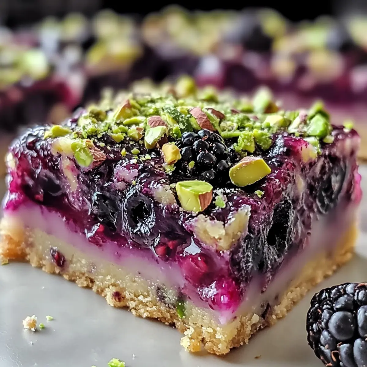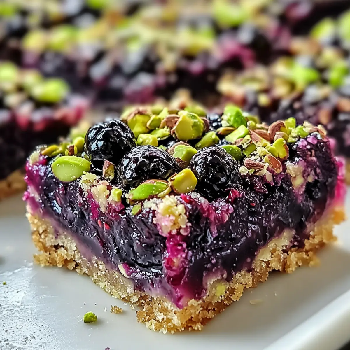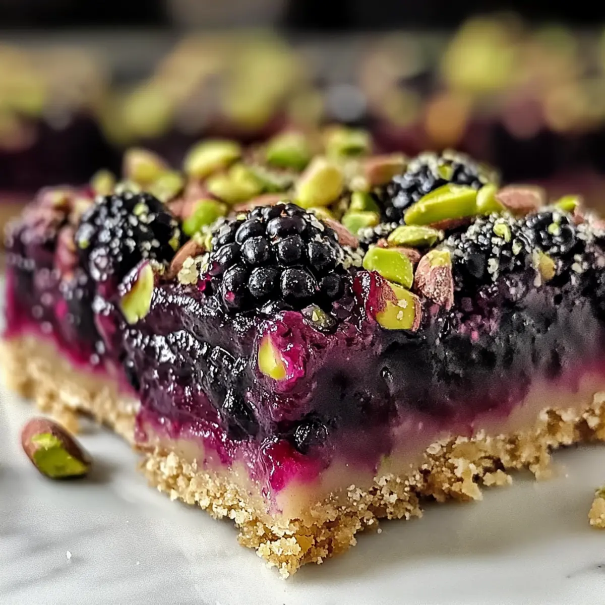 Stell dir vor, wie sich der duftende Aromen-Mix von frisch gebackenen Brombeer-Pistazien-Traumriegeln in deiner Küche ausbreitet – die perfekte Kombination aus süßen, saftigen Beeren und knackigen Pistazien auf einem buttrigen Shortbread-Boden. Diese Brombeer-Pistazien-Traumriegel sind nicht nur ein Genuss für die Sinne, sondern auch ein Kinderspiel in der Zubereitung. Wenn du auf der Suche nach einer glutenfreien Leckerei bist, die du ganz nach deinem Geschmack anpassen kannst, dann ist dies das ideale Rezept für dich. Ob du sie mit Freunden teilst oder einfach nur für dich selbst backst, diese Riegel sind der perfekte Begleiter für jede Gelegenheit. Lust auf ein geschmackliches Abenteuer? Lass uns loslegen! Warum sind diese Riegel so besonders? Einfachheit: Die Zubereitung dieser Riegel ist unkompliziert, was sie für jeden Heimkoch zugänglich macht. Du brauchst nur wenige Grundzutaten! Vielseitigkeit: Dank der flexiblen Rezeptoptionen kannst du verschiedene Beeren oder Nüsse verwenden, um deinem persönlichen Geschmack gerecht zu werden. Leckere Kombination: Der Mix aus süßen Brombeeren und knackigen Pistazien sorgt für ein einzigartiges Geschmackserlebnis, das deine Geschmacksknospen begeistern wird. Perfekter Genuss: Genießen kannst du diese Riegel warm mit einer Kugel Vanilleeis oder mit frischem Sahne-Häufchen – sie sind für jede Gelegenheit perfekt! Ich empfehle auch einen Blick auf Pfifferlinge Mit Spinat oder Zwetschgenkuchen Mit Baiser für weitere tolle Dessert-Ideen. Schnelle Lagerung: Die Riegel sind in einem luftdichten Behälter mehrere Tage haltbar oder können sogar eingefroren werden! Brombeer-Pistazien-Traumriegel Zutaten • Für ein unvergessliches Genuss-Erlebnis! Für den Boden Allzweckmehl – sorgt für die Struktur des Bodens; kann durch glutenfreies Mehl ersetzt werden, um eine glutenfreie Option zu kreieren. Ungesalzene Butter (kalt und gewürfelt) – verleiht dem Boden reichhaltigen Geschmack und Flakigkeit. Zucker – süßt sowohl den Boden als auch die Füllung; kann reduziert werden, wenn du es weniger süß magst. Salz – hebt die Aromen im gesamten Dessert hervor. Großes Eigelb – bindet den Boden; wichtig für die Textur – nicht das ganze Ei verwenden. Eiskaltes Wasser – verbindet die Boden-Zutaten, ohne die Butter zu schmelzen; immer kaltes Wasser verwenden. Für die Füllung Frische Brombeeren – die Hauptzutat mit säuerlicher Süße; kann durch Himbeeren oder Blaubeeren ersetzt werden. Zitronensaft – verstärkt den Brombeer-Geschmack; frisch ist am besten. Maisstärke – verdickt die Füllung für die ideale Konsistenz. Für das Topping Hellbrauner Zucker – verleiht dem Topping Tiefe; kann durch weißen Zucker ersetzt werden. Backpulver – sorgt für eine leichte Textur des Toppings. Pistazien (geschält und ungesalzen) – sorgt für einen nussigen Crunch; kann durch Mandeln oder Walnüsse ersetzt oder für eine nussfreie Option weggelassen werden. Großes Ei – bindet das Topping für bessere Textur. Vanilleextrakt – bringt einen warmen Geschmack, der die anderen Zutaten ergänzt. Diese Brombeer-Pistazien-Traumriegel sind ein Genuss, der sich perfekt anpassen lässt! Schritt-für-Schritt-Anleitung für Brombeer-Pistazien-Traumriegel: Unwiderstehliches hausgemachtes Glück Step 1: Boden vorbereiten Heize den Ofen auf 175 °C vor. In einer Schüssel mischst du das Allzweckmehl, den Zucker und das Salz. Schneide die kalte Butter mit einem Teigmischer oder zwei Messern ein, bis die Mischung krümelig ist. Gib das Eigelb und das eiskalte Wasser dazu und forme einen Teig. Drücke diesen gleichmäßig in eine gefettete 23×33 cm große Form und backe ihn 15-20 Minuten lang, bis er goldbraun ist. Step 2: Brombeerfüllung zubereiten Während der Boden backt, gib die frischen Brombeeren und den Zucker in einen Topf und erhitze sie bei mittlerer Hitze. Koche die Mischung 5-7 Minuten lang, bis die Säfte der Beeren freigesetzt werden. Rühre den Zitronensaft und die Maisstärke ein und koche weiter, bis die Füllung andickt (ungefähr 1-2 Minuten). Nimm den Topf vom Herd und lass die Füllung etwas abkühlen. Step 3: Pistazien-Topping vorbereiten In einer separaten Schüssel vermischst du den hellbraunen Zucker, das Backpulver und das Mehl. Schneide die kalte Butter ein, bis die Mischung wieder krümelig ist. Füge das große Ei und den Vanilleextrakt hinzu und vermische alles gut. Hebe die geschnittenen Pistazien unter, um eine nussige und knusprige Textur zu erreichen. Step 4: Zusammenstellen und backen Nachdem der Boden vorgebacken und leicht abgekühlt ist, gieße die Brombeerfüllung gleichmäßig darüber. Streue das Pistazien-Topping gleichmäßig über die Füllung und drücke es leicht an. Backe die Brombeer-Pistazien-Traumriegel für 30-35 Minuten, bis sie goldbraun und die Füllung blubbert. Step 5: Abkühlen und schneiden Lass die Riegel direkt in der Form für 1-2 Stunden abkühlen, bis sie vollständig fest sind. Dies ermöglicht eine saubere Schnittkante. Nach dem Abkühlen schneidest du die Riegel in gleichmäßige Stücke und servierst sie nach Belieben, zum Beispiel warm mit einem Klecks Vanilleeis oder frisch geschlagener Sahne. Brombeer-Pistazien-Traumriegel Variationen Lass deiner Kreativität freien Lauf und passe das Rezept ganz nach deinem Geschmack an! Beeren-Medley: Kombiniere verschiedene Beeren wie Himbeeren und Blaubeeren für ein buntes Geschmackserlebnis. Zitronenfrische: Füge etwas Zitronenschale zur Füllung hinzu, um den Geschmack zu intensivieren. Die frische Note erhellt jedes Stück. Schokoladen Topping: Beträufle die Riegel nach dem Backen mit geschmolzener Zartbitterschokolade für eine dekadente Note. Nussfrei: Lass die Pistazien weg und ersetze sie durch Sonnenblumenkerne für eine nussfreie Variante. Gewürz-Boost: Mische einen Teelöffel Zimt oder Muskatnuss in das Topping für eine warme, würzige Note. Karamell-Extra: Streue einige Karamellstückchen über die Brombeerfüllu