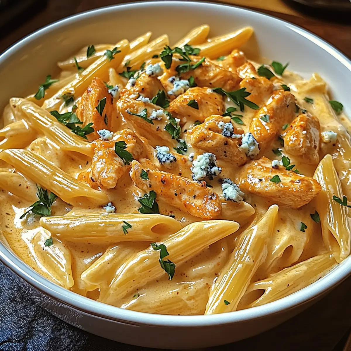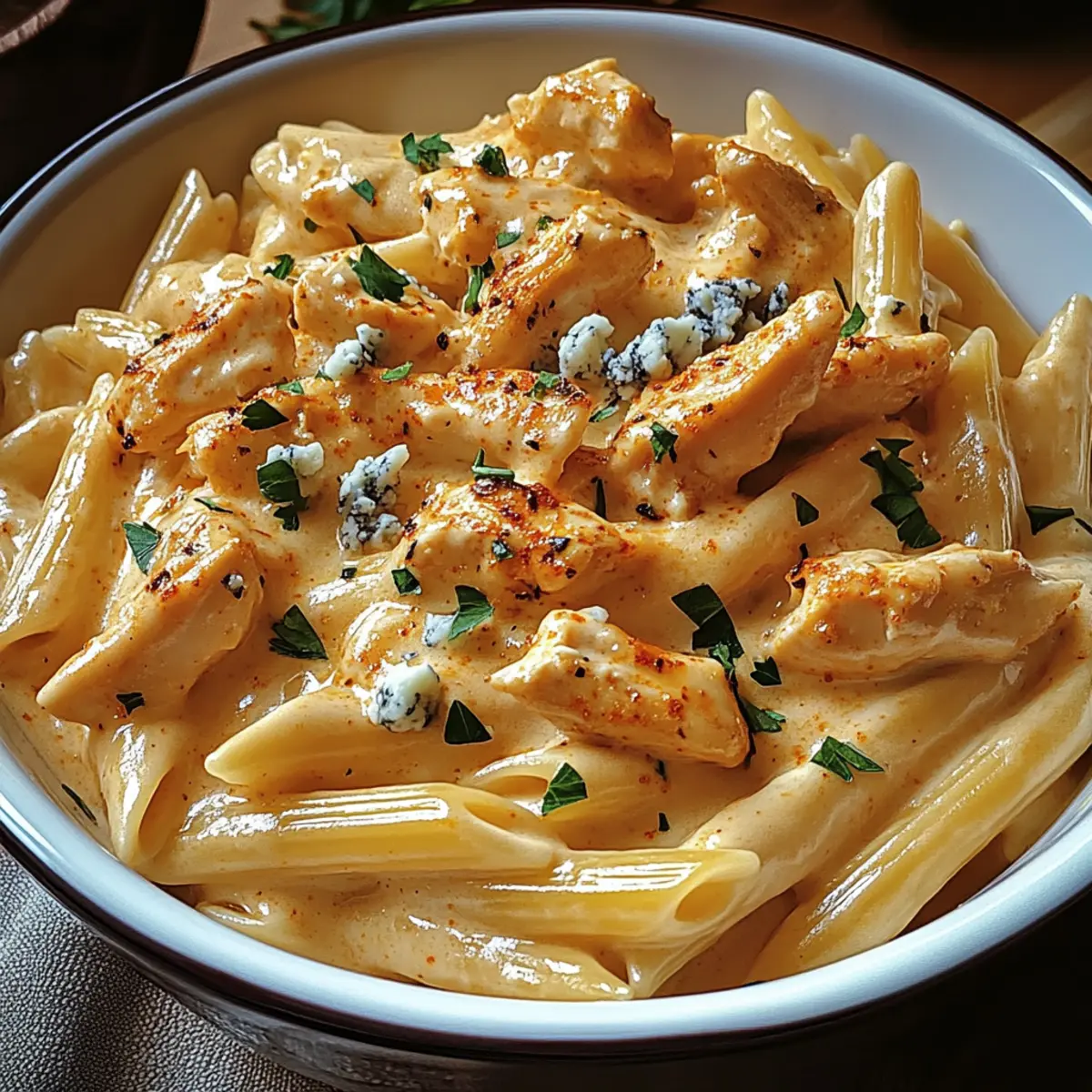 Klingt nach einer aufregenden Woche, nicht wahr? Am Ende des Tages sehne ich mich oft nach einer schnellen, aber zugleich köstlichen Mahlzeit. Genau hier kommt mein Buffalo-Hühnchen-Alfredo-Penne ins Spiel – eine unschlagbare Kombination aus cremiger Textur und würzigem Geschmack, die in nur 30 Minuten auf den Tisch zaubert. Dieses Rezept ist nicht nur einfach zuzubereiten, sondern auch unglaublich vielseitig: Du kannst die Schärfe ganz nach deinem Geschmack anpassen! Perfekt, um den Hunger nach einem langen Arbeitstag zu stillen oder einfach einen geselligen Abend mit Freunden zu genießen. Also, welche überraschenden Variationen wirst du diesem Gericht hinzufügen? Warum ist Buffalo-Hühnchen-Alfredo-Penne so beliebt? Schnelligkeit und Einfachheit: Dieses Rezept ist perfekt für hektische Abende, da es nur 30 Minuten in Anspruch nimmt. Kreative Anpassungsmöglichkeiten: Du kannst die Schärfe und die Zutaten ganz nach deinem Geschmack anpassen, sei es mit BBQ-Sauce für eine mildere Note oder durch die Wahl anderer Pastasorten. Köstliche, cremige Textur: Die Kombination aus schwerer Sahne und Parmesan sorgt für einen unwiderstehlichen cremigen Genuss, der jede Mahlzeit aufwertet. Familienfreundlich: Jeder wird es lieben! Ob Kinder oder Erwachsene, die Geschmackskombination spricht alle an. Perfekt für jede Gelegenheit: Egal, ob unter der Woche oder beim geselligen Beisammensein, dieser Gericht bringt immer Freude auf den Tisch. Einfache Vorbereitung: Mit Tipps wie der Verwendung von vorgekochtem Hähnchen kannst du Zeit sparen und dennoch ein köstliches Gericht zaubern. Buffalo-Hühnchen-Alfredo-Penne-Zutaten • Entdecke die besten Zutaten für dein köstliches Gericht! Für die Pasta Penne Pasta – Ideal für die Struktur des Gerichts; du kannst jede kurze Pasta verwenden. Für das Hühnchen Hähnchenbrustfilets ohne Haut – Die proteinreiche Basis; in mundgerechte Stücke schneiden für gleichmäßiges Garen. Olivenöl – Zum Anbraten des Hühnchens, gibt zusätzliches Aroma; kann durch Butter oder andere Öle ersetzt werden. Salz & Pfeffer – Grundlegende Gewürze zur Geschmacksverstärkung. Knoblauchpulver – Für eine würzige Tiefe. Paprika – Fügt eine milde Rauchnote hinzu; ersetze durch Cayennepfeffer für mehr Schärfe. Für die Sauce Butter – Basis der Alfredo-Sauce, sorgt für reichhaltigen Geschmack. Frischer Knoblauch – Verleiht der Sauce ein aromatisches Flair. Schwere Sahne – Für die cremige Konsistenz der Alfredo-Sauce; nutze Halbfett-Sahne für eine leichtere Variante, erfordert jedoch eine Verdickung. Parmesan Käse – Sorgt für den charakteristischen Käsegeschmack; frisch gerieben ist am besten für die Textur. Für den würzigen Kick Buffalo Sauce – Der Hauptbestandteil für die pikante Note; BBQ-Sauce kann für einen milden Geschmack verwendet werden. Rote Pfefferflocken – Optional, für extra Schärfe. Für die Garnitur Blauschimmelkäse oder Ranch-Dressing – Verleiht zusätzliche Geschmacksnuancen. Gehackte Petersilie oder Frühlingszwiebeln – Für Frische und Farbe beim Anrichten. Mit diesen Zutaten bist du bereit, das köstliche Buffalo-Hühnchen-Alfredo-Penne zuzubereiten und deine Gäste zu beeindrucken! Schritt-für-Schritt-Anleitung für Buffalo-Hühnchen-Alfredo-Penne Step 1: Pasta kochen Bringe in einem großen Topf ausreichend gesalzenes Wasser zum Kochen. Füge die Penne hinzu und koche sie gemäß den Anweisungen auf der Packung, bis sie al dente sind, etwa 10 Minuten. Gieße die Pasta in ein Sieb ab, aber bewahre eine Tasse des Nudelwassers auf, um die Konsistenz der Sauce später zu justieren. Step 2: Hühnchen zubereiten Erhitze in einer großen Pfanne bei mittlerer Hitze 2 Esslöffel Olivenöl. Gib die in mundgerechte Stücke geschnittenen Hähnchenbrustfilets hinein, würze sie mit Salz, Pfeffer, Knoblauchpulver und Paprika. Brate das Hühnchen, bis es goldbraun und durchgegart ist, etwa 5-7 Minuten. Vermische es dann mit der Buffalo-Sauce und lasse es noch 2 Minuten köcheln, bis die Sauce leicht reduziert ist. Step 3: Alfredo-Sauce zubereiten In derselben Pfanne, in der das Hühnchen zubereitet wurde, schmelze bei niedriger Hitze 2 Esslöffel Butter. Füge die frisch gehackten Knoblauchzehen hinzu und brate sie für 1-2 Minuten, bis sie duften. Gieße dann die schwere Sahne hinein und lasse sie bei schwacher Hitze 3-4 Minuten köcheln. Rühre schließlich den frisch geriebenen Parmesan ein, bis er geschmolzen und die Sauce cremig ist. Step 4: Alles kombinieren Gib die abgetropfte Penne in die Alfredo-Sauce, rühre gut um und füge nach Bedarf etwas vom aufbewahrten Nudelwasser hinzu, um die Sauce auf die gewünschte Konsistenz zu bringen. Füge schließlich das gebratene Buffalo-Hühnchen hinzu und vermische alles sanft miteinander, sodass die Pasta gleichmäßig bedeckt ist. Step 5: Garnieren und servieren Verteile das Buffalo-Hühnchen-Alfredo-Penne gleichmäßig auf Tellern. Garniere jedes Gericht nach Belieben mit Blauschimmelkäse oder Ranch-Dressing sowie frischer Petersilie oder gehackten Frühlingszwiebeln. Träufle bei Wunsch etwas zusätzliche Buffalo-Sauce darüber, um den Geschmack zu intensivieren. Was passt zu Buffalo-Hühnchen-Alfredo-Penne? Lass uns unser Menü für einen unvergesslichen Abend zusammenstellen! Diese köstliche Kombination aus cremigem Pasta-Gericht fordert nach Beilagen, die den Geschmack unterstreichen und das Essen abrunden. Frischer Grüner Salat: Eine bunte Mischung aus knackigem Gemüse bringt einen erfrischenden Kontrast zu den würzigen Aromen des Gerichts und sorgt für einen gesunden Ausgleich. Knuspriges Knoblauchbrot: Dieses Brot passt perfekt zu dem cremigen Gericht, ideal, um die restliche Sauce aufzutunken und als feine Beilage für ein vollwertiges Geschmackserlebnis. Gedämpftes Gemüse: Kombination aus Brokkoli, Karotten und Erbsen bringt nicht nur Farbe, sondern auch eine gesunde Komponente, die das Essen leichter macht. Süß-säuerlicher Coleslaw: Dieser s