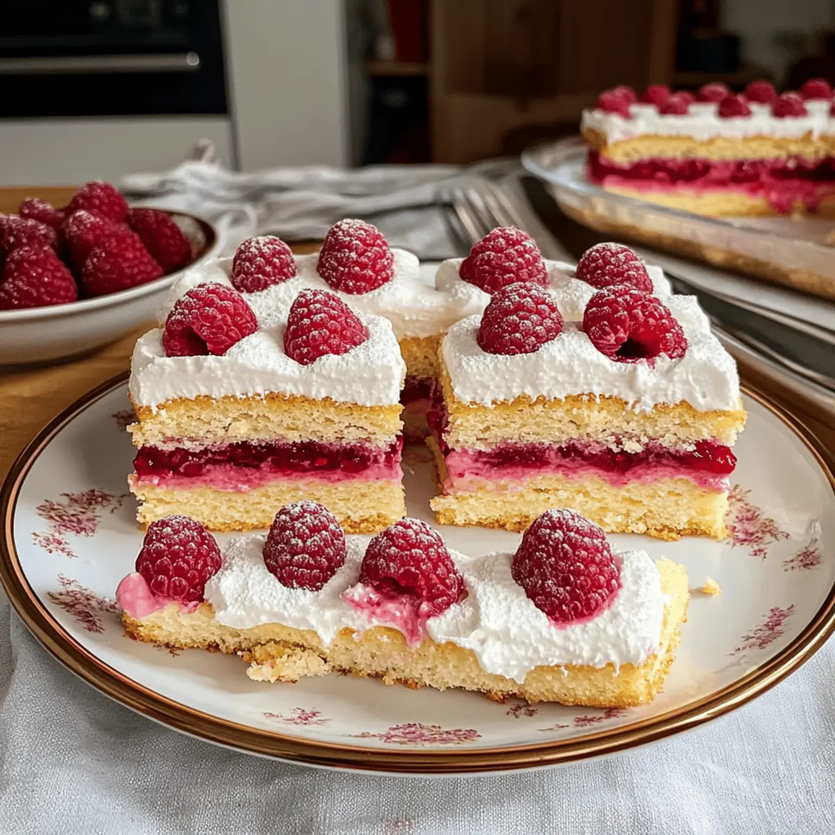 Die Vorstellung eines Kuchens, der schnell zubereitet ist und zugleich die Gäste in Staunen versetzt, ist einfach verlockend. Mein Butterkekskuchen mit Himbeeren und Pudding ist genau das – ein einfaches, aber faszinierendes Dessert, das perfekt für jeden Anlass ist. Mit dem zarten Geschmack von Butterkeksen, der fruchtigen frischen Note von Himbeeren und der cremigen Puddingfüllung ist dieser Kuchen nicht nur ein Gaumenschmaus, sondern auch ein echter Blickfang auf dem Tisch. Das Beste daran? Er ist nicht nur vegetarisch, sondern auch in kürzester Zeit zubereitet, sodass ihr mehr Zeit für eure Lieben habt. Wer kann da widerstehen? Lasst uns gemeinsam in die Welt dieses köstlichen Desserts eintauchen! Warum wirst du diesen Kuchen lieben? Einfachheit: Die Zubereitung des Butterkekskuchens ist so unkompliziert, dass selbst ungeübte Köche im Handumdrehen ein Meisterwerk schaffen können. Fruchtige Frische: Himbeeren sorgen für eine aufregende Geschmackskombination, die das Dessert zum absoluten Hit macht. Schnell und unkompliziert: Dieses Rezept ist perfekt, wenn es mal schnell gehen muss, aber dennoch etwas Eindrucksvolles gewünscht ist. Vielfältige Variationen: Experimentiere mit verschiedenen Beeren oder Geschmacksrichtungen wie Schokolade und zähle darauf, immer wieder neue Kreationen zu entdecken. Perfekte Präsentation: Ob für einen Geburtstag oder einen gemütlichen Abend mit Freunden – dieser Kuchen wird garantiert das Highlight deiner Veranstaltung. Egal ob es das erste Dessert am Abend oder der krönende Abschluss nach einem festlichen Dinner ist, der Butterkekskuchen mit Himbeeren und Pudding wird dich und deine Gäste begeistern! Butterkekskuchen mit Himbeeren und Pudding Zutaten Für den Kuchen • Weiche Butter – sorgt für Reichhaltigkeit und Feuchtigkeit im Kuchen; immer zimmerwarm verwenden. • Zucker – süßt den Kuchen; als Alternative eignen sich Zuckerersatzstoffe für eine reduzierte Süße. • Eier – geben Struktur und Feuchtigkeit; achte darauf, dass die Eier zimmerwarm sind, um das Volumen beim Schlagen zu maximieren. • Bio-Zitrone – bringt eine frische Note und balanciert die Süße; frischer Zitronensaft ist ideal. • Mehl – bildet die Basis des Kuchens; keine substitutionsvorschläge. • Backpulver – sorgt für das Aufgehen des Kuchens; achte darauf, dass es frisch ist. • Prise Salz – hebt den Geschmack; sollte nicht weggelassen werden. Für die Himbeer-Pudding-Schicht • TK Himbeeren – fügt eine fruchtige Schicht hinzu; kann durch andere Beeren wie frische Himbeeren ersetzt werden. • Vanille-Puddingpulver – sorgt für eine cremige Schicht; Instant-Puddings sind akzeptabel. • Zucker (für Pudding) – süßt die Pudding-Schicht; nach Geschmack anpassen. • Wasser – ist für das Auflösen des Puddingpulvers notwendig; kaltes Wasser bringt die besten Ergebnisse. Für die Schicht aus Sahne • Sahne – sorgt für eine luxuriöse und reichhaltige Schluss-Schicht; vor dem Schlagen gut kühlen. • Sahnesteif – erhält die Konsistenz der geschlagenen Sahne; kann durch Maisstärke ersetzt werden. • Vanillezucker – gibt einen zusätzlichen Vanillegeschmack; alternativ ist Vanilleextrakt geeignet. Für die Dekoration • Butterkekse – bilden die oberste Schicht des Kuchens; verwende beliebige einfache Butterkekse, gewürzte Varianten sorgen für Abwechslung. Dieser Butterkekskuchen mit Himbeeren und Pudding ist nicht nur ein Genuss für den Gaumen, sondern verspricht auch einen Augenschmaus auf jedem Tisch! Schritt-für-Schritt-Anleitung für Butterkekskuchen mit Himbeeren und Pudding Step 1: Ofen vorheizen Heize deinen Ofen auf 175 °C (Umluft) vor. Diese Temperatur sorgt dafür, dass der Kuchen gleichmäßig gebacken wird. Während der Ofen vorheizt, kannst du deine Zutaten abmessen und bereitstellen, sodass du einen reibungslosen Ablauf beim Mixen hast. Step 2: Butter und Zucker mischen In einer Schüssel die weiche Butter mit dem Zucker cremig rühren, bis die Masse hell und fluffig ist. Füge die Eier nacheinander hinzu und rühre jedes Ei gut ein, bevor das nächste hinzukommt. Mische schließlich den Zitronensaft sowie die abgeriebene Zitronenschale unter, um eine frische Note zu erzeugen. Step 3: Trockene Zutaten hinzufügen In einer separaten Schüssel Mehl, Backpulver und Salz gut vermischen. Dann die trockenen Zutaten langsam nach und nach in die cremige Mischung falten, bis alles gut verbunden und kein Mehl mehr sichtbar ist. Der Teig sollte eine gleichmäßige Konsistenz haben und leicht glänzen. Step 4: Teig backen Lege ein Blech (32×40 cm) mit Backpapier aus und verteile den Teig gleichmäßig darauf. Schiebe das Blech in den vorgeheizten Ofen und backe den Kuchen für 15-20 Minuten. Der Kuchen ist fertig, wenn er goldbraun ist und ein Zahnstocher in der Mitte sauber herauskommt. Lass ihn danach vollständig auskühlen. Step 5: Himbeer-Pudding zubereiten In einem Topf das Puddingpulver mit Zucker und kaltem Wasser vermischen. Unter ständigem Rühren erhitzen, bis die Mischung eindickt. Sobald der Pudding dick ist, schnell die gefrorenen Himbeeren unterheben, damit sie nicht zu schnell kühlen. Gieße die Himbeermischung über den erkalteten Kuchen und lasse sie fest werden. Step 6: Sahne schlagen Schlage die gut gekühlte Sahne mit dem Sahnesteif und Vanillezucker auf, bis sie feste Spitzen bildet. Die geschlagene Sahne sollte cremig und stabil sein, ideal um die Himbeer-Pudding-Schicht zu ergänzen. Verteile die Sahne gleichmäßig über der Himbeerfüllung, um eine schöne, glatte Oberfläche zu erhalten. Step 7: Butterkekse anbringen Lass die Sahneschicht kurz setzen, bevor du die Butterkekse darauf platzierst. Lege die Kekse leicht versetzt auf die Sahneschicht, sodass sie beim Schneiden des Kuchens einfacher zu handhaben sind. Diese Schicht sorgt für einen knusprigen Kontrast zur cremigen Füllung und macht deinen Butterkekskuchen mit Himbeeren und Pudding besonders lecker. Butterkekskuch