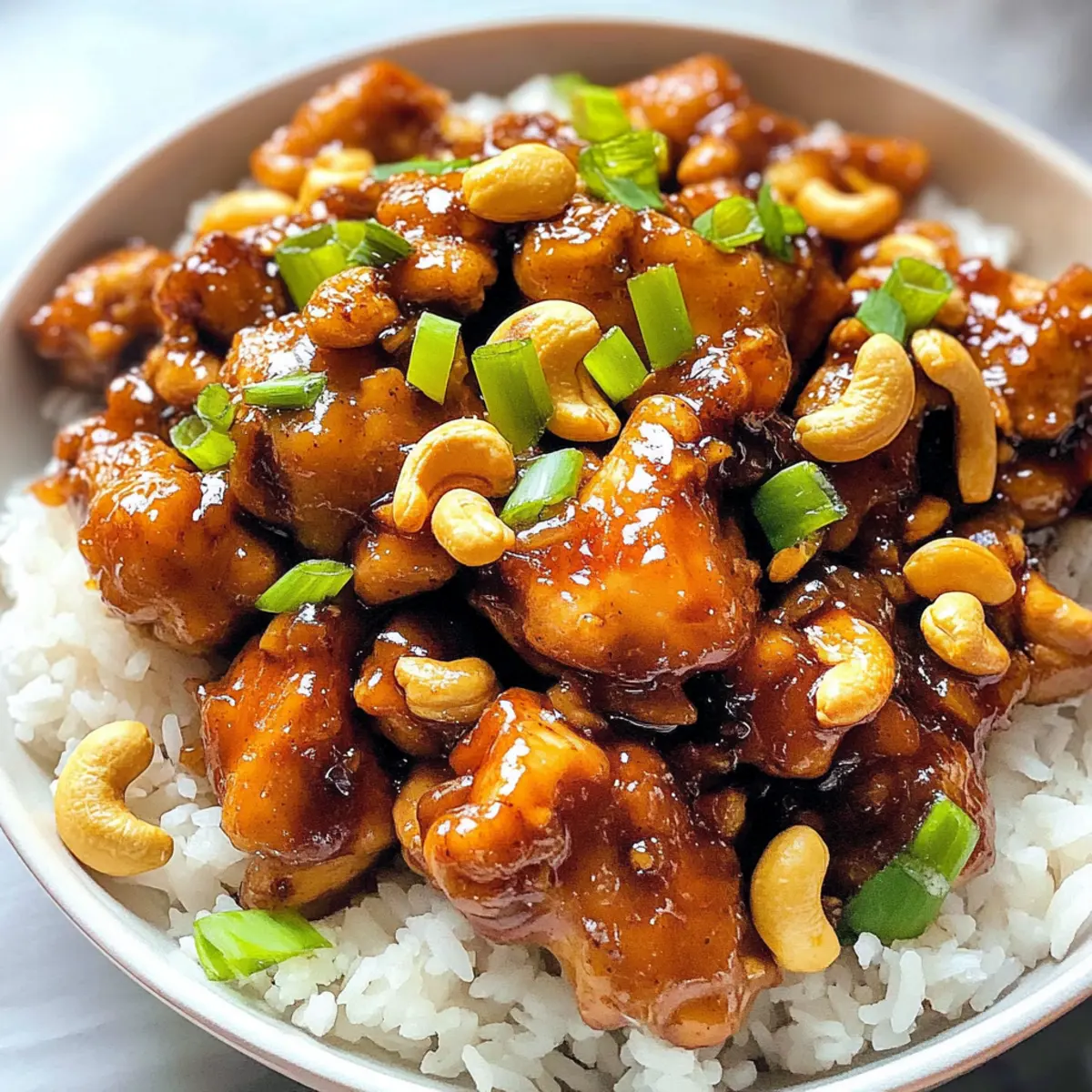 Vor einigen Wochen saß ich hungrig in meiner Küche und dachte, dass ich einfach keine Lust auf das x-te Sandwich hatte. Da kam mir die Idee, ein Gericht zuzubereiten, das all meine Sinne anspricht: Cashew-Hühnchen. Dieses einfache Rezept ist nicht nur in nur 20 Minuten zubereitet, sondern bietet auch den perfekten Ausgleich zwischen knackigen Cashews und zartem Hühnerfleisch in einer süßen, klebrigen Soße. Ideal für eine schnelle, aber besonders leckere Mahlzeit unter der Woche, lässt es fast jede langweilige Takeout-Option alt aussehen. Ganz gleich, ob ihr es mit Weißreis serviert oder einfach pur genießt, es wird sicherlich ein Publikumsliebling! Seid ihr bereit, eure Familie mit diesem köstlichen Gericht zu überraschen? Warum ist Cashew-Hühnchen so beliebt? Schnelligkeit: In nur 20 Minuten zubereitet, ideal für stressige Abende. Einfachheit: Perfekt für Kochanfänger; wenige Zutaten, große Wirkung. Köstlicher Geschmack: Die Mischung aus süßer Hoisinsauce und herzhaftem Hühnerfleisch sorgt für ein Geschmackserlebnis! Vielseitigkeit: Ob mit Gemüse oder Reis, passt zu jedem Geschmack. Gesundheit: Eine gesunde Alternative zur üblicherweise kalorienreichen Takeout-Option, die eurem Gaumen Freude bereitet. Entdeckt auch wie ihr gemüsehaltige Variationen ausprobieren könnt, um noch mehr Nährstoffe in die Mahlzeit zu bringen. Cashew-Hühnchen Zutaten Für das Hühnchen Hühnchenbrust oder -schenkel – Saftige Hauptzutat; wählt die Brust für eine magere Option. Maisstärke – Sorgt für eine knusprige Textur; unverzichtbar für das perfekte Ergebnis. Für die Sauce Hühnerbrühe – Die geschmackvolle Basis; gibt der Sauce Tiefe. Sojasauce – Fügt Umami und Salzigkeit hinzu; unverzichtbar für das Cashew-Hühnchen. Honig – Süße Komponente, die die salzige Note der Sojasauce ausgleicht. Hoisinsauce – Schmeckt süß und herzhaft; sorgt für den authentischen Geschmack. Reiswein-Essig – Bringt eine angenehme Säure; perfekt zum Ausbalancieren der Süße. Maisstärke (für die Sauce) – Verdickt die Sauce und gibt ihr eine knackige Konsistenz. Für die aromatischen Zutaten Knoblauch – Aromatische Basis für zusätzlichen Geschmack. Ingwer – Frisch und würzig; fein gehackt für die beste Verteilung. Frühlingszwiebeln – Frische Garnitur, die für Farbe und milden Zwiebelschmack sorgt. Für das Braten Öl – Hoher Rauchpunkt, ideal zum Frittieren; zum Beispiel Raps- oder neutrales Olivenöl. Cashews – Knackige Ergänzung; ungesalzene, geröstete Nüsse intensivieren den Geschmack. Dieses Cashew-Hühnchen verbindet alle Zutaten zu einem leckeren Gericht, das ihr schnell zubereiten könnt und bei euren Liebsten garantiert gut ankommt! Schritt-für-Schritt-Anleitung für Cashew-Hühnchen Step 1: Sauce vorbereiten In einer kleinen Schüssel Hühnerbrühe, Sojasauce, Honig, Hoisinsauce, Maisstärke und Reiswein-Essig gut vermengen. Rührt, bis die Maisstärke sich vollständig aufgelöst hat und die Mischung eine homogene Konsistenz erreicht. Stellt die Sauce beiseite und sorgt dafür, dass sie bereit ist, wenn die anderen Zutaten vorbereitet sind. Step 2: Hühnchen panieren Nehmt die Hühnchenbrust oder -schenkel und schneidet sie in mundgerechte Stücke. Wendet die Hühnchenstücke in einer Schüssel mit Maisstärke, bis sie gleichmäßig bedeckt sind. Diese Panade sorgt für eine knusprige Textur beim Frittieren. Lasst überschüssige Maisstärke abtropfen, bevor ihr mit dem Braten fortfahrt. Step 3: Hühnchen braten Erhitzt das Öl in einer Pfanne oder einem Wok auf 175°C (350°F). Gebt die panieren Hühnchenstücke vorsichtig in das heiße Öl und bratet sie 2-3 Minuten lang, bis sie goldbraun und knusprig sind. Alternativ könnt ihr die Stücke auch in einer unbeschichteten Pfanne bei mittelhoher Hitze 2-3 Minuten pro Seite braten. Nehmt das gebratene Hühnchen auf einen mit Küchenpapier ausgelegten Teller, um überschüssiges Öl aufzusaugen. Step 4: Aromaten anbraten In derselben Pfanne, in der das Hühnchen gebraten wurde, gebt ihr bei Bedarf etwas mehr Öl hinzu und erhitzt es erneut. Fügt den gehackten Knoblauch, Ingwer und die Cashews hinzu und bratet sie etwa 1 Minute lang an. Achtet darauf, dass der Knoblauch nicht verbrennt; er sollte aromatisch und leicht goldbraun sein. Step 5: Sauce eindicken Gegossene Sauce aus Schritt 1 in die Pfanne mit den Aromaten gießen. Erhitzt alles und lasst die Sauce sprudelnd werden. Kocht sie unter ständigem Rühren für etwa 2-3 Minuten, bis sie stark eindickt und eine glänzende, klebrige Konsistenz erreicht. Dies wird das Cashew-Hühnchen perfekt umhüllen. Step 6: Kombinieren Sobald die Sauce die richtige Konsistenz hat, gebt ihr das gebratene Hühnchen zurück in die Pfanne. Wendet die Hühnchenstücke gründlich in der Sauce, bis sie gleichmäßig überzogen sind. Kurz bevor ihr das Gericht serviert, fügt die geschnittenen Frühlingszwiebeln hinzu und lasst sie für 30 Sekunden in der Pfanne ziehen, um ihren Geschmack zu entfalten. Vorbereitung für stressfreie Abende mit Cashew-Hühnchen Diese Cashew-Hühnchen können perfekt für die stressigen Abende im Voraus vorbereitet werden! Ihr könnt die Sauce bis zu 24 Stunden im Voraus zubereiten, indem ihr Hühnerbrühe, Sojasauce, Honig, Hoisinsauce, Maisstärke und Reiswein-Essig gut vermischt und im Kühlschrank aufbewahrt. Außerdem könnt ihr das Hühnchen bis zu 3 Tage zuvor panieren und ebenfalls im Kühlschrank lagern. Um die Qualität zu erhalten, empfiehlt es sich, das Hähnchen erst kurz vor dem Braten aus der Kühlung zu nehmen, damit es Zimmertemperatur erreichen kann. Zum Servieren benötigt ihr nur noch ein wenig Zeit, um das Hühnchen zu frittieren, die Aromaten anzubraten und die Sauce zu vermengen – ein köstliches Ergebnis ohne großen Aufwand! Variationen des Cashew-Hühnchens Gestaltet euer Cashew-Hühnchen nach Lust und Laune für noch mehr Geschmack und Individualität. Hühnchenbrust: Für ein mageres Gericht einfach Hühnc