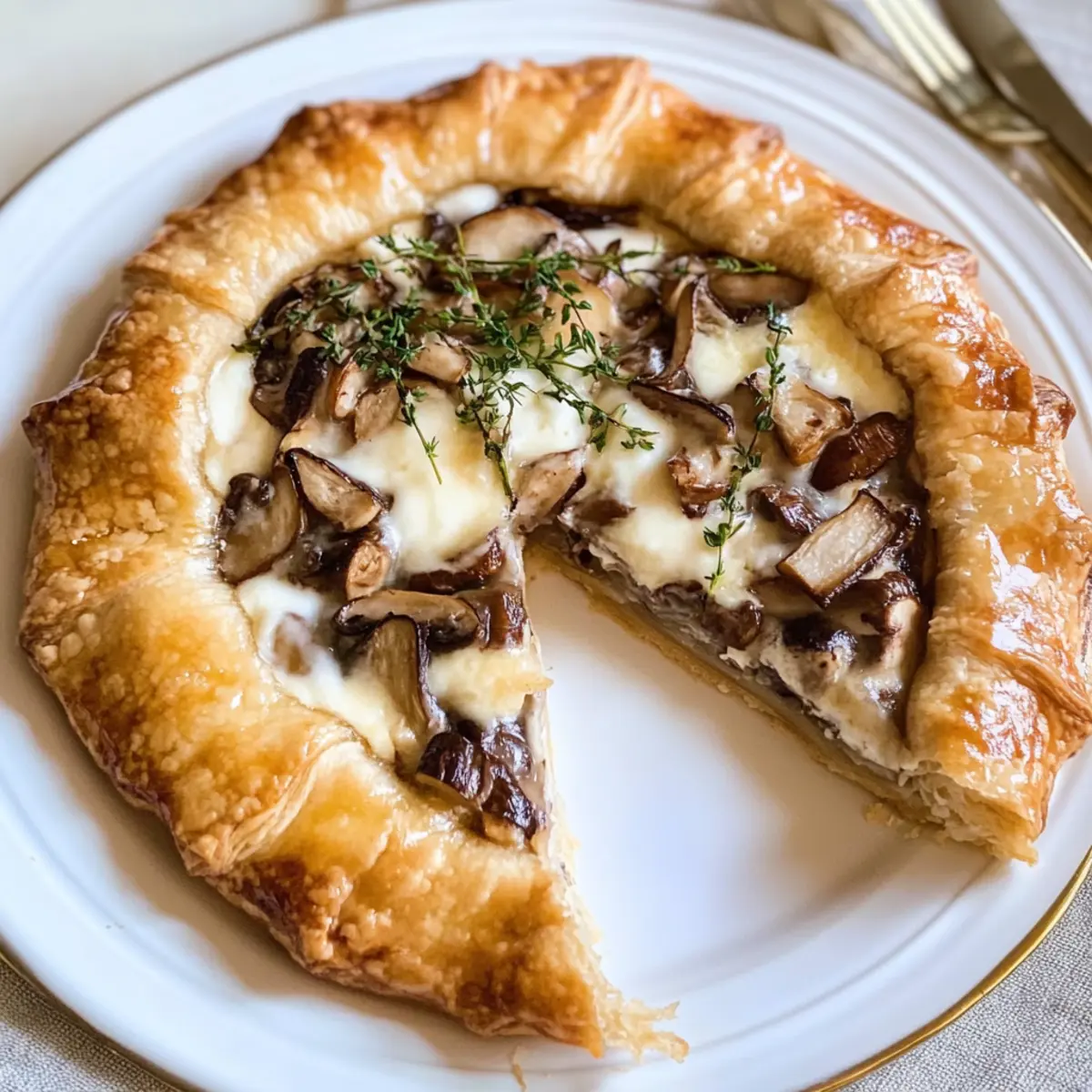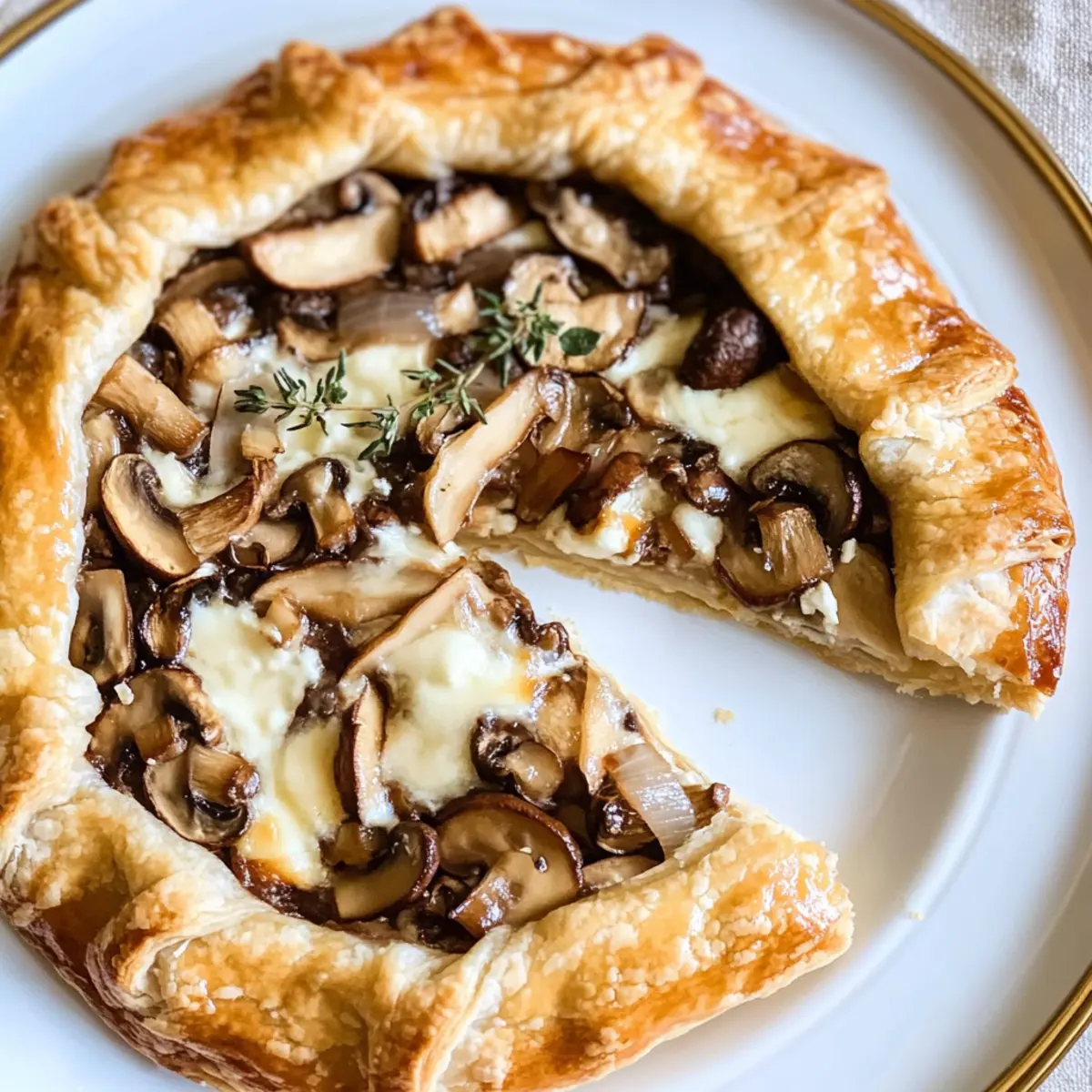 Kaum etwas ist so verführerisch wie der Duft frisch gebackener Teiggerichte, und meine Champignon-Galette ist da keine Ausnahme. Diese rustikale Variante eines französischen Klassikers bringt nicht nur Abwechslung auf den Tisch, sondern verzaubert auch durch ihre unkomplizierte Zubereitung. Mit einer knackigen, buttrigen Kruste, gefüllt mit zarten Champignons, cremiger Sahne und aromatischem Thymian, ist dieses Rezept sowohl herzhaft als auch vielseitig einsetzbar. Egal, ob als leichtes Abendessen oder als Highlight bei der nächsten Familienfeier – diese Galette wird garantiert zum Gesprächsthema! Ich kann es kaum erwarten, euch zu zeigen, wie einfach man in der eigenen Küche rustikale Köstlichkeiten zaubern kann. Seid ihr bereit für ein kulinarisches Abenteuer? Warum ist die Champignon-Galette besonders? Unkomplizierte Zubereitung: Die einfache Anleitung macht es jedem leicht, diese köstliche Galette zuzubereiten. Vielseitige Füllung: Ob als Hauptgericht oder als Snack – sie passt zu jeder Gelegenheit. Warmes Aroma: Der Duft von frischen, sautierten Champignons und Zwiebeln wird eure Küche erfüllen und jeden an den Tisch locken. Anpassungsfähig: Tauscht die Champignons gegen euer Lieblingsgemüse aus oder fügt etwas Käse hinzu! Rustikale Eleganz: Die rustikale Optik dieser Galette beeindruckt und sieht bei jeder Veranstaltung toll aus. Wenn ihr Lust auf mehr leckere Rezepte habt, schaut euch auch mein Cremige Pilz-Risotto Rezept an! Champignon-Galette Zutaten Für den Teig • Mehl – 250 g, sorgt für die Basisstruktur der Galette. • Kalte Butter – 125 g, macht den Teig schön buttrig und zart. • Salz – 1 Prise, hebt die Aromen hervor. • Kaltes Wasser – 80 ml, hilft, den Teig geschmeidig zu machen. Für die Füllung • Champignons – 400 g, beliebter Hauptbestandteil mit erdigem Geschmack. • Zwiebel – 1 Stück, bringt süße und Tiefe ins Gericht. • Knoblauchzehen – 2 Stück, für würzige Note und Aroma. • Sahne – 200 g, sorgt für Cremigkeit in der Füllung. • Ei – 1 Stück, dient als Bindemittel und für goldenes Backen. • Thymian – nach Geschmack, aromatisches Kraut, das die Champignons perfekt ergänzt. • Pfeffer – nach Geschmack, für die nötige Würze. • Salz – nach Geschmack, um die Aromen zu intensivieren. Diese Champignon-Galette Zutaten bieten die perfekte Grundlage für ein herzhaftes, rustikales Gericht, das sich in vielerlei Variationen zubereiten lässt! Step-by-Step Instructions für Champignon-Galette Rezept Step 1: Teig zubereiten Mehl, kalte Butter und eine Prise Salz in eine Schüssel geben und mit den Händen oder einem Rührgerät zu einem krümeligen Teig verarbeiten. Dies dauert etwa 3-5 Minuten. Anschließend kaltes Wasser hinzufügen und alles zu einem glatten, geschmeidigen Teig verkneten. Den Teig in Frischhaltefolie wickeln und für mindestens 30 Minuten im Kühlschrank ruhen lassen, damit er fest wird. Step 2: Füllung vorbereiten Während der Teig kühlstellt, die Champignons, Zwiebel und Knoblauch klein schneiden. In einer großen Pfanne etwas Öl erhitzen und die Zwiebel mit dem Knoblauch bei mittlerer Hitze anbraten, bis sie goldbraun sind. Dies dauert etwa 5-7 Minuten. Dann die geschnittenen Champignons hinzufügen und weiter rösten, bis die gesamte Flüssigkeit verdampft ist und die Champignons zart sind, etwa 5-10 Minuten. Step 3: Sahnemischung anrühren In einer separaten Schüssel die Sahne, das Ei, Thymian, Pfeffer und Salz gut vermengen. Dies sorgt für die cremige Füllung der Champignon-Galette. Schlage alles gründlich durch, bis eine homogene Mischung entsteht, und halte sie bereit, um sie später über die Champignon-Zwiebel-Mischung zu gießen. Step 4: Teig ausrollen Den gekühlten Teig auf einer leicht bemehlten Arbeitsfläche ausrollen, bis er einen Durchmesser von etwa 30 cm hat. Achte darauf, dass der Teig gleichmäßig dick ist, und lege ihn anschließend auf ein mit Backpapier belegtes Backblech. Der Rand sollte etwa 5 cm frei bleiben, um die Füllung später einzuschlagen. Step 5: Füllung auftragen Die zuvor vorbereitete Champignon-Zwiebel-Mischung gleichmäßig in der Mitte des ausgerollten Teigs verteilen. Die Sahnemischung darauf gießen und so verteilen, dass sie die Champignons gut abdeckt. Dabei darauf achten, dass die Füllung nicht den Rand des Teigs berührt, damit sich die Galette gut einklappen lässt. Step 6: Teigrand einklappen Den Rand des Teigs vorsichtig über die Füllung klappen und dabei eine rustikale Form schaffen. Dies gibt der Champignon-Galette ein schönes Aussehen und hält die Füllung im Inneren. Anschließend den eingeklappten Teigrand leicht andrücken, um ihn zu fixieren. Step 7: Backen Den Ofen auf 200 Grad Celsius vorheizen. Die Galette im vorgeheizten Ofen für etwa 30 Minuten backen, bis der Teig goldbraun und knusprig ist. Achte darauf, dass die Oberfläche der Galette schön gebräunt ist, was ein Zeichen dafür ist, dass sie fertig ist. Step 8: Servieren Die Champignon-Galette aus dem Ofen nehmen und etwa 10 Minuten ruhen lassen. Dies hilft, die Füllung zu setzen. Nach der Ruhzeit in Stücke schneiden und warm servieren. Diese rustikale Galette ist perfekt als leichtes Abendessen oder als köstlicher Snack für eure Gäste. Aufbewahrungstipps für Champignon-Galette Raumtemperatur: : Die Champignon-Galette sollte idealerweise frisch serviert werden. Bei Raumtemperatur bleibt sie bis zu 2 Stunden genießbar, bevor sie austrocknet. Kühlschrank: : Reste können in einem luftdichten Behälter bis zu 3 Tage im Kühlschrank aufbewahrt werden. Stellen Sie sicher, dass die Galette vorher gut abgekühlt ist, um die Feuchtigkeit zu erhalten. Gefrierschrank: : Die Champignon-Galette kann vor dem Backen eingefroren werden. Wickeln Sie sie gut in Frischhaltefolie und einfrieren für bis zu 2 Monate. Beim Backen dann die Backzeit um etwa 5-10 Minuten verlängern. Wiederaufwärmen: : Die Galette kann im vorgeheizten Ofen bei 180°C für 10-15 M