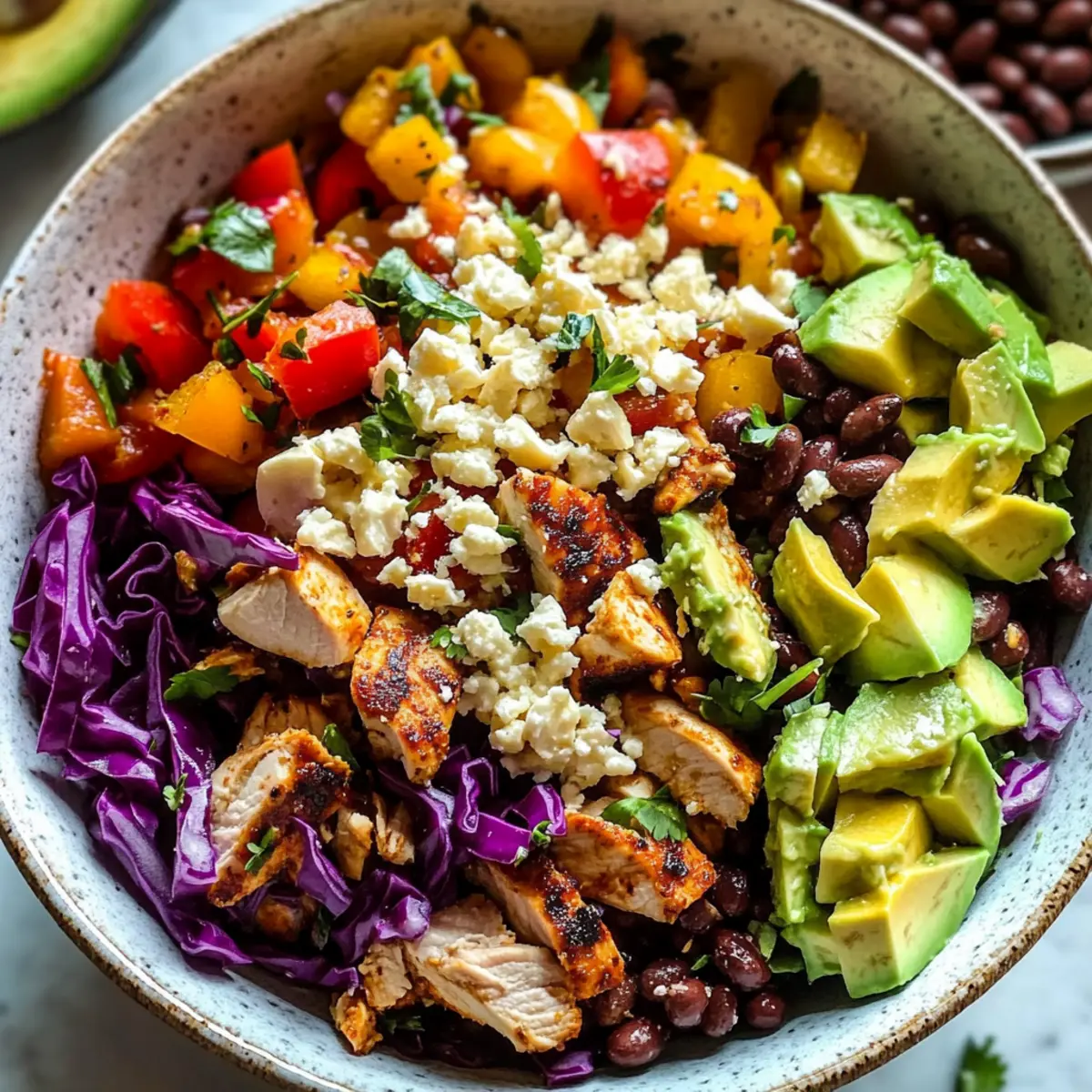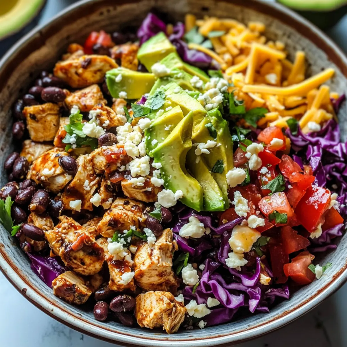 Eines Abends, während ich meiner Familie ein leckeres Abendessen zubereitete, kam mir die Idee zu einem Gericht, das nicht nur meine Geschmacksnerven kitzelt, sondern auch voller gesunder Zutaten steckt: der Chipotle Hähnchen gehackter Salat. Dieser Salat mit seiner bunten Mischung aus frischem Gemüse, zartem Hähnchen und einer pikanten Chipotle-Vinaigrette ist einfach ein Genuss. Er vereint nicht nur große Geschmackskomplexität, sondern ist auch perfekt für die Meal Prep geeignet — so kannst du ihn ganz bequem für die Woche vorbereiten und hast immer eine nahrhafte Mahlzeit parat. Und das Beste? Dadurch dass er glutenfrei und nussfrei ist, könnt ihr ihn sogar mit Freunden und Familie teilen, ohne euch Gedanken über Allergien zu machen. Bist du bereit, in die Welt dieser köstlichen Kombination einzutauchen? Hast du schon solche Aromen erlebt? Frische, bunte Zutaten: Dieser Chipotle Hähnchen gehackter Salat vereint knackiges Gemüse mit zartem Hähnchen zu einer wahren Geschmacksexplosion. Einfache Zubereitung: Mit nur wenigen Schritten hast du in kürzester Zeit eine nahrhafte Mahlzeit gezaubert, ideal für hektische Wochentage. Vielfältige Variationen: Experimentiere mit verschiedenen Proteinen oder Gemüse für ganz neue Geschmackserlebnisse. Perfekt für Meal Prep: Bereite ihn im Voraus vor, damit du immer eine gesunde Option zur Hand hast. Crowd-Pleaser: Durch die ausgewogene Kombination aus Geschmack und Nährstoffen ist er der Hit auf jeder Grillparty oder beim Familienessen! Chipotle Hähnchen gehackter Salat Zutaten Für den Salat: Hähnchen (1 lb. ohne Knochen, hautlos) – Hauptproteinquelle, trägt zur Herzhaftigkeit des Salates bei. Hähnchenschenkel bieten mehr Geschmack und Feuchtigkeit. Extra-Virgin Olivenöl (2 EL) – Fügt gesunde Fette hinzu und hilft beim Würzen des Hähnchens. Kann durch Avocadoöl ersetzt werden. Taco-Gewürz (2 EL, bevorzugt von Siete) – Verleiht dem Hähnchen einen kräftigen Geschmack. Wähle dein liebstes Taco-Gewürz aus. Rote Kohl (4 bis 5 Tassen, gehackt oder geraspelt) – Basiszutat, die Knackigkeit und Farbe liefert. Grüner Kohl oder gemischte Blattsalate können ebenfalls verwendet werden. Schwarze Bohnen (1 Dose, abgetropft und gewaschen) – Fügt Eiweiß und Ballaststoffe hinzu. Kann durch Kichererbsen für eine andere Textur ersetzt werden. Feuergerösteter Mais (1 Tasse, aufgetaut) – Sorgt für Süße und zusätzlichen Texturkontrast. Frischer oder aus der Dose sind ebenfalls Optionen. Rote Paprika (1, gewürfelt) – Bringt Süße und Knackigkeit in den Salat. Gelbe oder orange Paprika sind tolle Alternativen. Avocado (1 mittelgroße, gewürfelt) – Bietet Cremigkeit und Reichtum. Kann weggelassen werden, wenn du eine fettärmere Variante möchtest. Cotija oder Queso Fresco (1/3 Tasse, zerbröckelt) – Fügt salzige, cremige Noten hinzu. Feta-Käse kann als Alternative verwendet werden. Frischer Koriander (1/2 Tasse, gehackt) – Verbessert den Geschmack mit frischen Aromen. Weglassen, wenn du keinen Koriander magst. Tortilla-Chips (optional) – Für knusprigen Biss obenauf. Wähle deine bevorzugte Tortilla-Chip-Sorte oder backe eigene für eine gesündere Option. Für das Vinaigrette: Avocadoöl (1/2 Tasse) – Basis für die Vinaigrette, sorgt für Reichhaltigkeit. Rotweinessig (1/4 Tasse) – Fügt Säure hinzu, um die Aromen auszubalancieren. Honig (2 EL) – Süßt das Dressing. Chipotle-Chilischote (1) – Verleiht dem Dressing Würze und Tiefe. Je nach Geschmack die Menge anpassen. Knoblauchzehe (1) – Sorgt für einen kräftigen Geschmack. Getrockneter Oregano (1/2 TL) – Verbessert die Geschmacksvielfalt. Gemahlener Kreuzkümmel (1/2 TL) – Fügt dem Dressing Wärme hinzu. Koscheres Salz (1/2 TL) – Notwendig zur Geschmacksanhebung. Schwarzer Pfeffer (1/4 TL) – Zum Würzen. Dieser köstliche Chipotle Hähnchen gehackter Salat ist nicht nur nahrhaft, sondern bietet auch eine wunderbare Grundlage für abwechslungsreiche Mahlzeiten! Schritt-für-Schritt-Anleitung für Chipotle Hähnchen gehackter Salat Step 1: Hähnchen würzen Zuerst das Hähnchen in einer großen Schüssel mit 2 Esslöffeln Olivenöl und 2 Esslöffeln Taco-Gewürz gut vermengen. Stelle sicher, dass das Hähnchen gleichmäßig mit der Gewürzmischung bedeckt ist, dabei sollten sich die Aromen gut entfalten. Lass das gewürzte Hähnchen kurz stehen, während du die Pfanne vorbereitest. Step 2: Hähnchen garen Erhitze eine beschichtete Pfanne bei mittlerer Hitze und lege das gewürzte Hähnchen hinein. Lass es für fünf Minuten ungestört braten, bis die Unterseite goldbraun ist. Wende das Hähnchen und lasse es weitere 4 bis 5 Minuten kochen, bis die Säfte klar sind und das Fleisch gut durchgegart ist. Anschließend das Hähnchen aus der Pfanne nehmen und abkühlen lassen, bevor du es in mundgerechte Stücke schneidest. Step 3: Vinaigrette zubereiten Für die Chipotle-Vinaigrette alle Vinaigrette-Zutaten, einschließlich 1/2 Tasse Avocadoöl und 1/4 Tasse Rotweinessig, in einen Mixer geben. Füge den Chipotle-Pfeffer, die Knoblauchzehe, Oregano, Kreuzkümmel, Salz und Pfeffer hinzu. Mixe die Zutaten auf hoher Stufe für etwa 30 Sekunden, bis die Mischung eine cremige Konsistenz erreicht hat und gut vermischt ist. Step 4: Salat zusammenstellen In einer großen Schüssel die gehackte rote Kohl, die abgetropften schwarzen Bohnen, 1 Tasse gefrorenen und aufgetauten Mais sowie 1 gewürfelte rote Paprika vermengen. Füge die in Stücke geschnittenen Hähnchenstücke, gewürfelte Avocado, den zerbröckelten Cotija-Käse und den frisch gehackten Koriander hinzu. Mische alles vorsichtig, sodass die Zutaten gleichmäßig verteilt sind. Step 5: Dressing hinzufügen Gieße die vorbereitete Chipotle-Vinaigrette über die Salatzutaten und vermenge alles gründlich, sodass der Salat gut angezogen ist. Achte darauf, dass das Dressing alle Komponenten gleichmäßig umhüllt. Der Chipotle Hähnchen gehackter Salat sollte jetzt frisch und farbenfr