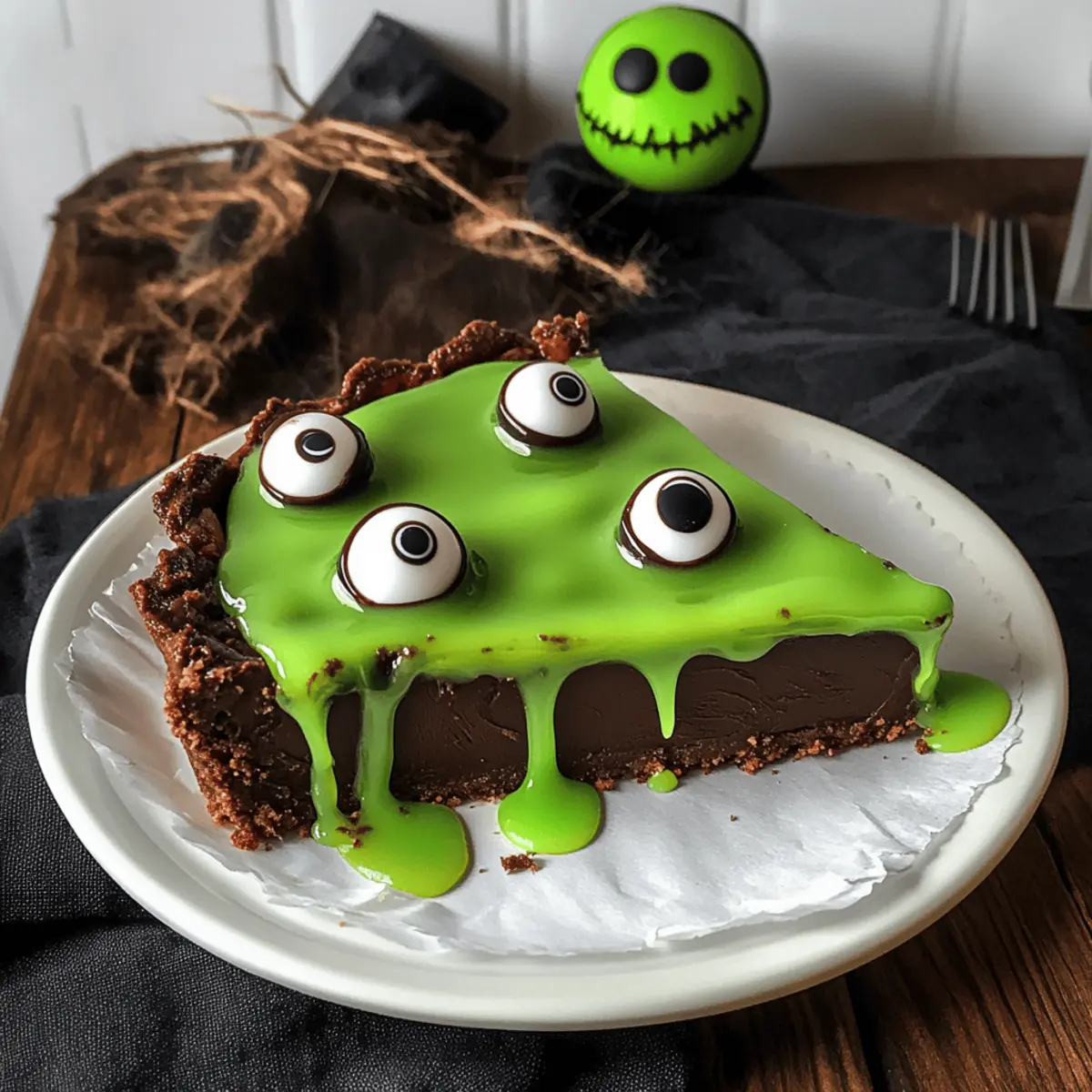 „Buuuh!“, ruft mein Neffe, während er sich die Gespenster-Maske über das Gesicht zieht. Halloween steht vor der Tür, und damit die perfekte Gelegenheit, um meine Familie mit etwas Einzigartigem zu überraschen: einer Cremigen Halloween-Schokoladentarte mit Schleimmonstern! Diese Tarte kombiniert eine knusprige Schokoladenbasis mit einer köstlich cremigen Füllung, die selbst die kritischsten kleinen Monster begeistern wird. Der Clou? Unter der gruseligen grünen „Schleim“-Glasur verstecken sich süße Schokokuss-Monster, die sowohl Kinder als auch Erwachsene ins Staunen versetzen. Und das Beste daran ist, dass diese schaurige Leckerei in nur 15 Minuten zubereitet ist – perfekt für die ungeduldigen kleinen Geister in der Küche! Habt ihr euch schon gefragt, wie man dieses herzhafte, schokoladige Festmahl kreiert? Lasst uns gemeinsam die Kellen schwingen! Warum lieben Sie diese Halloween-Tarte? Einzigartige Kombination: Die Cremige Halloween-Schokoladentarte mit Schleimmonstern bringt aufregende Aromen und kreative Dekoration zusammen. Schnell zubereitet: Mit nur 15 Minuten aktiver Kochzeit ist es der ideale Dessert-Kandidat für spontane Feiern. Spass für alle: Die grüne “Schleim”-Glasur und die versteckten Schokokuss-Monster sorgen für Staunen bei Klein und Groß. Vielseitig in Variationen: Ob mit Milchschokolade oder einer Schicht aus Nüssen – dieser Nachtisch lässt sich wunderbar anpassen. Köstliches Erlebnis: Genießen Sie die perfekte Verbindung von knusprigem Boden und heller Schokoladenfüllung, die Ihr Halloween-Essen bereichert. Sie möchten noch mehr schaurige Ideen? Probieren Sie auch unseren Butterkekskuchen mit Himbeeren für den perfekten süßen Abschluss oder feiern Sie die Saison mit Pfifferlingen mit Spinat. Cremige Halloween-Schokoladentarte Zutaten Für den Boden • Butter (weich, 125 g) – sorgt für eine reichhaltige und feuchte Kruste; kann durch Margarine ersetzt werden für eine milchfreie Option. • Zucker (125 g) – süßt und hilft bei der Karamellisierung der Kruste; kann auch durch braunen Zucker für einen intensiveren Geschmack ersetzt werden. • Salz (eine Prise) – verbessert das Geschmacksprofil. • Extra schwarzes Kakaopulver (3 EL) – verleiht der Kruste eine tiefdunkle Farbe und Geschmack; für einen ähnlichen Effekt kann niederländisches Kakaopulver verwendet werden. • Mehl (200 g) – bildet die Struktur des Bodens; glutenfreies Mehl kann für eine glutenfreie Option verwendet werden. • Backpulver (1 TL) – lässt den Boden leicht aufgehen, für eine luftigere Konsistenz. Für die Füllung • Dunkle Schokolade (300 g) – die Basis für den cremigen Füllungsgeschmack; kann durch halbsüße oder Milchschokolade für mehr Süße ersetzt werden. • Eier (6 mittelgroß) – sorgen für Reichhaltigkeit und binden die Füllung; können durch Leinsamen-Eier für eine vegane Alternative ersetzt werden. • Zucker (150 g, für die Füllung) – süßt die Füllung; nach Geschmack anpassen, insbesondere wenn dunkle Schokolade verwendet wird. • Salz (eine Prise, für die Füllung) – balanciert die Süße aus. • Mehl (75 g, für die Füllung) – verdickt die Füllung und stabilisiert sie beim Backen. • Mini-Dunkle Schokoladenküsse (10) – bietet eine überraschende Note im Inneren der Tarte; kann durch jede andere Schokoladen-Süßigkeit ersetzt werden. Für die Dekoration • Weiße Schokolade (200 g) – wird geschmolzen, um den „Schleim“-Effekt zu erzeugen. • Fettlösliche grüne Lebensmittelfarbe/Pulver – färbt die weiße Schokolade grün für den Schleim-Look; alternativ kann natürliche Spirulina-Pulver verwendet werden, auch wenn sie möglicherweise nicht so lebhaft grün wird. • Candy Eyes – sorgen für einen lustigen und gruseligen visuellen Effekt; verwenden Sie nach Belieben Schokoladen- oder essbare Dekorationen. Die Cremige Halloween-Schokoladentarte mit Schleimmonstern ist eine kreative und schokoladige Möglichkeit, Ihre Halloween-Feier zu bereichern! Step-by-Step Instructions für die Cremige Halloween-Schokoladentarte mit Schleimmonstern Step 1: Ofen vorheizen Heize den Ofen auf 200 °C vor, während du die Tarte vorbereitest. Diese Temperatur sorgt dafür, dass der Boden knusprig wird. Bereite eine 26 cm große Springform vor, indem du den Boden mit Backpapier auslegst, damit die Tarte später leicht herauszunehmen ist. Step 2: Teig zubereiten Vermische in einer großen Schüssel die weiche Butter, den Zucker, das Salz, das schwarze Kakaopulver, das Mehl und das Backpulver. Knete die Zutaten gründlich mit den Händen oder einem Handmixer, bis eine glatte, gleichmäßige Masse entsteht. Drücke den Teig gleichmäßig in die vorbereitete Springform und achte darauf, einen kleinen Rand zu formen. Step 3: Boden backen Backe den Teig im vorgeheizten Ofen für etwa 15 Minuten, bis er fest und leicht aufgegangen ist. Lass ihn danach aus dem Ofen nehmen und vollständig abkühlen. Reduziere währenddessen die Ofentemperatur auf 160 °C, um die Füllung gleichmäßig zu backen. Step 4: Füllung zubereiten Erhitze in einem kleinen Topf die Butter und füge die grob gehackte dunkle Schokolade hinzu. Rühre die Mischung bei niedriger Hitze, bis sie vollständig geschmolzen und glatt ist. Nimm den Topf vom Herd und lasse die Mischung etwas abkühlen, bevor du sie in die kommende Füllung gibst. Step 5: Eier und Zucker vermischen Schlage in einer großen Schüssel die Eier mit dem Zucker, bis die Mischung hell und schaumig ist. Dies dauert etwa 3-5 Minuten. Achte darauf, nicht zu übermixen, damit die Füllung später nicht bricht. Füge dann die abgekühlte Schokoladen-Butter-Mischung hinzu und verrühre alles gut. Step 6: Mehl einarbeiten Siebe das Mehl und das Salz in die Schüssel mit der Schokoladen-Ei-Mischung. Rühre alles sanft unter, bis sich die Zutaten gerade so verbinden und eine glatte Masse entsteht. Vermeide es, zu lange zu rühren, um die Füllung luftig zu halten. Step 7: