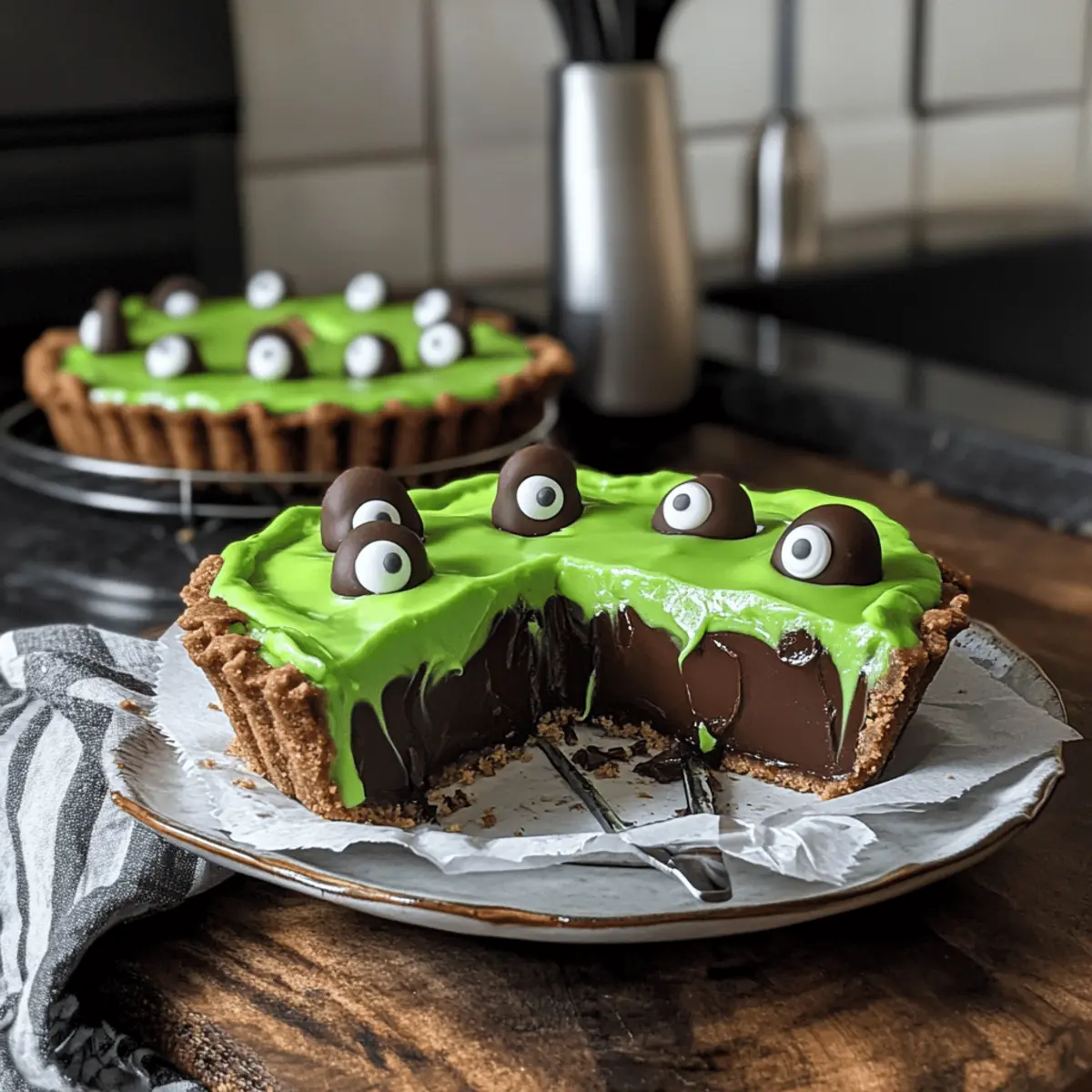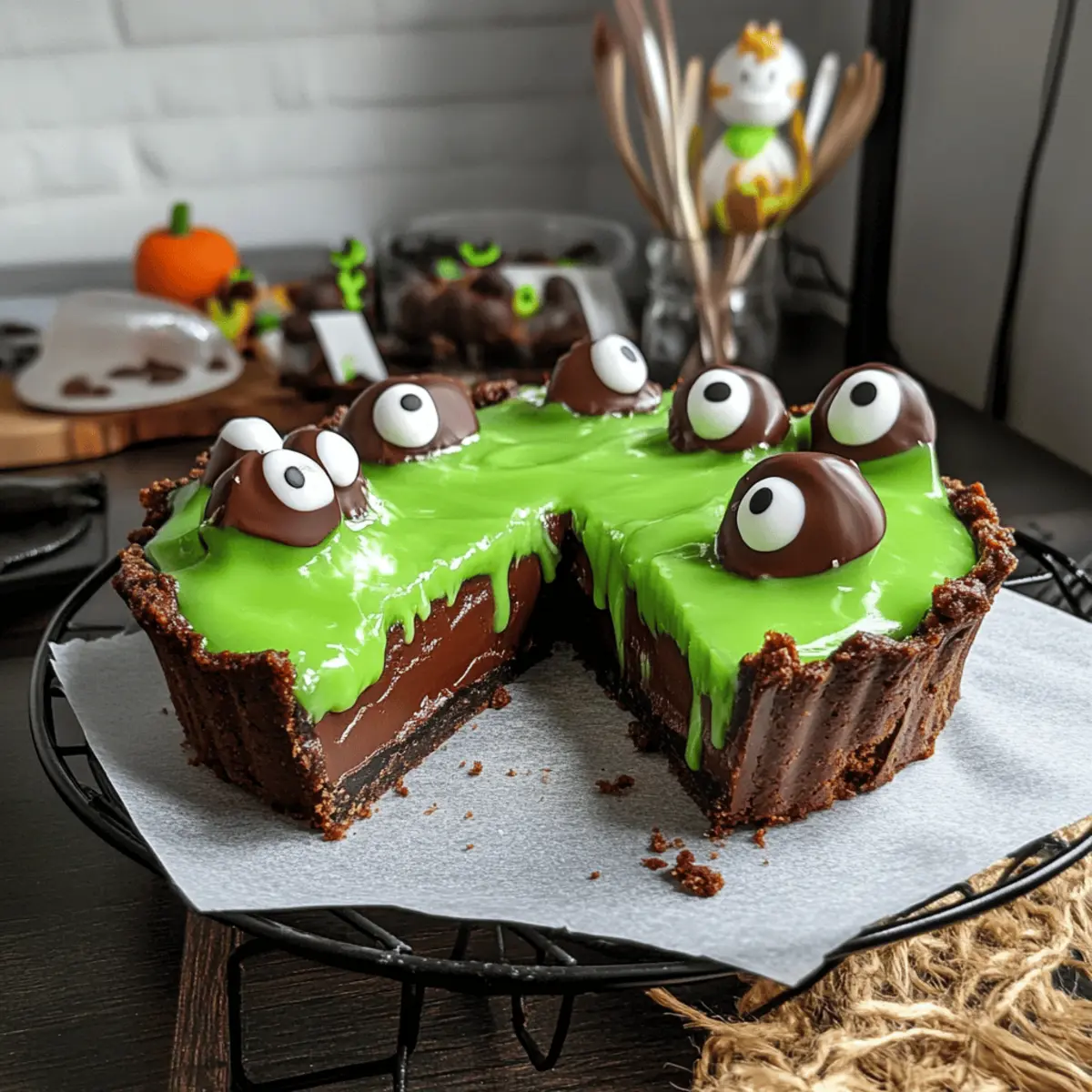 In der gemütlichen Dämmerung eines Halloweenabends breitet sich der verlockende Duft von Schokolade aus, der alle Naschkatzen in den Bann zieht. Das ist der perfekte Moment, um meine cremige Halloween-Schokoladentarte mit Schleimmonstern hervorzuzaubern. Diese süße Verführung kombiniert einen knusprigen Schokoladenboden mit einer samtigen Füllung und wird von lustigen, grünen Schleimmonstern aus weißer Schokolade gekrönt. Das Beste daran? Mit nur 15 Minuten Aktivzeit ist sie ein unkompliziertes und schnelles Dessert, das sowohl Kinder als auch Erwachsene begeistert. Lass uns gemeinsam die perfekte Mischung aus köstlichem Geschmack und gruseliger Freude entdecken. Wer kann schon einem solchen Halloween-Leckerbissen widerstehen? Warum sollten Sie diese Tarte lieben? Einfachheit, Die Zubereitung ist unkompliziert und erfordert nur 15 Minuten aktive Vorbereitungszeit – ideal für spontane Halloween-Feiern! Cremiger Geschmack, Die Kombination aus crunchy Schokoladenboden und einer reichhaltigen, samtigen Füllung sorgt für ein Geschmackserlebnis, das es in sich hat. Geselligkeit, Diese Tarte wird garantiert zum Star auf jeder Feier und lässt sich wunderbar mit Freunden und Familie teilen. Vielfältige Variationen, Sie können die Dekoration ganz nach Ihrem Geschmack anpassen, beispielsweise mit verschiedenen Lebensmittelfarben oder anderen Süßigkeiten. Und vergessen Sie nicht, die Tarte vor dem Servieren gut auskühlen zu lassen, damit sie beim Dekorieren perfekt aussieht! Cremige Halloween-Schokoladentarte Zutaten Für den Boden • Butter (weich) – sorgt für Feuchtigkeit und Reichtum im Boden. Alternativ: Verwenden Sie Kokosöl für eine milchfreie Variante. • Zucker – fügt Süße hinzu, die die reichhaltige Schokoladennote ausgleicht. Alternativ: Brauner Zucker verleiht eine karamellartige Note. • Backkakao Extra Schwarz – intensiviert den Schokoladengeschmack und die Farbe des Bodens. Hinweis: Dies kann die Farbe anderer Schokoladenelemente vertiefen. • Mehl – dient als Struktur für den Tartboden. Alternativ: Glutenfreies Mehl kann für eine glutenfreie Version verwendet werden. • Backpulver – lässt den Boden aufgehen und sorgt für Fluffigkeit. Für die Füllung • Zartbitterschokolade – der Hauptgeschmacksträger in der Füllung, der Tiefe und Reichtum hinzufügt. • Eier – geben Bindung und Struktur in der Füllung. • Mini Schaumküsse – bringen Überraschung und Textur in die Tarte hinein. Für den “Schleim” • Weiße Schokolade – wird für den Schleimeffekt verwendet und fügt Süße sowie Farbe hinzu. Alternativ: Verwenden Sie milchfreie weiße Schokolade für eine vegane Variante. • Lebensmittelfarbe in Gift-Grün – färbt die weiße Schokolade zur Dekoration. Für die Dekoration • Zuckeraugen – die dekorative Komponente, um das Erscheinungsbild der “Schleimmonster” abzurunden. Schritt-für-Schritt-Anleitung für Cremige Halloween-Schokoladentarte mit Schleimmonstern Step 1: Ofen vorheizen Heizen Sie den Ofen auf 200°C vor. Dies ist wichtig, damit der Boden der cremigen Halloween-Schokoladentarte gut gelingt. Ein vorgeheizter Ofen sorgt dafür, dass der Teig gleichmäßig backt und knusprig wird. Step 2: Teig vorbereiten Vermischen Sie in einer großen Schüssel die weiche Butter, den Zucker, Salz, den Backkakao, das Mehl und das Backpulver. Kneten Sie die Mischung, bis ein streuselförmiger Teig entsteht. Drücken Sie diesen gleichmäßig in eine mit Backpapier ausgelegte 26 cm große Springform und backen Sie ihn 15 Minuten lang im vorgeheizten Ofen. Step 3: Ofentemperatur reduzieren Reduzieren Sie nach dem Backen die Temperatur des Ofens auf 160°C. Dies ist die ideale Temperatur für die Füllung der cremigen Halloween-Schokoladentarte, damit sie gleichmäßig gart, ohne zu schnell zu bräunen. Step 4: Schokolade schmelzen Schmelzen Sie die Butter zusammen mit der Zartbitterschokolade in einem Wasserbad oder in der Mikrowelle. Achten Sie darauf, dass die Mischung leicht abkühlt, bevor Sie sie weiterverarbeiten, um ein Gerinnen der Eier zu vermeiden, wenn diese später hinzugefügt werden. Step 5: Ei-Zucker-Mischung herstellen Schlagen Sie in einer separaten Schüssel die Eier mit dem Zucker, bis die Mischung schaumig und hell ist. Anschließend fügen Sie die leicht abgekühlte Schokoladen-Butter-Mischung hinzu und rühren alles gründlich zusammen. Dies sorgt für eine cremige Basis in der Füllung der Tarte. Step 6: Zutaten kombinieren Sieben Sie das Mehl und das Salz in die Schokoladenmischung und heben Sie alles vorsichtig unter, bis ein glatter Teig entsteht. Achten Sie darauf, nicht zu übermixen, damit die Füllung ihre Luftigkeit behält, was für die cremige Textur wichtig ist. Step 7: Mini Schaumküsse hinzufügen Verteilen Sie die Mini Schaumküsse gleichmäßig auf dem abgekühlten Tarteboden. Gießen Sie anschließend die vorbereitete Schokoladenfüllung gleichmäßig über die Schaumküsse, sodass diese gut eingekleidet werden. Step 8: Tarte backen Backen Sie die Tarte 30 Minuten lang im Ofen bei 160°C. Überprüfen Sie nach 25 Minuten, ob die Oberseite fest ist, und decken Sie die Tarte gegebenenfalls mit Alufolie ab, falls sie zu dunkel wird. Step 9: Auskühlen lassen Lassen Sie die Tarte vollständig abkühlen, bevor Sie sie aus der Form nehmen. Dies ist entscheidend für das perfekte Ergebnis der cremigen Halloween-Schokoladentarte, und Sie sollten sie über Nacht im Kühlschrank ruhen lassen, um die Texturen zu festigen. Step 10: Schleimeffekt herstellen Schmelzen Sie die weiße Schokolade und mischen Sie sie mit der grünen Lebensmittelfarbe, bis eine gleichmäßige, lebhafte Farbe entsteht. Gießen Sie diese Mischung über die abgekühlte Tarte, nachdem Sie sie aus der Springform genommen haben, um den lustigen Schleimeffekt zu erzielen. Step 11: Dekoration anbringen Verzieren Sie die Tarte mit den Zuckeraugen, die als freundliche „Schleimmonster“ fungieren. Platzieren Sie sie strateg