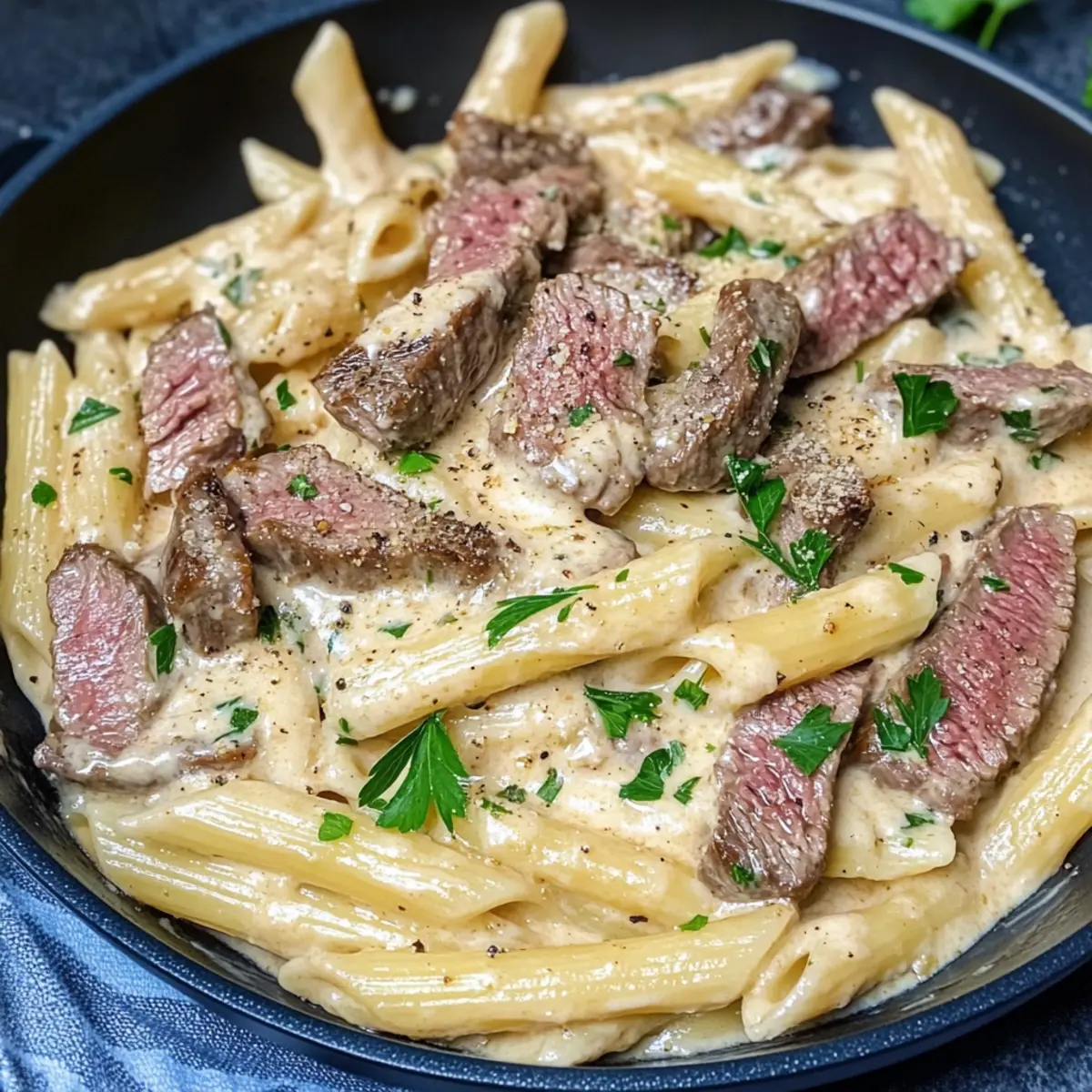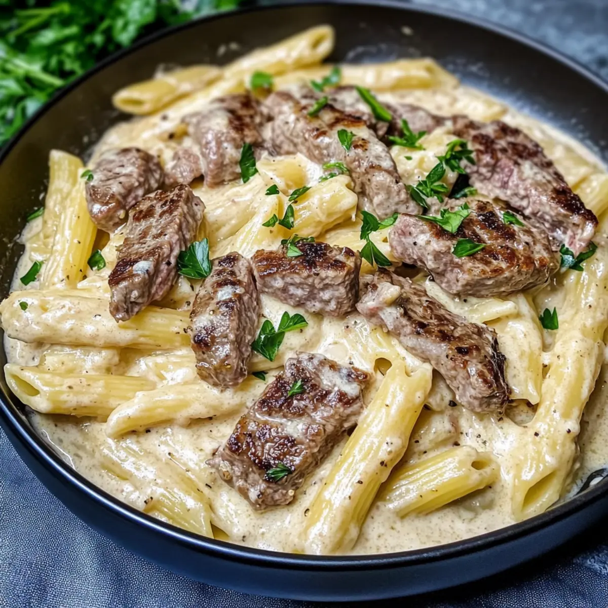 Die Vorstellung, wie ein köstlicher Duft von gebratenem Steak durch die Küche zieht, weckt schon beim ersten Bissen Erinnerungen an gemütliche Abende mit Freunden und Familie. Heute lade ich euch ein, dieses Gefühl mit meiner cremigen Steak-Pasta zu erleben. Diese Spezialität vereint zarte Rindersteaks und lockere Pasta in einer reichen, samtigen Sauce, die jeden Bissen zu einem kleinen Festmahl macht. Diese Variante ist nicht nur ein echter Blickfang auf dem Tisch, sondern auch unglaublich schnell zubereitet – perfekt für einen unter der Woche nach einem langen Tag oder wenn Gäste zum Essen kommen. Ihr werdet sehen, dass diese cremige Steak-Pasta sowohl das Herz als auch den Magen erfreut! Was haltet ihr von einem bisschen Abwechslung auf dem Teller? Warum werdet ihr diese cremige Steak-Pasta lieben? Wunderbare Aromen: Der köstliche Duft von frisch gebratenem Steak und der cremigen Sauce wird euch umhauen, während ihr diese einfache, aber beeindruckende Pasta zubereitet. Schnelle Zubereitung: In weniger als 30 Minuten verwöhnt ihr eure Lieben mit einem Gericht, das wie ein Gourmetessen aussieht und schmeckt. Vielseitigkeit: Experimentiert nach Belieben, indem ihr saisonales Gemüse oder Gewürze hinzufügt – probiert doch einmal Spinat oder Pilze aus! Pflege des Gaumens: Jeder Bissen dieser Steak-Pasta ist eine Harmonie aus saftigem Fleisch und cremiger Textur, die sowohl den Gaumen als auch das Herz erfreut. Ideal für jeden Anlass: Ob für ein romantisches Abendessen oder ein Familientreffen – diese Pasta ist ein Hit und wird immer für Begeisterung sorgen! Cremige Steak-Pasta Zutaten Für die Pasta • Olivenöl – Das Kochfett zum Anbraten, kann auch durch Pflanzenöl ersetzt werden für einen neutralen Geschmack. • Rumpsteaks (2, ca. 450 g) – Die Hauptproteinquelle; zart und geschmackvoll, kann durch Flank- oder Schaufelsteak ersetzt werden. • Salz und Pfeffer – Unverzichtbare Gewürze zur Geschmacksverstärkung; nach Belieben anpassen. • Pasta (250 g) – Die Grundlage des Gerichts; Penne oder Rigatoni eignen sich hervorragend, um die Sauce zu halten. Glutenfreie Pasta kann als Alternative verwendet werden. Für die Sauce • Butter (2 Esslöffel) – Verleiht der Sauce Reichhaltigkeit; ungesalzene Butter verwenden, um den Salzgehalt zu kontrollieren. • Knoblauch (4 Zehen, fein gehackt) – Sorgt für ein aromatisches Geschmacksprofil; auch Knoblauchpulver als Ersatz möglich. • Rosmarin (1 Zweig) – Bringt erdige Noten; frischer Thymian oder italienische Gewürze können ebenfalls verwendet werden. • Italienische Gewürzmischung (1 Teelöffel) – Führt schnell eine gemischte Kräuternote ein; kann durch ähnliche getrocknete Kräuter wie Oregano oder Basilikum ersetzt werden. • Hühnchenbrühe (125 ml) – Flüssigkeit für die Tiefe der Sauce; Gemüsebrühe kann für eine vegetarische Version verwendet werden. • Schlagsahne (250 ml) – Schafft die cremige Textur der Sauce; leichte Sahne oder halb und halb sind eine leichtere Option. • Parmesan (⅓ Tasse, gerieben) – Verleiht einen herzhaften, käseartigen Geschmack; frisch geriebener Parmesan ist am besten, Asiago kann verwendet werden. • Frische Petersilie (eine Handvoll, grob gehackt) – Zum Garnieren und für den Geschmack; durch Schnittlauch ersetzen, wenn nicht verfügbar. • Frisch gemahlener schwarzer Pfeffer – Zum Würzen nach Geschmack. Jeder Bissen dieser cremigen Steak-Pasta wird eure Geschmacksnerven verwöhnen und ist schnell zubereitet! Schritt-für-Schritt-Anleitung für Cremige Steak-Pasta Step 1: Steak vorbereiten Die Rumpsteaks großzügig mit Salz und Pfeffer würzen. Erhitzt in einer großen Pfanne bei mittelhoher Hitze 2 Esslöffel Olivenöl, bis es schimmert. Bratet die Steaks 3-4 Minuten auf jeder Seite, bis sie eine goldbraune Kruste haben und auf den gewünschten Gargrad gegart sind. Nehmt die Steaks aus der Pfanne und lasst sie 5 Minuten ruhen, bevor ihr sie in Scheiben schneidet. Step 2: Geschmack hinzufügen In derselben Pfanne schmelzt ihr 2 Esslöffel Butter bei mittlerer Hitze. Fügt die fein gehackten Knoblauchzehen und den Rosmarin hinzu und gebt ihnen 1-2 Minuten Zeit, um ihr Aroma zu entfalten. Basst die Steaks mit der geschmolzenen Butter, bis sie den gewünschten Gargrad erreicht haben. Danach die Steaks auf ein Schneidebrett legen und in Streifen schneiden. Step 3: Pasta kochen Bringt in einem großen Topf Wasser zum Kochen und fügt 1 Esslöffel Salz hinzu. Gebt die Pasta hinzu und kocht sie 8-10 Minuten, bis sie al dente ist. Vergesst nicht, 1-2 Tassen des Nudelwassers für die Sauce aufzuheben, bevor ihr die Pasta abgießt. Step 4: Sauce zubereiten In der gleichen Pfanne, in der ihr das Steak zubereitet habt, schmelzt ihr bei mittlerer Hitze 2 Esslöffel Butter. Fügt den gehackten Knoblauch hinzu und sautéiert ihn für etwa 1 Minute. Gebt dann 1 Teelöffel italienische Gewürzmischung und 125 ml Hühnchenbrühe hinzu. Lasst die Mischung 3-4 Minuten köcheln, bis sie leicht reduziert ist, und fügt dann 250 ml Schlagsahne hinzu. Step 5: Kombinieren Rührt die gekochte Pasta und die in Stücke geschnittenen Steaks in die Sauce. Fügt ⅓ Tasse geriebenen Parmesan hinzu und mischt alles gut. Falls die Sauce zu dick ist, könnt ihr nach Belieben etwas von dem reservierten Nudelwasser hinzufügen, bis die gewünschte Konsistenz erreicht ist. Step 6: Fertigstellen Faltet eine Handvoll grob gehackte Petersilie unter die cremige Steak-Pasta. Schmeckt die Mischung mit weiterem Salz und frisch gemahlenem schwarzem Pfeffer ab. Serviert die Pasta sofort und bestreut sie nach Wunsch mit zusätzlichem Parmesan für den letzten Schliff. Was serviert man zu cremiger Steak-Pasta? Die perfekte Ergänzung zu einem herzhaften Hauptgericht verwandelt ein einfaches Abendessen in ein unvergessliches Erlebnis voller Aromen und Texturen. Knuspriges Baguette: Es ist ideal, um die cremige Sauce aufzutunken und ergänzt die Reichhaltigkeit der Pasta. Die knusprig