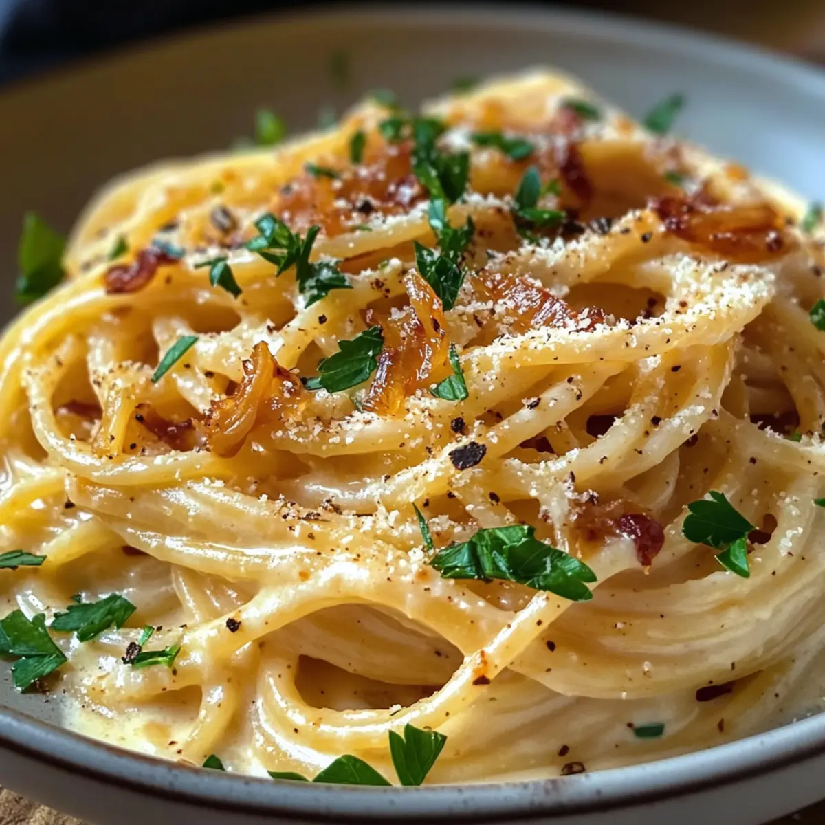 Es ist kaum zu fassen, wie einfache Zutaten zu einer solch geschmackvollen Kreation verschmelzen können. Die Cremige vegane karamellisierte Zwiebelnudeln sind nicht nur ein Fest für die Sinne, sondern auch eine wunderbare Möglichkeit, den Tag nach einem langen Arbeitstag zu genießen. Mit der perfekten Balance aus süßen, goldbraunen Zwiebeln und einer samtigen Kokoscremesoße ist dieses Gericht die ideale Kombination aus Komfort und Genuss. Zudem lässt es sich in nur 30 Minuten zubereiten – perfekt für alle, die keine Zeit für aufwendige Kochprojekte haben. Egal, ob du ein schnelles Abendessen zaubern oder Eindruck bei deinen Gästen hinterlassen möchtest, dieses Rezept passt perfekt in jedes vegane Menü. Bist du bereit, die Geheimnisse dieser köstlichen Pasta zu entdecken? Warum wirst du diese Pasta lieben? Einfache Zubereitung: Die Cremige vegane karamellisierte Zwiebelnudeln sind im Handumdrehen fertig – in nur 30 Minuten! Ideal für stressige Abende. Wunderbarer Geschmack: Die Kombination aus süß karamellisierten Zwiebeln und cremiger Kokossoße sorgt für einen unvergleichlichen Geschmack. Vielseitig und anpassbar: Füge gesunde Zutaten wie Spinat oder Pilze hinzu, um das Gericht noch nährstoffreicher zu gestalten. Köstlicher Komfort: Dieses Gericht vereint die Aromen einer klassischen Pasta und ist dennoch rein pflanzlich – perfekt für jeden Genussliebhaber! Crowd-Pleaser: Egal, ob du Veganer bist oder nicht, diese Pasta wird jeden am Tisch begeistern. Cremige vegane karamellisierte Zwiebelnudeln Zutaten • Die perfekte Auswahl für dein nächstes Gericht! Für die Nudeln Pasta – Die Basis des Gerichts, verwende Spaghetti, Fettuccine oder deine Lieblingssorte. Salz – Zum Würzen des Kochwassers für die Pasta; es hebt den Geschmack hervor. Für die Soße Zwiebeln – Hauptgeschmacksträger, karamellisiert für Süße und Tiefe; gelbe oder süße Zwiebeln sind ideal. Olivenöl – Zum Anbraten der Zwiebeln; sorgt für reichhaltigen Geschmack. Neutralöl ist ebenfalls verwendbar. Knoblauch – Verstärkt das Aroma; verwende frischen Knoblauch für das beste Ergebnis. Gemüsebrühe – Flüssigkeit für die Soße, die Tiefe verleiht; hausgemacht oder gekauft ist beides möglich. Kokoscreme – Sorgt für die cremige Textur dieser cremigen veganen karamellisierten Zwiebelnudeln; Alternativen können Cashewcreme sein. Sojasoße oder Tamari – Fügt Umami und Salz hinzu; Tamari ist glutenfrei. Nährhefe – Optional für einen käsigen Geschmack; ideal für zusätzliche Tiefe. Pfeffer – Zum Abschmecken; fügt eine würzige Note hinzu. Garnitur Frische Kräuter – Für Frische und Farbe; Petersilie oder Basilikum sind empfehlenswert. Schritt-für-Schritt-Anleitung für Cremige vegane karamellisierte Zwiebelnudeln Step 1: Pasta kochen Bringe in einem großen Topf ausreichend Wasser zum Kochen und füge eine Prise Salz hinzu. Gib die Pasta deiner Wahl hinein und koche sie gemäß der Packungsanweisung al dente – in der Regel etwa 8–10 Minuten. Wenn die Nudeln fertig sind, gieße sie in ein Sieb ab und stelle sie beiseite, damit sie nicht weiter garen. Step 2: Zwiebeln karamellisieren Erhitze in einer großen Pfanne bei mittlerer Hitze 2 Esslöffel Olivenöl. Gib die in dünne Scheiben geschnittenen Zwiebeln hinzu und rühre gut um. Lasse die Zwiebeln etwa 15 Minuten lang kochen, bis sie goldbraun und karamellisiert sind. Rühre gelegentlich, um ein Anbrennen zu verhindern, und genieße den aromatischen Duft. Step 3: Knoblauch hinzufügen Sobald die Zwiebeln karamellisiert sind, füge 2-3 fein gehackte Knoblauchzehen zur Pfanne hinzu. Koche sie für 1–2 Minuten mit, bis sie duften, und achte darauf, sie nicht anbrennen zu lassen. Dies gibt der Mischung eine zusätzliche aromatische Note, die gut zu den Cremigen veganen karamellisierten Zwiebelnudeln passt. Step 4: Sauce zubereiten Gieße 250 ml Gemüsebrühe in die Pfanne zu den Zwiebeln und bringe alles zum Kochen. Lasse die Mischung bei mittlerer Hitze etwa 3–5 Minuten köcheln, bis die Brühe leicht reduziert und die Aromen sich entfaltet haben. Rühre gelegentlich um, damit nichts am Boden der Pfanne festklebt. Step 5: Kokoscreme einarbeiten Füge 200 ml Kokoscreme und 2 Esslöffel Sojasoße oder Tamari zur Zwiebel-Brühe-Mischung hinzu. Koche alles für 2–3 Minuten weiter, bis sich die Sauce gut vermischt hat und heiß ist. Die Konsistenz sollte cremig und gleichmäßig sein, was den Cremigen veganen karamellisierten Zwiebelnudeln eine köstliche Textur verleiht. Step 6: Nudeln kombinieren Gib die abgegossenen Nudeln in die Pfanne mit der Soße und vermische alles gründlich. Achte darauf, dass die Pasta gleichmäßig mit der cremigen Mischung umhüllt ist. Du solltest das köstliche Aroma der karamellisierten Zwiebeln und der Kokoscreme deutlich wahrnehmen können. Step 7: Abschmecken und servieren Schmecke die cremigen veganen karamellisierten Zwiebelnudeln mit Salz, Pfeffer und optional 2 Esslöffeln Nährhefe ab. Diese verleiht der Soße einen leicht käsigen Geschmack. Serviere das Gericht heiß, garniert mit frischen Kräutern wie Petersilie oder Basilikum für einen zusätzlichen Farbtupfer und Frische. Was passt zu cremigen veganen karamellisierten Zwiebelnudeln? Genieße das Zusammenspiel von Aromen und Texturen, indem du diese köstlichen Nudeln mit sorgfältigen Beilagen kombinierst. Frischer grüner Salat: Ein einfacher, knackiger Salat mit Vinaigrette bringt eine erfrischende Komponente, die den cremigen Nudeln entgegenwirkt. Knoblauchbrot: Die Buttrigkeit des Knoblauchbrots ergänzt die süßen Zwiebeln perfekt und macht das Essen besonders gemütlich. Röstgemüse: Bunte Röstgemüsesorten wie Karotten, Zucchini und Paprika bieten eine herzhafte und gesunde Ergänzung mit einer leichten Süße. Kräuterquark: Ein leichter, veganer Kräuterquark bringt Frische und einen intensiven Geschmack, der gut mit der cremigen Textur der Pasta harmoniert. Rotwein: Ein vollmundiger Rotwein wie 