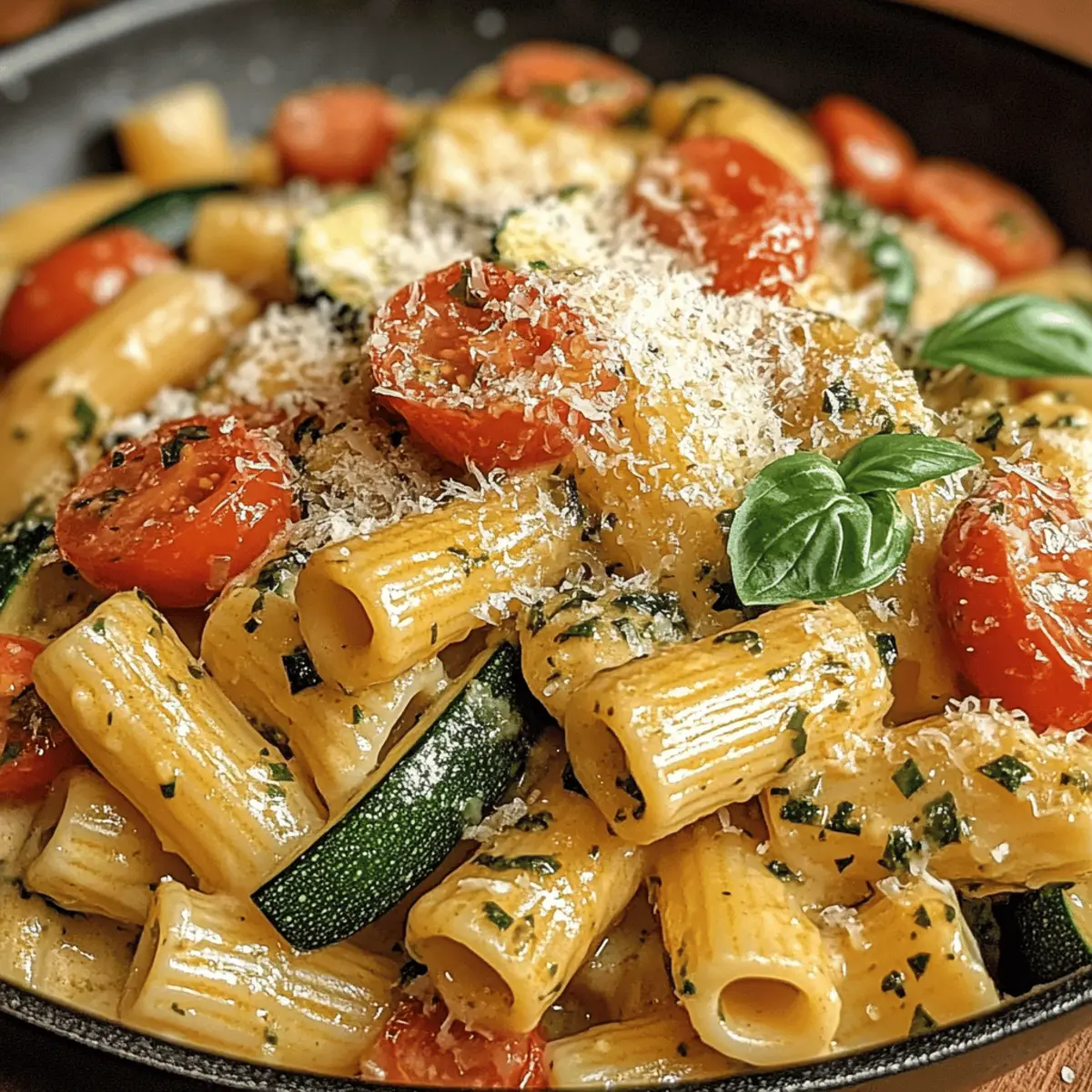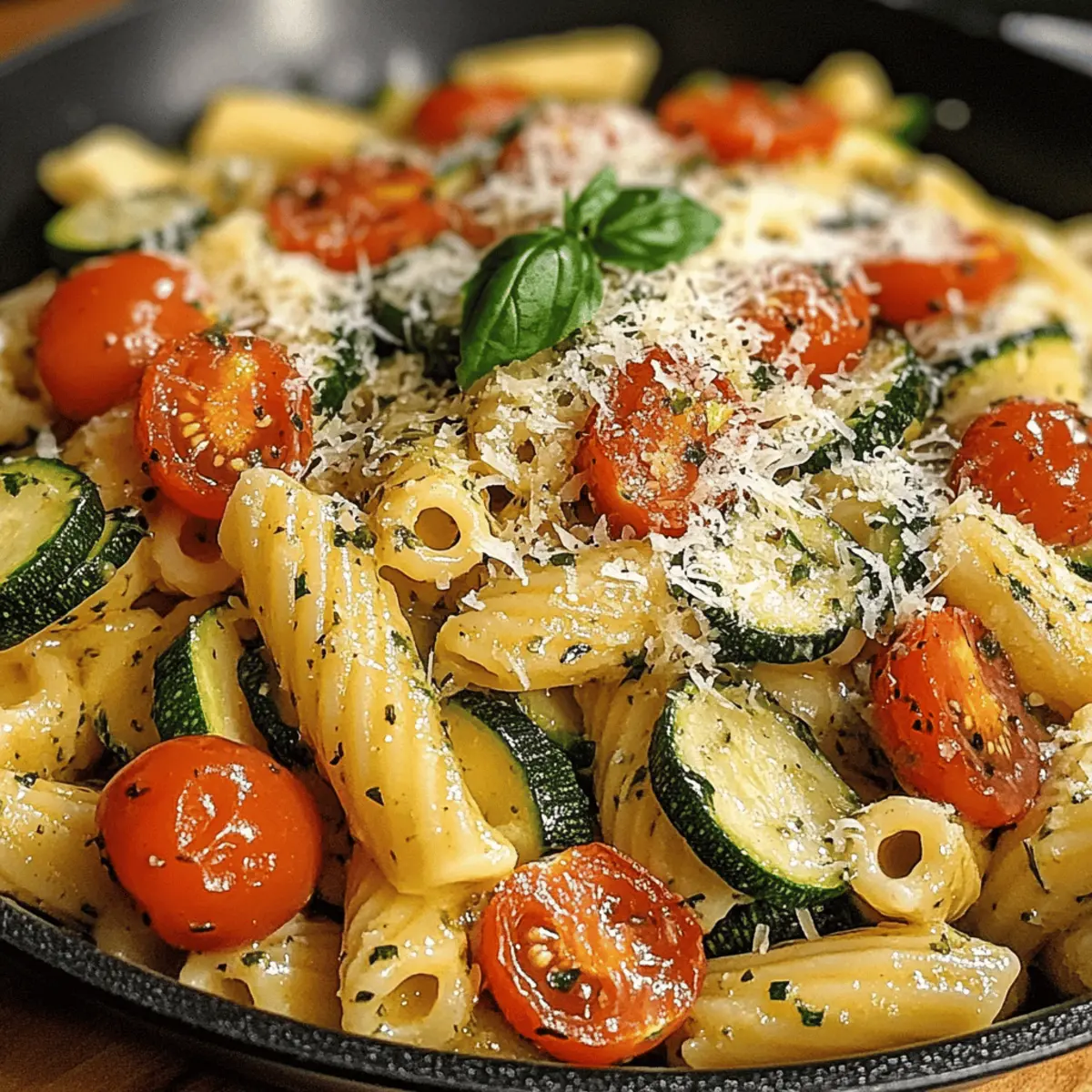Es ist spät am Abend und der Kühlschrank gibt gerade mal die Reste der Woche her. Was jetzt? Plötzlich kommt mir die Idee für eine cremige Z zucchini-Tomaten-Pasta-Pfanne! Diese einfache und schnelle Rezeptidee vereint alles, was ich mir wünschen kann: frische Zucchini, saftige Kirschtomaten und eine reichhaltige, cremige Sauce, die über Pasta gleitet. In nur 10 Minuten Vorbereitungszeit und 25 Minuten Kochzeit verwandelt sich ein gewöhnlicher Abend in ein kleines italienisches Festmahl. Das Beste daran? Es ist nicht nur ein schnelles Gericht, sondern auch anpassbar! Ob vegan oder glutenfrei – jeder kann mit Genuss am Tisch Platz nehmen und ein gesundes, tröstliches Essen genießen. Neugierig geworden? Lass uns gemeinsam dieses köstliche Rezept entdecken! Warum wirst du dieses Rezept lieben? Schnelligkeit: In weniger als 40 Minuten zauberst du ein köstliches Gericht. Perfekt für den Feierabend, wenn die Zeit knapp ist. Vielseitigkeit: Anpassbar für jede Diät! Ob vegan oder glutenfrei, jeder findet hier eine Variante, die ihm schmeckt. Frische Zutaten: Mit Zucchini und Kirschtomaten aus der Saison bringst du sofort Farbe und Frische in deine Küche. Cremige Textur: Der reichhaltige cremige Geschmack macht dieses Gericht zu einem echten Gewinner bei Pasta-Liebhabern. Einfache Zubereitung: Kein kompliziertes Kochen! Die Schritte sind simpel und klar, sodass auch Kochanfänger Freude daran haben. Familienfreundlich: Diese Pasta-Pfanne ist ein Hit bei Groß und Klein – ein echtes Comfort Food, das immer gut ankommt! Für mehr schnelle und gesunde Rezeptideen schau dir meine vielfältigen vegetarischen Optionen an. Cremige Zucchini-Tomaten-Pasta-Pfanne – Zutaten • Pasta (225 g): – Die Basis des Gerichts, die Struktur und Fülle bietet; ersetze sie durch Vollkorn- oder glutenfreie Pasta für eine leichtere Option. • Zucchini (2 mittelgroße): – Bringt Feuchtigkeit und Nährstoffe; frisch ist am besten, aber auch Sommersquash kann verwendet werden. • Kirschtomaten (1 Tasse): – Fügt Süße und Säure hinzu; ersetzbar durch gewürfelte normale Tomaten, wenn nötig. • Zwiebel (1 kleine, gewürfelt): – Grundlage für den Geschmack, verstärkt das Aroma; Schalotten können für eine mildere Note verwendet werden. • Knoblauch (2 Zehen, gehackt): – Sorgt für Tiefe und Aroma; frisch ist am besten, Knoblauchpulver kann in der Not verwendet werden. • Schlagsahne (1 Tasse): – Schafft eine reichhaltige, cremige Textur; kann durch Kokosmilch oder pflanzliche Sahne für eine vegane Option ersetzt werden. • Gemüsebrühe (1 Tasse): – Hilft, die Aromen auszubalancieren; Hühnerbrühe oder Wasser sind ebenfalls Alternativen. • Parmesankäse (1 Tasse, gerieben): – Intensiviert den Geschmack und trägt zur Cremigkeit bei; Ernährungshefe oder eine vegane Käsealternative sind ebenfalls möglich. • Olivenöl (2 Esslöffel): – Zum Anbraten und zur Geschmacksverstärkung; Avocadoöl kann als Ersatz dienen. • Getrockneter Basilikum (1 Teelöffel) & Oregano (1 Teelöffel): – Untermauern das Kräuterprofil; frische Kräuter können für einen frischeren Geschmack verwendet werden. • Salz & Pfeffer: – Unentbehrlich für die Würze; nach persönlichem Geschmack anpassen. • Frisches Basilikum (zum Garnieren): – Fügt einen frischen Akzent zur Präsentation hinzu; kann weggelassen werden, wenn nicht verfügbar. Mit diesen Zutaten stellst du deine eigene cremige Zucchini-Tomaten-Pasta-Pfanne im Handumdrehen her! Schritt-für-Schritt-Anleitung für die Cremige Zucchini-Tomaten-Pasta-Pfanne Step 1: Pasta kochen Bringe in einem großen Topf gesalzenes Wasser zum Kochen. Füge die Pasta hinzu und koche sie nach Packungsanweisung, bis sie al dente ist, etwa 8-10 Minuten. Achte darauf, ein Glas (ca. 240 ml) des Nudelwassers aufzuheben, bevor du die Pasta abgießt. Dies hilft, die Sauce später zu binden. Step 2: Aromastoffe anbraten Erhitze 2 Esslöffel Olivenöl in einer großen Pfanne bei mittlerer Hitze. Gib die gewürfelte Zwiebel dazu und brate sie etwa 3-4 Minuten lang, bis sie glasig ist. Füge dann 2 gehackte Knoblauchzehen hinzu und brate sie für etwa 1 Minute, bis sie aromatisch werden, aber nicht bräunen. Step 3: Gemüse hinzufügen In die Pfanne kommen jetzt 2 mittelgroße Zucchini, die in Scheiben geschnitten sind, und 1 Tasse halbierte Kirschtomaten. Würze mit Salz, Pfeffer, 1 Teelöffel getrocknetem Basilikum und 1 Teelöffel Oregano. Brate das Gemüse für 5-7 Minuten, bis die Zucchini zart und die Tomaten weich sind. Step 4: Sauce zubereiten Gieße 1 Tasse Gemüsebrühe in die Pfanne und bringe alles zum sanften Köcheln. Reduziere die Hitze und füge 1 Tasse Schlagsahne hinzu. Lass die Mischung 2-3 Minuten köcheln, bis die Sauce leicht eingedickt ist und eine cremige Konsistenz annimmt. Step 5: Pasta kombinieren Gib die abgetropfte Pasta in die Pfanne zur Sauce und füge 1 Tasse geriebenen Parmesan hinzu. Rühre alles gut um, damit die Pasta gleichmäßig mit der cremigen Sauce umhüllt wird. Bei Bedarf nach und nach etwas des aufbewahrten Nudelwassers hinzufügen, um die Sauce zu verfeinern. Step 6: Abschmecken und anpassen Probier die Cremige Zucchini-Tomaten-Pasta-Pfanne und passe die Würze nach deinem Geschmack an. Lass die Pasta 2-3 Minuten in der Pfanne ruhen, damit sie die Aromen der Sauce gut aufnehmen kann, und achte darauf, dass nichts anbrennt. Step 7: Servieren Verteile die fertige Pasta auf Teller und garniere sie nach Belieben mit frischem Basilikum oder zusätzlichem Parmesan. Servere die cremige Zucchini-Tomaten-Pasta-Pfanne sofort und genieße das köstliche, hausgemachte Gericht! Variationen & Alternativen zur Cremigen Zucchini-Tomaten-Pasta-Pfanne Lass deiner Kreativität freien Lauf und passe dieses köstliche Rezept nach deinem Geschmack an! Vegan: Ersetze die Schlagsahne durch Kokosmilch oder eine pflanzliche Sahne, um eine leckere, cremige vegane Variante zu erzielen. Glutenfrei: Wähle glutenfreie Pasta oder verwende