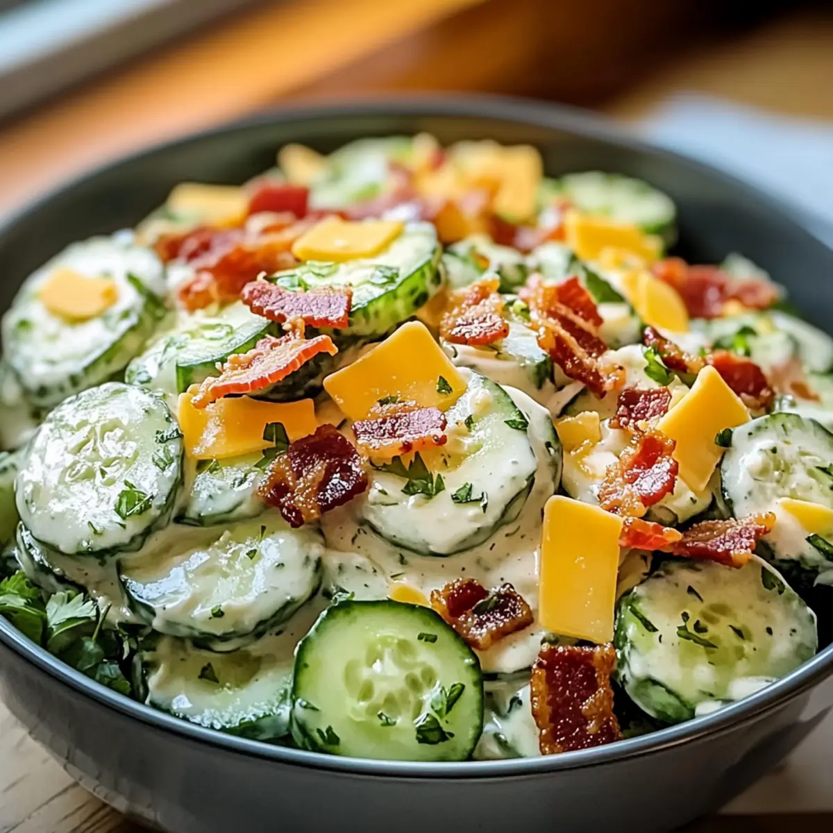 Es gibt Momente in der Küche, die einfach nicht zu übertreffen sind – wie der, als ich zum ersten Mal meinen leckeren cremigen Gurkensalat mit Speck und Käse zubereitet habe. Diese erfrischende Beilage vereint knackige Gurken mit einer reichhaltigen, cremigen Soße und sorgt garantiert für Begeisterung. In weniger als 30 Minuten gelingt dir dieses einfache, geschmackvolle Gericht, das sich schnell zu deinem neuen Favoriten entwickeln kann. Perfekt geeignet für Grillpartys oder als leichtes Mittagessen, überzeugt dieser Salat nicht nur durch seine Vielseitigkeit, sondern auch durch die Kombination aus gesunden Zutaten und dem herzhaften Geschmack von Speck und Käse. Wer kann da widerstehen? Bist du bereit, deinen nächsten Kochabend aufzupeppen? Warum wirst du diesen Gurkensalat lieben? Einfachheit, die begeistert: Der cremige Gurkensalat mit Speck und Käse ist im Handumdrehen zubereitet, perfekt für Kochanfänger und gewiefte Köche gleichermaßen. Frische & Knackigkeit: Die Kombination aus knackigen Gurken und frischen Kräutern sorgt für einen erfrischenden Genuss, der bei jeder Gelegenheit gut ankommt. Köstliche Cremigkeit: Mit einer reichhaltigen, cremigen Sauce aus saurer Sahne oder griechischem Joghurt wird dieser Salat zum Geschmackserlebnis. Vielseitigkeit pur: Egal ob als Beilage beim Grillen oder als leichtes Mittagessen, die Verwendung von Zutaten wie Cremige Pastapfanne Mit oder Bohnen Und Speck bietet dir zahlreiche Variationsmöglichkeiten. Schneller Genuss: In weniger als 30 Minuten bereit, wird dieser Salat zum perfekten Partner in deiner schnelllebigen Küche. Beliebtheit garantiert: Die bezaubernde Kombination von Speck und Käse wird sowohl Familie als auch Freunde überzeugen – ein echter Publikumsliebling! Cremiger Gurkensalat mit Speck und Käse Zutaten • Eine erfrischende Kombination, die einfach begeistert! Für den Salat Gurken – sorgen für Knackigkeit und Frische; am besten eignen sich englische Gurken für extra Crunch. Cheddar Käse – bringt eine cremige und herzhaft-würzige Note; für einen interessanteren Geschmack kann auch Feta verwendet werden. Gekochte Speckstücke – verleihen einen herzhaften und rauchigen Geschmack; für eine vegetarische Option sind pflanzliche Speckalternativen perfekt. Sauerrahm oder griechischer Joghurt – bildet die Basis für das cremige Dressing; griechischer Joghurt ist eine leichtere Wahl. Frischer Dill – sorgt für einen aromatischen Akzent; bei Abwesenheit sind getrocknete Kräuter ebenfalls nutzbar (weniger verwenden). Weißweinessig oder Zitronensaft – bringt Frische hinein; beide sorgen für die perfekte Balance der Aromen, wähle nach deinem Geschmack. Knoblauchpulver – intensiviert den herzhaften Geschmack; frischer Knoblauch kann eine noch kräftigere Note bringen. Salz und schwarzer Pfeffer – grundlegende Würzungen, die das Gesamtaroma heben; nach Geschmack anpassen. Schritt-für-Schritt-Anleitung für Cremiger Gurkensalat mit Speck und Käse Step 1: Gurken vorbereiten Schneide die Gurken dünn auf und lege sie in ein Sieb. Bestreue sie leicht mit Salz, um überschüssige Feuchtigkeit zu entziehen, und lasse sie 15 Minuten lang stehen. Dies verhindert, dass der Gurkensalat mit Speck und Käse wässrig wird. Nachdem die Zeit um ist, tupfe die Gurken mit einem Küchenhandtuch trocken, um die optimale Konsistenz zu gewährleisten. Step 2: Dressing zubereiten In einer Schüssel verrühre den sauren Rahm oder griechischen Joghurt mit dem Weißweinessig oder Zitronensaft, dem Knoblauchpulver und dem frischen Dill. Mische alles gut durch, bis die Sauce eine glatte Konsistenz erreicht hat. Prüfe die Würze, indem du Salz und Pfeffer nach Geschmack hinzufügst. Dieses cremige Dressing wird die Basis für deinen Salat sein. Step 3: Zutaten kombinieren Gib die abgetropften Gurkenscheiben in die Schüssel mit dem Dressing und vermische alles vorsichtig, sodass die Gurken gleichmäßig mit der cremigen Soße überzogen sind. Achte darauf, dass jede Gurkenscheibe gut umhüllt wird, um den vollen Geschmack des cremigen Gurkensalats mit Speck und Käse zu genießen. Step 4: Beläge hinzufügen Füge den geriebenen Cheddar Käse und die gekochten Speckstücke hinzu und rühre alles sanft unter. Wenn du eine dekorative Präsentation bevorzugst, kannst du die Käse- und Speckstücke auch oben als Garnierung belassen. Diese Kombination aus Aromen bringt zusätzlichen Geschmack und Textur zu deinem Salat. Step 5: Kühlen und Servieren Decke die Schüssel ab und stelle sie für 15-20 Minuten in den Kühlschrank, damit die Aromen sich gut vermischen können. Dies sorgt auch dafür, dass der Gurkensalat mit Speck und Käse schön frisch serviert wird. Nach der Kühlzeit ist dein Salat bereit zum Genießen – frisch und köstlich! Was passt gut zu cremigem Gurkensalat mit Speck und Käse? Gönn dir eine vollendete Mahlzeit mit einer harmonischen Kombination, die deine Sinne verzaubert. Grillhähnchen: Das zarte und saftige Fleisch bietet einen perfekten Kontrast zu der Cremigkeit des Salats. Mit Gewürzen mariniert wird das Hähnchen zum geschmacklichen Highlight. Rustikales Brot: Ein Stück knuspriges, frisch gebackenes Brot ist ideal zum Dippen in die cremige Soße. Es ergänzt die Texturen der anderen Gerichte und sorgt für ein volleres Mundgefühl. Gegrilltes Gemüse: Bunte Grillgemüse wie Paprika und Zucchini bringen zusätzliches Aroma und Frische. Die karamellisierten Süße rundet die herzhaften Noten von Speck und Käse ab. Iced Tea: Ein kühles, selbstgemachtes Getränk sorgt für Erfrischung und schafft eine harmonische Verbindung zu den Aromen des Salats. Wähle eine fruchtige Variante für einen zusätzlichen Kick. Frische Beeren: Eine kleine Schale mit Erdbeeren oder Himbeeren als Dessert bringt eine süße Komponente nach dem herzhaften Essen. Die Säure der Beeren ist ein köstlicher Kontrast zur Creaminess des Gurkensalats. Chips oder Cracker: Knusprige Beilagen wie Chips oder Cracker er