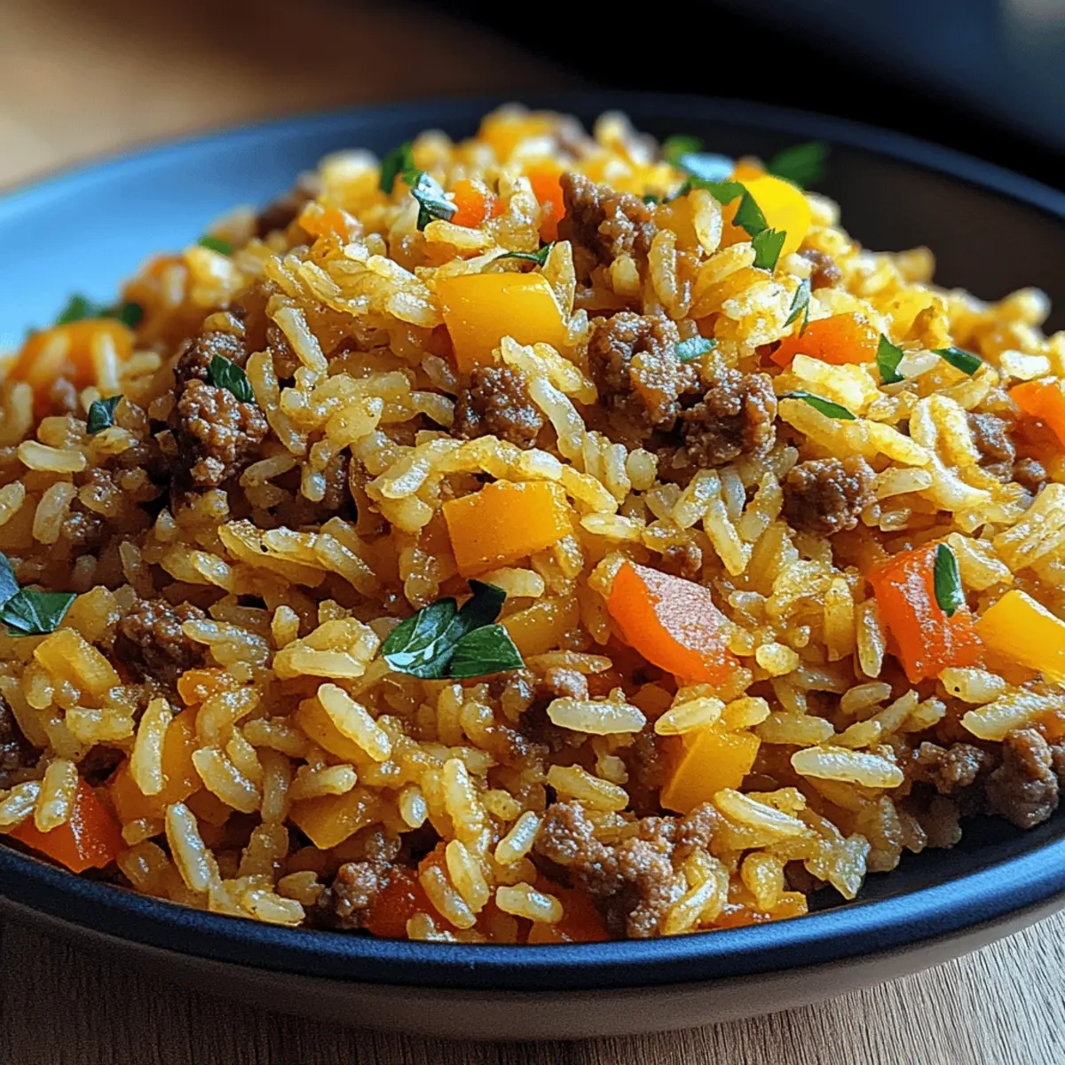 Das Aroma von frisch gewürztem Curry reist direkt durch meine Küche, während ich unschlüssig vor dem Herd stehe. Am Ende eines langen Tages sehne ich mich nach einer schnellen, aber sättigenden Mahlzeit – und genau hier kommt mein Rezept für Curryreis mit Hackfleisch ins Spiel. In nur 30–40 Minuten приготовка, wählen Sie zwischen verschiedenen Variationen, die sogar den besonderen diätetischen Bedürfnissen gerecht werden. Mit seiner Schnelligkeit und Vielseitigkeit ist dieses Gericht perfekt für die ganze Familie und versorgt uns alle mit nahrhaften Zutaten, die wir lieben. Neugierig, wie dieses einfach zuzubereitende Rezept all Ihre Geschmacksknospen kitzeln kann? Warum werden Sie dieses Rezept lieben? Einfache Zubereitung: In nur 30–40 Minuten ist dieses Gericht fertig, ideal für beschäftigte Wochentage! Vielseitigkeit pur: Egal ob mit Rindfleisch, Hähnchen oder sogar vegetarisch – Sie können es ganz nach Ihrem Geschmack anpassen. Reichhaltiger Geschmack: Die Kombination aus Gewürzen und frischem Gemüse sorgt für ein geschmackvolles Erlebnis, das die ganze Familie begeistert. Nährstoffreich: Vollgepackt mit Eiweiß und Ballaststoffen aus Hülsenfrüchten und Gemüse bleibt es nicht nur lecker, sondern auch gesund. Budgetfreundlich: Diese Zutaten sind leicht verfügbar und schonend für Ihren Geldbeutel, ohne auf den Geschmack zu verzichten. Probieren Sie auch unsere anderen schnellen Rezepte für abwechslungsreiche Mittags- oder Abendessen! Curryreis mit Hackfleisch Zutaten • Erleben Sie die köstlichen Aromen und die Vielseitigkeit von Curryreis mit Hackfleisch mit diesen einfachen Zutaten! Für das Gericht Hackfleisch – die Hauptquelle für Protein und herzhaften Geschmack; alternativ können Sie auch Hähnchen oder eine vegetarische Wahl wie Kichererbsen verwenden. Langkornreis – sorgt für die nötige Substanz und Sättigung; für eine Variante können Sie Basmati- oder Blumenkohlreis verwenden. Zwiebel – intensiviert das Aroma; kann durch Schalotten ersetzt werden, um einen milderen Geschmack zu erzielen. Knoblauch – verleiht Tiefe; verwenden Sie bei Bedarf Knoblauchpulver. Karotten – bieten Süße und Textur; alternativ können Sie Erbsen oder Paprika verwenden. Rote Paprika – bringt Farbe und Knackigkeit; ersetzen Sie sie durch gelbe Paprika oder Zucchini nach Bedarf. Zucchini (optional) – sorgt für Feuchtigkeit und eine zarte Konsistenz; kann weggelassen werden, wenn nicht verfügbar. Tomatenmark – intensiviert die Süße und Farbe des Gerichts; verwenden Sie frische Tomaten oder Passata. Curry-Pulver – die entscheidende Gewürzmischung für den besonderen Geschmack des Gerichts; passen Sie die Menge für die gewünschte Schärfe an. Paprika – fügt eine milde, rauchige Note hinzu; verwenden Sie geräucherte Paprika für mehr Tiefe. Gemüsebrühe – sorgt für Feuchtigkeit beim Kochen des Reises; Sie können auch Hühnerbrühe verwenden. Öl zum Braten – notwendig für das Anbraten von Fleisch und Gemüse; neutrales Öl funktioniert gut. Salz und Pfeffer – grundlegende Gewürze, die je nach Geschmack angepasst werden sollten. Frische Petersilie oder Koriander (zum Garnieren) – fügt Frische und Farbe hinzu, optional. Schritt-für-Schritt-Anleitung für Curryreis mit Hackfleisch Step 1: Vorbereitung der Zutaten Zuerst die Zwiebel, den Knoblauch, die Karotten, die rote Paprika und die Zucchini (falls verwendet) klein schneiden. Dabei darauf achten, gleichmäßige Würfel zu machen, damit sie gleichmäßig garen. Währenddessen die Gemüsebrühe in einem kleinen Topf erhitzen, bis sie köchelt. So ist sie bereit für das spätere Kochen des Reises. Step 2: Hackfleisch anbraten In einer großen, tiefen Pfanne etwas Öl erhitzen, bis es heiß ist. Das Hackfleisch hineingeben und bei mittlerer Hitze anbraten, bis es gleichmäßig gebräunt und durchgegart ist (ca. 5-7 Minuten). Während des Bratens mit Salz und Pfeffer würzen, um den Geschmack zu intensivieren. Achten Sie darauf, das Fleisch nicht zu überladen, damit es schön brät. Step 3: Aromatische Zutaten hinzufügen Die gewürfelte Zwiebel und den Knoblauch in die Pfanne geben und 3-4 Minuten unter gelegentlichem Rühren anbraten, bis die Zwiebel weich und glasig wird. Dies bringt die Aromen des Gerichts zur Geltung und sorgt dafür, dass der Curryreis mit Hackfleisch traumhaft duftet. Step 4: Gemüse einbauen Jetzt die Karotten und die rote Paprika sowie die Zucchini (falls verwendet) hinzufügen. Gut umrühren und das Gemüse etwa 5 Minuten braten, bis es leicht Farbe annimmt. Achten Sie darauf, dass sie knackig bleiben, um eine schöne Textur im Gericht zu erzeugen. Step 5: Gewürze hinzufügen Den Curry-Pulver und Paprika sowie das Tomatenmark in die Pfanne geben. Alles gut vermengen und 1 Minute lang anrösten, damit sich die Gewürze entfalten können und ihre Aromen verstärken. Diese Mischung wird dem Curryreis mit Hackfleisch seinen charakteristischen Geschmack verleihen. Step 6: Reis einrühren Nun den ungekochten Langkornreis vorsichtig unter das Gemüse mischen, sodass jeder Reiskorn von den Gewürzen ummantelt wird. Anschließend die heiße Gemüsebrühe hinzugießen, darauf achten, dass alles gut vermischt ist. Das Gericht sollte jetzt einen schönen, aromatischen Duft verströmen. Step 7: Simmerzeit Bring die Mischung zum Kochen, dann die Hitze reduzieren, die Pfanne mit einem Deckel abdecken und 15-18 Minuten köcheln lassen. Während dieser Zeit nicht häufig rühren, um die Konsistenz des Reises zu bewahren. Der Reis sollte am Ende perfekt gar und die Flüssigkeit aufgesogen sein. Step 8: Fertigstellen und Servieren Nach der Kochzeit den Curryreis mit Hackfleisch proben, ob er gut gewürzt ist, und ihn dann abgedeckt für 5 Minuten ruhen lassen. Danach nach Belieben mit frischer Petersilie oder Koriander garnieren und servieren. Das Gericht präsentiert sich in einer wunderschönen, bunten Mischung aus Gemüse und ist bereit, genossen zu werd