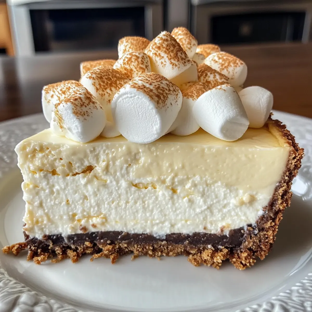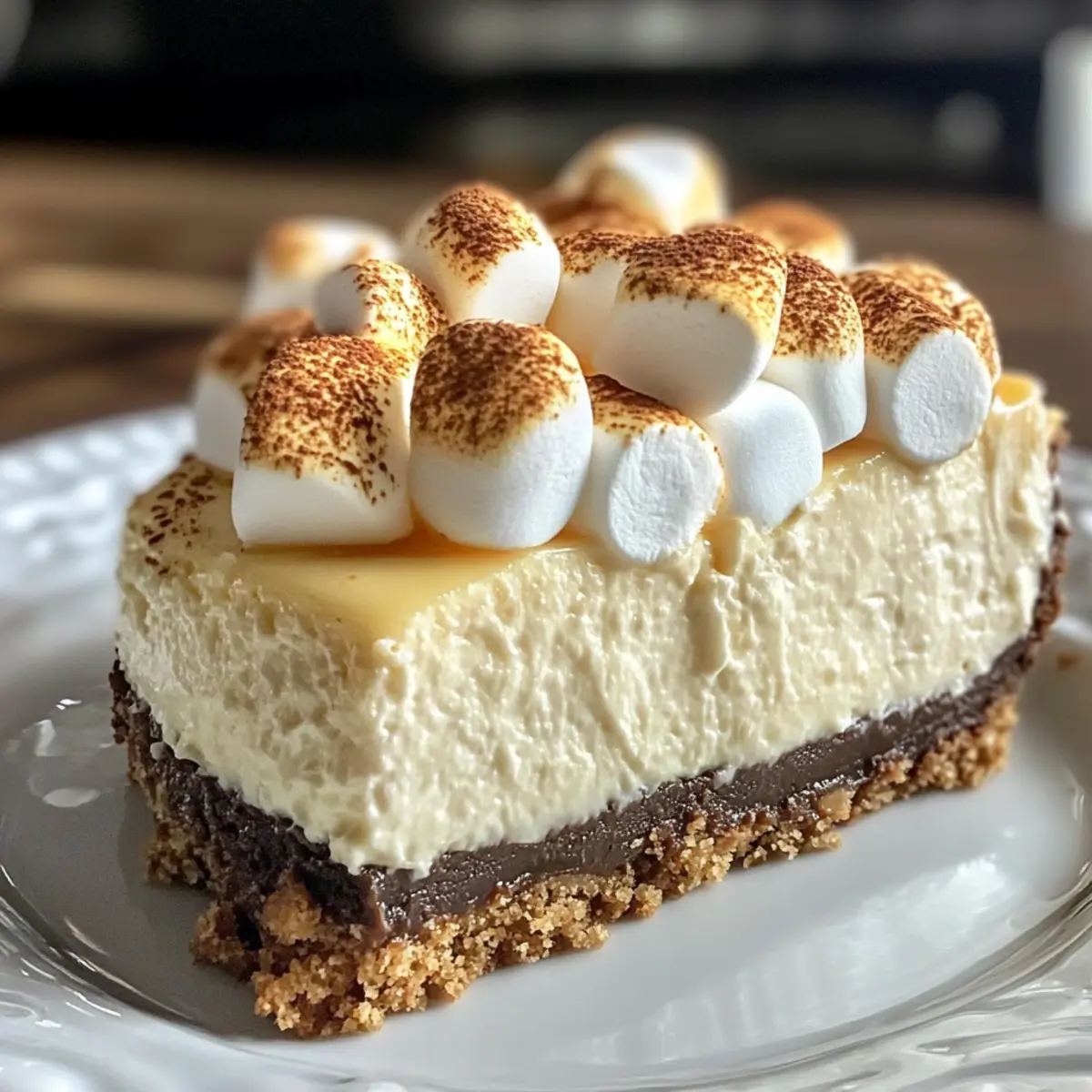 Es war einmal ein Feiertagsabend, der die Sinne zum Schmelzen brachte. Der Duft von frisch gebackenem Käsekuchen drang durch die Küche und zog jeden in seinen Bann. Der dekadent cremige Marshmallow-Käsekuchen mit Graham-Cracker-Boden war das Geheimnis, um alle Geschmäcker zu verwöhnen und den Abend zu etwas ganz Besonderem zu machen. Dieses Rezept kombiniert die unverwechselbare Cremigkeit einer Käsekuchenfüllung mit dem knusprigen Crunch des Graham-Cracker-Bodens und überrauschenden, fluffigen Mini-Marshmallows, die mit einer verführerischen Schokoladensauce getoppt werden. Ein wahrer Gaumenschmaus, der sich hervorragend für festliche Anlässe oder einfach als köstlicher Abschluss eines regulären Essens eignet. Und das Beste daran? Die Zubereitung ist einfach und schnell, sodass du mehr Zeit mit deinen Liebsten verbringen kannst. Wer kann bei dieser Kombination aus cremiger Fülle und köstlichen Texturen schon widerstehen? Schauen wir uns die Rezeptdetails genauer an! Warum dieser Käsekuchen begeistern wird Einfachheit: Die Schritte sind unkompliziert und erfordern nur grundlegende Backfähigkeiten, sodass du schnell zum Genuss kommst. Himmlischer Geschmack: Die Kombination aus cremiger Käsekuchenfüllung und fluffigen Marshmallows sorgt für ein Geschmackserlebnis, das deine Geschmacksknospen verwöhnt. Vielseitigkeit: Du kannst mit den Aromen spielen, indem du verschiedene Auszüge oder Toppings für deinen Käsekuchen ausprobierst – von Karamell bis zu Nüssen, die Möglichkeiten sind endlos! Perfekt für Anlässe: Egal ob Feiertag oder ein einfaches Familienessen, dieser Käsekuchen zieht alle Blicke auf sich und wird zum Gesprächsthema des Abends. Schneller Genuss: Mit der Möglichkeit, ihn im Voraus zuzubereiten, hast du mehr Zeit für deine Gäste – einfach im Kühlschrank lagern, bis du bereit bist zu servieren. Aber schau dir auch unsere anderen köstlichen Desserts an, wie den Klassischen New York Käsekuchen oder den Schokoladenkuchen mit flüssigem Kern! Dekadent cremiger Marshmallow-Käsekuchen Zutaten • Entdecke die perfekten Zutaten für einen köstlichen Käsekuchen! Für den Boden Graham-Cracker-Krümel – Bilden die Basis; du kannst sie auch durch zerdrückte Digestives oder Vanillewaffeln ersetzen. Zucker – Sorgt für die nötige Süße; verwende braunen Zucker für einen tieferen Geschmack im Boden. Ungesalzene Butter – Bindet die Zutaten zusammen und verleiht Reichtum; für eine milchfreie Variante, nutze Kokosnussöl. Für die Füllung Frischkäse – Hauptbestandteil für die cremige Textur; eine fettarme Variante könnte die Konsistenz beeinträchtigen. Vanilleextrakt – Erhöht die Geschmacksfülle; du kannst auch Mandelessenz für eine interessante Note verwenden. Große Eier – Gibt Struktur und Reichhaltigkeit; verwende Eier in Zimmertemperatur für eine bessere Vermischung. Sauerrahm – Fügt dem Füllungstang hinzu; griechischer Joghurt ist eine geeignete Alternative. Mini-Marshmallows – Sorgen für eine fluffige Textur und Süße; können auch durch grob gehackte große Marshmallows ersetzt werden. Schlagsahne – Verleiht zusätzliche Reichhaltigkeit und hilft, eine samtige Textur zu erreichen; Halbfettmilch ist eine leichtere, jedoch weniger reichhaltige Option. Für das Topping Schokoladenstückchen – Geben den dekadenten Schokoladengeschmack; du kannst dunkle oder halbsüße Schokolade entsprechend deiner Vorliebe verwenden. Dieser dekadent cremige Marshmallow-Käsekuchen mit Graham-Cracker-Boden wird sicherlich der Star deines nächsten Festessens sein! Schritt-für-Schritt-Anleitung für Dekadent cremiger Marshmallow-Käsekuchen mit Graham-Cracker-Boden Step 1: Ofen vorheizen und Form vorbereiten Heize deinen Ofen auf 163 °C (325 °F) vor und fette eine 23 cm (9 Zoll) Springform gut ein. Diese Vorbereitung ist wichtig, damit sich der Käsekuchen später leicht lösen lässt. Achte darauf, dass die Form gleichmäßig eingefettet ist, damit der dekadent cremige Marshmallow-Käsekuchen mit Graham-Cracker-Boden nicht anklebt. Step 2: Krümelboden zubereiten Vermische in einer Schüssel die Graham-Cracker-Krümel, den Zucker und die geschmolzene Butter, bis die Mischung der Konsistenz von nassem Sand ähnelt. Fordere deine Hände heraus und drücke die Krümel gleichmäßig in den Boden der Springform. Dies schafft eine knusprige Basis, die perfekt in Kombination mit der cremigen Füllung ist. Step 3: Boden backen Backe den Krümelboden im vorgeheizten Ofen für etwa 10 Minuten, bis er fest und leicht goldbraun ist. Lass ihn nach dem Backen abkühlen, damit der Boden beim Hinzufügen der Käsekuchenfüllung die Textur nicht beeinträchtigt. Die Kühlung ermöglicht es, dass sich das Aroma entfaltet, was zu einem köstlichen Genuss führt. Step 4: Frischkäse cremig schlagen In einer großen Schüssel den Frischkäse mit einem Handmixer auf mittlerer Geschwindigkeit schlagen, bis er vollkommen glatt ist. Dies könnte etwa 2 Minuten dauern. Dann füge den Zucker nach und nach hinzu und schlage weiter, bis die Mischung fluffig und gut vermengt ist. Ein cremiger Frischkäse ist essenziell für den perfekten dekadenten cremigen Marshmallow-Käsekuchen. Step 5: Eier und Vanille hinzufügen Gib den Vanilleextrakt in die Frischkäsemischung und schlage die Eier einzeln unter, bis sie gut eingearbeitet sind. Achte darauf, die Mischung nicht zu übermixen, da das die Konsistenz des Käsekuchens negativ beeinflussen kann. Diese Schritte tragen zur Struktur und Reichtum des Käsekuchens bei. Step 6: Sauerrahm einarbeiten Füge den Sauerrahm zur Käsekuchenfüllung hinzu und verrühre alles nur so lange, bis es gut kombiniert ist. Der Sauerrahm sorgt für zusätzliches Aroma und Feuchtigkeit, wodurch die Cremigkeit des dekadenten cremigen Marshmallow-Käsekuchens verstärkt wird. Mische sanft, damit die Füllung luftig bleibt. Step 7: Marshmallows und Sahne unterheben Füge die Mini-Marshmallows und die Schlagsahne vorsichtig hinzu u
