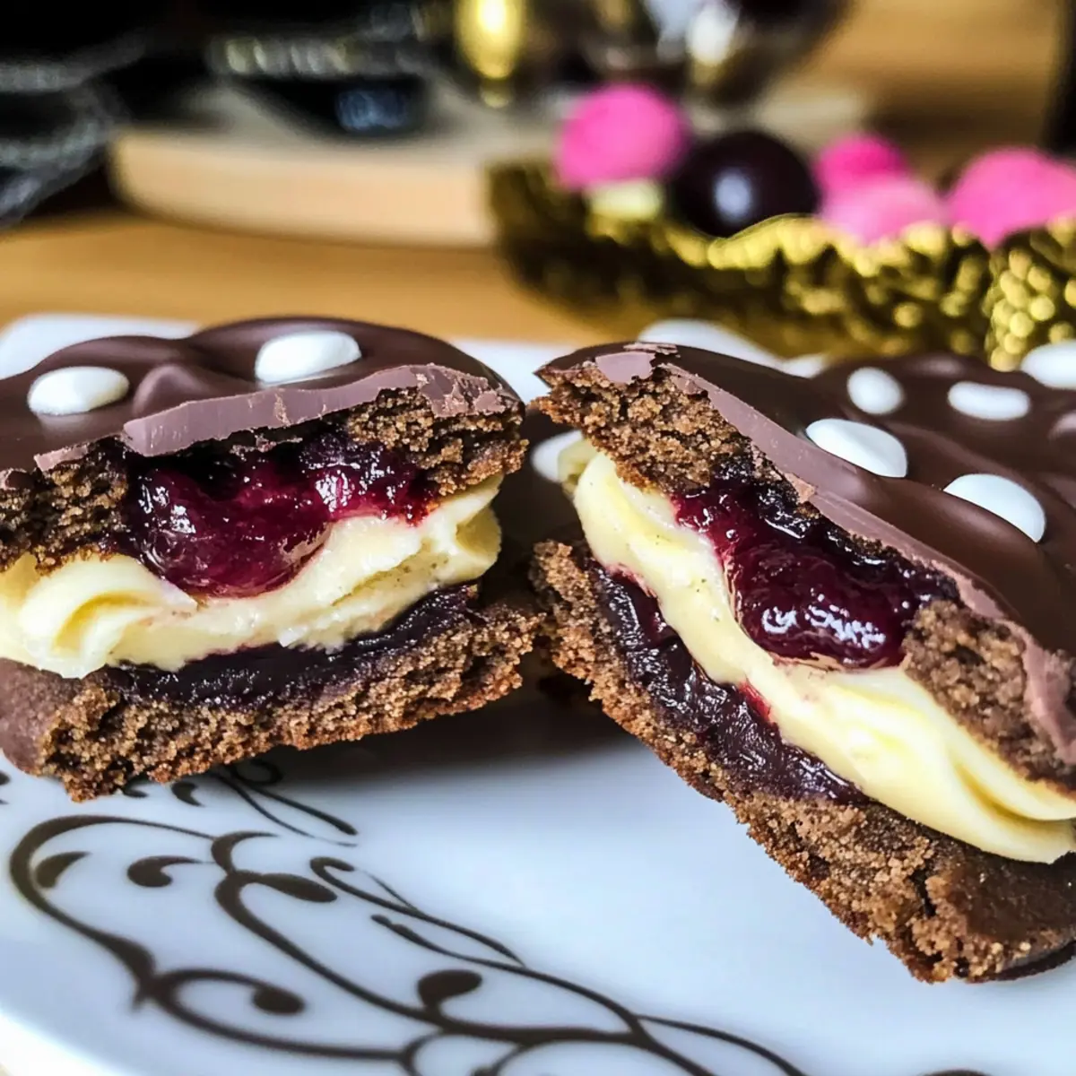 Die Weihnachtszeit steht vor der Tür und bringt die Vorfreude auf herzhaftes Backen mit sich. Heute lade ich euch ein, die köstlichen Donauwellen Plätzchen zuzubereiten – eine unwiderstehliche Kombination aus schokoladigem Genuss und fruchtiger Kirschfüllung. Diese traditionellen deutschen Kekse mit ihrem zarten Marmoreldesign sind nicht nur ein echter Hingucker, sondern auch eine perfekte Ergänzung auf jedem Plätzchenteller. Mit ihrer schnellen Zubereitung sind sie nicht nur ideal für die festliche Zeit, sondern auch ein absolutes Highlight beim Teilen mit Familie und Freunden. Und wer hätte gedacht, dass sich die Aromen so wunderbar zu einem einzigen Keks vereinen lassen? Lasst uns gemeinsam in die Welt der Donauwellen Plätzchen eintauchen und das Fest der Sinne zelebrieren! Warum wirst du diese Plätzchen lieben? Einfachheit, die begeistert: Die Zubereitung dieser Donauwellen Plätzchen erfordert nur grundlegende Backfähigkeiten, sodass jeder sie meistern kann. Himmlischer Genuss: Die Kombination aus zarter Butter, köstlicher Schokolade und fruchtiger Kirschfüllung lässt das Herz jedes Gaumens höher schlagen. Festliche Stimmung: Ihr einzigartiges Marmoreldesign macht sie zu einem Blickfang auf jedem Plätzchenteller und verleiht der Weihnachtszeit eine besondere Note. Vielseitigkeit: Variationen wie Himbeer- oder Erdbeermarmelade bringen frischen Wind in die traditionelle Rezeptur, sodass jeder Geschmack bedient wird. Zeitsparend: Die Plätzchen sind schnell zubereitet und können auch im Voraus gebacken werden, was sie zur perfekten Wahl für geschäftige Feiertage macht. Diese Plätzchen sind nicht nur eine Augenweide, sondern bereichern auch jede festliche Zusammenkunft! Die Genussfreundin: Donauwellen Plätzchen Zutaten Für den Teig Weizenmehl Typ 405 – sorgt für die Struktur der Plätzchen; andere Mehlsorten können die Textur beeinträchtigen. Puderzucker – verleiht Süße und sorgt für einen zarten Biss; der Einsatz von Puderzucker bringt die nötige Weichheit. Vanillezucker – verleiht dem Teig ein feines Vanillearoma, das das Geschmackserlebnis hebt. Salz – balanciert die Süße und intensiviert den Gesamteindruck der Aromen. Ei – bindet die Zutaten und sorgt für die nötige Feuchtigkeit. Eigelb – steigert die Reichhaltigkeit und hilft der Struktur. Butter (gut gekühlt) – gibt den Plätzchen ihre zarte Konsistenz und einen vollen Geschmack. Back-Kakao – fördert den schokoladigen Geschmack der Hälfte des Teigs, der die marmorierte Optik erzeugt. Milch – sorgt für die richtige Teigkonsistenz im Schokoladenteig. Für die Füllung Weiße Schokolade – schmilzt zu einer cremigen Füllung, die für ein himmlisches Geschmackserlebnis sorgt. Kakaobutter – sorgt für eine seidige Textur; kann alternativ durch Kokosfett ersetzt werden. Geriebene Tonkabohne – verleiht der Füllung ein reichhaltiges, vanilleähnliches Aroma. Vanilleextrakt – intensiviert das süße, aromatische Profil der Plätzchen. Honig – bringt zusätzliche Süße und Feuchtigkeit. Kirschmarmelade – fügt eine fruchtige, säuerliche Schicht hinzu, die perfekt mit der Süße harmoniert. Für die Dekoration Dunkle Kuvertüre – wird zum Überziehen der Plätzchen verwendet und verleiht eine reichhaltige Schokoladenschicht. Weiße Schokoplättchen – dienen zur Verfeinerung und optischen Verschönerung der Kekse. Mit all diesen köstlichen Zutaten wirst du die unwiderstehlichen Donauwellen Plätzchen zaubern, die nicht nur auf dem Plätzchenteller leuchten, sondern auch das Herz deiner Liebsten erobern! Schritt-für-Schritt-Anleitung für Die Genussfreundin: Himmlische Donauwellen Plätzchen Step 1: Teigzubereitung Vermische in einer großen Rührschüssel das Weizenmehl, den Puderzucker, Vanillezucker, Salz, das Ei, das Eigelb und die kalte Butter. Knete die Mischung mit den Händen oder einem Handmixer zu einem glatten Teig. Teile den Teig dann in zwei Hälften. Mische in einer Hälfte den Back-Kakao und einen Schuss Milch, um einen dunklen Teig zu erhalten. Wickele beide Teigstücke in Frischhaltefolie und lasse sie 30 Minuten im Kühlschrank ruhen. Step 2: Ausrollen und Ausstechen Heize deinen Ofen auf 180°C (356°F) vor. Rolle die beiden Teighälften auf einer leicht bemehlten Fläche gleichmäßig aus, bis sie etwa 5 mm dick sind. Verwende einen runden Ausstecher mit einem Durchmesser von 5 cm, um Kreise aus dem hellen und dunklen Teig auszustechenn. Schneide in die hellen Kreise mit einem kleinen Ausstecher ein Loch in die Mitte, um die typische Optik der Donauwellen Plätzchen zu erhalten. Step 3: Backen Lege die ausgestochenen Teigkreise auf ein mit Backpapier ausgelegtes Backblech. Backe die Plätzchen für etwa 8-10 Minuten, bis sie leicht goldbraun sind. Achte darauf, dass sie nicht zu dunkel werden, da sie beim Abkühlen noch fest werden. Nachdem sie fertig gebacken sind, lasse sie auf einem Gitterrost abkühlen. Step 4: Füllungszubereitung Während die Plätzchen auskühlen, schmelze die weiße Schokolade und die Kakaobutter in einer Metallschüssel über einem heißen Wasserbad. Rühre die geriebene Tonkabohne, Vanilleextrakt und den Honig unter, bis eine homogene Masse entsteht. Achte darauf, die Mischung nicht zu überhitzen, um die schöne cremige Konsistenz zu erhalten. Step 5: Zusammenbauen Verteile die Schokoladenfüllung großzügig auf den dunklen Plätzchen. Setze dann jeweils einen Teigboden mit einem Loch auf die mit Füllung bestrichenen Plätzchen. Füge einen kleinen Klecks erwärmte Kirschmarmelade auf die Schokoladenfüllung hinzu, um die fruchtige Note hervorzuheben. Step 6: Dekoration Schmelze die dunkle Kuvertüre im Wasserbad und tauche die Ränder der gefüllten Plätzchen in die Schokolade, sodass sie gleichmäßig bedeckt sind. Lass die überzogenen Plätzchen auf einem Gitter setzen, bis die Schokolade fest ist. Dekoriere sie anschließend nach Belieben mit weißen Schokoplättchen oder anderen Garnierungen für einen festlich