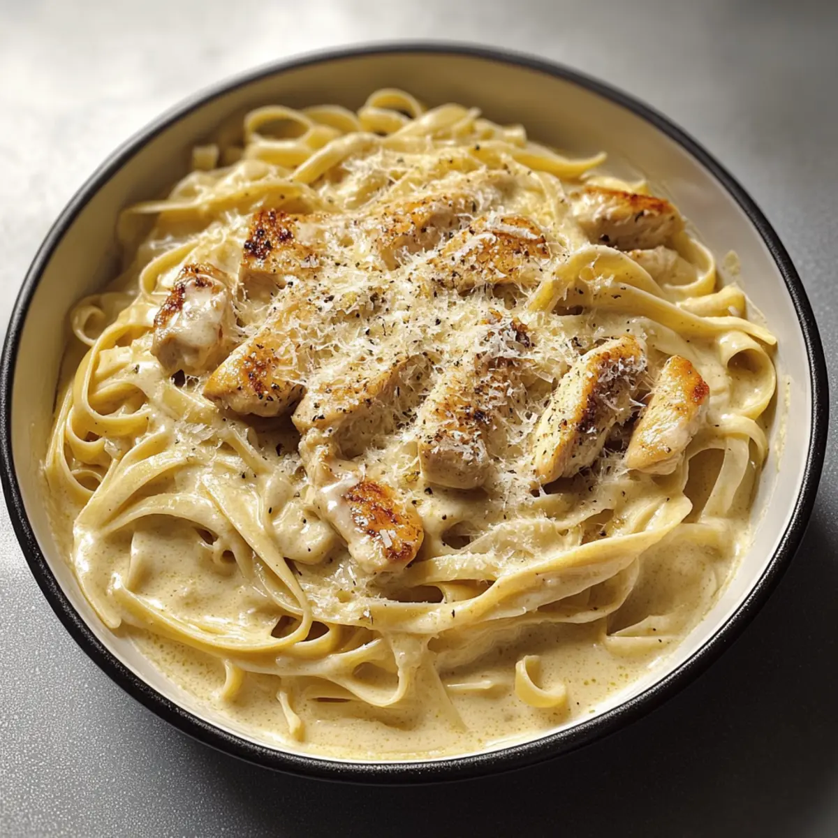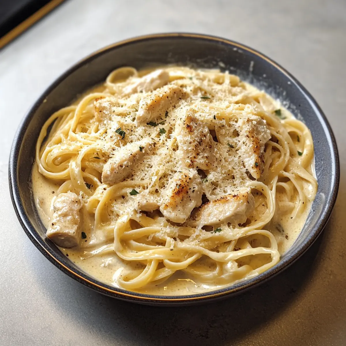 Es ist erstaunlich, wie ein einfaches Gericht wie Ein Topf Hähnchen Alfredo jede Woche zu einem kleinen Festessen verwandeln kann. Diese cremige Pasta umhüllt jede Gabel mit einem köstlichen Parmesan-Sahne-Sauce, die einfach unwiderstehlich ist. Aber das Beste daran? Sie benötigt nur einen Topf! Das bedeutet weniger Geschirr und mehr Zeit, um mit der Familie zu entspannen. Bei der Zubereitung dieser budgetfreundlichen Mahlzeit wird Ihr Zuhause mit den verführerischen Aromen von Knoblauch und frisch gekochter Pasta durchzogen, was garantiert jedem ein Lächeln ins Gesicht zaubert. Was könnte besser sein als ein Gericht, das so schnell gemacht ist und so gut schmeckt? Lassen Sie uns gemeinsam in die Welt dieser cremigen Köstlichkeit eintauchen! Warum werden Sie dieses Rezept lieben? Einfachheit: Mit nur einem Topf ist die Zubereitung mühelos und schnell, perfekt für hektische Abende. Cremiger Genuss: Die reichhaltige Parmesan-Sahne-Sauce verwandelt jedes Bissen in eine Geschmacksexplosion, die Sie begeistert. Vielfältige Anpassungsmöglichkeiten: Ob mit frischem Spinat oder sautierten Champignons – Sie können das Rezept nach Ihrem Geschmack variieren. Budgetfreundlich: Dieser Genuss bleibt Ihr Geheimnis; hochwertige Zutaten müssen nicht teuer sein. Familienfreundlich: Kinder und Erwachsene lieben die Zutaten, was es zu einem idealen Gericht für alle macht. Warum nicht auch die Kochzeit optimieren, indem Sie gebratenes Hähnchen in diesem Rezept verwenden? Ein Topf Hähnchen Alfredo Zutaten • Entdecken Sie die köstlichen Zutaten, die dieses Gericht so besonders machen! Für die Sauce und Pasta Trockene Fettuccine-Nudeln – Die Basis des Gerichts, die die Aromen der Sauce aufnimmt. Variationen: Penne oder Linguine können ebenfalls verwendet werden. Gekochte Hähnchenstücke – Sorgt für eine herzliche Proteinquelle. Tipp: Verwenden Sie Rotisserie-Hähnchen für schnellere Vorbereitung. Ungezählte Butter – Bildet die Grundlage der Sauce und sorgt für reichhaltigen Geschmack. Hinweis: Gesalzene Butter kann ebenfalls verwendet werden; beachten Sie das Salz. Knoblauchzehen – Fügt Wärme und Aroma hinzu; unerlässlich für eine geschmackliche Tiefe. Frisch gehackter Knoblauch wird empfohlen für das beste Ergebnis. Sahne – Unverzichtbar für die charakteristische Cremigkeit und geschmeidige Textur. Verschlankungsoption: Halbe-Halbe für eine leichtere Variante; wird weniger dick. Wasser – Kochmedium für die Pasta direkt in der Sauce, was den Geschmack verstärkt. Tipp: Passen Sie die Flüssigkeitsmenge mit mehr oder weniger Sahne je nach gewünschter Dicke an. Geriebener Parmesan – Liefert herzhafte Tiefe; schmilzt wunderbar in der Sauce. Hinweis: Frisch geriebener Parmesan ist für die beste Schmelzfähigkeit bevorzugt; Grana Padano kann ein Ersatz sein. Salz – Balanciert den Reichtum des Gerichts. Nach Geschmack anpassen. Schwarzer Pfeffer – Fügt subtile Wärme hinzu. Verwenden Sie frisch gemahlenen Pfeffer für ein besseres Aroma. Für die Garnierung Zusätzlicher Parmesan – Für einen herzhaften Abschluss; verleiht dem Gericht eine zusätzliche Käsenote. Schritt-für-Schritt-Anleitung für Ein Topf Hähnchen Alfredo Step 1: Butter schmelzen Erhitzen Sie in einem großen, tiefen Topf oder einem Schmortopf bei mittlerer Hitze die ungesalzene Butter. Warten Sie, bis sie vollständig geschmolzen ist, und beginnen Sie sofort, den frisch gehackten Knoblauch hinzuzufügen. Sautieren Sie den Knoblauch für etwa 1-2 Minuten, bis er goldbraun und aromatisch ist, und achten Sie darauf, dass er nicht verbrennt. Step 2: Flüssigkeiten hinzufügen Gießen Sie nun das Wasser und die Sahne in den Topf, während Sie die Mischung sanft umrühren. Erhöhen Sie die Hitze leicht, um die Flüssigkeit zum Sanften Simmern zu bringen. Achten Sie darauf, die Mischung regelmäßig zu rühren, um ein Ansetzen am Boden des Topfes zu verhindern, während Sie auf die nächste Phase warten. Step 3: Pasta und Hähnchen einfügen Fügen Sie die trockenen Fettuccine-Nudeln sowie die gekochten Hähnchenstücke in den Topf hinzu. Stellen Sie sicher, dass die Nudeln vollständig in der Flüssigkeit eingetaucht sind. Reduzieren Sie die Hitze auf mittlere Stufe und lassen Sie alles für etwa 15-20 Minuten köcheln, wobei Sie gelegentlich umrühren, bis die Nudeln al dente und die Sauce dicklich ist. Step 4: Parmesan und Gewürze hinzufügen Sobald die Nudeln die gewünschte Konsistenz erreicht haben, rühren Sie den geriebenen Parmesan sowie das Salz und den frisch gemahlenen schwarzen Pfeffer in die Mischung. Rühren Sie alles gut um, damit der Käse schmilzt und gleichmäßig in der Sauce verteilt wird, sodass das Ein Topf Hähnchen Alfredo eine herrliche cremige Textur annimmt. Step 5: Abschmecken und servieren Probieren Sie die Sauce und passen Sie nach Belieben die Gewürze an. Wenn notwendig, fügen Sie zusätzliches Salz oder Pfeffer hinzu, um den Geschmack zu intensivieren. Servieren Sie Ihr Ein Topf Hähnchen Alfredo warm, garniert mit zusätzlichem Parmesan, direkt aus dem Topf und genießen Sie die geschmackvolle Zusammenkunft! Ein Topf Hähnchen Alfredo Variationen Gestalten Sie Ihr Gericht nach Ihren Wünschen und verleihen Sie ihm eine persönliche Note, die Ihre Sinne anspricht! Vegetarisch: Verwenden Sie anstelle von Hähnchen gegrillte Zucchini oder Auberginen für eine köstliche fleischfreie Option. Diese Gemüsevariationen bringen eine neue Textur und Geschmack in Ihr Gericht, während sie dennoch wunderbar mit der cremigen Sauce harmonieren. Schärfer: Fügen Sie eine Prise Cayennepfeffer oder frische Jalapeños hinzu, um dem Gericht einen würzigen Kick zu verleihen. Die Wärme wird zur perfekten Ergänzung der sanften Cremigkeit der Alfredo-Sauce, wodurch ein ausgewogenes Geschmackserlebnis entsteht. Extravagant: Experimentieren Sie mit Meeresfrüchten wie Garnelen oder Muscheln für eine luxuriöse Note. Diese Zutat bringt das Gericht auf ein neues Niveau und sorgt