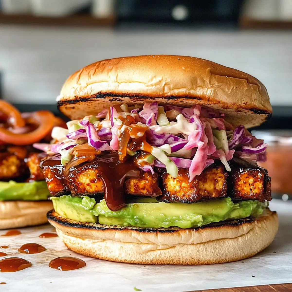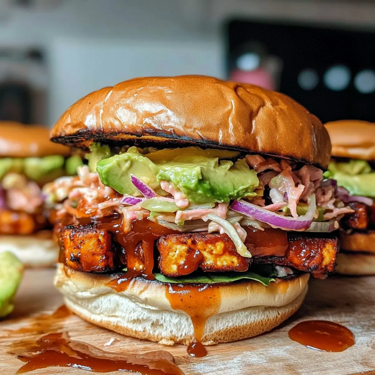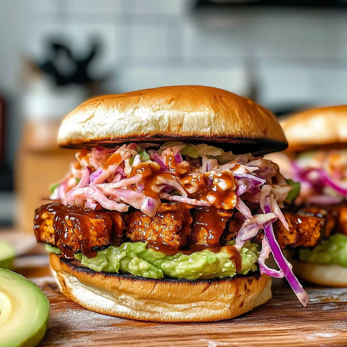 Die Sonne strahlt und der Grillrauch zieht durch die Luft – der perfekte Moment, um ein köstliches Essen zuzubereiten. Heute stelle ich euch mein Lieblingsrezept für ein einfaches BBQ Tofu Sandwich mit zerdrückter Avocado vor, das nicht nur vegan ist, sondern auch noch im Handumdrehen zubereitet werden kann. Mit dem herzhaften, „gezogenen“ Tofu, der in einer würzigen BBQ-Sauce mariniert wird, und der cremigen Avocado, ist dieses Sandwich ein wahrer Genuss, der selbst die hungrigsten Gäste begeistern wird. Egal, ob bei einer Sommerparty oder als schnelles Mittagessen – diese Kombination ist ein perfekter Begleiter! Seid ihr bereit, euren Grillabend auf das nächste Level zu heben und spannende Geschmäcker zu entdecken? Warum wirst du dieses Rezept lieben? Einfachheit: Die Zubereitung ist unkompliziert und erfordert nur grundlegende Kochkenntnisse, perfekt für alle, die nach schnellen Rezepten suchen. Herzhafter Geschmack: Der rauchige BBQ-Geschmack des Tofus, gepaart mit der cremigen Avocado, sorgt für einen intensiven und köstlichen Genuss, den du immer wieder erleben möchtest. Vielseitigkeit: Dieses Sandwich lässt sich leicht anpassen! Probiere es mit verschiedenen BBQ-Saucen oder ersetze den Tofu durch Tempeh, um deinen eigenen Twist zu kreieren. Perfekte Textur: Der Kontrast von knusprigen und cremigen Komponenten macht jeden Biss zu einem Erlebnis. Schnelles Gericht: Ideal für vielbeschäftigte Tage – in weniger als 30 Minuten zubereitet, ist es perfekt für ein schnelles Mittagessen oder eine ungezwungene Grillparty. Beliebtheit: Dieses Rezept wird deine Freunde und Familie begeistern und ihre Liebe zu veganen Gerichten wecken. Wenn du nach weiteren schnellen veganen Gerichten suchst, schau dir auch unser Rezept für vegane Coleslaw an! Einfache BBQ Tofu Sandwich Zutaten Für die Pickles: Hausgemachte eingelegte Zwiebeln – Fügt eine spritzige Note und Knusprigkeit hinzu; im Kühlschrank bis zu einer Woche haltbar. Für die Füllung: Veganer Coleslaw-Mix – Sorgt für Cremigkeit und Textur; vorgefertigte Mischungen sparen Zeit. Super fester Tofu – Hauptproteinequelle; sollte für besseren Geschmack zerkleinert werden. Achte darauf, super fest zu verwenden, um die optimale Konsistenz zu gewährleisten. Olivenöl – Zum Braten von Tofu; kann durch jedes andere Pflanzliche Öl ersetzt werden. Veganer BBQ-Sauce – Bietet rauchige Süße; Marken wie Stubbs werden empfohlen. Avocado – Fügt Cremigkeit hinzu; direkt vor dem Servieren zerdrücken, um Bräunung zu vermeiden. Limettensaft – Verstärkt den Avocado-Geschmack; kann auch durch Zitronensaft ersetzt werden. Salz und schwarzer Pfeffer – Grundgewürze zur Geschmacksverstärkung. Hochwertige Brötchen oder Kaiserbrötchen – Halten das Sandwich zusammen; Toasten verbessert die Textur. Brot-und-Butter-Pickles – Fügt eine süße Knusprigkeit hinzu; optional, aber empfohlen für zusätzlichen Geschmack. Schritt-für-Schritt-Anleitungen für Einfache BBQ Tofu Sandwich mit zerdrückter Avocado Step 1: Zwiebeln einlegen Schneide eine Zwiebel in dünne Ringe und vermische diese in einer Schüssel mit 100 ml Apfelessig, 50 ml Wasser, 1 Esslöffel Zucker und 1 Teelöffel Salz. Lass die Mischung mindestens 30 Minuten, besser 1-2 Stunden, stehen, damit die Zwiebeln die Aromen aufnehmen. Dies verleiht deinem Sandwich Frische und eine angenehme Säure. Step 2: Vegan Coleslaw zubereiten In einer Schüssel kombinierst du 150 g vegane Mayonnaise, 2 Esslöffel Apfelessig, 1 Teelöffel Zucker, ½ Teelöffel Salz, ¼ Teelöffel Pfeffer und 1 Teelöffel Senfpulver. Füge 200 g fertigen Coleslaw-Mix hinzu und rühre alles gut um. Lasse den Coleslaw bis zum Servieren im Kühlschrank, damit sich die Aromen miteinander verbinden und der Salat schön kühl bleibt. Step 3: BBQ Tofu kochen Nimm 400 g super festen Tofu, lasse ihn abtropfen und blotte ihn mit einem Küchentuch, um überschüssige Flüssigkeit zu entfernen. Zerreibe den Tofu mithilfe einer Reibe in eine heiße Pfanne mit 2 Esslöffeln Olivenöl bei mittlerer Hitze. Brate den Tofu 5-6 Minuten lang, bis er goldbraun ist. Füge 200 ml vegane BBQ-Sauce hinzu und koche die Mischung für weitere 10-15 Minuten, bis der Tofu gut glasiert und leicht angebraten ist. Step 4: Avocado-Dip vorbereiten Schneide 1 reife Avocado und gib das Fruchtfleisch in eine Schüssel. Füge den Saft von 1 Limette, 1 Prise Salz und etwas schwarzen Pfeffer hinzu. Zerdrücke die Mischung mit einer Gabel zu einer cremigen Paste. Halte diese Zubereitung bereit, damit sie frisch bleibt und die Avocado nicht braun wird. Step 5: Sandwich zusammenstellen Röste 4 hochwertige Brötchen oder Kaiserbrötchen, um eine knusprige Textur zu erzielen. Verteile die zerdrückte Avocado gleichmäßig auf beiden Brötchenhälften. Schichte dann eine großzügige Portion BBQ Tofu, gefolgt von veganem Coleslaw und einigen eingelegten Zwiebeln auf jede Hälfte. Optional kannst du auch einige Brot-und-Butter-Pickles für einen zusätzlichen Geschmack hinzufügen, bevor du das Sandwich schließt und servierst. Expert Tips für das BBQ Tofu Sandwich Vorbereitung ist alles: Bereite die eingelegten Zwiebeln und den Coleslaw im Voraus vor, damit die Aromen gut durchziehen und du beim Zusammenstellen des Sandwichs Zeit sparst. Die richtige Tofu-Wahl: Verwende super festen Tofu, um überschüssige Feuchtigkeit zu vermeiden und sicherzustellen, dass das Sandwich nicht matschig wird, wenn das BBQ Tofu packt. Perfekt grillen: Lass den Tofu lange genug kochen, um eine leicht angebrannte Kruste zu entwickeln. Das gibt dem BBQ Tofu eine großartige Textur und intensiven Geschmack. Avocado frisch halten: Zerdrücke die Avocado nur kurz vor dem Servieren, um eine braune Oberfläche zu vermeiden. Der Geschmack bleibt so optimal und frisch für dein Sandwich. Experimentiere mit Saucen: Variiere den BBQ-Geschmack, indem du verschiedene Sorten ausprobierst – süß, würzig oder smokey – um dein Einfache BBQ Tofu Sandwich mit z