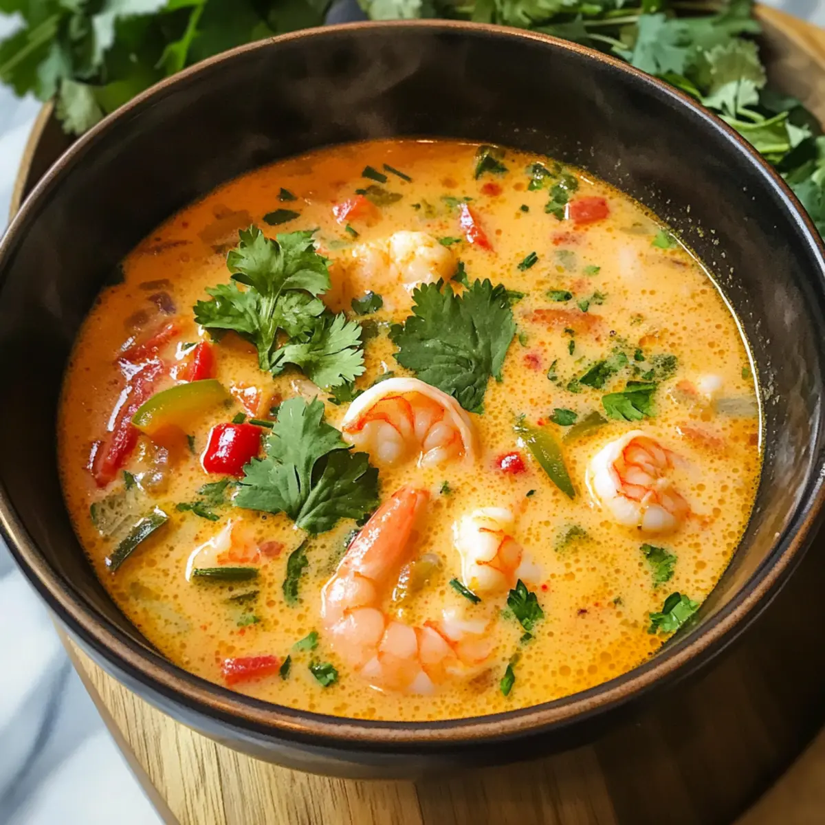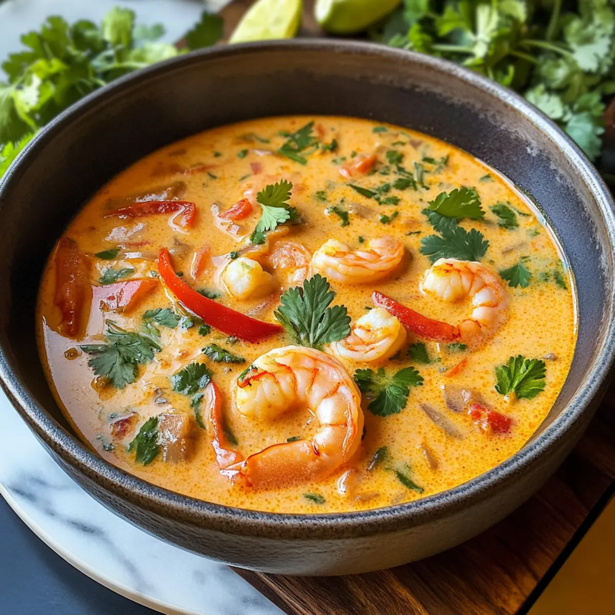 Während ich vor kurzem durch die Straßen eines kleinen thailändischen Marktes schlenderte, wurde ich von den verlockenden Düften köstlicher Gerichte angezogen. Diese Erlebnisse haben mich inspiriert, eine einfache Thai Garnelen Suppe zu kreieren, die nicht nur in wenigen Minuten zubereitet ist, sondern auch nach Urlaub schmeckt. Mit cremiger Kokosmilch und würzigem roten Curry begeistert sie sowohl Anfänger als auch erfahrene Köche. Die Aromen sind ein Hochgenuss, und die Suppe eignet sich perfekt als schnelles, gesundes Abendessen unter der Woche oder für ein gemütliches Wochenende. Bereit, in die Welt der thailändischen Küche einzutauchen und eure Geschmacksnerven zu verwöhnen? Dann lasst uns gemeinsam dieses Rezept entdecken! Warum ist diese Suppe so besonders? Einfachheit: Mit nur wenigen Zutaten und einer klaren Anleitung kannst du diese aromatische Thai Garnelen Suppe in nur 30 Minuten zubereiten. Selbst Kochanfänger werden begeistert sein! Vielseitigkeit: Diese Suppe lässt sich leicht anpassen, indem du Garnelen durch Hühnchen ersetzt oder spannende Gemüsevariationen hinzufügst. Geschmacksexplosion: Die Kombination aus cremiger Kokosmilch, würzigem roten Curry und frischen Kräutern schafft ein unvergleichliches Geschmackserlebnis. Gesund und nahrhaft: Diese Suppe ist nicht nur glutenfrei, sondern enthält auch gesunde Zutaten, die für das Wohlbefinden sorgen – perfekt, um schnell gesundes Essen zu genießen. Beliebtheit: Diese Suppe ist ein Publikumsmagnet! Egal ob für die Familienküche oder ein geselliges Abendessen, sie wird jedem schmecken und bleibt in bester Erinnerung. Bereit, dein Kochrepertoire zu erweitern? Lass dir dieses köstliche Rezept nicht entgehen! Einfache Thai Garnelen Suppe Zutaten • Für die Basis 1 Tasse Basmati-Reis – Sorgt für eine herzliche Grundlage der Suppe; kann durch Jasminreis ersetzt werden für ein traditionelleres thailändisches Aroma. 3 Tassen Gemüsebrühe – Bildet die Basis der Suppe; kann durch Hühnerbrühe für einen intensiveren Geschmack ersetzt werden. • Für die Suppe 1 Pfund mittelgroße Garnelen, geschält und entdarmt – Liefert Protein und einen süßen Meeresgeschmack; kann mit Hühnchen für eine fleischigere Option substituiert werden. 2 Esslöffel ungesalzene Butter – Fügt der Suppe Reichtum und Tiefe hinzu; kann durch Kokosöl für eine milchfreie Variante ersetzt werden. 1 Zwiebel, gewürfelt – Bringt Süße und Textur in die Brühe; keine direkte Ersatzempfehlung. 1 rote Paprika, gewürfelt – Fügt Farbe und Süße hinzu; kann mit jeder Paprikavariante ersetzt werden. 2 Esslöffel rote Currypaste – Die Basis des Geschmacks der Suppe; kann mit gelber Currypaste für einen milderen Geschmack substituiert werden. 3 Knoblauchzehen, gehackt – Fügt der Suppe aromatische Tiefe hinzu; keine Ersatzempfehlungen für optimalen Geschmack. 1 Esslöffel frisch geriebener Ingwer – Bringt eine warme, würzige Note; kann durch gemahlenen Ingwer ersetzt werden, aber frisch ist am besten. 1 (400 ml) Dose Kokosmilch – Schafft eine cremige Textur; optiere für leichte Kokosmilch für eine kalorienärmere Wahl. 2 Esslöffel frisch gepresster Limettensaft – Bringt die Aromen der Suppe zum Strahlen; frische Limette sorgt für den besten Geschmack. 2 Esslöffel gehackte frische Korianderblätter – Fügt Frische und eine kräutrige Note hinzu; kann bei Bedarf durch Petersilie ersetzt werden. • Für die Würze Koscheres Salz und frisch gemahlener schwarzer Pfeffer, nach Geschmack – Verbessert den Gesamteindruck des Gerichts; würze nach persönlichem Geschmack. Die einfache Thai Garnelen Suppe wird mit ihrer Kombination aus frischen Zutaten und aromatischen Gewürzen sicherlich Aromen entfachen, die Entzücken hervorrufen! Schritt-für-Schritt-Anleitung für die Einfache Thai Garnelen Suppe Step 1: Reis kochen In einem großen Topf bringe 1,5 Tassen Wasser zum Kochen. Füge die 1 Tasse Basmati-Reis hinzu und reduziere die Hitze auf niedrig. Decke den Topf ab und lasse den Reis etwa 15 Minuten köcheln, bis das Wasser vollständig aufgesogen ist. Rühre den Reis mit einer Gabel auf, wenn er fertig ist, und stelle ihn beiseite. Step 2: Garnelen würzen Nehme 1 Pfund mittelgroße Garnelen und würze sie großzügig mit Koscherem Salz und frisch gemahlenem schwarzen Pfeffer. Stelle sicher, dass die Garnelen gleichmäßig gewürzt sind, damit sich die Aromen gut entfalten können. Dies gibt der einfachen Thai Garnelen Suppe bereits eine hervorragende Grundlage. Step 3: Garnelen anbraten In einem großen Suppentopf oder einem Schmortopf erhitze 2 Esslöffel ungesalzene Butter bei mittelhoher Hitze. Gib die gewürzten Garnelen in den Topf und brate sie ca. 2-3 Minuten lang, bis sie leicht rosa und durchgehend gar sind. Nimm die Garnelen aus dem Topf und stelle sie auf einen Teller, während du die restlichen Zutaten zubereitest. Step 4: Gemüse anbraten Füge die gewürfelte Zwiebel und die rote Paprika in den Topf hinzu. Brate sie bei mittlerer Hitze für etwa 3-4 Minuten, bis sie weich und leicht golden sind. Achte darauf, dass das Gemüse noch etwas Biss hat und dir Farbe sowie Süße in die einfache Thai Garnelen Suppe bringt. Step 5: Gewürze hinzufügen Rühre 2 Esslöffel rote Currypaste, 3 gehackte Knoblauchzehen und 1 Esslöffel frisch geriebenen Ingwer unter das Gemüse. Koche diese Mischung 2 Minuten lang, bis sie aromatisch wird und die Aromen sich entfalten. Die Gewürze sorgen dafür, dass die Suppe ihren charakteristischen thailändischen Geschmack erhält. Step 6: Brühe und Kokosmilch hinzufügen Gieße 1 (400 ml) Dose Kokosmilch und 3 Tassen Gemüsebrühe in den Topf. Würze die Mischung mit Salz und Pfeffer nach Geschmack. Lasse die Mischung zum Kochen bringen, sobald sie köchelt, reduziere die Hitze und lasse sie etwa 8-10 Minuten simmern, bis die Suppe leicht eingedickt ist. Step 7: Fertigstellen der Suppe Füge nun den gekochten Reis, die angebratenen Garnelen, 2 Esslöffel fris