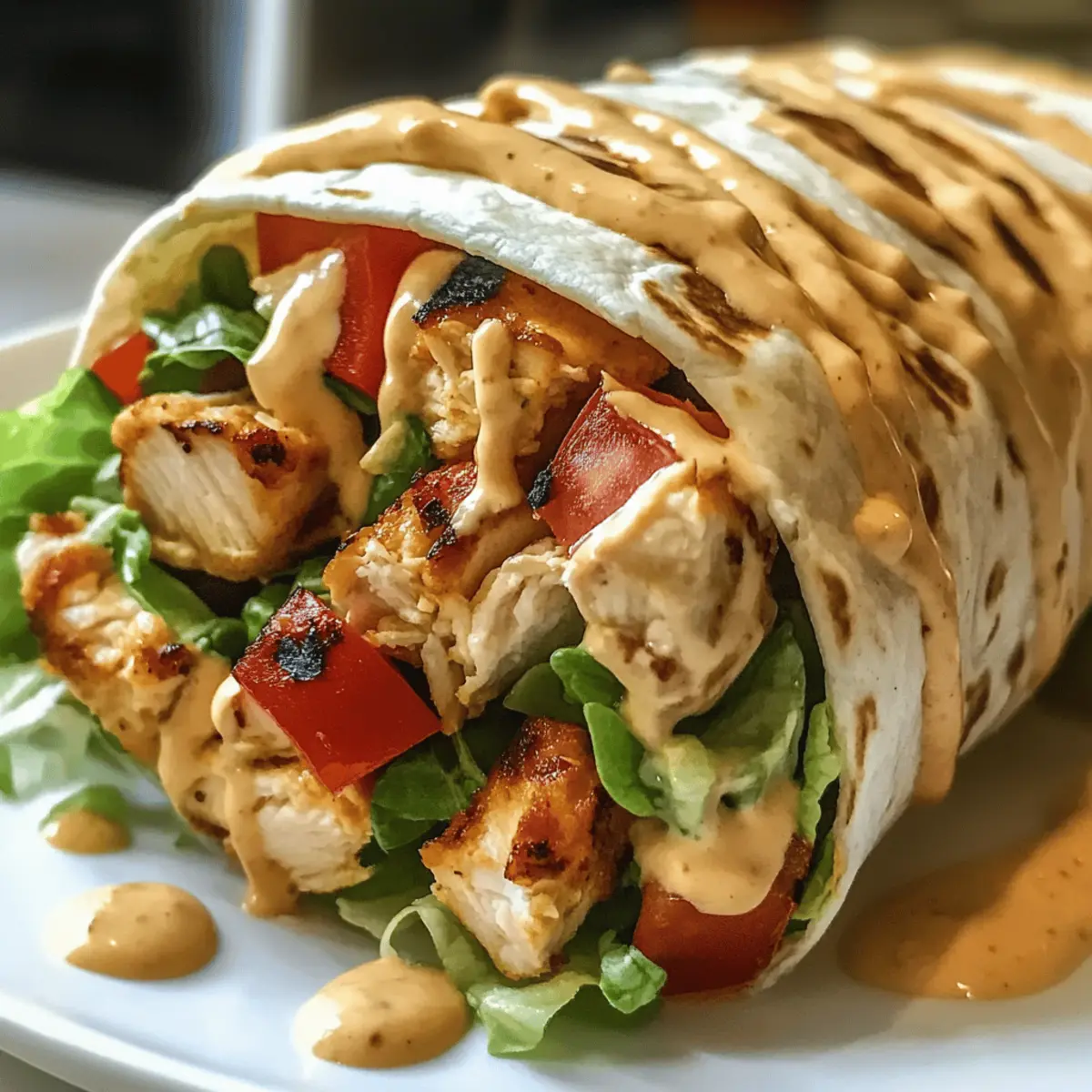 Ein einfacher und schmackhafter Burrito mit gegrilltem Hühnchen und würziger Chipotle Ranch Sauce.