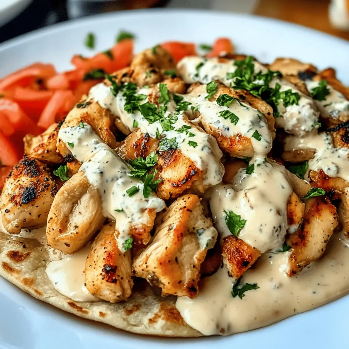 Einfache Hähnchen-Gyros mit cremiger Sauce