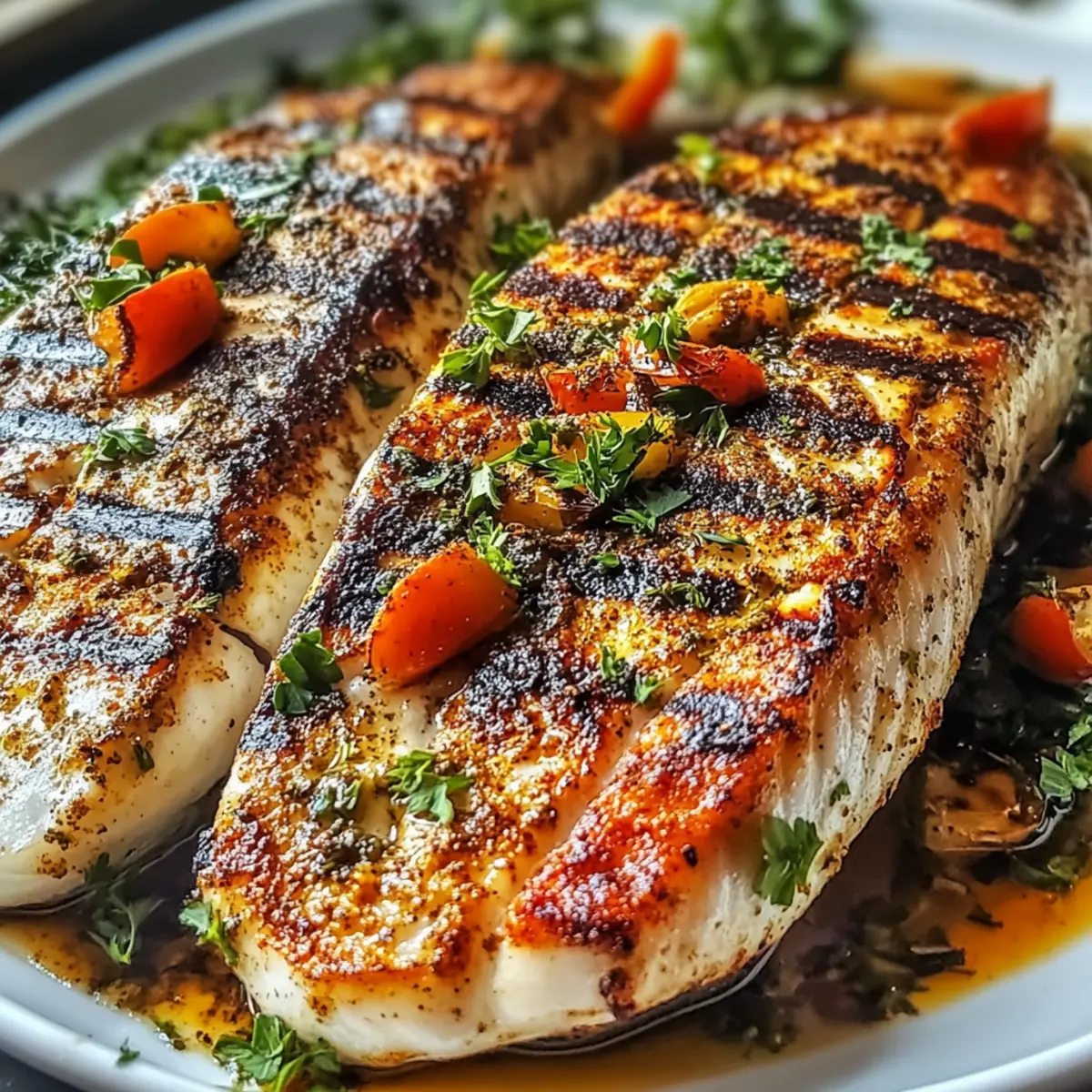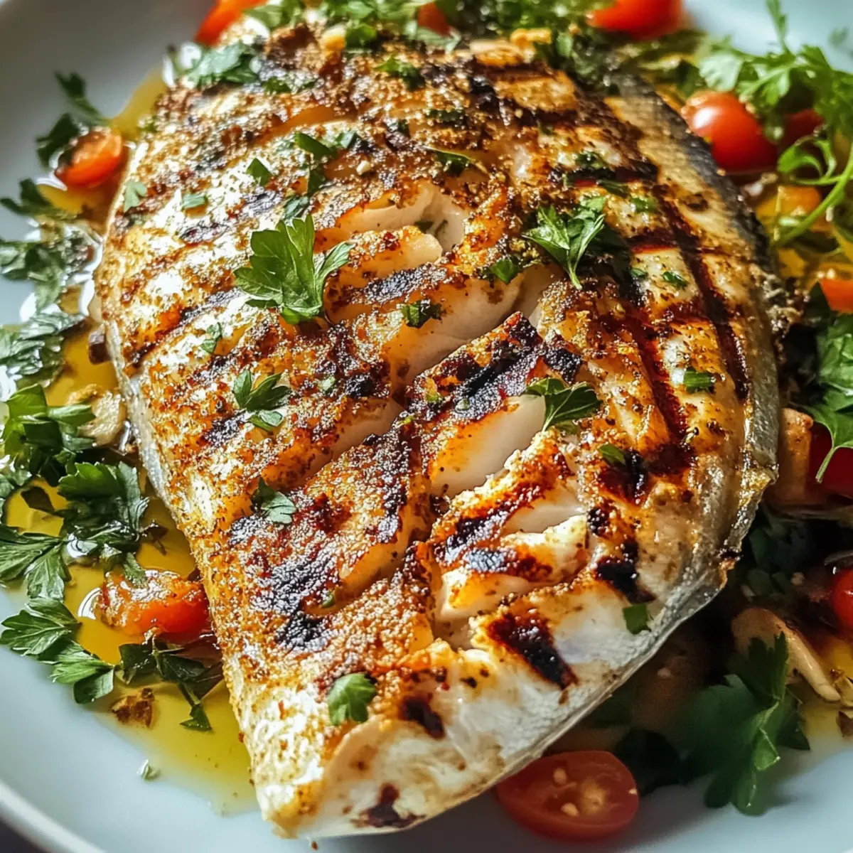 Der Duft von frisch zubereitetem Fisch kann Erinnerungen wecken, die einen in die Kindheit zurückversetzen: Ein sommerlicher Abend, die Vorfreude auf das Grillen im Garten und das gemütliche Beisammensein mit Freunden. Mein einfaches und köstliches Ofen gegrilltes Fischrezept ist genau das, was Sie brauchen, wenn sich der Heißhunger auf Fisch bemerkbar macht, ohne dass Sie den ganzen Nachmittag in der Küche verbringen müssen. Mit zarten Filets, die mit aromatischen Gewürzen gefüllt sind, ist dieses Gericht nicht nur schnell zubereitet, sondern auch eine gesunde Alternative zu frittierten Optionen. Die Kombination aus gesunden Inhaltsstoffen und variablen Fischarten macht es zum perfekten Gericht für jede Gelegenheit – ob für ein entspanntes Abendessen unter der Woche oder zum Beeindrucken von Gästen bei einem Festessen. Neugierig, welche Gewürzkombination Ihre Küche verzaubern könnte? Warum Sie dieses Rezept lieben werden Einfachheit, die begeistert: Die Zubereitung ist kinderleicht und erfordert keine speziellen Küchenkenntnisse. Vielfältigkeit: Dieses Rezept lässt sich je nach Fischwahl und verwendeten Gewürzen ganz nach Ihrem Geschmack anpassen. Gesund, schnell und nährstoffreich: Mit nur 192 Kalorien pro Portion ist dieses Gericht eine hervorragende Wahl für alle, die auf ihre Ernährung achten. Armen an Geschmack: Die Kombination aus frischen Zutaten und aromatischen Gewürzen bringt den vollen Geschmack des Fisches zur Geltung. Und warum nicht dazu eine erfrischende Quinoasalat oder einige ofengeröstete Gemüse machen, um das Gericht zu ergänzen? Entdecken Sie auch mein Tomatenrisotto Rezept Cremigen für eine tolle Beilage! Einfaches und köstliches Ofen gegrilltes Fischrezept Zutaten für das Rezept: • Hier ist eine schmackhafte Zusammenstellung der Zutaten für Ihr Ofen gegrilltes Fischrezept: Fisch (lachs, kabeljau, tilapia oder forelle) – Hauptproteinquelle; wählen Sie feste Sorten für das beste Ergebnis. Öl (1 Esslöffel) – Zum Sautéen der Schalotten; beiträgt zur Reichhaltigkeit des Gerichts. Alternativ verwenden Sie Olivenöl für einen leichteren Geschmack. Schalotten (⅓ Tasse, dünn geschnitten) – Für Süße und Geschmacksvielfalt; können bei Bedarf durch Zwiebeln ersetzt werden. Ingwer-Knoblauch-Paste (1 Teelöffel) – Fügt Wärme und aromatischen Geschmack hinzu; verwenden Sie alternativ geriebenen Ingwer und Knoblauch (½ Teelöffel jeweils). Roter Chili-Pulver (1 Teelöffel oder Paprika) – Gibt Schärfe und Farbe; je nach Geschmack anpassen oder mit Cayenne für extra Würze ersetzen. Kurkuma (¼ Teelöffel) – Fügt erdigen Geschmack und eine schöne goldene Farbe hinzu. Garam Masala (¾ Teelöffel) – Eine Gewürzmischung, die den Gesamtgeschmack verstärkt; keine Substitution notwendig, um die Authentizität zu bewahren. Korianderpulver (1 Teelöffel) – Fügt zitrusartige Noten hinzu. Zitronensaft (1 bis 1½ Esslöffel) – Bringt Helligkeit und Säure ins Spiel; je nach persönlichem Geschmack anpassen. Salz (⅓ Teelöffel, nach Geschmack) – Verstärkt den Geschmack; nach diätetischen Bedürfnissen anpassen. Gerösteter Grieß (1 Teelöffel, optional) – Fügt eine knusprige Textur hinzu; bei Wunsch weglassen. Mit diesen Zutaten ist Ihr einfaches und köstliches Ofen gegrilltes Fischrezept schnell und gesund zubereitet! Schritt-für-Schritt-Anleitung für Einfaches und köstliches Ofen gegrilltes Fischrezept Step 1: Marinade zubereiten Erhitzen Sie 1 Esslöffel Öl in einer Pfanne und sautieren Sie ⅓ Tasse dünn geschnittene Schalotten bei mittlerer Hitze, bis sie goldbraun sind. Fügen Sie 1 Teelöffel Ingwer-Knoblauch-Paste, 1 Teelöffel rotes Chili-Pulver, ¼ Teelöffel Kurkuma, ¾ Teelöffel Garam Masala und 1 Teelöffel Korianderpulver hinzu. Sautieren Sie die Mischung für eine weitere Minute und vermengen Sie sie anschließend mit 1 bis 1½ Esslöffeln Zitronensaft. Lassen Sie die Marinade abkühlen, bevor Sie sie verwenden. Step 2: Fisch vorbereiten Trocknen Sie die Fischfilets (Lachs, Kabeljau, Tilapia oder Forelle) gründlich mit einem Küchentuch ab, um überschüssige Feuchtigkeit zu entfernen. Machen Sie mit einem scharfen Messer leichte Einschnitte in die Oberseite der Filets, damit die Marinade besser eindringen kann, was zu einem intensiveren Geschmack in Ihrem einfaches und köstliches Ofen gegrilltes Fischrezept beiträgt. Step 3: Fisch marinieren Legen Sie die vorbereiteten Fischfilets in eine Schüssel und gießen Sie die abgekühlte Marinade gleichmäßig über beide Seiten der Filets. Stellen Sie sicher, dass die Marinade die gesamte Oberfläche bedeckt. Lassen Sie die Filets mindestens 15 Minuten bei Raumtemperatur marinieren, damit die Aromen in das Fleisch einziehen können. Step 4: Im Ofen grillen Heizen Sie den Ofen auf 450°F (230°C) vor. Bereiten Sie ein Backblech mit einem leicht eingefetteten Backpapier oder einer Antihaft-Oberfläche vor. Legen Sie die marinierten Fischfilets darauf und lassen Sie ausreichend Platz zwischen den Filets. Grillen Sie den Fisch im vorgeheizten Ofen für 18-20 Minuten, bis er schön goldbraun und durchgegart ist. Step 5: Gargrad überprüfen Überprüfen Sie nach 18 Minuten die Garheit des Fisches, indem Sie vorsichtig mit einer Gabel an einer der dicksten Stellen einstechen. Der Fisch sollte leicht auseinanderfallen und eine Innentemperatur von 145°F (63°C) erreichen, was sicherstellt, dass Ihr einfaches und köstliches Ofen gegrilltes Fischrezept perfekt gegart ist. Step 6: Servieren Nehmen Sie den Fisch aus dem Ofen und lassen Sie ihn kurz ruhen. Servieren Sie die heißen Filets zusammen mit Beilagen wie Reis, geröstetem Gemüse oder einem frischen Salat für eine vollständige und gesunde Mahlzeit. Genießen Sie das Aroma und den köstlichen Geschmack Ihres einfaches und köstliches Ofen gegrilltes Fischrezept! Was passt zu Einfaches und köstliches Ofen gegrilltes Fischrezept? Der Genuss von frisch gegrilltem Fisch kann durch die richtige B