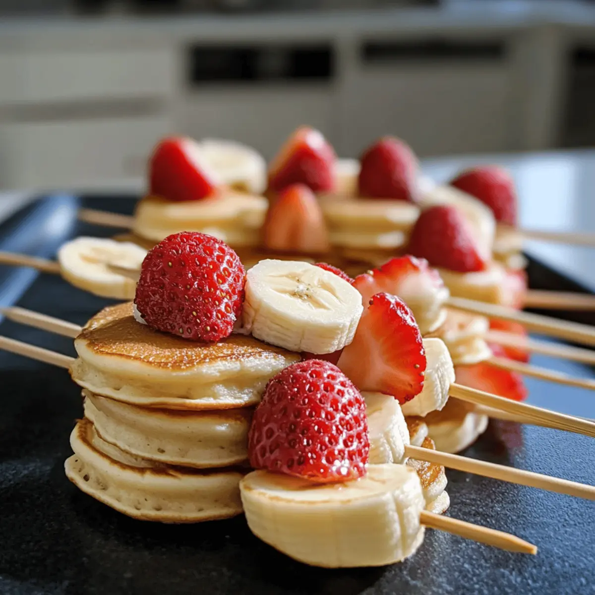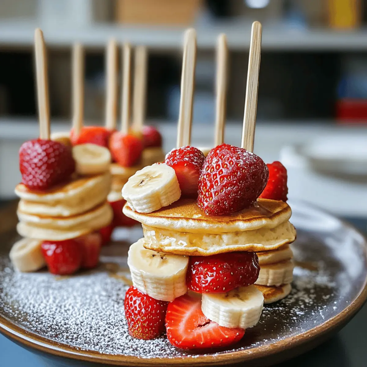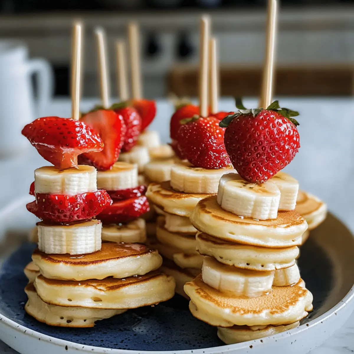 Die strahlenden Farben der Erdbeer-Bananen-Pfannkuchen-Spieße bringen sofort gute Laune in jede Küche. Wenn ich an gemütliche Frühstücksmomente mit der Familie denke, kommen mir diese köstlichen Spieße in den Sinn, die nicht nur den Gaumen erfreuen, sondern auch die Augen strahlen lassen. Mit einer schnellen Zubereitung sind diese Spieße perfekt für hektische Morgen und eignen sich ebenso hervorragend als fruchtiger Snack für zwischendurch. Die Kombination aus fluffigen Pfannkuchen und süßen Früchten lässt sich zudem wunderbar variieren und macht das ganze Gericht zu einem echten Hit – sowohl bei den Kleinen als auch bei den Großen. Neugierig auf die Details und wie einfach man diese Leckerei zubereiten kann? Warum sind diese Pfannkuchen so beliebt? Einfachheit: Die Zubereitung ist kinderleicht und benötigt nur wenige Schritte, perfekt für Kochanfänger und vielbeschäftigte Eltern. Bunte Vielfalt: Die leuchtenden Farben von Erdbeeren und Bananen machen diese Spieße nicht nur zu einem Geschmackserlebnis, sondern auch zu einem Augenschmaus. Vielseitig: Sie lassen sich mit anderen Früchten oder sogar feinen Dips kombinieren, perfekt für jede Gelegenheit! Zeitersparnis: Schnelle Zubereitung für stressfreie Morgen oder spontane Snackmomente. Familienfreundlich: Groß und Klein werden begeistert sein – diese Spieße bringen Freude auf den Tisch und fördern gesunde Essgewohnheiten. Entdecken Sie auch unsere Rezeptvariationen für noch mehr Möglichkeiten! Erdbeer-Bananen-Pfannkuchen-Spieße Zutaten • Dieses Rezept für Erdbeer-Bananen-Pfannkuchen-Spieße ist nicht nur lecker, sondern auch einfach zuzubereiten! Für den Teig Mehl – Grundzutat für die Pfannkuchenstruktur; glutenfreies Mehl kann verwendet werden. Zucker – Süßt die Pfannkuchen; Honig oder Ahornsirup sind gesündere Alternativen. Backpulver – Für fluffige Pfannkuchen; keine Substitution nötig. Salz – Verstärkt den Geschmack; kann bei Bedarf weggelassen werden. Milch – Fügt Feuchtigkeit hinzu; pflanzliche Milch wie Mandel- oder Hafermilch ist eine veganer Option. Ei – Bindemittel für die Pfannkuchen; ersetzbar durch Apfelmus oder Chia-Ei für vegane Zubereitung. Geschmolzene Butter – Gibt Geschmack und macht den Teig saftig; Öl, z.B. Kokosnussöl, ist eine gute Alternative. Für die Frucht Banane – Lieferant des süßen, fruchtigen Geschmacks; andere Früchte wie Kiwi oder Pfirsiche können ebenfalls verwendet werden. Erdbeeren – Frische und farbenfrohe Ergänzung; auch Heidelbeeren oder Himbeeren sind je nach Saison möglich. Für die Spieße Holzspieße – Praktischer Halter für die Pfannkuchenstücke; keine Substitution nötig. Schritt-für-Schritt-Anleitung für Erdbeer-Bananen-Pfannkuchen-Spieße Step 1: Trockene Zutaten mischen In einer großen Schüssel vermengen Sie 200 g Mehl, 2 EL Zucker, 2 TL Backpulver und eine Prise Salz. Rühren Sie die trockenen Zutaten gut um, bis sie gleichmäßig verteilt sind. Dies ist der Grundbaustein für Ihre Pfannkuchen und gibt ihnen die fluffige Textur, die in Ihren Erdbeer-Bananen-Pfannkuchen-Spießen so wichtig ist. Step 2: Flüssige Zutaten verrühren In einer separaten Schüssel kombinieren Sie 300 ml Milch, 1 Ei und 50 g geschmolzene Butter. Verwenden Sie einen Schneebesen, um die Mischung kräftig zu verrühren, bis alles gut vermischt ist. Diese Kombination bringt Feuchtigkeit und Geschmack in den Teig, der Ihnen köstliche Pfannkuchen bescheren wird. Step 3: Teig zubereiten Gießen Sie die flüssige Mischung langsam zu den trockenen Zutaten und verrühren Sie beides vorsichtig mit einem Holzlöffel oder einem Spatel. Mischen Sie, bis ein glatter Teig entsteht; leichte Klumpen sind in Ordnung. Lassen Sie den Teig für 5 Minuten ruhen, damit er gut quellen kann. Dies verbessert die Konsistenz Ihrer Pfannkuchen. Step 4: Pfannkuchen backen Heizen Sie eine antihaftbeschichtete Pfanne bei mittlerer Hitze vor und fetten Sie sie leicht mit etwas Butter oder Öl ein. Geben Sie jeweils 1/4 Tasse des Teigs in die Pfanne und backen Sie die Pfannkuchen für 2-3 Minuten, bis sich Blasen auf der Oberfläche bilden. Wenden Sie die Pfannkuchen und backen Sie sie auf der anderen Seite für weitere 1-2 Minuten, bis sie goldbraun sind. Step 5: Pfannkuchen schneiden Lassen Sie die Pfannkuchen nach dem Backen kurz abkühlen, damit sie leichter zu verarbeiten sind. Schneiden Sie jeden Pfannkuchen in Viertel, um eine ideale Größe für Ihre Spieße zu schaffen. Diese kleinen Stücke sorgen dafür, dass die Erdbeer-Bananen-Pfannkuchen-Spieße appetitlich und handlich bleiben. Step 6: Spieße zusammenstellen Nehmen Sie Holzspieße und stecken Sie abwechselnd ein Viertel Pfannkuchen, gefolgt von einer Bananenscheibe und einem Erdbeerviertel auf den Spieß. Wiederholen Sie diesen Vorgang, bis der Spieß gefüllt ist. Diese bunten Schichten machen Ihre Erdbeer-Bananen-Pfannkuchen-Spieße nicht nur lecker, sondern auch visuell ansprechend und perfekt für den Genuss. Expert Tips für Erdbeer-Bananen-Pfannkuchen-Spieße Teig richtig mischen: Vermeiden Sie es, den Teig zu übermixen, um zähe Pfannkuchen zu verhindern. Leichte Klumpen sind in Ordnung. Frische Zutaten: Verwenden Sie frische, reife Erdbeeren und Bananen für den besten Geschmack und die schönste Farbe der Erdbeer-Bananen-Pfannkuchen-Spieße. Pfanne gut erhitzen: Stellen Sie sicher, dass die Pfanne die richtige Temperatur hat, bevor Sie den Teig hineingeben, um gleichmäßig gebräunte Pfannkuchen zu erhalten. Variation der Früchte: Experimentieren Sie mit verschiedenen Früchten wie Kiwi oder Pfirsichen, um Ihre Erdbeer-Bananen-Pfannkuchen-Spieße noch abwechslungsreicher zu gestalten. Ideale Portionsgröße: Achten Sie drauf, den Teig in gleichmäßige Portionen von 1/4 Tasse zu verwenden, sodass die Pfannkuchen schön gleichmäßig und fluffig werden. Lagerungstipps für Erdbeer-Bananen-Pfannkuchen-Spieße Zimmertemperatur:: Erdbeer-Bananen-Pfannkuchen-Spieße sollten nicht länger als 2 