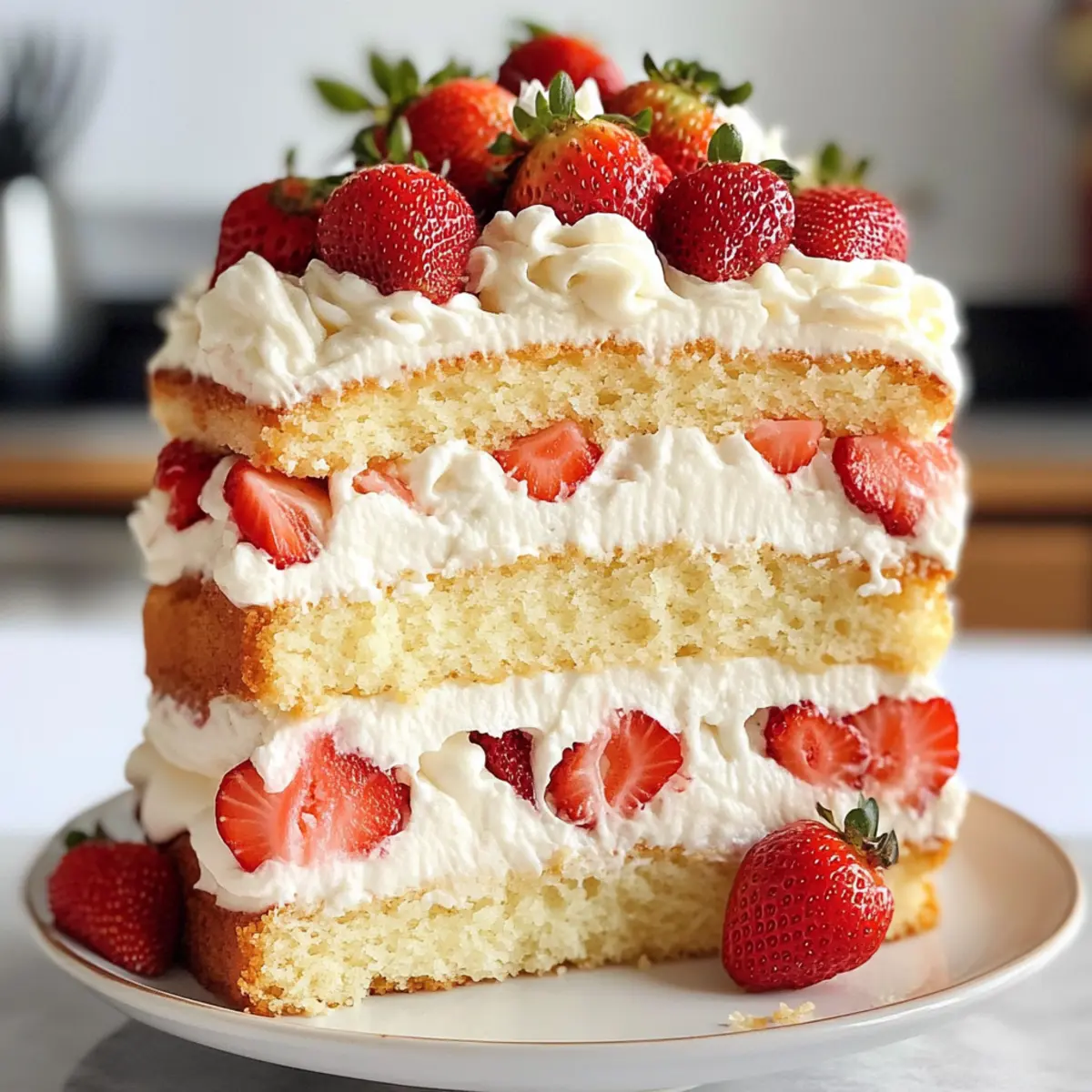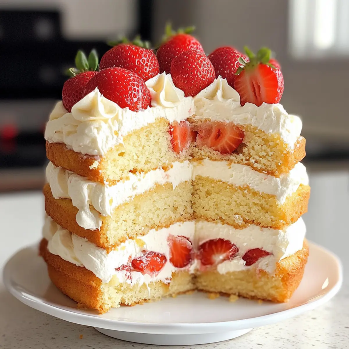 Die ersten warmen Sonnenstrahlen bringen nicht nur die Blumen zum Blühen, sondern wecken auch den Wunsch nach erfrischenden Leckereien. Perfekt für den Frühling ist dieses Erdbeerkuchen-Layer-Torte Rezept, das mit seinen luftigen Schichten und frischen Erdbeeren eine wahre Freude für den Gaumen ist. Diese Torte vereint nicht nur die Süße sonnengereifter Erdbeeren, sondern ist auch im Handumdrehen zubereitet und bietet eine beeindruckende Präsentation für jede Zusammenkunft. Egal, ob bei einer Feier oder als süßer Abschluss eines Familienessens, sie wird ganz sicher zum Star des Abends. Neugierig, wie du diese köstliche Erdbeertorte zaubern kannst? Lass uns loslegen! Warum wirst du diese Erdbeertorte lieben? Einfachheit: Mit nur wenigen Zutaten und einem klaren Rezept ist dieser Erdbeerkuchen leicht nachzumachen. Perfekt für Köche aller Erfahrungsstufen. Frische Erdbeeren: Die Verwendung von sonnengereiften Erdbeeren macht jeden Bissen zu einem erfrischenden Erlebnis. Flexibel: Du kannst die Torte leicht anpassen, indem du verschiedene Früchte oder Füllungen ausprobierst, wie zum Beispiel Zitronencreme für einen spritzigen Kick. Beeindruckendes Aussehen: Diese Torte ist nicht nur lecker, sondern auch ein echter Blickfang auf jedem Tisch – ideal für besondere Anlässe! Schnelle Zubereitung: Das Rezept bietet dir die Möglichkeit, die Torte im Voraus vorzubereiten, sodass du mehr Zeit mit deinen Gästen verbringen kannst. Für jeden Anlass: Ob bei einem Sommerpicknick oder einer Geburtstagsfeier – deine Erdbeerkuchen-Layer-Torte wird garantiert die Herzen (und Mägen) erfreuen! Erdbeerkuchen-Layer-Torte Zutaten • Lass uns die perfekten Zutaten für deine Erdbeerkuchen-Layer-Torte entdecken und deine Geschmacksknospen verwöhnen! Mehl – sorgt für eine luftige und zarte Textur; verwende nach Möglichkeit Kuchenmehl für das beste Ergebnis. Zucker – süßt den Teig und sorgt für die nötige Feuchtigkeit; brauner Zucker kann für zusätzlichen Geschmack sorgen. Butter – bringt reichhaltigen Geschmack; bei Bedarf kann sie durch vegane Butter ersetzt werden. Milch – macht den Kuchen feucht; pflanzliche Milchalternativen wie Mandel- oder Sojamilch sind möglich. Eier – geben Struktur; für eine vegane Variante können Chia- oder Leinsamen-Eier verwendet werden. Backpulver – sorgt für das Aufgehen des Kuchens; überprüfe, ob es frisch ist, für die besten Ergebnisse. Vanilleextrakt – fügt Tiefe und Geschmack hinzu; benutze reinen Vanilleextrakt für das beste Aroma. Prise Salz – hebt den Geschmack hervor und balanciert die Süße. Frische Erdbeeren – unverzichtbar für den fruchtigen Geschmack; benutze nur frische Früchte für optimale Ergebnisse. Schlagsahne – die Basis für die cremige Füllung; achte darauf, dass sie kalt ist, damit sie gut aufgeschlagen werden kann. Puderzucker – süßt die Schlagsahne und sorgt für eine glatte Konsistenz; auch hier ist eine Überprüfung auf Frische empfehlenswert. Schritt-für-Schritt-Anleitung für das Erdbeerkuchen-Layer-Torte Rezept Step 1: Ofen vorheizen Heize den Ofen auf 180 Grad Celsius vor, damit er die richtige Temperatur erreicht, wenn der Teig fertig ist. Dies garantiert eine gleichmäßige Backtemperatur und ermöglicht ein perfektes Aufgehen des Kuchens. Während der Ofen vorheizt, kannst du dich auf die Zubereitung des Teigs konzentrieren. Step 2: Backformen vorbereiten Fette die Backformen mit etwas Butter oder Öl ein und bestäube sie leicht mit Mehl, damit die Torte später nicht anhaftet. Diese Vorbereitung ist entscheidend, damit sich die fertige Torte problemlos aus der Form lösen lässt und keine Stücke abbrechen. Halte die vorbereiteten Formen bereit, während du den Teig anrührst. Step 3: Butter und Zucker verrühren Schlage die weiche Butter und den Zucker in einer großen Schüssel mit einem Handmixer oder einer Küchenmaschine cremig. Dies sollte etwa 2-3 Minuten dauern, bis die Mischung luftig und hell ist. Achte darauf, dass sich der Zucker gut mit der Butter verbindet, um eine gleichmäßige Süße und Textur im Erdbeerkuchen zu gewährleisten. Step 4: Eier hinzufügen Füge die Eier nacheinander in die Butter-Zucker-Mischung hinzu und schlage jedes Ei gut ein, bevor das nächste hinzukommt. Dieser Schritt ist wichtig, um die Struktur der Torte zu stabilisieren. Du solltest eine glatte und homogene Mischung ohne Stückchen erzielen. Step 5: Vanilleextrakt einrühren Gib den Vanilleextrakt zur Mischung hinzu und verrühre alles gut. Der Vanilleextrakt fügt der Erdbeerkuchen-Layer-Torte eine angenehme Tiefe und Aromen hinzu, die sich wunderbar mit den süßen Erdbeeren kombinieren. Achte darauf, dass er gleichmäßig in die Mischung eingearbeitet ist. Step 6: Trockene Zutaten kombinieren In einer separaten Schüssel vermische das Mehl, Backpulver und eine Prise Salz. Rühre die trockenen Zutaten gut durch, um sicherzustellen, dass das Backpulver gleichmäßig verteilt ist. Dies ist entscheidend für die Lockerheit deiner Erdbeerkuchen-Layer-Torte; keine Klümpchen sollten vorhanden sein. Step 7: Teig zusammenführen Füge die trockenen Zutaten abwechselnd mit der Milch zur Butter-Zucker-Mischung hinzu, beginnend und endend mit den trockenen Zutaten. Rühre die Masse nur so lange, bis alles gerade so vermischt ist; Überarbeitung kann zu einem dichten Kuchen führen. Du solltest eine glatte und cremige Teigmischung haben, die super duftet. Step 8: Teig verteilen und backen Verteile den vorbereiteten Teig gleichmäßig in den Backformen. Stelle die Formen dann in den vorgeheizten Ofen und backe sie für etwa 25-30 Minuten, bis ein Zahnstocher in der Mitte sauber herauskommt. Die Oberseite sollte leicht goldbraun sein, und der Kuchen sollte beim Drücken zurückspringen. Step 9: Torten abkühlen lassen Nimm die Torten aus dem Ofen und lasse sie für etwa 10 Minuten in den Formen abkühlen. Danach stürze sie vorsichtig auf ein Kuchengitter, um weiter abzukühlen. Es ist wichtig, 