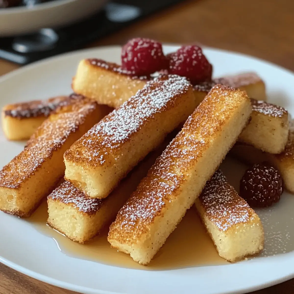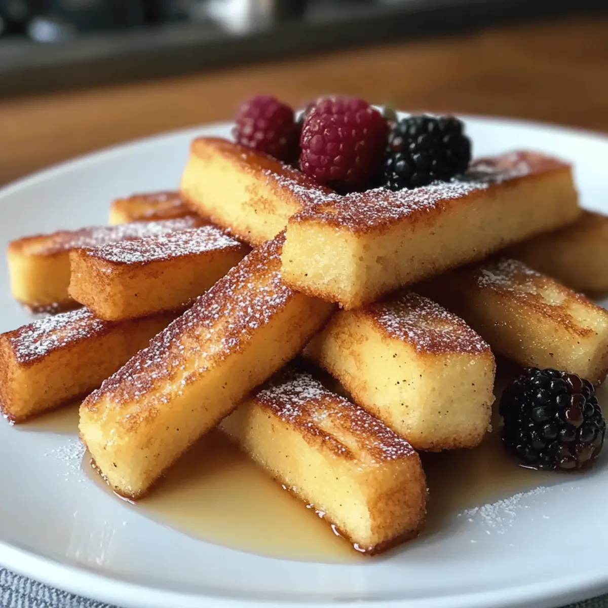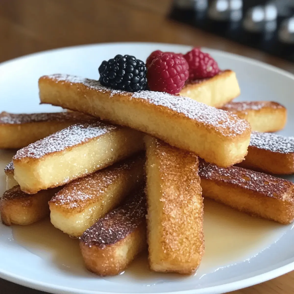 Die goldenen Morgenstrahlen kitzeln die Küchentür und bringen den berauschenden Duft von frisch gebratenen Französischen Toaststäbchen mit sich. Ach, wie angenehm es ist, den Tag mit diesem einfachen, aber himmlischen Gericht zu beginnen! Diese Französischen Toaststäbchen sind nicht nur ein 5-Sterne-Frühstück, sondern erlauben dir auch, die Herzen deiner Liebsten im Handumdrehen zu gewinnen. Mit ihrer perfekten Kombination aus knuspriger Außenschicht und weichem Inneren sind sie ideale Begleiter für hektische Morgen. Und das Beste daran? Sie sind schnell und einfach zuzubereiten und erfordern nur grundlegende Zutaten, die du wahrscheinlich schon zu Hause hast. Bist du bereit, deine Küche in ein wahres Frühstücksparadies zu verwandeln? Warum werden diese Toaststäbchen geliebt? Einfachheit: Der gesamte Prozess ist unkompliziert und benötigt nur grundlegende Kochkenntnisse. Köstlicher Geschmack: Die Kombination aus Zimt und Vanille sorgt für ein unwiderstehliches Geschmackserlebnis, das deine Sinne belebt. Schnell und praktisch: Ideal für geschäftige Morgen, diese Französischen Toaststäbchen sind in kürzester Zeit zubereitet und passen perfekt in deinen Alltag. Familienfreundlich: Bei Groß und Klein beliebt, sorgen sie für ein harmonisches Frühstückserlebnis sowie zufriedene Gesichter am Tisch. Vielseitig: Du kannst sie mit frischen Früchten oder Sahne servieren, um jedes Mal eine neue Variation zu kreieren. Probiere sie auch mit etwasHonig oder Nüssen für extra Crunch! Zutaten für Französische Toaststäbchen Für die Mischung • Dickes Weißbrot oder Brioche – sorgt für eine weiche Textur und nimmt die Eiermischung gut auf; kann auch durch Vollkornbrot ersetzt werden für mehr Ballaststoffe. • Große Eier – verleihen dem Gericht Struktur und Reichhaltigkeit; keine Substitutionen für die Bindungseigenschaften möglich. • Milch – schafft einen cremigen Teig, der das Brot weicher macht; für eine vegane Option kann pflanzliche Milch verwendet werden. • Vanilleextrakt – hebt den Geschmack mit einem süßen Aroma; kann durch Mandelextrakt ersetzt werden für ein anderes Geschmacksprofil. • Gemahlener Zimt – fügt Wärme und Würze hinzu; kann weggelassen werden, aber wird für die Geschmacksvielfalt empfohlen. • Zucker (optional) – süßt die Mischung; je nach persönlicher Vorliebe anpassen; kann durch Honig oder Alternativen ersetzt werden. • Salz – balanciert die Aromen; ist für den Geschmack essentiell; kann bei Bedarf weggelassen werden. • Butter – wird zum Braten verwendet, um eine goldene, knusprige Außenschicht zu erreichen; kann durch Kokosöl für eine milchfreie Option ersetzt werden. Für die Servierung • Ahornsirup oder Toppings – serviere mit deiner Wahl an süßen Toppings, um das Erlebnis zu verfeinern; Optionen sind frische Früchte oder Schlagsahne. Schritt-für-Schritt-Anleitung für Französische Toaststäbchen Step 1: Pfanne vorheizen Heize eine große Pfanne bei mittlerer Hitze vor und füge einen Esslöffel Butter hinzu. Lass die Butter schmelzen und beobachte, wie sie schaumig wird. Dies zeigt, dass die Pfanne die richtige Temperatur erreicht hat. Achte darauf, dass die Butter nicht braun wird, um einen perfekten Bratgeschmack zu erzielen, während du deine Französischen Toaststäbchen zubereitest. Step 2: Eiermischung anrühren In einer großen Schüssel verquirlst du die Eier, Milch, Vanilleextrakt, Zimt, Zucker und Salz gründlich miteinander. Rühre so lange, bis alle Zutaten gut vermischt sind und eine homogene Masse entsteht. Die Mischung sollte eine cremige Textur haben, die perfekt ist, um die Brotsticks bis in die Tiefe zu durchdringen und ein leckeres Ergebnis zu garantieren. Step 3: Brot schneiden Nimm dein dickes Weißbrot oder die Brioche und schneide es in etwa 2–3 cm breite Stäbchen. Diese Dicke sorgt dafür, dass die Französischen Toaststäbchen innen weich und außen schön knusprig werden. Lege die geschnittenen Stäbchen vorsichtig auf einen Teller, während du dich auf das Eintauchen in die Eiermischung vorbereitest. Step 4: Brot eintauchen Tauche jedes Brotstick einzeln in die Eiermischung und stelle sicher, dass es von allen Seiten gut bedeckt ist. Lasse das Brot nicht zu lange im Mix, um die Textur der Französischen Toaststäbchen zu erhalten. Achte darauf, dass überschüssige Mischung abtropfen kann, bevor du das Brot in die Pfanne legst. Step 5: Toaststäbchen braten Lege die eingetauchten Brotsticks vorsichtig in die heiße Pfanne. Brate sie für etwa 2–3 Minuten pro Seite, bis sie goldbraun und knusprig sind. Achte darauf, dass sie nicht zu nah beieinander liegen, damit sie gleichmäßig braten können. Verwende einen Spatel, um die Stäbchen vorsichtig zu wenden, und genieße den verführerischen Duft, der deine Küche durchdringt. Step 6: Warm halten und wiederholen Nehme die fertig gebratenen Französischen Toaststäbchen aus der Pfanne und lege sie auf einen warmen Teller oder in den Ofen bei niedriger Temperatur, um sie warm zu halten. Wiederhole den Bratvorgang mit den restlichen Brotsticks. So kannst du sicherstellen, dass alle Stücke gleichzeitig serviert werden und deine Familie sich auf das gemeinsame Frühstück freuen kann. Step 7: Servieren Serviere die Französischen Toaststäbchen umgehend, am besten warm und mit beliebtem Topping wie Ahornsirup oder frischen Früchten. Die Kombination aus knusprig und fluffig, gepaart mit süßen Begleitern, macht dieses Gericht zum perfekten Frühstück. Lass die Gäste ihre eigenen Portionen zubereiten und genieße das harmonische Frühstückserlebnis! Was passt zu Französischen Toaststäbchen? Die goldenen, knusprigen Französischen Toaststäbchen bieten nicht nur einen köstlichen Start in den Tag, sie lassen sich auch wunderbar mit verschiedenen Beilagen kombinieren, um ein rundum perfektes Frühstück zu kreieren. Bacon: Die salzigen, knusprigen Streifen ergänzen die Süße der Toaststäbchen perfekt. Der Kon