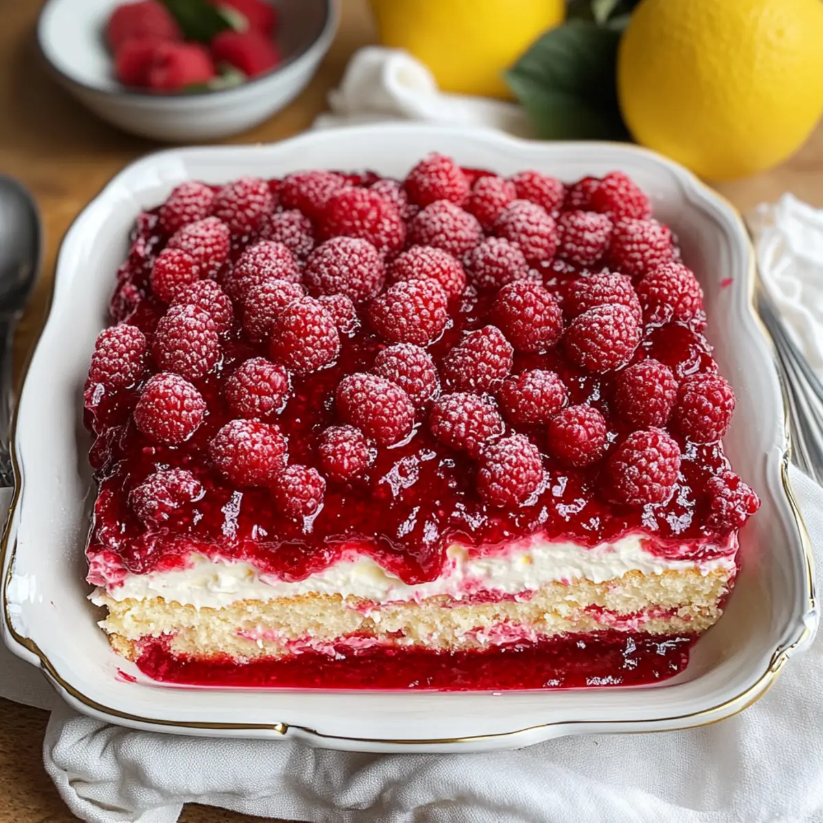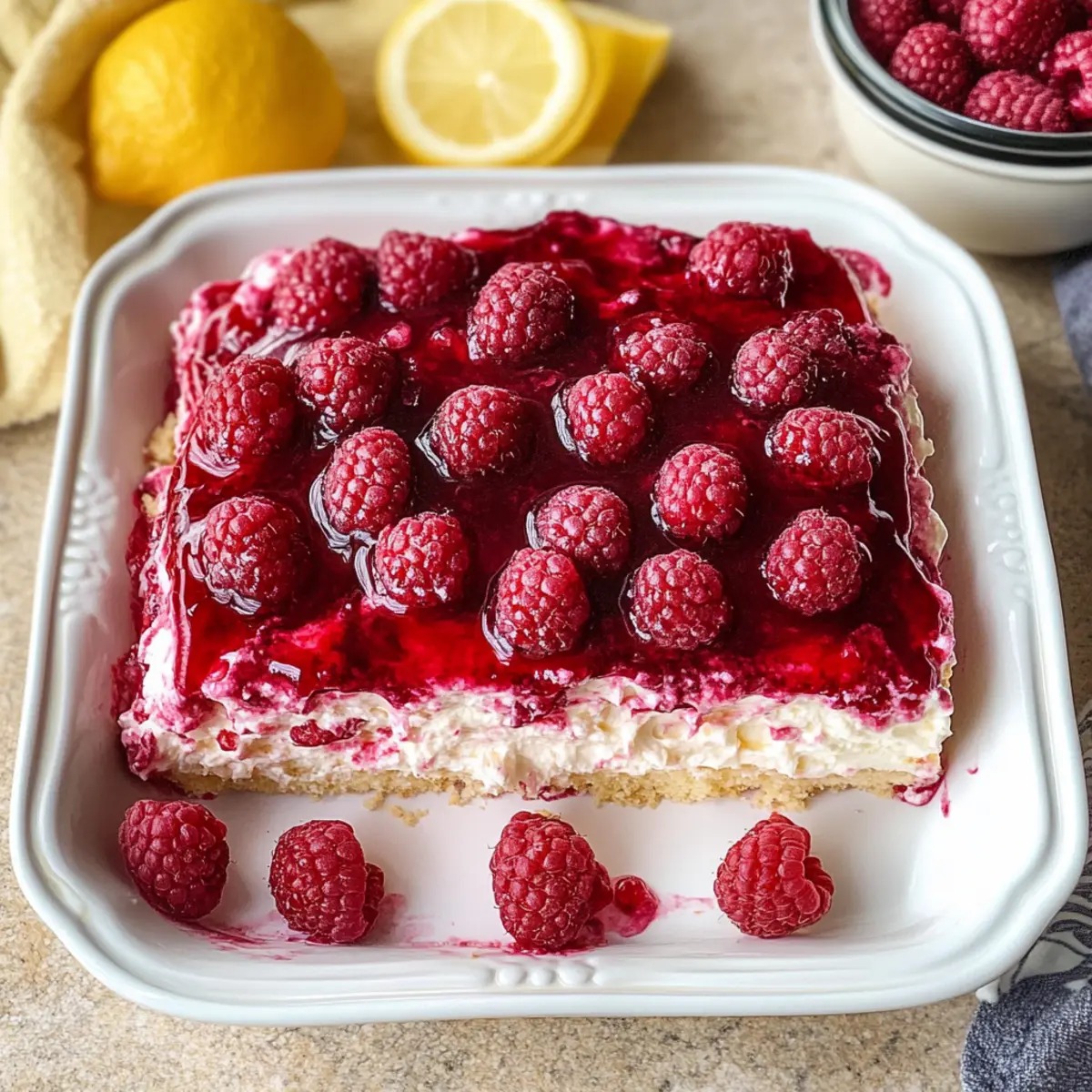 Wenn ich an unvergessliche Desserts denke, kommt mir sofort das frische Himbeer-Tiramisu in den Sinn. Diese köstliche Variation des klassischen italienischen Desserts kombiniert die samtige Textur von Mascarpone mit der spritzigen Süße saftiger Himbeeren. Der große Vorteil? Es handelt sich um ein No-Bake-Rezept, das sich perfekt vorbereiten lässt! Ideal, um es im Voraus zu machen, damit die Geschmäcker über Nacht harmonisch verschmelzen können. Ob für ein festliches Dinner oder einfach, um sich selbst etwas Gutes zu tun – dieser Himbeer-Traum begeistert jeden. Neugierig, wie du dieses cremige Dessert zaubern kannst? Lass uns loslegen! Warum wirst du dieses Rezept lieben? Einfachheit: Die Zubereitung dieses frischen Himbeer-Tiramisu ist kinderleicht und erfordert nur einige Grundkenntnisse im Backen. Fruchtige Frische: Die Kombination aus frischen Himbeeren und cremigem Mascarpone sorgt für eine harmonische Balance zwischen süß und spritzig – ein wahrer Genuss! Perfekte Vorbereitung: Dank des No-Bake-Ansatzes kannst du dieses Dessert ganz einfach im Voraus zubereiten. Perfekt für stressfreies Unterhalten! Dieser Showstopper: Mit seinen leuchtenden Farben und der edlen Präsentation wird dein Himbeer-Tiramisu garantiert zum Star auf jedem Tisch. Vielfältige Variationen: Trau dich, mit verschiedenen Früchten zu experimentieren, oder füge Schokoladenschichten hinzu, um deinem Dessert eine persönliche Note zu verleihen! Möchtest du mehr über die köstlichen Zutaten erfahren? Schau dir unsere Zutatenliste an! Frische Himbeer-Tiramisu Zutaten • Perfekt zum Nachkochen! Für die Himbeersauce Gefrorene Himbeeren – Diese bilden die fruchtige Basis für die Himbeersauce; frische Himbeeren können ebenfalls verwendet werden, wenn verfügbar. Zucker – Süßt die Himbeersauce und sorgt für eine ausgewogene Geschmackstiefe; brauner Zucker bringt einen reichhaltigeren Geschmack. Zitronensaft – Fügt der Sauce eine erfrischende Säure hinzu; Limettensaft ist eine tolle Alternative für einen exotischen Twist. Für die Mascarpone-Füllung Mascarponekäse – Die cremige Grundlage des Desserts; Frischkäse ist im Notfall eine Option, jedoch in der Textur etwas anders. Puderzucker – Sorgt für Süße in der Füllung und hilft, die gewünschte cremige Konsistenz zu erreichen. Vanillepaste – Verleiht der Füllung eine tiefere Geschmacksnote; Vanilleextrakt kann auch verwendet werden. Schlagsahne – Garantiert Stabilität und Reichhaltigkeit in der Mascarpone-Füllung; kann nicht einfach durch pflanzliche Alternativen ersetzt werden, ohne das Rezept anzupassen. Für die Struktur Löffelbiskuits – Die perfekten Bestandteile, um das Tiramisu zu formen; sie sollten sanft in die Himbeersauce getaucht werden, um die beste Textur zu gewährleisten. Alternativen sind Schwämmchen oder Baisers. Frische Himbeeren und Zitronenscheiben – Für die Garnitur, um visuelle Anziehungskraft und frischen Geschmack hinzuzufügen. Lass dich inspirieren und kreier dein eigenes Frische Himbeer-Tiramisu! Schritt-für-Schritt-Anleitung für Frische Himbeer-Tiramisu Step 1: Himbeermarmelade zubereiten In einem Topf die gefrorenen Himbeeren, Zucker und Zitronensaft vermengen. Bei mittlerer Hitze zum Kochen bringen und dann 23-25 Minuten köcheln lassen, bis die Mischung dicker wird und eine marmeladenartige Konsistenz erreicht. Anschließend die Himbeermarmelade abkühlen lassen, bevor du sie weiterverwendest. Step 2: Himbeersirup zubereiten In einem kleinen Topf Zucker, Wasser und gefrorene Himbeeren erhitzen, bis der Zucker vollständig aufgelöst ist. Die Mischung kurz zum Simmern bringen und dann durch ein feines Sieb gießen, um die festen Bestandteile zu entfernen. Den Sirup abkühlen lassen, damit er bereit ist, die Löffelbiskuits zu tränken. Step 3: Mascarpone-Füllung vorbereiten In einer großen Schüssel den Mascarpone, Puderzucker, Zitronensaft und Vanillepaste mit einem Handmixer gut vermengen, bis die Mischung geschmeidig ist. Die kalte Schlagsahne langsam hinzufügen und weiter schlagen, bis die Masse mittelfeste Spitzen bildet und eine cremige Konsistenz erreicht ist. Step 4: Schichten des Tiramisu Eine dünne Schicht der Mascarpone-Mischung gleichmäßig auf dem Boden einer Auflaufform verteilen. Die Löffelbiskuits schnell in den abgekühlten Himbeersirup tauchen und als erste Schicht in die Form legen. Anschließend die Hälfte der Mascarpone-Mischung darauf geben, gefolgt von der Hälfte der abgekühlten Himbeermarmelade. Step 5: Weitere Schichtungen Wiederhole den vorherigen Schritt, indem du eine weitere Schicht von in Sirup getauchten Löffelbiskuits hinzufügst, gefolgt von der restlichen Mascarpone-Mischung und zum Schluss der restlichen Himbeermarmelade. Achte darauf, die letzte Schicht mit der cremigen Mascarpone-Mischung zu beenden. Step 6: Kühlen Decke die Auflaufform mit Frischhaltefolie ab und stelle sie für mindestens 8 Stunden oder über Nacht in den Kühlschrank, damit sich die Aromen entfalten und die Texturen optimal miteinander verschmelzen können. Step 7: Servieren Kurz vor dem Servieren das Frische Himbeer-Tiramisu mit der restlichen Himbeermarmelade, frischen Himbeeren und Zitronenscheiben garnieren. So erhält das Dessert eine ansprechende Optik und zusätzlichen fruchtigen Geschmack. Aufbewahrungstipps für Frische Himbeer-Tiramisu Kühlschrank: Bewahre das Himbeer-Tiramisu abgedeckt im Kühlschrank auf, wo es bis zu 4 Tage frisch bleibt. Verzichte darauf, die letzte Schicht Himbeermarmelade hinzuzufügen, bis du es servierst. Einzelportionen: Teile das Tiramisu in Einzelportionen ab, um einfache und schnelle Nachspeisen bereit zu halten. Diese Portionen halten sich ebenso bis zu 4 Tage im Kühlschrank. Gefrierschrank: Solltest du das Dessert länger aufbewahren wollen, kannst du es bis zu 2 Monate einfrieren! Achte darauf, es gut einzupacken, um Gefrierbrand zu vermeiden. Auftauen: Zum Servieren, lasse das gefrorene Himbeer-Tiramisu über Nacht im K