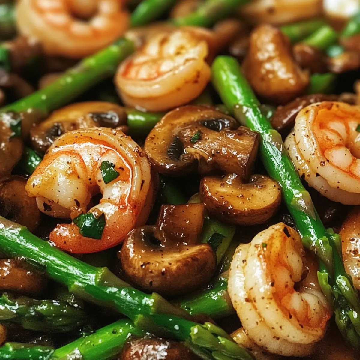 Ein frisches Familienlieblingsgericht, das Garnelen, Spargel und Pilze in nur 30 Minuten vereint.