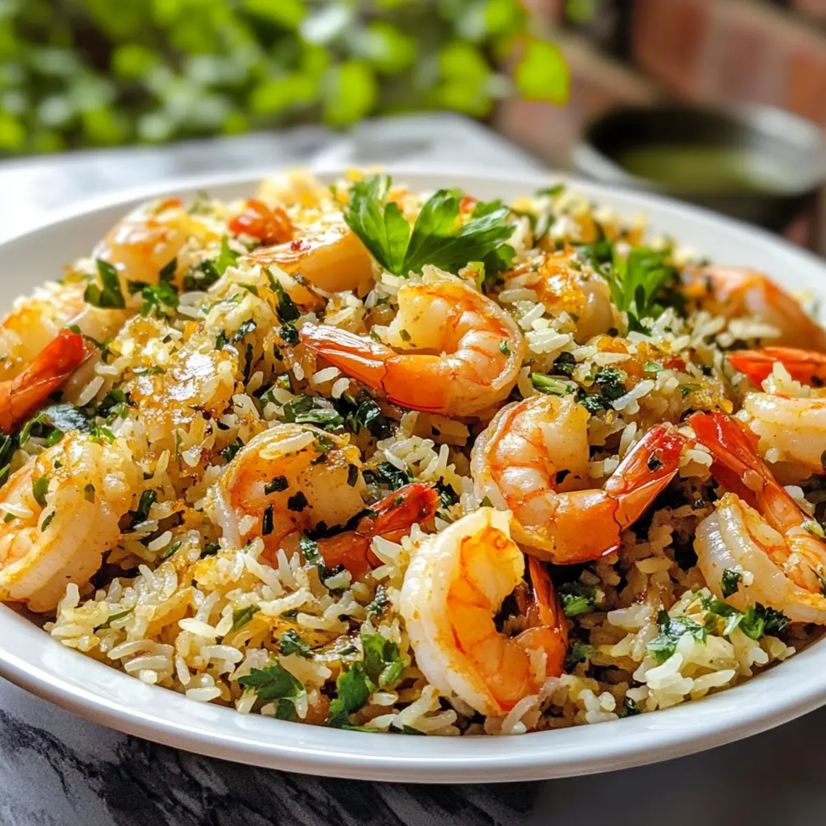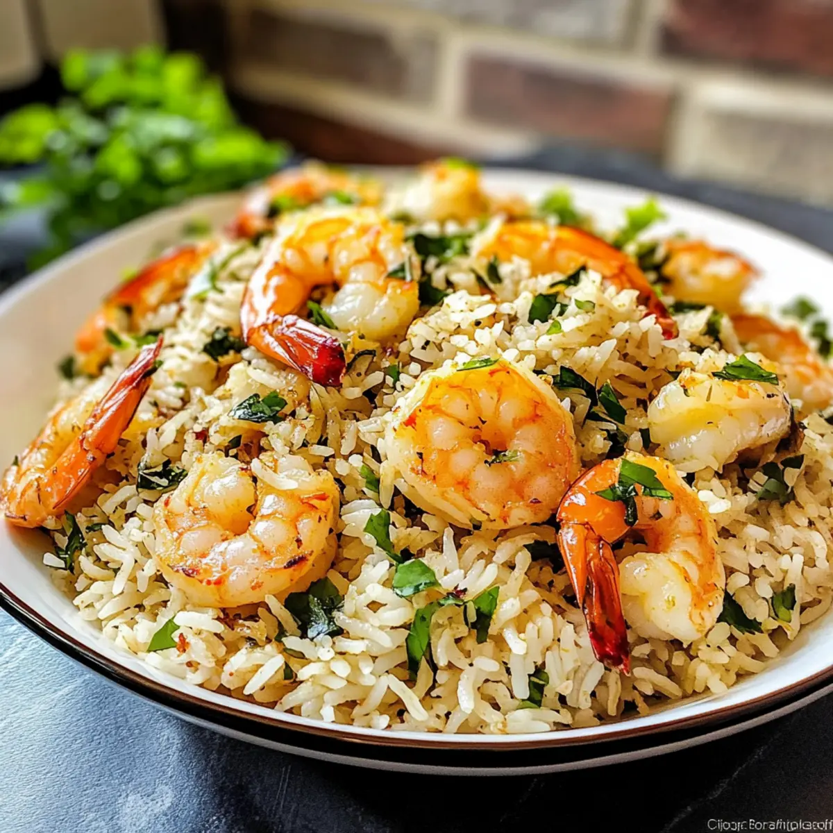 Wenn ich an aufregende Geschmackserlebnisse denke, kommt mir sofort mein geliebter Garnelenreis mit Kräutern in den Sinn. Diese köstliche persische Spezialität, auch bekannt als Meygoo Polo, vereint zarten Garnelen und fluffigen Reis mit einer harmonischen Mischung aus frischen Kräutern und Gewürzen. Das Beste daran? Es ist nicht nur ein Hochgenuss, sondern auch eine gesunde Wahl, die Groß und Klein begeistern wird. Mit seinen nährstoffreichen Zutaten und dem schnellen Zubereitungsprozess ist dieses Gericht ideal für hektische Wochentage, an denen du dennoch nicht auf ein liebevoll zubereitetes Essen verzichten möchtest. Bist du bereit, in die Welt der persischen Aromen einzutauchen und eine neue Lieblingsspeise zu entdecken? Warum ist Garnelenreis mit Kräutern einzigartig? Einfachheit: Das Rezept ist leicht nachvollziehbar und benötigt keine speziellen Kochkünste. Gesunde Zutaten: Mit vollwertigem Reis, Quinoa und frischen Kräutern bietet es nährstoffreiche Vorteile. Überraschende Aromen: Die Kombination von Gewürzen sorgt für ein Geschmackserlebnis, das die Sinne belebt. Vielseitigkeit: Du kannst die Garnelen ganz einfach durch Hähnchen oder Gemüse ersetzen. Schnelle Zubereitung: In weniger als einer Stunde hast du ein köstliches, sättigendes Gericht auf dem Tisch, ideal für geschäftige Abende. Probiere dazu auch einen frischen Tomaten-Gurken-Salat für den perfekten Genuss! Garnelenreis mit Kräutern Zutaten • Hier sind alle nötigen Zutaten für deinen Garnelenreis mit Kräutern, die dir helfen, ein köstliches und gesundes Gericht zuzubereiten. Für den Reis Basmati Reis – bildet die fluffige Basis deines Gerichts; kann durch braunen Basmati oder weißen Reis ersetzt werden. Brauner Basmati Reis – sorgt für zusätzlichen Nährwert und nussigen Geschmack; alternativ kannst du auch weißen Reis verwenden. Quinoa – erhöht den Proteingehalt und fügt eine abwechslungsreiche Textur hinzu; kann durch mehr Reis ersetzt werden. Für die Aromen Olivenöl – verleiht Reichtum beim Kochen; es kann durch jedes neutrale Öl substituiert werden. Zwiebel – die Grundlage des Geschmacks, süßt beim Kochen; verwende alternativ Schalotten oder Lauch. Knoblauch – sorgt für aromatische Tiefe; kann bei Bedarf durch Knoblauchpulver ersetzt werden. Rote Paprika – fügt Süße und Farbe hinzu; ersetzbar durch jede süße Paprika oder weglassen für eine mildere Version. Curry-Pulver/Advieh – die Hauptgewürze, die für einen einzigartigen Geschmack sorgen; Advieh ist eine persische Gewürzmischung. Rote Pfefferflocken – für etwas Schärfe; kannst den Schärfegrad nach Geschmack anpassen. Kurkuma – bringt Farbe und einen erdigen Geschmack; keine Substitution erforderlich. Gemahlener Kreuzkümmel – verleiht eine warme Note; alternativ kann gemahlener Koriander verwendet werden. Schwarzer Pfeffer – zur Würzung; verwenden Sie weißen Pfeffer für einen milderen Geschmack. Für die Garnitur Koriander, Dill, Frühlingszwiebeln, Bockshornkleeblätter – frische Kräuter, die den Geschmack intensivieren; ersetzbar durch Petersilie oder weglassen. Rohe Garnelen – der Hauptproteingehalt; achte darauf, frische oder gefrorene Garnelen zu verwenden. Zitronensaft – sorgt für die notwendige Säure; kann durch Limettensaft ersetzt werden. Safran – gibt ein einzigartiges Aroma und Farbe; optional, aber ein echter Geschmacksbooster; alternativ kann eine Prise Kurkuma verwendet werden. Schritt-für-Schritt-Anleitungen für Garnelenreis mit Kräutern Schritt 1: Reis kochen Setze einen großen Topf mit Wasser auf den Herd und bringe es zum Kochen. Füge eine Prise Salz und einen Esslöffel Olivenöl hinzu. Gib zuerst den braunen Basmati Reis hinein und lasse ihn 20 Minuten köcheln. Nach 20 Minuten füge Quinoa und weißen Reis hinzu und koche alles weitere 20 Minuten, bis der Reis fluffig und zart ist. Schritt 2: Grundlage anbraten Erhitze in einer großen Pfanne etwa zwei Esslöffel Olivenöl bei mittlerer Hitze. Gib die gewürfelte Zwiebel hinzu und brate sie etwa 5 Minuten lang, bis sie goldbraun ist. Füge den gehackten Knoblauch und die rote Paprika hinzu und brate alles für weitere 3 Minuten. Als nächstes kommen die Garnelen in die Pfanne; koche sie, bis sie rosa und durchgegart sind, etwa 2-3 Minuten. Schritt 3: Gewürze hinzufügen Streue die Gewürze – Curry-Pulver, rote Pfefferflocken, Kurkuma, gemahlenen Kreuzkümmel und schwarzen Pfeffer – über die garen Garnelen und das Gemüse. Mische gründlich und lasse die Aromen für weitere 2 Minuten bei niedriger Hitze aufblühen. Füge dann die frisch gehackten Kräuter hinzu; diese bringen den Garnelenreis mit Kräutern auf das nächste Aromaniveau. Schritt 4: Schichten und dämpfen Nehme eine große, tiefere Pfanne oder einen Topf und beginne, die Reismischung und die Garnelenmischung schichtweise hineinzugeben. Beginne mit der Reis-Quinoa-Mischung, gefolgt von der Garnelenmischung. Beträufle das Ganze mit frischem Zitronensaft und Safranwasser und bedecke die Pfanne mit einem Deckel. Lasse alles auf niedriger Hitze für etwa 25 Minuten dämpfen, damit die Aromen sich gut verbinden. Schritt 5: Servieren Nehme den Deckel ab und lockere den Reis vorsichtig mit einer Gabel. Serviere den Garnelenreis mit Kräutern heiß, geschichtet und garniert mit frischen Kräutern wie Koriander und Dill. Das Gericht ist ideal geeignet, um es neben einem frischen Salat oder einem Joghurt-Dip zu genießen. Tipps für den besten Garnelenreis mit Kräutern Richtige Garzeiten: Überprüfe die Kochzeiten für Reis und Quinoa, um sicherzustellen, dass alles perfekt gegart ist und nichts matschig wird. Garnelen sorgfältig zubereiten: Achte darauf, die Garnelen nicht zu lange zu kochen, da sie sonst zäh werden. Sie sollten nur etwa 2-3 Minuten garen. Gründliches Abspülen: Spüle die Reiskörner gut ab, um überschüssige Stärke zu entfernen – das sorgt für einen lockeren Garnelenreis mit Kräutern und verhindert, dass e