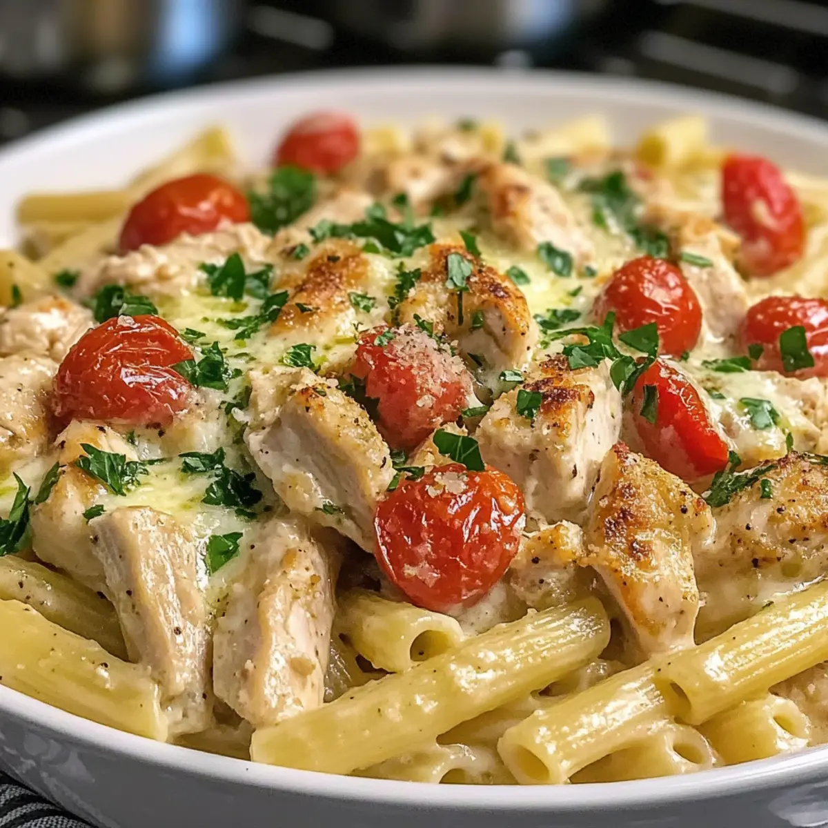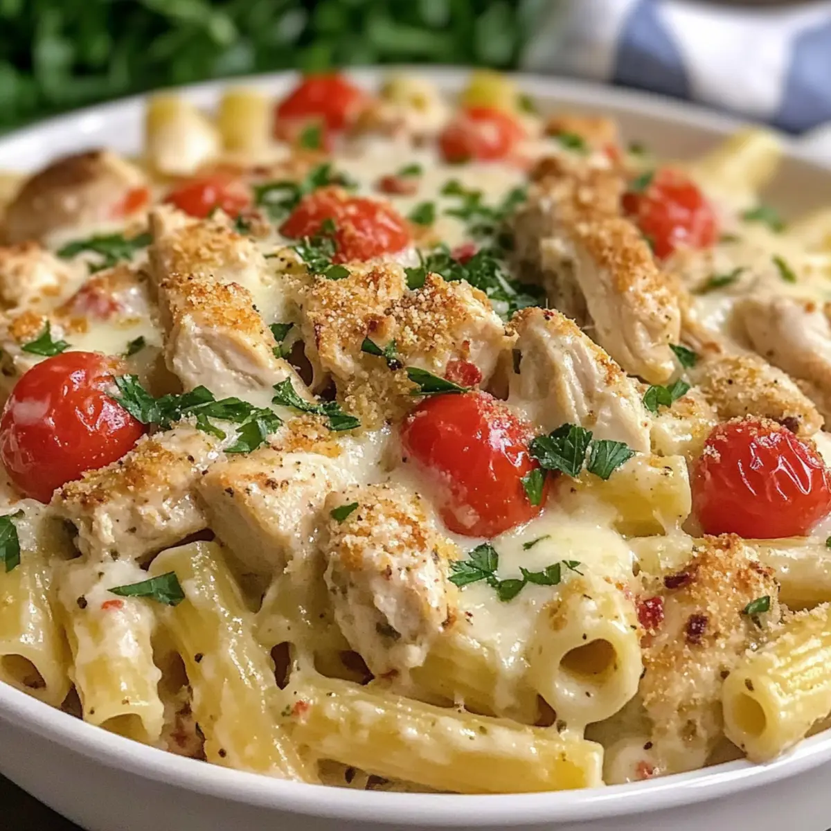 In einem kleinen italienischen Restaurant, fernab vom Trubel der Stadt, entdeckte ich eines Abends das ultimative Komfortgericht: gebackene Boursin Cajun Hähnchen Pasta. Die Kombination aus zartem Hähnchenfleisch, das mit würzigen Cajun-Gewürzen verfeinert ist, und der cremigen Boursin-Käse macht dieses Gericht zu einem unvergesslichen Erlebnis. Mit diesem Gebackene Boursin Cajun Hähnchen Pasta Rezept zaubert ihr nicht nur ein schnelles, schmackhaftes Abendessen, sondern erwärmt auch die Herzen eurer Liebsten. Es ist perfekt für alle, die sich nach einer schmackhaften Abwechslung von Fast Food sehn, und bietet zudem die Möglichkeit, es glutenfrei zuzubereiten. Seid ihr bereit, den Abend mit einem Hauch von Südamerika zu verfeinern und eure Gäste zu begeistern? Warum werden Sie dieses Rezept lieben? Einfachheit: Die Zubereitung ist kinderleicht und erfordert nur grundlegende Kochkünste. Perfekt für hektische Wochentage! Reichhaltiger Geschmack: Die Kombination aus würzigem Cajun-Hähnchen und cremigem Boursin-Käse sorgt für explosionsartige Aromen, die den Gaumen verzaubern werden. Vielseitigkeit: Ihr könnt das Rezept ganz nach Wunsch anpassen – sei es durch die Verwendung von Tofu für eine vegetarische Variante oder durch das Experimentieren mit verschiedenen Käsesorten. Familienfreundlich: Dieses Gericht wird garantiert für glückliche Gesichter am Tisch sorgen und eignet sich hervorragend für ein gemütliches Familienessen. Zeitersparnis: In weniger als einer Stunde steht ein köstliches Gericht auf dem Tisch, das sowohl erwachsene Feinschmecker als auch Kinder begeistert. Mit dem Gebackene Boursin Cajun Hähnchen Pasta Rezept bringt ihr ein Stück italienischer Küche in euer Zuhause, das jeder lieben wird! Gebackene Boursin Cajun Hähnchen Pasta Zutaten Für das Hähnchen Hähnchenbrüste – Die Hauptquelle für Proteine; verwendet Haut- und knochenfreies Fleisch für Zartheit. Olivenöl – Sorgt für Feuchtigkeit und unterstützt das Garen; Avocadoöl ist ein guter Ersatz. Cajun-Gewürz – Verleiht den charakteristischen rauchigen, würzigen Geschmack; sowohl gekaufte als auch selbstgemachte Mischungen sind geeignet. Für die Soße Knoblauch Kräuter Boursin Käse – Schafft eine cremige Basis; eine Mischung aus Frischkäse, Knoblauch und Kräutern funktioniert als Ersatz. Kirschtomaten – Fügen Süße und Saftigkeit hinzu; auch Traubentomaten oder gewürfelte normale Tomaten können verwendet werden. Für die Pasta Penne Pasta – Hauptkarbohydratsquelle; glutenfreie Varianten sind erhältlich. Für das Finish Hot Sauce – Verstärkt die Schärfe; die Menge kann nach Geschmack angepasst werden. Petersilie oder Basilikum – Frische Garnitur für Geschmack und Farbkontrast. Mit diesen einfachen Zutaten wird euer Gebackene Boursin Cajun Hähnchen Pasta Rezept zu einem unverzichtbaren Bestandteil eurer Abendessen! Schritt-für-Schritt-Anleitung für das Gebackene Boursin Cajun Hähnchen Pasta Rezept Step 1: Ofen vorheizen Heize den Ofen auf 200 °C (400 °F) vor. Dies ist wichtig, um eine gleichmäßige Garung der Hähnchenbrüste und der Kirschtomaten zu gewährleisten. Während der Ofen aufheizt, kannst du die Hähnchenbrüste vorbereiten. Step 2: Hähnchen vorbereiten Halbiere die Hähnchenbrüste längs, sodass sie gleichmäßig garen. Reibe sie mit Olivenöl und Cajun-Gewürz ein, sodass sie gut mariniert sind. Lege sie auf ein Backblech, um sie bereit für das Rösten im Ofen zu machen. Step 3: Soße zubereiten In einer Auflaufform kombinierst du den Knoblauch Kräuter Boursin Käse mit den Kirschtomaten. Füge etwas Olivenöl, Salz und Pfeffer hinzu und vermische alles gut. Dies schafft eine cremige Grundlage für die gebackene Pasta und sorgt für umfangreiche Aromen. Step 4: Hähnchen und Soße backen Platziere sowohl das Backblech mit dem Hähnchen als auch die Auflaufform mit der Soße im vorgeheizten Ofen. Lasse alles 20–25 Minuten backen, bis das Hähnchen gar ist und die Kirschtomaten weich und saftig sind. Achte darauf, dass das Hähnchen eine Innentemperatur von 75 °C (165 °F) erreicht. Step 5: Pasta kochen Bringe in einem großen Topf Salzwasser zum Kochen und füge die Penne Pasta hinzu. Koche die Pasta gemäß der Verpackungsanleitung al dente. Vergiss nicht, eine Tasse des Nudelwassers aufzuheben, bevor du die Pasta abgießt. Step 6: Pasta mischen Wenn das Hähnchen und die Soße fertig sind, kombiniere die abgetropfte Pasta mit dem reservierten Nudelwasser, der Hot Sauce und dem Cajun-Gewürz. Mische alles gut, sodass die Pasta die cremige Soße aufsaugt und gleichmäßig beschichtet ist. Step 7: Hähnchen schneiden und servieren Schneide das gebackene Hähnchen in Stücke und falte es vorsichtig unter die Pasta. Richte die Gebackene Boursin Cajun Hähnchen Pasta auf Tellern an und garniere das Gericht mit frischem Petersilie oder Basilikum für einen zusätzlichen Farbtupfer und Geschmack. Expert Tips für Gebackene Boursin Cajun Hähnchen Pasta Hähnchen gleichmäßig schneiden: Achte darauf, dass die Hähnchenbrüste gleichmäßig geschnitten sind, damit sie gleichmäßig garen und zart werden. Pasta al dente: Koche die Penne Pasta nur bis sie al dente ist, damit sie beim Mischen mit der cremigen Soße nicht zu weich wird. Wasser behalten: Vergiss nicht, eine Tasse des Nudelwassers aufzuheben! Es hilft, die Soße zu binden und gibt dem Gericht eine perfekte Konsistenz. Hot Sauce anpassen: Die Menge an Hot Sauce kann nach Geschmack variiert werden. Beginne mit einer kleinen Menge und füge bei Bedarf mehr hinzu. Aufbewahrung: Reste können in einem luftdichten Behälter bis zu 3 Tage im Kühlschrank aufbewahrt werden. Erwärme sie vorsichtig, um die cremige Textur zu bewahren. Variationen zum Gebackene Boursin Cajun Hähnchen Pasta Rezept Passt das Rezept ganz nach eurem Geschmack an und entdeckt neue, aufregende Aromen und Texturen! Vegetarisch: Ersetzt das Hähnchen durch eine Mischung aus geröstetem Gemüse wie Zucchini und 