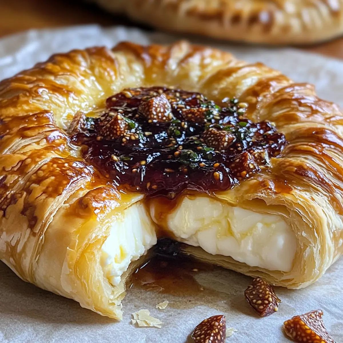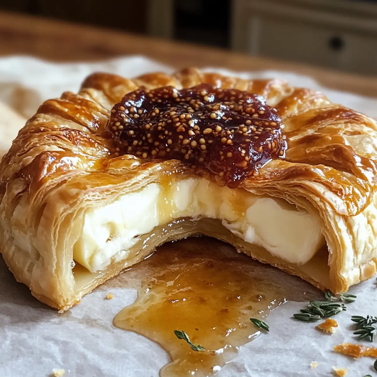 5. Klappe die Ränder des Blätterteigs vorsichtig über den Brie.