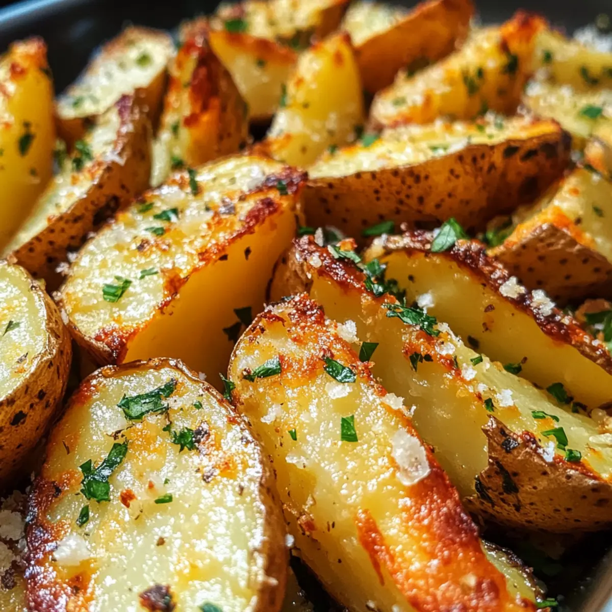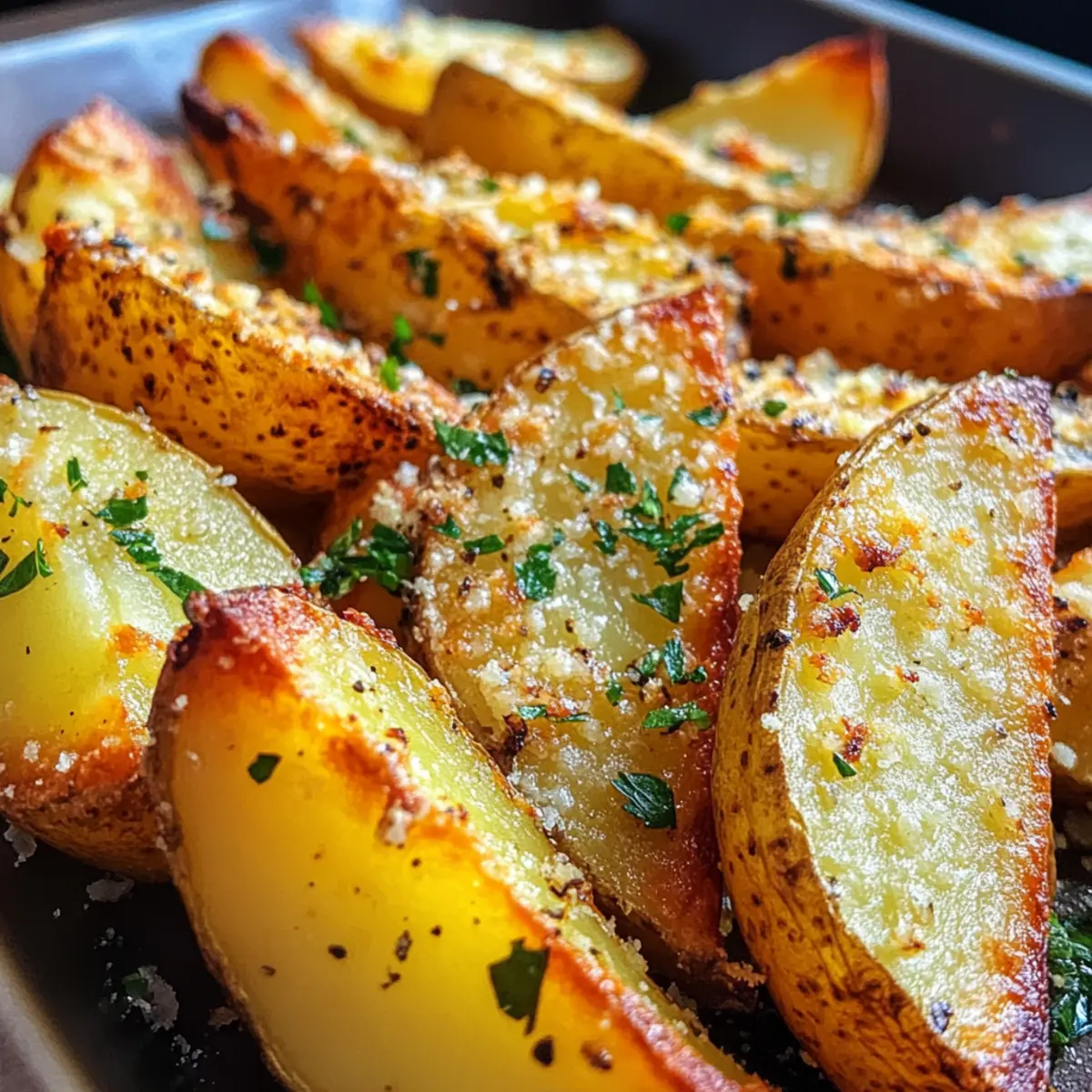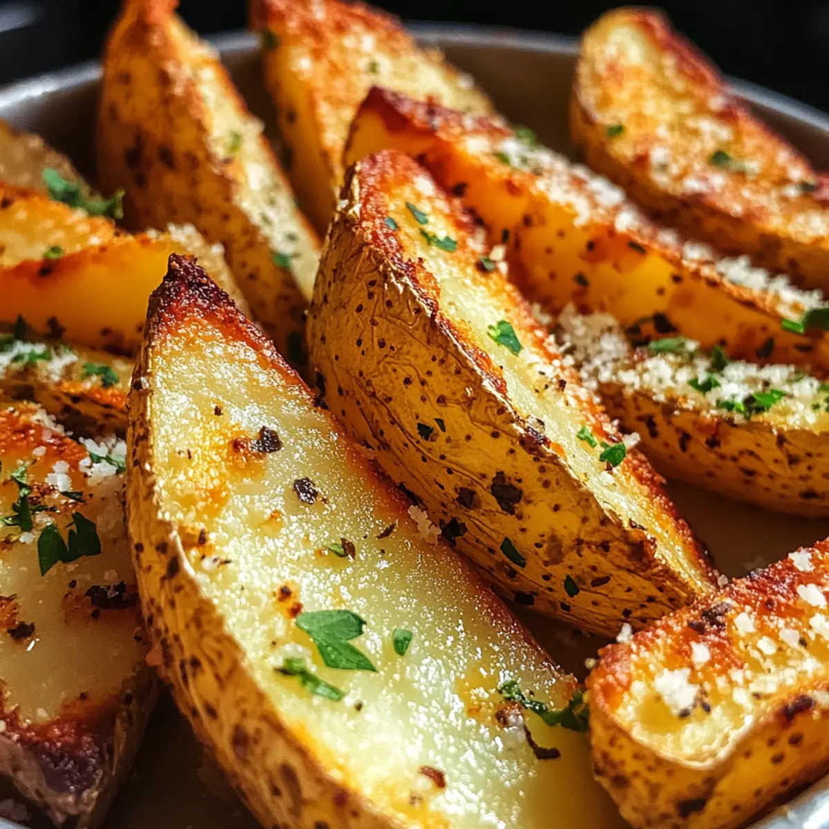 Es ist dieser magische Moment, wenn der Duft von knusprigen, frisch gebackenen Kartoffelspalten durch die Küche zieht. Meine herzhaften Gebratene Knoblauch-Parmesan-Kartoffelspalten sind nicht nur ein köstliches Begleitergericht, sondern auch der perfekte Snack für jeden Anlass. Mit einer schnellen Vorbereitungszeit von nur 15 Minuten und einer Gesamtgarzeit von 30 Minuten sind sie ideal für hektische Wochentage. Diese knusprigen Wedges bieten nicht nur einen gesünderen Ersatz zu frittierten Varianten, sondern lassen sich auch ganz nach Belieben mit verschiedenen Gewürzen oder Toppings anpassen. Wer könnte da widerstehen? Lass uns gemeinsam entdecken, wie einfach es ist, diese köstlichen Kartoffelspalten zuzubereiten und sie im Handumdrehen auf den Tisch zu bringen! Warum sind diese Kartoffelspalten einzigartig? Einfachheit: Die Zubereitung erfordert nur grundlegende Kochkünste und ist damit für jedermann zugänglich. Vielseitigkeit: Diese Kartoffelspalten sind anpassbar – füge deine Lieblingsgewürze hinzu oder experimentiere mit verschiedenen Käsesorten, um neue Geschmackserlebnisse zu kreieren. Gesundheit: Baked statt fried – du erhältst den gleichen köstlichen Crunch, jedoch mit einem gesünderen Ansatz. Schnell und unkompliziert: In nur 30 Minuten stehen sie auf dem Tisch und sind perfekt für geschäftige Wochentage oder spontane Gäste. Crowd-Pleaser: Ob als Beilage zu Grillgerichten oder als Snack mit Dips – diese Wedges werden immer gut ankommen! Gebratene Knoblauch-Parmesan-Kartoffelspalten Zutaten • Stelle sicher, dass du alles parat hast, um die Zubereitung noch einfacher zu gestalten. Für die Kartoffelspalten Kartoffeln – der Grundbaustein; russsische Kartoffeln sorgen für die optimale Knusprigkeit. Olivenöl – sorgt für eine krosse Konsistenz; ersetze es durch geschmolzene Butter, wenn du einen reichhaltigeren Geschmack möchtest. Salz & Pfeffer – unverzichtbare Gewürze; nutze grobes Meersalz und frisch gemahlenen Pfeffer für das beste Aroma. Für das Würzen Knoblauchpulver – bringt intensiv-würzigen Knoblauchgeschmack; frisch gehackter Knoblauch ist ein toller Ersatz (1 Knoblauchzehe für 1/2 Teelöffel). Italienische Gewürzmischung – verleiht den Kartoffeln eine aromatische Note; kann durch Oregano oder Thymian ersetzt werden. Für den Belag Parmesankäse – sorgt für einen salzigen, umami-reichen Geschmack und hilft, die Wedges knusprig zu machen; Pecorino Romano ist eine schmackhafte Alternative. Mit diesen Zutaten kannst du deine eigenen Gebratene Knoblauch-Parmesan-Kartoffelspalten ganz einfach zubereiten und die Geschmäcker deiner Wahl integrieren! Schritt-für-Schritt-Anleitung für Gebratene Knoblauch-Parmesan-Kartoffelspalten Step 1: Ofen vorheizen Heize den Ofen auf 190°C (375°F) vor und bereite ein großes Backblech vor. Fette das Blech leicht mit etwas Olivenöl ein, um ein Ankleben der Kartoffelspalten zu verhindern. Dies fördert eine schöne, großartige Knusprigkeit bei deinen Gebratene Knoblauch-Parmesan-Kartoffelspalten. Step 2: Kartoffeln schneiden Wasche die russet Kartoffeln gründlich und schneide sie in gleichmäßig dicke Spalten. Achte darauf, dass die Spalten etwa gleich groß sind, sodass sie gleichmäßig garen. Diese Vorbereitung garantiert eine perfekte Konsistenz beim Backen und verbessert den Genuss der Wedges. Step 3: Würzen Gib die Kartoffelspalten in eine große Schüssel und vermische sie mit Olivenöl, Knoblauchpulver, italienischer Gewürzmischung, Salz und Pfeffer. Mische alles gründlich, bis jede Kartoffelspalte gleichmäßig mit den Gewürzen und dem Öl überzogen ist. Dies verleiht den Gebratene Knoblauch-Parmesan-Kartoffelspalten ihren köstlichen Geschmack. Step 4: Wedges anordnen Verteile die gewürzten Kartoffelspalten in einer einzigen Schicht auf dem vorbereiteten Backblech. Achte darauf, dass sie sich nicht überlappen, um ein gleichmäßiges Backen und eine knusprige Textur zu gewährleisten. Diese Anordnung ist entscheidend für die perfekte Konsistenz deiner Kartoffelspalten. Step 5: Backen Backe die Kartoffelspalten im vorgeheizten Ofen für 30 Minuten. Wende die Spalten nach etwa der Hälfte der Backzeit, damit sie von beiden Seiten goldbraun und knusprig werden. Behalte sie im Auge; sie sollten eine schöne goldene Farbe annehmen, wenn sie fertig sind. Step 6: Parmesan hinzufügen Fünf Minuten vor Ende der Backzeit streue den geriebenen Parmesan gleichmäßig über die Kartoffelspalten. Dieser Schritt sorgt dafür, dass der Käse schmelzen und eine köstliche, geschmackvolle Kruste bilden kann. So werden deine Gebratene Knoblauch-Parmesan-Kartoffelspalten noch unwiderstehlicher. Step 7: Servieren Nach dem Backen lasse die Kartoffelspalten kurz abkühlen und garniere sie mit frischen Kräutern, wenn du möchtest. Serviere die heißen Kartoffelspalten als Beilage zu deinem Hauptgericht oder als schmackhaften Snack mit Dips. Die Kombination aus Knoblauch, Parmesan und der perfekten Knusprigkeit macht sie zu einem echten Genuss! Tipps für die Vorbereitung der Gebratenen Knoblauch-Parmesan-Kartoffelspalten Die Gebratenen Knoblauch-Parmesan-Kartoffelspalten sind perfekt für die Vorbereitung im Voraus! Du kannst die Kartoffeln bis 24 Stunden vorher schneiden und sie in kaltem Wasser aufbewahren, um das Braunwerden zu verhindern. Auch das Würzen mit Olivenöl, Knoblauchpulver und italienischer Gewürzmischung kann bereits bis zu 3 Tage im Voraus durchgeführt werden – einfach im Kühlschrank aufbewahren. Wenn es Zeit zum Backen ist, verteile die gewürzten Wedges auf ein Backblech und backe sie bei 190°C (375°F) für etwa 30 Minuten. Für die besten Ergebnisse achte darauf, die Kartoffelspalten nicht zu überlappen, damit sie schön knusprig werden. Mit diesen Tipps hast du im Handumdrehen ein schmackhaftes Gericht auf dem Tisch! Variationen & Alternativen für Gebratene Knoblauch-Parmesan-Kartoffelspalten Egal, ob du deine Kartoffelspalten aufpeppen oder an persönliche 
