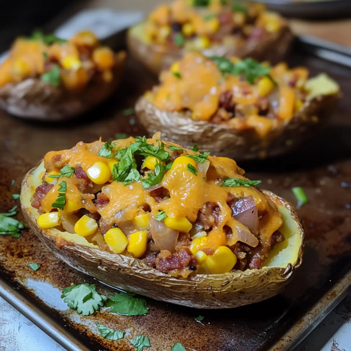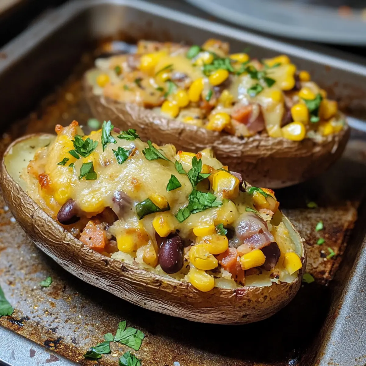 Genieße die Vielfalt und die Aromen, die perfekt zu diesen herzhafteren gefüllten Ofenkartoffeln passen!