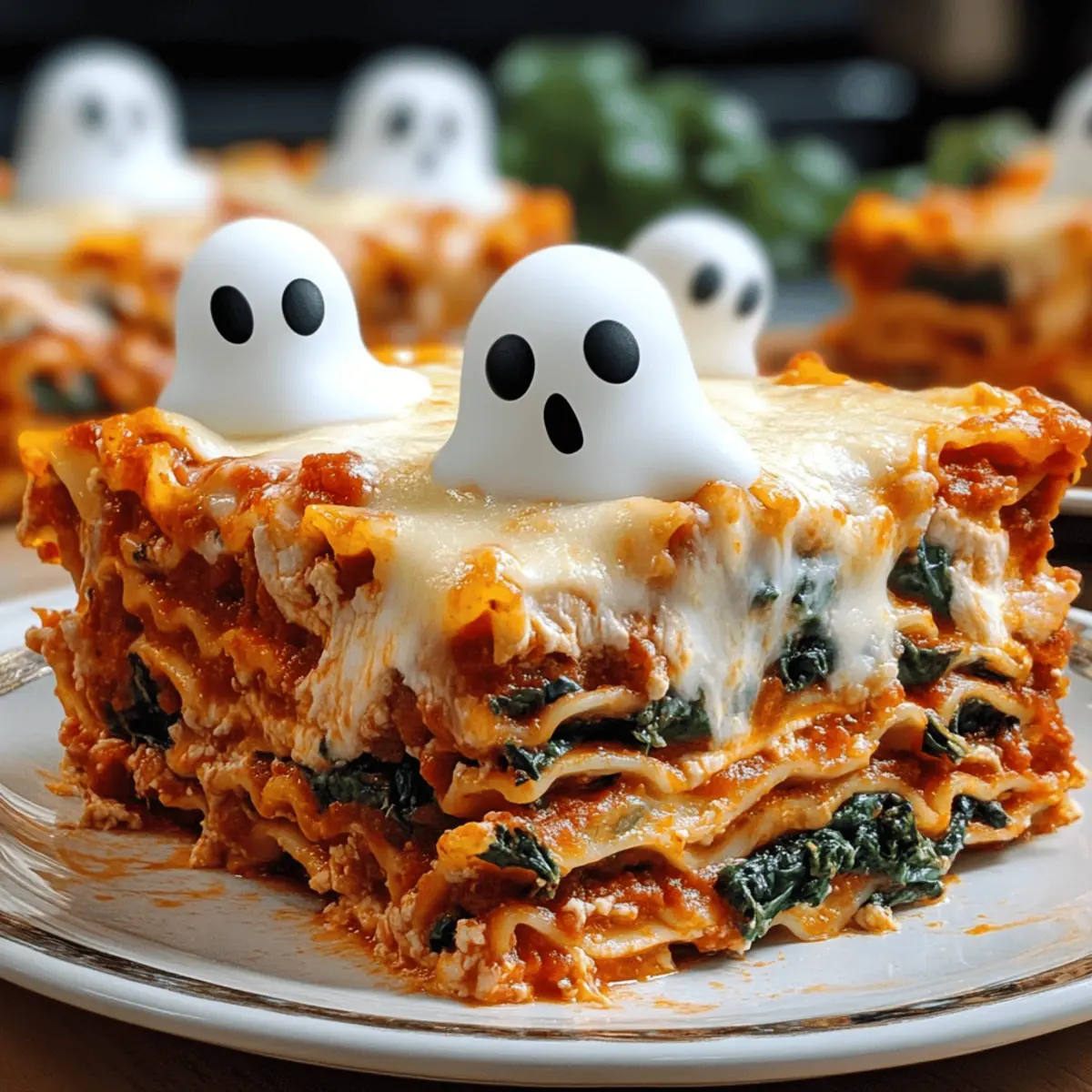 Jedes Jahr, wenn die Blätter fallen und die Luft kühl wird, freue ich mich darauf, unsere Küche in ein gruseliges Festmahl zu verwandeln. Die Geister-Lasagne wird schnell zum Star jeder Halloween-Feier: Sie ist nicht nur eine kreative Neuinterpretation eines Klassikers, sondern auch ein herzhaftes Comfort Food, das Jung und Alt begeistert. Mit schichten aus zartem Hühnchen, cremigem Ricotta und leuchtendem Spinat, abgerundet durch lustige, geisterhafte Mozzarella-Formen, wird dieses Gericht zum Blickfang auf Ihrem Tisch. Egal, ob Sie eine Familie füttern oder Freunde beeindrucken wollen, diese einfache und dennoch beeindruckende Lasagne verwandelt jede Mahlzeit in ein wahrhaft fesselndes Erlebnis. Bereit, Ihre Gäste mit einem schmackhaften Spuk zu überraschen? Warum wird diese Geister-Lasagne geliebt? Einfachheit pur: Die Zubereitung ist unkompliziert und benötigt nur grundlegende Kochkenntnisse, perfekt für jede Küchenzauberin oder -zauberer. Kreative Präsentation: Die spielerischen Mozzarella-Geister sind ein echter Hingucker und bringen Spaß auf den Tisch, ideal für Halloween-Feiern. Herzhaft und nahrhaft: Mit zartem Hühnchen, cremigem Ricotta und nährendem Spinat kombiniert diese Lasagne Wohlfühlgerichte auf köstliche Weise. Für die ganze Familie: Dieses Rezept begeistert sowohl Kinder als auch Erwachsene, sodass es eine hervorragende Wahl für Familienessen ist, die wunderbar mit einem blutroten Cranberry-Spritzer ergänzt werden kann. Vielfältige Anpassungsmöglichkeiten: Ob vegetarisch, mit zusätzlichen Gemüsesorten oder anderen Käsesorten – die Geister-Lasagne lässt sich leicht variieren und bleibt dabei immer ein Genuss. Geister-Lasagne Zutaten • Die perfekte Kombination aus Geschmack und Spaß erwartet Sie! Für die Lasagne Lasagna-Nudeln – bilden die schmackhafte Grundlage; verwenden Sie glutenfreie Nudeln für eine glutenfreie Variante. Gekochtes Hühnchen – sorgt für eine herzliche Proteinquelle; kann durch geschreddertes Putenfleisch oder eine pflanzliche Alternative ersetzt werden. Spinat – bringt Farbe und Nährstoffe; können Sie auch durch Grünkohl oder Mangold ersetzen. Für die Füllung Ricotta-Käse – sorgt für eine cremige Textur und einen reichhaltigen Geschmack; verwenden Sie Hüttenkäse für eine fettärmere Option. Geriebener Mozzarella – schmilzt wunderbar und schafft das gespenstische Topping; niedrige Feuchtigkeit hilft den Formen, ihre Gestalt zu behalten. Geriebener Parmesan – verleiht einen salzigen, nussigen Geschmack und hilft beim Bräunen; ernährungsphysiologischer Hefeflocken kann hier eine milchfreie Alternative sein. Für die Dekoration Schwarze Oliven (in Scheiben) – formen die “Augen” der Mozzarella-Geister; alternativ können auch Kapern oder kleine Kirschtomaten verwendet werden. Für die Sauce Marinara-Sauce – sorgt für Feuchtigkeit und Geschmack; sowohl hausgemachte als auch gekaufte Varianten sind willkommen; gekaufte Sauce vorher kurz köcheln, um sie zu verdicken. Salz und Pfeffer – intensivieren den Geschmack; je nach persönlichem Geschmack anpassen. Mit diesen Zutaten zaubern Sie eine Geister-Lasagne, die nicht nur köstlich, sondern auch ein echter Hingucker für Ihre Halloween-Feier sein wird! Schritt-für-Schritt-Anleitung für Geister-Lasagne Step 1: Ofen vorheizen Heizen Sie Ihren Ofen auf 190 °C vor. Während der Ofen aufheizt, bereiten Sie Ihre anderen Zutaten vor, damit alles bereit ist, wenn Sie mit dem Bau Ihrer Geister-Lasagne beginnen. Dies gewährleistet, dass das Gericht gleichmäßig gart und alle Aromen gut miteinander verschmelzen. Step 2: Lasagna-Nudeln kochen Kochen Sie die Lasagna-Nudeln gemäß der Anleitung auf der Verpackung in einem großen Topf mit kochendem Salzwasser. Die Nudeln sollten al dente gekocht werden, damit sie beim Schichten nicht zerfallen. Nach dem Kochen gut abtropfen lassen und beiseite stellen, damit sie nicht zusammenkleben. Step 3: Ricotta-Füllung zubereiten In einer großen Schüssel kombinieren Sie den Ricotta-Käse mit dem frischen Spinat, Salz und Pfeffer. Rühren Sie die Mischung gut um, bis sie gleichmäßig ist und eine cremige Textur hat. Diese köstliche Füllung wird ein herzlicher Bestandteil Ihrer Geister-Lasagne, die sowohl Geschmack als auch Nährstoffe bietet. Step 4: Marinara-Sauce im Backblech verteilen Nehmen Sie eine Auflaufform und verteilen Sie eine Schicht Marinara-Sauce gleichmäßig auf dem Boden. Diese schützende Schicht sorgt dafür, dass die Nudeln beim Backen nicht austrocknen. Sie sollte schön und gleichmäßig bedeckt sein, um eine feuchte Grundlage für die Geister-Lasagne zu schaffen. Step 5: Schichten der Lasagne Beginnen Sie nun mit dem Schichten: Legen Sie eine Schicht der gekochten Lasagna-Nudeln über die Sauce, gefolgt von der Ricotta-Spinat-Mischung und einer Schicht des zerkleinerten Hühnchens. Wiederholen Sie diesen Vorgang, bis Sie alle Zutaten aufgebraucht haben. Beenden Sie mit einer Schicht Marinara-Sauce und streuen Sie den geriebenen Mozzarella darüber. Step 6: Geisterformen ausschneiden Schneiden Sie einige Stücke des geriebenen Mozzarellas in Form von Geistern und legen Sie sie oben auf die letzte Schicht der Lasagne. Verwenden Sie die geschnittenen schwarzen Oliven, um die „Augen“ der Geister zu gestalten. Diese spielerische Dekoration macht Ihre Geister-Lasagne zu einem echten Hingucker. Step 7: Parmesan hinzufügen Bestreuen Sie die Oberseite der Lasagne großzügig mit geriebenem Parmesan. Dies verleiht nicht nur einen herrlichen Geschmack, sondern sorgt auch für eine appetitliche goldene Kruste, die beim Backen knusprig wird und eine schöne Textur hinzufügt. Step 8: Backen Decken Sie die Auflaufform mit Alufolie ab, um zu verhindern, dass die Lasagne zu schnell braun wird, und backen Sie sie für 30 Minuten im vorgeheizten Ofen. Entfernen Sie dann die Folie und backen Sie die Lasagne für weitere 10-15 Minuten, bis sie blubbert und goldbraun ist. Die Geister-Lasagne sollte