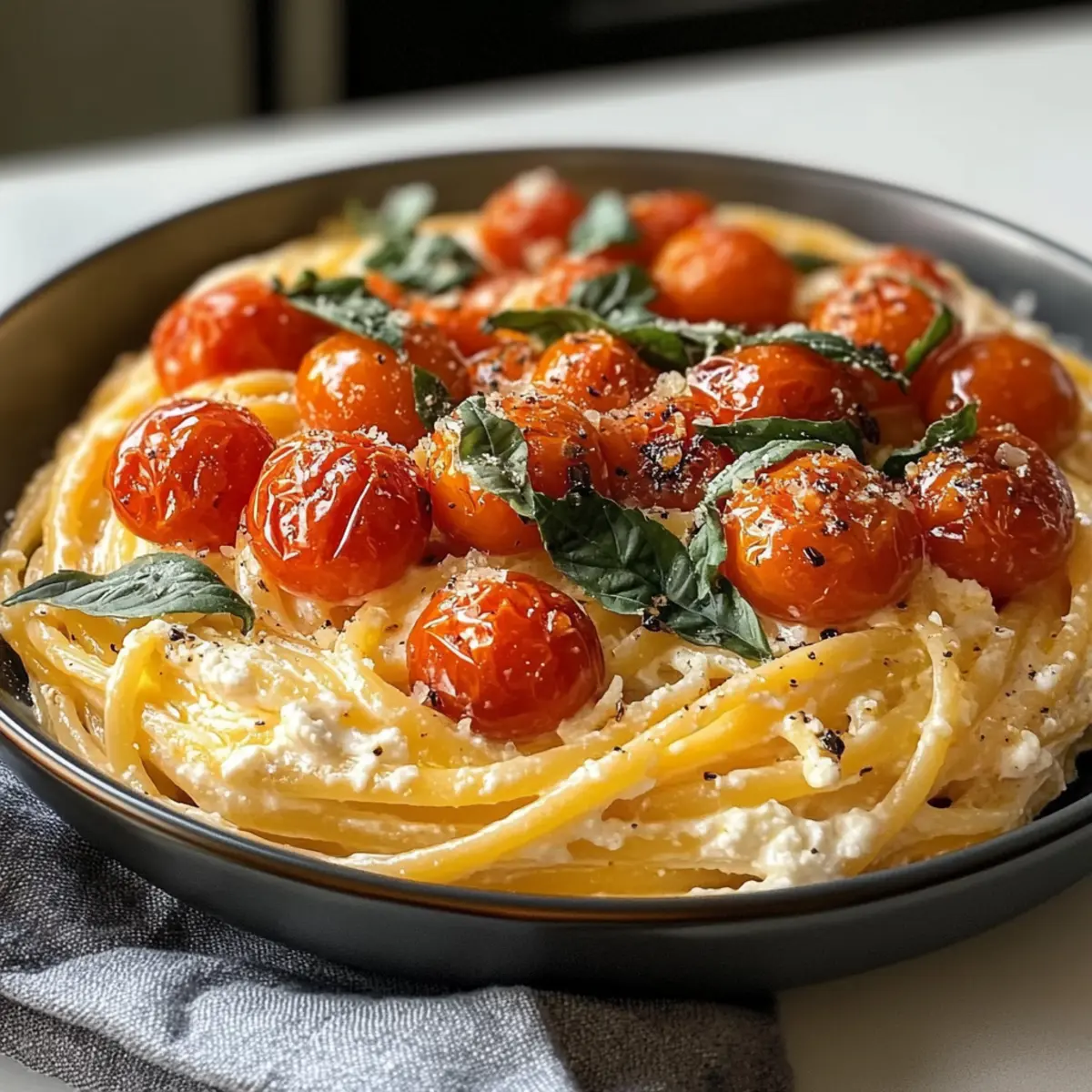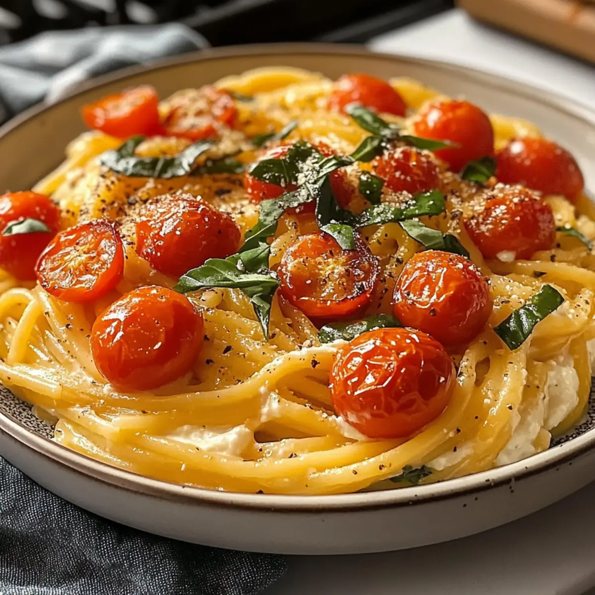 Wenn ich an die warmen Sommertage denke, kommen mir sofort die lebendigen Aromen von gegrilltem Gemüse und frischen Kräutern in den Sinn. Keine andere Speise bringt diese Erinnerungen besser zurück als die Geröstete Tomaten und Knoblauch-Ricotta-Pasta. Diese einfache, aber köstliche Pasta-Varianten bietet nicht nur eine cremige Textur, sondern sorgt auch dafür, dass man sich wie in einem italienischen Ferienhaus fühlt, selbst wenn man nur zu Hause ist. Perfekt für busy Kochliebhaber, die sich gesund und lecker ernähren möchten, ist dieses Rezept nicht nur schnell zubereitet, sondern kann auch im Voraus vorbereitet werden. Also, was hält dich noch davon ab, dich in die Küche zu begeben und ein Stück Sommer auf deinen Tisch zu zaubern? Warum wirst du dieses Rezept lieben? Einfachheit, die begeistert: Dieses Rezept für Geröstete Tomaten und Knoblauch-Ricotta-Pasta ist in kürzester Zeit zubereitet und benötigt nur grundlegende Kochfähigkeiten. Vielseitig: Ob du dunkles Vollkorn oder glutenfreie Pasta verwendest, es ist für jeden geeignet. Frische Aromen: Der Mix aus süßen, gerösteten Tomaten und cremigem Ricotta zaubert den Geschmack des Sommers auf den Tisch. Köstliche Möglichkeiten: Du kannst variieren, indem du gegrilltes Hähnchen oder frisches Gemüse hinzufügst und so dein persönliches Gericht kreierst. Perfekt für Familien: Diese Pasta ist ein Hit bei Groß und Klein, und sie ist auch super als Meal Prep geeignet! Geröstete Tomaten und Knoblauch-Ricotta-Pasta Zutaten • Für das Rezept benötigst du folgende Zutaten: Für die Pasta Pasta (z.B. Spaghetti oder Linguine) – Die Grundlage des Gerichts, die für Struktur sorgt. Whole Grain oder glutenfreie Pasta eignen sich ebenfalls. Für die Sauce Cherry-Tomaten – Bringen Süße und Säure ins Gericht. Alternativ kannst du auch Traubentomaten verwenden, die ähnlich süß sind. Knoblauch – Fügt der Sauce Tiefe und einen karamellisierten Geschmack hinzu. Roher oder gerösteter Knoblauch kann verwendet werden, wobei das Rösten die Süße betont. Olivenöl – Zum Rösten der Zutaten und zur Geschmacksverstärkung. Avocado- oder geschmolzenes Butteröl sind ebenfalls gute Alternativen. Salz und Pfeffer – Essenzielle Gewürze, die den Geschmack hervorheben. Justiere nach Belieben; frische Kräuter können die Gewürze zusätzlich betonen. Für die Cremigkeit Vollmilch-Ricotta – Sorgt für eine cremige Konsistenz und einen geschmeidigen Abgang. Verzichte auf mageren Ricotta, da er nicht genügend Fett enthält. Frisches Basilikum – Ein klassisches Kraut, das gut zu Tomaten passt. Bei Bedarf kann es durch Petersilie oder Thymian ersetzt werden. Geröstete Pinienkerne (optional) – Bringen einen extra Crunch und verstärken die Reichhaltigkeit. Diese können durch gehackte Walnüsse ersetzt oder ganz weggelassen werden. Optional für zusätzliche Aromen Sonstiges Gemüse oder Proteine – Ergänzungen wie gegrilltes Hähnchen oder frisches Spinat vermitteln noch mehr Geschmack und Nährstoffe. Schritt-für-Schritt-Anleitung für Geröstete Tomaten und Knoblauch-Ricotta-Pasta: Ein cremiger Hauch von Sommergeschmack Step 1: Ofen vorheizen Heize den Ofen auf 200 °C vor. Bereite ein Backblech vor, indem du es mit einem Stück Backpapier auslegst. Wasche die Cherry-Tomaten gründlich und halbiere sie. Schäle die Knoblauchzehen und lasse sie ganz. Vermische die Tomaten und den Knoblauch in einer Schüssel mit Olivenöl, Salz und Pfeffer, bis alles gut ummantelt ist. Step 2: Rösten der Tomaten und des Knoblauchs Verteile die gewürzten Cherry-Tomaten und die Knoblauchzehen gleichmäßig auf dem Backblech. Röste alles im vorgeheizten Ofen für etwa 25 Minuten, bis die Tomaten aufplatzen und eine goldene, karamellisierte Farbe annehmen. Der verführerische Duft der gerösteten Zutaten wird deinen Küchenraum erfüllen und die Vorfreude steigern. Step 3: Pasta kochen Bringe während die Tomaten rösten einen großen Topf mit gesalzenem Wasser zum Kochen. Füge die Pasta deiner Wahl hinzu und koche sie gemäß den Anweisungen auf der Verpackung, bis sie al dente ist (meistens etwa 8–10 Minuten). Bevor du die Pasta abgießt, bewahre eine kleine Tasse des Nudelwassers auf, welches du später für die Sauce verwenden wirst. Step 4: Mischen der Zutaten Wenn die Tomaten und der Knoblauch aus dem Ofen kommen, erhitze eine große Pfanne bei mittlerer Hitze. Gib die gerösteten Tomaten und den Knoblauch hinein, rühre aber vorsichtig um, um die Tomaten nicht zu zerdrücken. Schalte die Hitze aus, damit die Aromen sich entfalten können, während du die Ricotta hinzufügst. Step 5: Ricotta einrühren Füge den Zimmer-temperierten Vollmilch-Ricotta zu der Tomaten-Knoblauch-Mischung hinzu. Verwende einen Holzlöffel, um alles sanft zu vermengen, bis eine cremige Sauce entsteht. Wenn die Mischung zu dick ist, füge nach und nach das reservierte Nudelwasser hinzu, um die gewünschte Konsistenz zu erreichen. Step 6: Pasta hinzufügen Gebe die al dente gekochte Pasta in die Pfanne zu der Ricotta-Tomaten-Sauce. Mische alles gründlich, damit die Pasta gleichmäßig mit der cremigen Sauce überzogen wird. Achte darauf, die Pfanne von der Hitze zu nehmen, um ein Gerinnen des Ricottas zu vermeiden. Step 7: Servieren Verteile die Geröstete Tomaten und Knoblauch-Ricotta-Pasta sofort auf Tellern. Du kannst das Gericht nach Belieben mit frischen Basilikumblättern oder zusätzlichen Löffeln Ricotta garnieren. Serviere es warm, um den vollen, cremigen Geschmack zu genießen, der die Essenz des Sommers widerspiegelt. Tipps für die beste Geröstete Tomaten und Knoblauch-Ricotta-Pasta • Ricotta Zimmertemperatur: Achte darauf, dass der Ricotta Zimmertemperatur hat, um eine glatte, klumpenfreie Sauce zu gewährleisten. • Pasta-Wasser verwenden: Bewahre eine Tasse Nudelwasser auf; es hilft, die Sauce geschmeidig zu machen, wenn sie zu dick ist. • Sanft umrühren: Mische die gerösteten Tomaten und Knoblauch vorsichtig, um die T