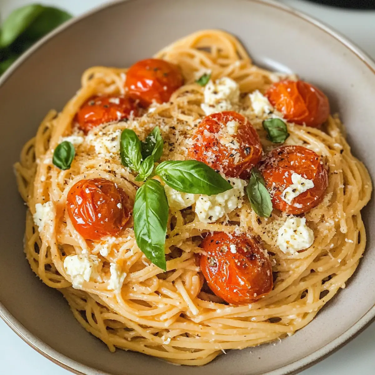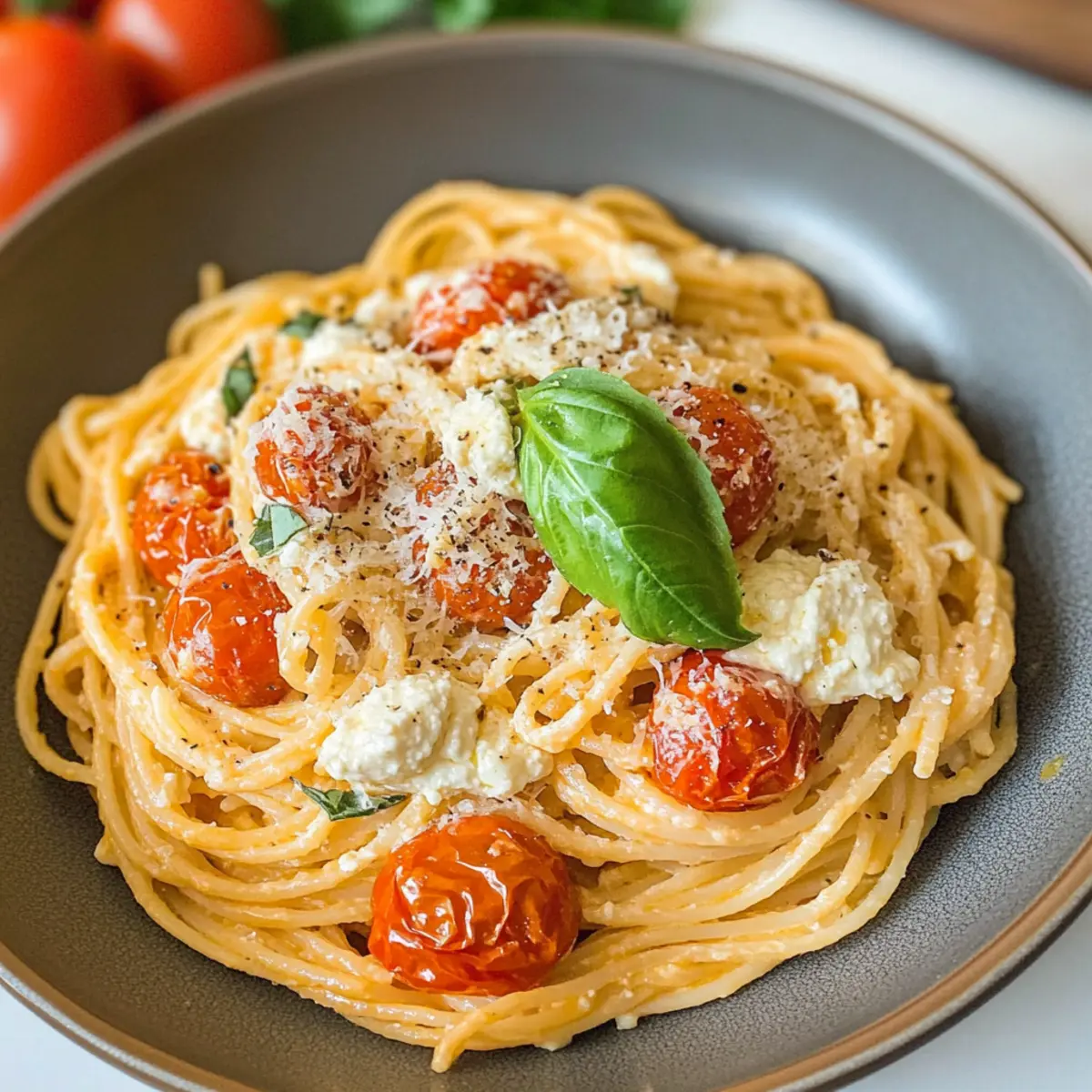 Als ich neulich in der Küche stand, um etwas Besonderes zu zaubern, entdeckte ich die perfekte Kombination aus einfachen Zutaten: Geröstete Tomaten und Knoblauch Ricotta Pasta. Dieses Gericht ist nicht nur schnell und einfach zuzubereiten, sondern begeistert auch die ganze Familie mit seinem reichhaltigen, cremigen Geschmack. Die süßen, gerösteten Tomaten und der aromatische Knoblauch verleihen der Pasta eine unverwechselbare Note und machen sie ideal für hektische Wochentage. Egal, ob du ein erfahrener Koch bist oder gerade erst anfängst, dieses Rezept wird deine Dinner-Routine aufpeppen. Bist du bereit, deine Lieben mit einem italienischen Klassiker zu überraschen? Warum wirst du dieses Rezept lieben? Einfachheit pur: Die Zubereitung ist unkompliziert, perfekt für Kochanfänger und schnell für beschäftigte Abende. Reichhaltiger, cremiger Geschmack: Die Kombination aus gerösteten Tomaten und Knoblauch sorgt für eine intensiven und verführerischen Geschmack, der die gesamte Familie begeistert. Vielseitig anpassbar: Du kannst die Ricotta durch deinen Lieblingskäse ersetzen und auch verschiedene Pastasorten wie Spaghetti oder Fettuccine verwenden. Schnell zubereitet: In weniger als 30 Minuten genießt du dieses köstliche Gericht, ideal wenn die Zeit drängt. Traditionelles italienisches Flair: Jedes Biss bringt dich in die Toskana, während die Aromen der frischen Zutaten sprechen. Probiere auch andere leckere Gerichte wie die Zucchini Tomaten Pasta oder die Cremige Pastapfanne mit Brokkoli und Speck, um deine Kochkünste weiter zu verfeinern! Geröstete Tomaten und Knoblauch Ricotta Pasta Zutaten Für die Sauce Reife mittlere Weintrauben (450g / 1 Pfund) – Hauptgeschmacksträger; das Rösten verstärkt die Süße. Knoblauch (1 kleine Knolle oder 4 große Zehen, ungeschält) – Fügt Tiefe und Süße hinzu; geröstet sorgt er für einen milden Geschmack. Olivenöl (30ml / 2 EL) – Verleiht dem Gericht einen reichen Geschmack und verbessert das Rösten. Salz und Pfeffer – Zum Würzen; nach persönlichem Geschmack anpassen. Ricotta (120g / 1/2 Tasse) – Sorgt für Cremigkeit in der Sauce; Alternativen sind Frischkäse oder vegane Ricotta-Optionen. Frische Basilikumblätter – Verbessert den Geschmack und die Präsentation; getrocknete Kräuter können ebenfalls verwendet werden. Geriebener Parmesan (zum Servieren) – Für einen umami-reichen Geschmack; kann durch Nährhefe für eine vegane Variante ersetzt werden. Für die Pasta Pasta (225g / 8 oz, z.B. Spaghetti oder Fettuccine) – Basis des Gerichts, die Struktur bietet; jede Pastaform funktioniert, auch glutenfreie Optionen sind erhältlich. Chiliflocken (1/2 TL, optional) – Fügt Wärme und Tiefe hinzu; nach Wunsch weglassen oder anpassen. Denke daran, mit gerösteten Tomaten und Knoblauch Ricotta Pasta wirst du ein schnelles und leckeres Gericht zaubern, das deine gesamte Familie lieben wird! Schritt-für-Schritt-Anleitung für Geröstete Tomaten und Knoblauch Ricotta Pasta Step 1: Tomaten und Knoblauch rösten Heize den Ofen auf 200 °C vor. Halbiere die reifen Weintrauben und lege sie mit der ungeschälten Knoblauchknolle in eine Backform. Beträufle sie mit Olivenöl und würze großzügig mit Salz und Pfeffer. Röste die Mischung 20 Minuten lang, bis die Tomaten zu blubbern beginnen, und garniere sie dann mit einem weiteren 10-minütigen Backen, bis sie weich und leicht gebräunt sind. Step 2: Pasta kochen Setze währenddessen einen großen Topf mit gesalzenem Wasser auf und bringe ihn zum Kochen. Füge die Pasta hinzu und koche sie nach Packungsanweisung al dente. Vergiss nicht, 240 ml (1 Tasse) des Kochwassers vor dem Abgießen der Pasta aufzuheben, da es dir später helfen wird, die Sauce zu binden und eine perfekte Konsistenz zu erreichen. Step 3: Sauce zubereiten Sobald die Tomaten und der Knoblauch geröstet sind, drücke den Knoblauch aus der Schale und gib ihn zusammen mit den Tomaten in einen Mixer. Füge die frischen Basilikumblätter, die Ricotta und 100 ml des reservierten Pasta-Wassers hinzu. Mixe alles bis zu einer glatten, cremigen Sauce. Achte darauf, die Mischung sorgfältig zu pürieren, damit eine gleichmäßige Textur entsteht. Step 4: Pasta und Sauce vermengen Gib die gekochte Pasta in eine große Pfanne. Gieße die cremige Sauce aus dem Mixer darüber und mische alles gut durch, bis die Pasta gleichmäßig mit der Sauce überzogen ist. Wenn die Sauce zu dick ist, kannst du nach Belieben mehr von dem reservierten Pasta-Wasser hinzufügen, um die perfekte, seidige Konsistenz zu erreichen. Step 5: Servieren und garnieren Schmecke die Gericht ab und passe die Gewürze nach deinem Geschmack an. Ziehe frische Basilikumblätter über die Pasta und streue geriebenen Parmesan darüber, um das Gericht abzurunden. Serviere die Geröstete Tomaten und Knoblauch Ricotta Pasta sofort, damit die Aromen frisch und intensiv zur Geltung kommen. Aufbewahrungstipps für Geröstete Tomaten und Knoblauch Ricotta Pasta Raumtemperatur: Lass die Pasta nach dem Kochen auf Zimmertemperatur abkühlen, bevor du sie in den Kühlschrank stellst, um die Bildung von Kondenswasser zu vermeiden. Kühlschrank: Bewahre die Reste in einem luftdichten Behälter im Kühlschrank auf. Sie sind bis zu 2 Tage haltbar und schmecken genauso gut. Gefrierschrank: Du kannst die Sauce separat einfrieren. Fülle sie in gefriergeeignete Behälter und friere sie bis zu 3 Monate ein. Die Pasta selbst wird nicht empfohlen zu gefrieren, da sie ihre Textur verlieren kann. Wiedererwärmen: Beim Aufwärmen der Reste, füge einen Schuss des aufbewahrten Pasta-Wassers hinzu, um die Sauce wieder cremig zu machen und die Konsistenz zu verbessern. Was passt gut zu Geröstete Tomaten und Knoblauch Ricotta Pasta? Um das perfekte Abendessen zu kreieren, stehen dir zahlreiche köstliche Begleitgerichte zur Auswahl, die dein Hauptgericht wunderbar ergänzen. Frischer grüner Salat: Ein leichter, knackiger Salat mit Rucola und Cherry-Tomaten bietet eine