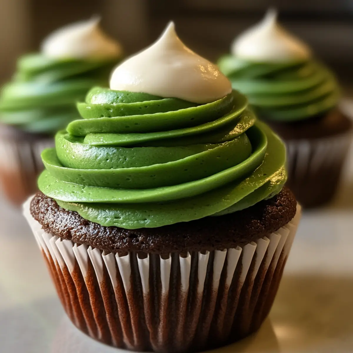 Als ich kürzlich in meiner Küche stand, um ein fröhliches Dessert zu kreieren, fiel mein Blick auf die frischen Spinatblätter im Kühlschrank. Warum nicht eine gehörige Portion Farbe und Gesundheit in meine Backkünste bringen? Die Antwort waren diese wunderbaren Grüne Samt Cupcakes! Diese besonderen Cupcakes sind nicht nur ein echter Hingucker für jede Feier, sei es St. Patrick’s Day oder einfach ein fröhliches Wochenend-Buffet, sondern auch unglaublich saftig und zart. Dank des Spinats als natürlichem Farbstoff wird der Genuss gleich doppelt belohnt. Außerdem ist die Zubereitung kinderleicht und für Bäcker jeden Niveaus geeignet. Neugierig? Lass uns gemeinsam eintauchen und diese bunten Köstlichkeiten zaubern! Warum sind diese Cupcakes so besonders? Einzigartige Farben: Diese Grüne Samt Cupcakes bringen nicht nur Farbe auf den Tisch, sondern auch Freude in jede Feier. Natürlicher Farbstoff: Mit frischem Spinat als Farbstoff genießen Sie ein geschmackvolles und gesundes Dessert. Einfache Zubereitung: Die kinderleichte Anleitung macht das Backen zum Kinderspiel, egal ob Sie ein erfahrener Backprofi oder ein Neuling sind. Fantastische Textur: Die Cupcakes sind zart und saftig, perfekt mit einer cremigen Frischkäse-Glasur. Vielseitige Anlässe: Egal ob zum Geburtstag oder zu Feiertagen, diese Cupcakes passen immer! Lassen Sie sich inspirieren und entdecken Sie die Kunst des Backens mit diesen bunten Leckereien! Grüne Samt Cupcakes Zutaten • Diese Grüne Samt Cupcakes sind nicht nur farbenfroh, sondern auch unwiderstehlich saftig und lecker! Für den Teig Allzweckmehl – sorgt für die nötige Struktur der Cupcakes; kann durch glutenfreies Mehl ersetzt werden. Zucker – fügt Süße und Feuchtigkeit hinzu; verwenden Sie alternativ Kokoszucker für eine niedrigere glykämische Option. Kakaopulver – verstärkt den Geschmack und die Farbe; nutzen Sie niederländisches Kakaopulver für einen intensiveren Geschmack. Salz – hebt die Aromen hervor; probieren Sie Himalaya-Salz für eine gesündere Wahl. Backpulver – fungiert als Treibmittel; stets frisch verwenden, um das Aufgehen zu gewährleisten. Eier – sorgen für Feuchtigkeit und Stabilität; verwenden Sie für eine vegane Variante Leinsamen-Eier. Öl – sorgt für zusätzliche Feuchtigkeit; Gemüse- oder Rapsöl ist ideal. Buttermilch – bringt eine angenehme Säure; kann auch selbst gemacht werden mit Milch und Essig oder Zitronensaft. Essig – arbeitet mit dem Backpulver zur Lockerung; kann durch Zitronensaft ersetzt werden. Vanilleextrakt – hebt den Geschmack hervor; verwenden Sie reinen Vanilleextrakt für die beste Qualität. Grüne Lebensmittelfarbe – traditionell für die Farbe; verwenden Sie stattdessen natürliche Spinatpuree für eine bunte, gesunde Option. Für das Frosting Frischkäse – bildet die Basis des Frostings und sorgt für eine angenehme Säure; veganen Frischkäse für eine milchfreie Variante nutzen. Butter – verleiht dem Frosting Reichhaltigkeit; verwenden Sie Kokosöl für eine milchfreie Option. Puderzucker – süßt und dickt das Frosting an; probieren Sie Puder-Erythrit für eine zuckerreduzierte Variante. Milch – passt die Konsistenz des Frostings an; pflanzliche Milch für eine milchfreie Version verwenden. Schritt-für-Schritt-Anleitungen für Grüne Samt Cupcakes Step 1: Ofen vorheizen Heize deinen Ofen auf 175°C vor und lege ein Muffinblech mit Cupcake-Förmchen aus. Diese vorbereitenden Schritte sind entscheidend, damit die Grüne Samt Cupcakes gleichmäßig und wunderbar aufgehen. Ein vorgeheizter Ofen sorgt dafür, dass die Cupcakes sofort beim Einfüllen des Teigs anfangen zu backen. Step 2: Trockene Zutaten vermengen In einer großen Schüssel das Allzweckmehl, Zucker, Kakaopulver, Salz und Backpulver gründlich vermengen. Mit einem Schneebesen alles gut durchmischen, bis keine Klumpen mehr sichtbar sind. Diese Mischung ist die Grundlage für deine Grüne Samt Cupcakes, die beim Backen für die gewünschte Struktur sorgen. Step 3: Feuchte Zutaten mischen In einer separaten Schüssel die Eier verquirlen, dann Öl, Buttermilch, Essig und Vanilleextrakt hinzufügen und gut vermischen. Wenn du frische Spinatpuree verwendest, füge diese ebenfalls hinzu. Diese feuchte Mischung wird den Cupcakes ihre Saftigkeit und die charakteristische grüne Farbe verleihen. Step 4: Trockene und feuchte Zutaten kombinieren Gib die feuchte Mischung zu den trockenen Zutaten und rühre alles bei mittlerer Geschwindigkeit, bis alles gerade so vermischt ist. Achte darauf, nicht zu übermixen, um eine zarte Textur der Grünen Samt Cupcakes zu gewährleisten. Der Teig sollte glatt und gleichmäßig in der Farbe sein. Step 5: Teig einfüllen Fülle die vorbereiteten Cupcake-Förmchen mit dem Teig, wobei du sie zu etwa zwei Dritteln voll machst. Achte darauf, dass die Förmchen gleichmäßig gefüllt sind, um Überlauf während des Backens zu vermeiden. Du solltest bereits den köstlichen Duft der Mischung wahrnehmen können. Step 6: Backen Backe die Cupcakes für etwa 16-18 Minuten im vorgeheizten Ofen. Sie sind fertig, wenn ein Zahnstocher in der Mitte ohne Teigreste herauskommt. Achte darauf, den Backprozess genau zu überwachen, um perfekte Grüne Samt Cupcakes zu erhalten. Step 7: Abkühlen lassen Lasse die Cupcakes kurz in der Form abkühlen, bevor du sie auf ein Kuchengitter überträgst. Das Abkühlen ist wichtig, damit sie die ideale Konsistenz behalten und das Frosting später nicht schmilzt. Nachdem sie abgekühlt sind, sind sie bereit für die Glasur. Step 8: Frosting zubereiten Für das Frosting den weich gemachten Frischkäse und die Butter in einer Schüssel cremig rühren, bis die Mischung glatt ist. Füge dann nach und nach den Puderzucker und die Milch hinzu, bis die gewünschte Konsistenz erreicht ist. Dieses köstliche Frosting wird perfekt auf den Grünen Samt Cupcakes harmonieren. Step 9: Cupcakes dekorieren Sobald die Cupcakes vollständig abgekühlt sind, verwende 