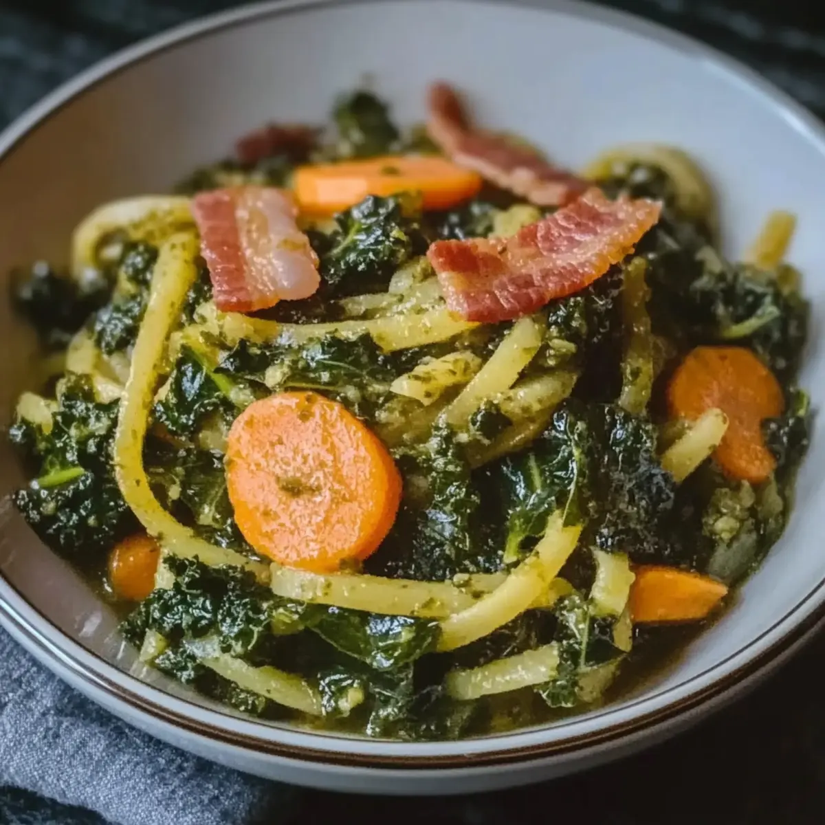 Im Herzen des Winters, wenn die Kälte in die Knochen kriecht und es Zeit für etwas Herzhaftes ist, gibt es kaum etwas Besseres als eine warme Schüssel Grünkohl. Diese köstliche Grünkohlvariation, die ich euch heute vorstelle, ist nicht nur ein echtes Fest für die Sinne, sondern auch eine Wohltat für die Seele. Mit frischem Grünkohl, verfeinert mit knackigem Speck oder einer vegetarischen Alternative, entsteht ein nahrhafter Eintopf, der in weniger als einer Stunde auf dem Tisch steht. Perfekt für gesellige Abende mit Freunden oder der Familie, schmeckt das Gericht nicht nur hervorragend, sondern ist auch ein wunderbares Beispiel für saisonale Küche. Seid ihr bereit, die winterlichen Tage mit einem herzlichen, hausgemachten Eintopf zu erhellen? Warum ist Grünkohl so besonders? Herzhaft und nahrhaft: Grünkohl ist nicht nur reich an Vitaminen, sondern auch perfekt für kalte Tage. Vielfältige Alternativen: Unser Rezept bietet die Möglichkeit, Speck durch eine vegetarische Option zu ersetzen, ohne Kompromisse beim Geschmack einzugehen. Einfach zuzubereiten: Mit nur wenigen Zutaten und kurzer Kochzeit ist dieser Eintopf ideal für Kochanfänger und Zeitspare. Saisonale Frische: Die Kombination aus frischem Grünkohl und saisonalen Zutaten bringt den echten Geschmack des Winters auf den Tisch. Gemütlich für jeden: Egal ob beim Dinner mit Freunden oder beim Familienessen – dieser Eintopf bringt Wärme und Freude in jeden Haushalt! Grünkohl Eintopf Zutaten Für den Eintopf Frischer Grünkohl – Hauptzutat, die eine nahrhafte Basis bietet; gefrorener Grünkohl kann als Ersatz verwendet werden, wenn frischer nicht verfügbar ist. Zwiebeln – Fügen Tiefe und Süße hinzu; Schalotten sind eine milde Alternative. Knoblauchzehen – Verstärken das herzhafte Aroma; Knoblauchpulver kann eine gute Ersatzoption sein. Speck – Sorgt für einen salzigen, herzhaften Geschmack; für die vegetarische Variante kann geräucherter Tofu oder Tempeh verwendet werden. Gemüsebrühe – Dient als Kochflüssigkeit und bereichert den Geschmack des Eintopfs; eine natriumarme Brühe ist eine gesundheitsbewusste Wahl. Karotten – Bringen Süße und Farbe; Pastinaken können für ein anderes Geschmacksprofil eingesetzt werden. Kartoffeln – Verleihen Herzhaftigkeit und Substanz; Süßkartoffeln können für eine süßere Note verwendet werden. Kümmel – Fügt Wärme und Tiefe hinzu; Fenchelsamen können ein ähnliches Geschmacksbild bieten. Salz und Pfeffer – Unentbehrlich für die Würze; individuell anpassen, je nach Geschmack. Olivenöl – Wird zum Anbraten verwendet; kann durch jedes neutrale Öl wie Pflanzen- oder Rapsöl ersetzt werden. Apfelessig (optional) – Bringt eine Note von Säure, die die Aromen ausgleicht; Zitronensaft kann eine gute Alternative sein. Konsumiert diesen herzhaften Grünkohl Eintopf und erlebt, wie die kräftigen Aromen und die frischen Zutaten für eine unvergessliche Geschmackserfahrung sorgen! Schritt-für-Schritt-Anleitung für den herzhaften Grünkohl Eintopf Step 1: Grünkohl vorbereiten Wasche den frischen Grünkohl gründlich unter fließendem Wasser, um eventuelle Erde und Rückstände zu entfernen. Entferne die harten Stiele und schneide die Blätter in etwa 2–3 cm große Stücke. Dies sorgt dafür, dass der Grünkohl gleichmäßig kocht und schön zart wird, wenn er später im Eintopf landet. Step 2: Zwiebeln und Knoblauch hacken Schneide die Zwiebeln und den Knoblauch fein. Du kannst dafür ein scharfes Küchenmesser oder eine Küchenmaschine verwenden, um Zeit zu sparen. Achte darauf, dass die Stücke gleichmäßig sind, damit sie beim Sautieren gleichmäßig garen und aromatisch werden. Step 3: Speck oder vegetarischen Ersatz schneiden Falls du Speck verwendest, schneide ihn in kleine Würfel. Für die vegetarische Variante kannst du geräucherten Tofu oder Tempeh in vergleichbare Stücke schneiden. Dies sorgt dafür, dass die Zutaten beim Anbraten gut durchgaren und die Aromen gleichmäßig im Eintopf verteilen. Step 4: Karotten und Kartoffeln vorbereiten Schäle die Karotten und Kartoffeln und schneide sie in kleine Würfel. Idealerweise sollten alle Stücke etwa gleich groß sein, damit sie in der gleichen Zeit garen. So erhältst du eine schöne Textur für deinen herzhaften Grünkohl Eintopf, der sowohl nahrhaft als auch geschmackvoll ist. Step 5: Speck anbraten Erhitze in einem großen Topf bei mittlerer Hitze etwa 2 Esslöffel Olivenöl. Füge die Speckwürfel hinzu und brate sie an, bis sie knusprig sind, was etwa 5–7 Minuten dauern sollte. Das ausgetretene Fett sorgt dafür, dass die Aromen beim weiteren Kochen intensiviert werden. Step 6: Zwiebeln und Knoblauch hinzufügen Gib die gehackten Zwiebeln und den Knoblauch zu dem knusprigen Speck im Topf. Sautiere alles zusammen für 2–3 Minuten, bis die Zwiebeln glasig und weich sind. Der Duft, der dabei entsteht, ist bereits ein Vorgeschmack auf den herzhaften Grünkohl Eintopf, den du zubereitest. Step 7: Karotten und Kartoffeln einrühren Füge nun die geschnittenen Karotten und Kartoffeln in den Topf hinzu und rühre gut um. Brate die Mischung für etwa 5 Minuten an, damit sich die Aromen entfalten können und die Zutaten leicht anbraten. Dies wird die Grundlage für den Geschmack deines Eintopfs bilden. Step 8: Grünkohl hinzufügen Jetzt ist es Zeit, den vorbereiteten Grünkohl hinzuzufügen. Rühre ihn gut unter die anderen Zutaten, bis der Grünkohl leicht verwelkt, was in etwa 3–4 Minuten geschieht. Dies verleiht deinem Eintopf eine schöne grüne Farbe und sorgt dafür, dass der Grünkohl weich wird. Step 9: Brühe und Kümmel beifügen Gieße die Gemüsebrühe in den Topf und füge den Kümmel hinzu. Bringe die Mischung zum Kochen und reduziere dann die Hitze, um alles 20 Minuten lang leicht köcheln zu lassen. Rühre gelegentlich um, damit nichts ansetzt, und beobachte, wie sich die Aromen vermischen und der Eintopf eindickt. Step 10: Abschmecken und servieren Nach 20 Mi