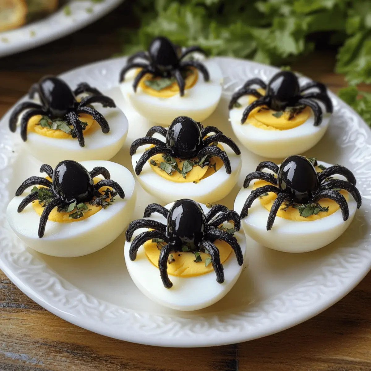 Als ich neulich in der Küche herumexperimentierte, fiel mein Blick auf die köstlichen kleinen Eier, die nur darauf warteten, in etwas Gruseliges verwandelt zu werden. Diese Gruselige Spinneneier sind nicht nur eine fantasievolle Idee für Halloween, sondern auch ein echter Hit bei Kindern und Erwachsenen. Mit proteinreichen Eiern und herzhaften schwarzen Oliven, die die Körper der Spinnen darstellen, sind diese Snacks einfach zuzubereiten und sorgen für viel Spaß beim Basteln und Essen. Sie eignen sich perfekt für Familientreffen oder Schulpartys und sind blitzschnell fertig – ein echter Gewinn in der hektischen Vorbereitungszeit! Wer kann schon widerstehen, bei einer schaurigen Halloween-Feier in einen solchen schmackhaften, spooky Snack zu beißen? Bereit, gemeinsam kreativ zu werden? Warum sind diese Spinneneier perfekt? Kreativität in der Küche: Lassen Sie Ihrer Fantasie freien Lauf, während Sie diese gruseligen Spinneneier gestalten! Einfachheit in der Zubereitung: Die Schritt-für-Schritt-Anleitung sorgt dafür, dass auch Anfänger diese Schnappchen meistern können. Geselligkeit beim Basteln: Kinder können beim Dekorieren helfen, was sie begeistert und in die Halloween-Stimmung versetzt. Vielfältige Variationen: Probieren Sie alternative Zutaten wie Trauben oder grüne Oliven, um einen vielseitigen Snack zu kreieren. Nährstoffreich: Mit hochwertigem Eiweiß und gesunden Fetten sind diese Happen nicht nur schmackhaft, sondern auch nahrhaft! Verpassen Sie nicht, sie auf Ihrer nächsten Halloween-Party zu servieren! Gruselige Spinneneier Zutaten • Diese Zutaten machen Ihre Gruselige Spinneneier zum Hit! Für die Spinneneier 12 Eier – Sie bilden die Hauptstruktur und sind reich an Protein für einen sättigenden Snack. 1 Glas schwarze Oliven – Sie dienen zur Dekoration und sehen aus wie die Körper der Spinnen; als Alternative können auch Trauben verwendet werden. Für die Dekoration Essbare Augen – Eine tolle Möglichkeit, um Ihre Spinneneier noch gruseliger zu machen! Frische Kräuter – Verwenden Sie Schnittlauch oder Petersilie als „Netz“ und für zusätzlichen Geschmack. Schritt-für-Schritt-Anleitung für Gruselige Spinneneier Step 1: Wasser zum Kochen bringen Füllen Sie einen großen Topf mit ausreichend Wasser, um alle Eier vollständig zu bedecken. Stellen Sie den Topf auf den Herd und bringen Sie das Wasser bei mittlerer Hitze zum Kochen. Achten Sie darauf, dass das Wasser sprudelnd kocht, bevor Sie die Eier hinzufügen, um sicherzustellen, dass sie gleichmäßig gegart werden. Step 2: Eier kochen Sobald das Wasser kocht, legen Sie vorsichtig die 12 Eier mit einem Löffel ins Wasser. Decken Sie den Topf ab und kochen Sie die Eier für etwa 10 Minuten. Während dieser Zeit wird das Eiweiß fest und das Eigelb cremig, was für Ihre Gruselige Spinneneier wichtig ist. Step 3: Eier abkühlen Nach den 10 Minuten nehmen Sie den Topf vom Herd. Gießen Sie das heiße Wasser vorsichtig ab und überführen Sie die Eier sofort in eine Schüssel mit kaltem Wasser. Lassen Sie die Eier etwa 5-10 Minuten abkühlen, damit sie sich leichter schälen lassen und nicht mehr heiß sind. Step 4: Oliven vorbereiten Während die Eier abkühlen, öffnen Sie das Glas mit den schwarzen Oliven. Schälen Sie die Oliven und schneiden Sie sie der Länge nach in zwei Hälften. Diese Olivenhälften werden die Körper Ihrer Spinnen auf den Gruselige Spinneneier. Stellen Sie die geschnittenen Oliven beiseite. Step 5: Spinneneier zusammensetzen Sobald die Eier abgekühlt sind, schälen Sie die Eier vorsichtig und schneiden Sie sie der Länge nach in zwei Hälften. Platzieren Sie eine Olive in der Mitte jeder Hälfte als Spinnenkörper. Achten Sie darauf, die Oliven so anzuordnen, dass sie gut sichtbar sind und Ihre Spinneneier gruselig aussehen! Step 6: Anrichten und servieren Arrangieren Sie die Gruselige Spinneneier auf einem schönen Halloween-Platter. Sie können auch essbare Augen und frische Kräuter hinzufügen, um die Präsentation zu verbessern und ihnen ein gruseliges Aussehen zu verleihen. Servieren Sie die Spinneneier sofort, um Ihren Gästen diesen schmackhaften und kreativen Snack schmackhaft zu machen. Aufbewahrungstipps für Gruselige Spinneneier Raumtemperatur: Gruselige Spinneneier sollten nicht länger als 2 Stunden bei Raumtemperatur aufbewahrt werden, um die Frische und Sicherheit zu gewährleisten. Kühlschrank: Lagern Sie die Spinneneier in einem luftdicht verschlossenen Behälter im Kühlschrank, wo sie bis zu 3 Tage frisch bleiben. Vorbereitung im Voraus: Diese Eier können einen Tag im Voraus zubereitet werden. Lassen Sie sie vor dem Servieren frisch aussehen, indem Sie die Dekoration kurz vorher anbringen. Wiedereinlegung: Wenn Sie die Spinneneier aufwärmen möchten, erwärmen Sie sie kurz in der Mikrowelle, jedoch bitte ohne Oliven, um ihre Form und Frische zu bewahren. Was serviert man zu Gruseligen Spinneneiern? Genießen Sie die kreativen und schaurigen Geschmäcker mit passenden Beilagen, die Ihr Halloween-Buffet perfekt abrunden. Kürbiscremesuppe: Diese samtige Suppe bringt eine süßliche Note und sorgt für einen warmen Kontrast zu den herzhaften Spinneneiern. Der Kürbis ist die perfekte Hausgemachte Seele des Herbstes und ergänzt die fleischlosen Spinneneier ideal! Bunte Gemüsesticks: Frische Karotten, Paprika und Gurken setzen einen bunten Akzent. Die knackige Textur bietet eine leckere Abwechslung zu den cremigen Eiern und sorgt für gesunde Knabberei. Schwarze Oliven-Brotstangen: Knusprige Brotstangen mit einem Dip aus dem gleichen schwarzen Olivenbrei ergänzen das Thema spielend. Das Knabbern macht Spaß und lockt besonders die Kleinen magisch an – ein ideales Fingerfood! Gruselige Getränke: Servieren Sie gruselige Cocktails oder alkoholfreie Getränke mit Fruchtsaft und einem Spritzer Sprudel. Der prickelnde Trank sollte mit „spooky“ Höhlenboden (z.B. Lebensmittelfarbe) kombiniert werden, um das Halloween-Thema aufzugreifen. Gru