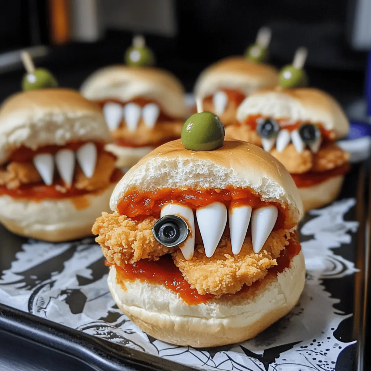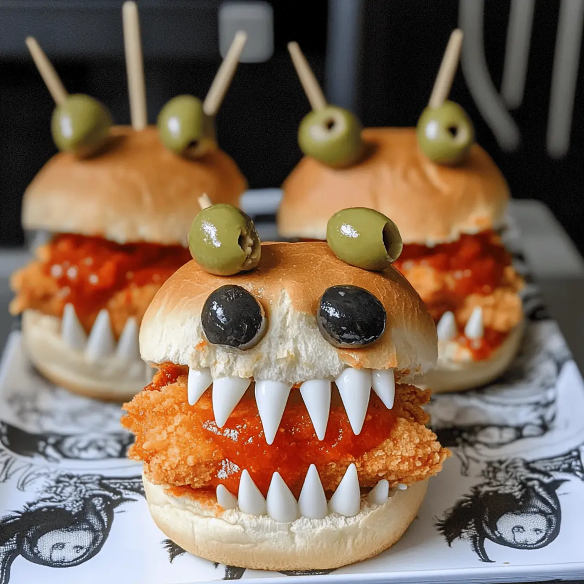 Ein fröhliches Kichern hallt durch die Küche, während sich meine Freunde um den Tisch versammeln. Es ist Halloween und ich habe eine köstliche Überraschung vorbereitet: die Halloween Hähnchen Parmesan Sliders! Diese Monster-Häppchen sind nicht nur schnell und einfach zuzubereiten, sie sind auch individuell anpassbar und machen jedes Fest zu etwas Besonderem. Gefüllt mit saftigem Hühnchen, schmelzendem Mozzarella und aromatischer Marinara, werden sie sowohl Kinder als auch Erwachsene begeistern. Perfekt für Ihr Halloween-Party-Buffet, diese kleinen Leckerbissen sind nicht nur ein Augenhöhe, sondern auch eine schmackhafte Abwechslung zu schnellem Essen. Wer könnte da widerstehen? Lassen Sie uns gemeinsam herausfinden, wie wir diese unvergesslichen Sliders zubereiten können! Warum sind diese Sliders ein Muss? Spaß zum Selbermachen: Diese Halloween Hähnchen Parmesan Sliders sind einfach zu kreieren und erlauben kreative Anpassungen, die Ihre Gäste begeistern werden. Vielfältig in den Variationen: Kombinieren Sie die köstlichen Hähnchenhälften mit BBQ und Cheddar oder probieren Sie die würzige Buffalo-Variante für verschiedene Geschmäcker. Aromatisch und herzhaft: Das geschmolzene Mozzarella verschmilzt perfekt mit der fruchtigen Marinara und sorgt für ein unvergessliches Geschmackserlebnis. Perfekt für jede Feier: Diese kleinen Häppchen sind ideal als Appetitanreger auf Ihrem Halloween-Buffet oder für eine gesellige Runde. Probieren Sie auch die Mich Pastapfanne Mit für weitere festliche Ideen! Zeitersparnis in der Küche: Sie lassen sich im Voraus vorbereiten, sodass Sie mehr Zeit mit Ihren Liebsten verbringen können. Zutaten für Halloween Hähnchen Parmesan Sliders • Diese köstlichen Sliders sind nicht nur ein Genuss, sondern auch einfach zuzubereiten! Für die Sliders Gefrorene Hähnchen-Täschchen – Hauptquelle für Protein, folgen Sie den Anweisungen auf der Verpackung. Sliderbrötchen – Diese weichen Brötchen bilden die Basis und sorgen für den perfekten Biss. Mozzarella-Käse – Verleiht eine cremige, schmelzende Textur; kann in lustige Formen geschnitten werden. Marinara-Sauce – Aromatischer Geschmacksträger, der das Hähnchen ergänzt; tauschen Sie sie gegen BBQ-Sauce für eine pikante Variante. Grüne Oliven (mit Pimento gefüllt) – Perfekt als “Augen”, um ein gruseliges Aussehen zu kreieren; einfach auf Zahnstocher vorbereiten. Mit diesen Zutaten zaubern Sie im Handumdrehen die perfekten Halloween Hähnchen Parmesan Sliders, die Spaß und Geschmäcker kombinieren! Schritt-für-Schritt-Anleitungen für Halloween Hähnchen Parmesan Sliders Step 1: Hähnchen zubereiten Bereiten Sie die gefrorenen Hähnchen-Täschchen gemäß der Verpackungsanweisungen vor. Heizen Sie den Ofen auf 200 Grad Celsius vor und backen Sie die Hähnchen für etwa 20 Minuten, bis sie goldbraun und knusprig sind. Stellen Sie sicher, dass sie vollständig durchgegart sind, um die besten Ergebnisse zu erzielen. Step 2: Käse vorbereiten Während die Hähnchen backen, schneiden Sie die Mozzarella-Käse in dünne Scheiben. Mit einem kleinen Messer oder Ausstecher können Sie scharfe Zähneformen in den Käse schneiden. Dies verleiht den Sliders ein lustiges, gruseliges Aussehen. Stellen Sie die vorbereiteten Käsestücke zur Seite. Step 3: Oliven für die “Augen” vorbereiten Bereiten Sie jetzt die grünen Oliven vor, indem Sie jeweils eine Olive auf einen Zahnstocher stecken. Jede Sliders benötigt zwei Oliven, um die “Augen” zu formen. Behalten Sie die Oliven auf Zahnstocher, bis Sie bereit sind, die Sliders zusammenzustellen. Step 4: Marinara erwärmen Erhitzen Sie die Marinara-Sauce in einem kleinen Kochtopf bei mittlerer Hitze. Rühren Sie gelegentlich um und bringen Sie die Sauce zum Simmern, was etwa 5 Minuten dauert. Achten Sie darauf, dass sie nicht anbrennt, während die Aromen sich entfalten. Step 5: Sliders zusammenstellen Sobald die Hähnchen fertig sind, nehmen Sie die Brötchen und legen Sie jeweils einen Esslöffel Marinara-Sauce auf das untere Brötchen. Legen Sie dann ein heißes Hähnchen-Täschchen darauf. Fügen Sie nach Belieben mehr Marinara-Sauce und dann ein Stück des vorbereiteten Käses hinzu, sodass die Zähne nach vorne zeigen. Step 6: Oliven aufsetzen Setzen Sie das obere Brötchen auf die Sliders und stecken Sie zwei der Oliven auf den Zahnstocher auf der Oberseite des Brötchens, sodass sie wie gruselige Augen aussehen. Drücken Sie leicht, um sicherzustellen, dass alles gut zusammenhält. Step 7: Sofort servieren Servieren Sie die Halloween Hähnchen Parmesan Sliders sofort, um die frische und den geschmolzenen Käse zu genießen. Neben einer Schale zusätzlicher Marinara-Sauce zum Dippen sind sie die perfekte Ergänzung für Ihr Halloween-Feierbuffet! Lagerung und Einfrieren von Halloween Hähnchen Parmesan Sliders Raumtemperatur: Die Sliders sollten nach der Zubereitung nicht länger als 2 Stunden bei Raumtemperatur stehen gelassen werden, um ihre Frische zu bewahren. Kühlschrank: Wenn Sie die Sliders aufbewahren möchten, lagern Sie sie in einem luftdichten Behälter im Kühlschrank und essen Sie sie innerhalb von 3 Tagen für den besten Geschmack. Gefrierschrank: Die Sliders können eingefroren werden; wickeln Sie sie gut in Frischhaltefolie oder Alufolie ein und lagern Sie sie bis zu 2 Monate. Zum Aufwärmen einfach im Ofen bei 180 °C für 15-20 Minuten backen. Wiedererwärmung: Für die besten Ergebnisse die Sliders im Ofen oder in einer Pfanne bei mittlerer Hitze aufwärmen, damit der Käse schön schmilzt und die Brötchen knusprig bleiben. Variationen & Alternativen Erlauben Sie Ihrer Kreativität freien Lauf und passen Sie diese Sliders nach Ihrem Geschmack an! BBQ-Bacon: Ersetzen Sie das Hähnchen durch gebratenen Bacon und fügen Sie Cheddar-Käse hinzu, um einen rauchigen Geschmack zu erzielen. Buffalo und Blauschimmel: Tauschen Sie Marinara gegen würzige Buffalo-Sauce und fügen Sie Blauschimmelkäse sowie Ja