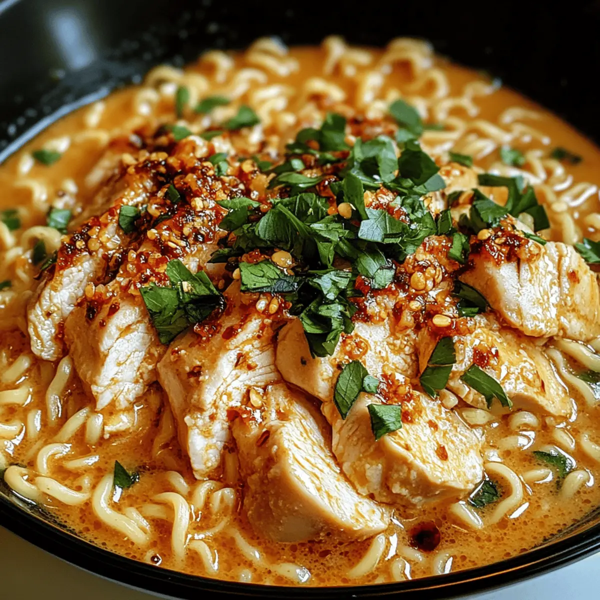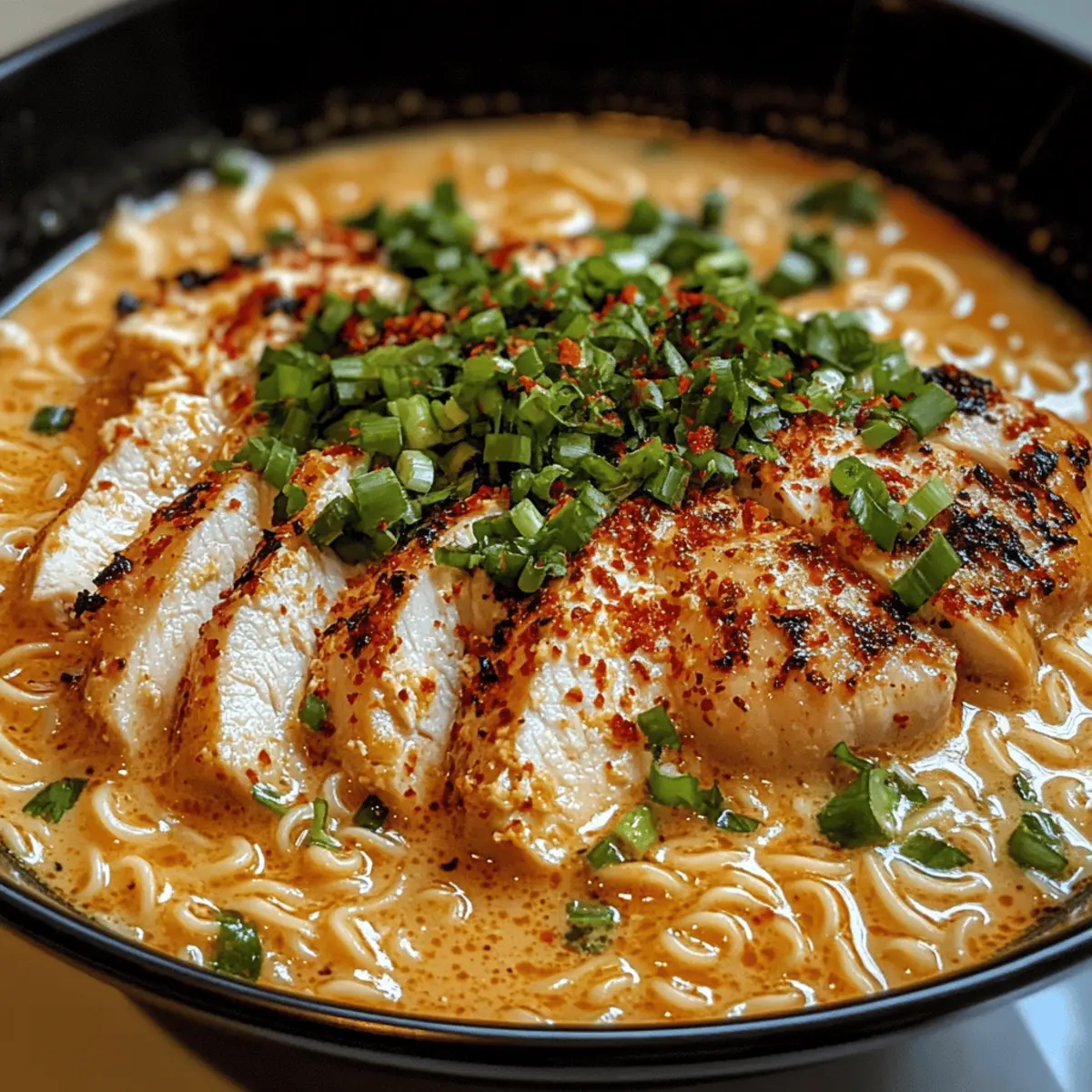 In der letzten Zeit hatte ich einen kleinen Wettbewerb in meiner Küche, um das schnellste Abendessen mit dem größten Wow-Faktor zu kreieren. Und glaubt mir, das war keine einfache Aufgabe! Doch als ich das Rezept für Heirate mich Hähnchen Ramen ausprobierte, war ich sofort überzeugt. Diese cremige Schüssel voller umami-geladenem Geschmack vereint zarte Hähnchenstücke in einer reichhaltigen Parmesan-Tomaten-Sauce, die einfach himmlisch ist. Was ich an dieser Speise liebe? Es ist nicht nur ein schnelles Gericht, das im Handumdrehen zubereitet ist, sondern auch voller Möglichkeiten für eure ganz persönlichen Anpassungen. Ob ihr nun Gemüse hinzufügen oder die Schärfe erhöhen möchtet, diese Ramen werden garantiert das Herz jedes Esser im Sturm erobern. Neugierig, wie ihr euer eigenes Meisterwerk zubereiten könnt? Lasst uns loslegen! Warum werden Sie diese Ramen lieben? Kreativität: Die Heirate mich Hähnchen Ramen bieten Ihnen die Freiheit, eurer Fantasie freien Lauf zu lassen! Mit einfachen Anpassungen wie Gemüse oder verschiedenen Gewürzen verwandelt ihr ein einziges Rezept in unzählige Varianten. Schnelligkeit: In nur wenigen Schritten zaubert ihr ein köstliches Gericht, perfekt für hektische Abende. Ideal, um die Familie schnell zu verwöhnen oder unerwartete Gäste zu beeindrucken! Wohlfühlfaktor: Der cremige Geschmack und die umami-reiche Sauce machen diese Ramen zu echtem Comfort Food, das Herzen berührt. Einfachheit: Perfekt für Hobbyköche, die nicht stundenlang in der Küche stehen wollen. Mit nur einigen wenigen Zutaten wird das Kochen zum Kinderspiel! Leichtigkeit: sie sind nicht nur ein Genuss für den Gaumen, sondern auch super praktisch. Diese Ramen lassen sich hervorragend aufbewahren, ideal für Meal Prep oder das nächste schnelle Mittagessen. Entdecken Sie auch ähnliche Rezepte in unserem einfache Gerichte. Heirate mich Hähnchen Ramen Zutaten • Entdecken Sie die köstlichen Zutaten, die dieses Rezept zu einem echten Erlebnis machen! Für das Hähnchen • Hähnchenbrust – sorgt für zarten Biss und reichlich Protein; kann durch Tofu für eine vegetarische Version ersetzt werden. • Parmesankäse – bringt Cremigkeit und umami Tiefe; verwenden Sie Pecorino Romano, wenn Parmesan nicht verfügbar ist. Für die Sauce • Tomaten (zerkleinert oder gewürfelt) – fügt der Sauce Säure und Süße hinzu; frische Tomaten sind in der Saison besonders aromatisch. • Knoblauch – verleiht einen aromatischen Geschmack; frischer Knoblauch ist ideal; verwenden Sie im Notfall Knoblauchpulver. • Italienische Kräuter (z.B. Oregano, Basilikum) – erhöhen das Geschmackserlebnis; frische Kräuter heben den Geschmack weiter an. Für die Ramen • Ramen Nudeln – die Hauptkomponente für die Textur; verwenden Sie Instant-Ramen oder Reisnudeln für eine glutenfreie Option. • Chili-Flocken oder Sriracha – für die gewünschte Schärfe; passen Sie die Menge nach Ihrem Geschmack an. Für die Ergänzungen • Gemüse (z.B. Spinat, Champignons, Zuckerschoten) – optionale Zutaten für mehr Nährstoffe und Vielfalt; fügen Sie je nach persönlichem Geschmack hinzu. Genießen Sie Ihre Heirate mich Hähnchen Ramen, die nicht nur köstlich sind, sondern auch zahlreiche Anpassungsmöglichkeiten bieten! Schritt-für-Schritt-Anleitung für Heirate mich Hähnchen Ramen Schritt 1: Hähnchen vorbereiten Zuerst die Hähnchenbrust in mundgerechte Stücke schneiden und mit Salz und Pfeffer würzen. In einem großen Topf bei mittlerer Hitze etwa 5-7 Minuten anbraten, bis die Stücke goldbraun sind. Achte darauf, dass das Hähnchen durchgegart ist und eine Innentemperatur von 75 °C erreicht. Das gebratene Fleisch aus dem Topf nehmen und beiseite stellen. Schritt 2: Sauce zubereiten Im gleichen Topf den gehackten Knoblauch bei mittlerer Hitze für etwa 1-2 Minuten anschwitzen, bis er aromatisch ist. Dann die zerkleinerten Tomaten und den Parmesan hinzufügen. Umrühren und die Hitze reduzieren. Die Sauce bei niedriger Temperatur für etwa 10 Minuten köcheln lassen, damit sie cremig wird und sich die Aromen verbinden. Schritt 3: Ramen kochen In einem separaten Topf die Ramen-Nudeln nach Packungsanweisung zubereiten, normalerweise etwa 3-4 Minuten in kochendem Wasser. Sobald die Nudeln al dente sind, abgießen und kurz abspülen, um das Kochen zu stoppen. Die Ramen beiseite stellen, während die Sauce weiter köchelt. Schritt 4: Zutaten kombinieren Jetzt die angebratenen Hähnchenstücke in die Sauce geben und gut umrühren, um sie gleichmäßig zu bedecken. Wenn du Gemüse wie Spinat oder Champignons verwenden möchtest, füge es jetzt hinzu. Etwa 5 Minuten weiter köcheln lassen, bis das Gemüse weich ist und die Aromen sich vereinen. Schritt 5: Anrichten und Servieren Die gekochten Ramen-Nudeln vorsichtig in die Sauce mit dem Hähnchen geben und gut vermischen, sodass die Nudeln von der cremigen Sauce umhüllt sind. Nach Belieben mit Chili-Flocken und zusätzlich Parmesan garnieren und heiß servieren. Deine Heirate mich Hähnchen Ramen sind nun bereit zu genießen! Heirate mich Hähnchen Ramen Variationen Entdeckt die Vielfalt, die Ihr mit diesen schmackhaften Ramen entfalten könnt – lasst Eurer Kreativität freien Lauf! Vegan: Tauscht Hähnchen gegen Tofu oder Tempeh aus und verwendet pflanzliche Sahne für die Sauce. Scharf: Gebt frische Chilischoten oder scharfe Chilisauce hinzu, um dem Gericht eine feurige Note zu verleihen. Gemüsereich: Fügt saisonales Gemüse wie Brokkoli, Karotten oder Paprika hinzu, um mehr Farbe und Nährstoffe zu integrieren. Herzhafter: Ersetzt die Brühe durch eine kräftige Hühner- oder Gemüsebrühe für ein intensiveres Aroma. Zitronig: Ein Spritzer frischer Zitrone zaubert einen sommerlichen Kick, der die Aromen aufhellt. Nussig: Bestreut die Ramen mit geröstetem Sesam oder Erdnüssen für einen spannenden Texturkontrast. Käsefreak: Verwendet zusätzlich fetten Mozzarella oder Ziegenkäse für eine noch cremigere Konsistenz.