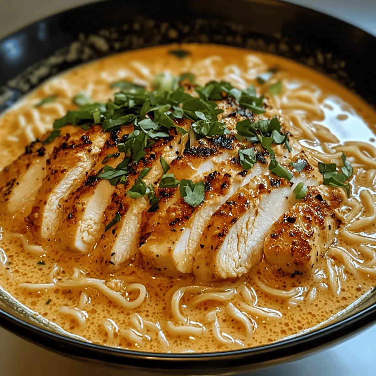 Es könnte nicht einfacher sein, ein Gericht zu kreieren, das sowohl Herz wie auch Seele wärmt! Der Heirate mich Hühnchen Ramen ist genau das – eine verführerische Kombination aus zartem Hähnchen, das in einer cremigen Parmesan-Tomaten-Sauce köchelt und auf perfekt zubereiteten Ramen-Nudeln serviert wird. Diese köstliche Kreation ist nicht nur ein schnelles Comfort Food, sie lässt sich auch ganz nach deinem Geschmack anpassen – sei es mit zusätzlichem Gemüse oder einer würzigen Note. Mit nur wenigen Zutaten ist dieses Gericht ideal, um deine Liebsten zu beeindrucken und den vertrauten Fast-Food-Geschmack hinter dir zu lassen. Sei bereit, dich in diese umami-reiche Gaumenfreude zu verlieben – aber was werden deine persönlichen Variationen sein? Warum wirst du dieses Rezept lieben? Vielseitigkeit: Mit dem Heirate mich Hühnchen Ramen hast du die Freiheit, die Zutaten ganz nach deinem Geschmack anzupassen. Schnell zubereitet: In weniger als 30 Minuten von der Küche auf den Tisch, perfekt nach einem langen Tag. Cremige Textur: Die Kombination aus Parmesan und Tomatensauce sorgt für ein geschmackliches Erlebnis, das süchtig macht. Familienfreundlich: Dieses Gericht ist ein Hit bei Groß und Klein – jeder wird nach mehr verlangen! Ernährungsanpassungen: Ob vegetarisch mit Tofu oder glutenfrei mit Reisnudeln, hier ist für jeden etwas dabei. Erkunde auch unsere anderen kreativen Ramen-Rezepte für noch mehr inspirierende Ideen! Heirate mich Hühnchen Ramen Zutaten Zutaten für die Sauce: Hähnchenbrust oder -schenkel – Verwende enthaertes Hähnchen für eine saftige Textur; kann auch mit Truthahn oder Tofu ersetzt werden. Parmesankäse – Sorgt für Cremigkeit und Geschmack; frisch gerieben ist bevorzugt, Pecorino Romano ist eine gute Alternative. Tomatensauce – Grundbasis der cremigen Sauce; kann durch Tomatenpüree oder gewürfelte Tomaten ersetzt werden für eine unterschiedliche Textur. Knoblauch – Verstärkt das Aroma; frischer Knoblauch ist ideal, Knoblauchpulver kann im Notfall verwendet werden. Italienische Kräuter (z. B. Oregano, Basilikum) – Fügt aromatische Komplexität hinzu; getrocknete Kräuter sind ebenfalls geeignet. Zutaten für die Nudeln: Ramen-Nudeln – Basis des Gerichts; sowohl Instant- als auch frische Ramen sind verwendbar; ersetze sie durch Soba- oder Reisnudeln für eine glutenfreie Option. Für die scharfe Note: Chiliflocken oder Sriracha – Für zusätzliche Schärfe; optional, je nach Geschmacksvorliebe. Dieses Rezept für Heirate mich Hühnchen Ramen ist nicht nur schnell und einfach zuzubereiten, sondern bietet auch die Möglichkeit, mit den Zutaten zu experimentieren. Lass deiner Kreativität freien Lauf und finde heraus, welche Variationen dir am besten schmecken! Schritt-für-Schritt-Anleitung für Heirate mich Hühnchen Ramen Step 1: Hähnchen anbraten Erhitze eine große Pfanne bei mittlerer Hitze und füge etwas Öl hinzu. Sobald das Öl heiß ist, gib die Hähnchenbrust oder -schenkel hinein und brate sie etwa 6–8 Minuten pro Seite an, bis sie schön braun und durchgegart sind. Sie sind fertig, wenn sie eine Innentemperatur von 75 °C erreicht haben. Nimm das Hähnchen aus der Pfanne und lasse es kurz ruhen. Step 2: Sauce zubereiten In derselben Pfanne, in der du das Hähnchen gebraten hast, füge den gehackten Knoblauch hinzu und dünste ihn 1–2 Minuten lang, bis er aromatisch ist. Gib dann die Tomatensauce, den frisch geriebenen Parmesan und die italienischen Kräuter hinzu. Lasse die Mischung 5-7 Minuten bei niedriger Hitze köcheln, bis die Sauce leicht eingedickt ist und blubbert. Step 3: Ramen-Nudeln kochen Setze einen separaten Topf mit Wasser auf und bringe es zum Kochen. Füge die Ramen-Nudeln hinzu und koche sie gemäß den Anweisungen auf der Verpackung, normalerweise 3–4 Minuten. Achte darauf, die Nudeln nicht zu lange zu kochen, um eine matschige Konsistenz zu vermeiden. Wenn sie al dente sind, gieße sie ab und stelle sie beiseite. Step 4: Alles kombinieren Schneide das Hähnchen in Streifen oder Würfel und füge es in die Pfanne mit der Sauce hinzu. Füge dann die gekochten Ramen-Nudeln hinzu und vermenge alles gut, damit die Nudeln und das Hähnchen gleichmäßig mit der cremigen Sauce überzogen sind. Lasse die Mischung noch 1-2 Minuten auf niedriger Hitze stehen, damit alles gut durchgezogen kann. Step 5: Servieren und Garnieren Serviere den Heirate mich Hühnchen Ramen heiß in Schalen. Optional kannst du die Nudeln mit frisch gehackten Kräutern, einem Spritzer Zitronensaft oder scharfen Saucen garnieren, um zusätzliche Aromen hinzuzufügen. Geniße dein köstliches, beruhigendes Gericht direkt nach der Zubereitung! Praktische Vorbereitungen für Heirate mich Hühnchen Ramen Heirate mich Hühnchen Ramen ist der perfekte Meal Prep-Begleiter für alle, die Zeit sparen möchten! Du kannst das Hähnchen bis zu 24 Stunden im Voraus marinieren und anbraten. Bereite auch die Sauce vor, indem du sie in einem luftdichten Behälter im Kühlschrank für bis zu 3 Tage aufbewahrst. Verpacke die gekochten Ramen getrennt, um ein Verkleben zu vermeiden. Wenn du bereit bist, das Gericht zu genießen, wärme die Sauce sanft auf, füge das Hähnchen und die Nudeln hinzu, und lasse es 1-2 Minuten zusammen erhitzen, bis alles durchwärmt ist. So schmeckt dein Gericht nicht nur frisch, sondern bleibt auch aromatisch und lecker! Was passt zu Heirate mich Hühnchen Ramen? Es gibt unzählige Beilagen, die dieses köstliche Gericht perfekt ergänzen und dein Essen zu einem unvergesslichen Erlebnis machen. Knuspriges Brötchen: Ein frisches, knuspriges Brötchen ist ideal, um die cremige Sauce aufzusaugen. Perfekt für alle, die keinen Bissen verschwenden wollen. Frischer Salat: Ein einfacher grüner Salat mit leichtem Dressing bringt etwas Frische und Balance in die Mahlzeit. Diese Kombination sorgt für Abwechslung auf dem Teller. Scharfe Gurken: Die knackigen und würzigen Gurken sind eine erfrischende Ergänzung, die