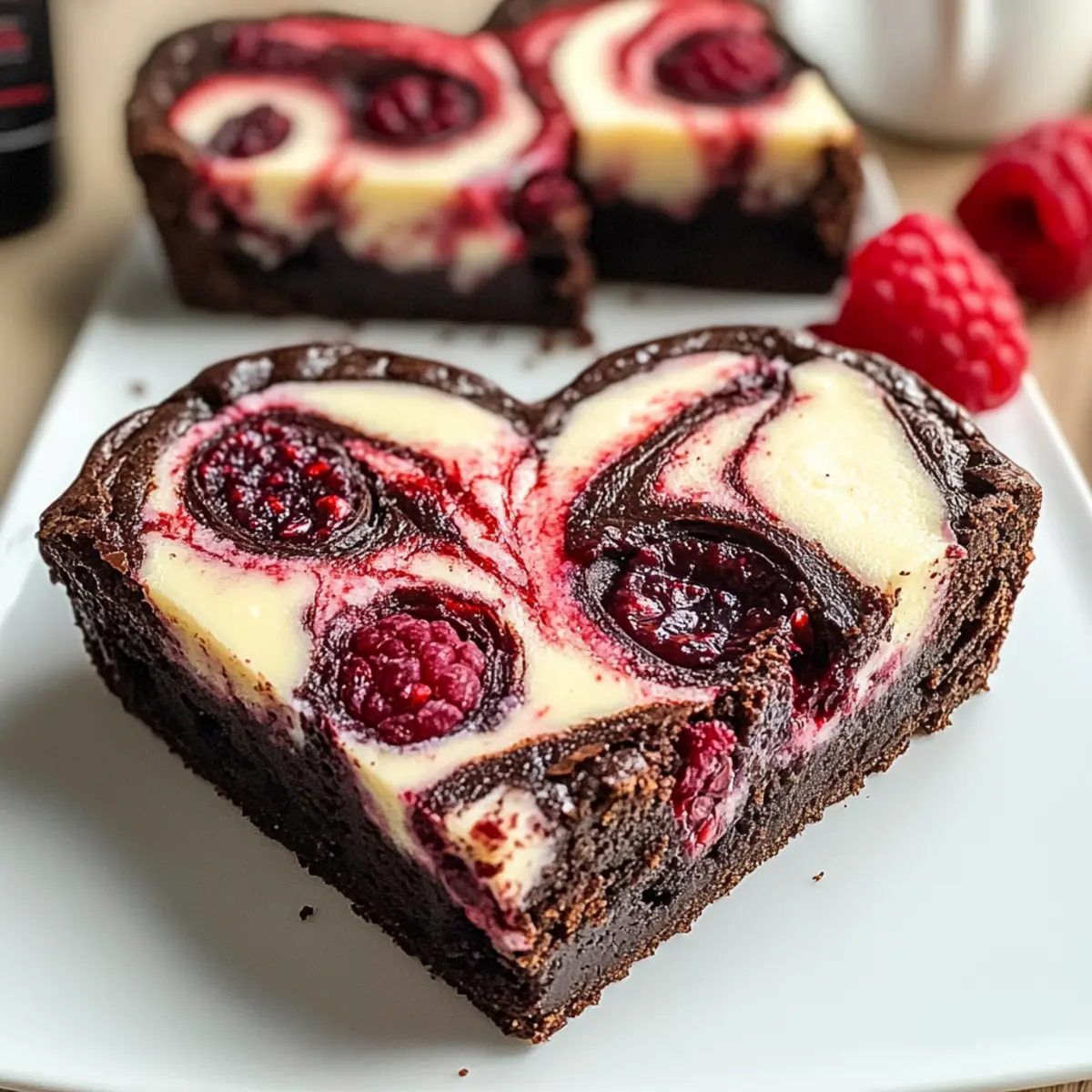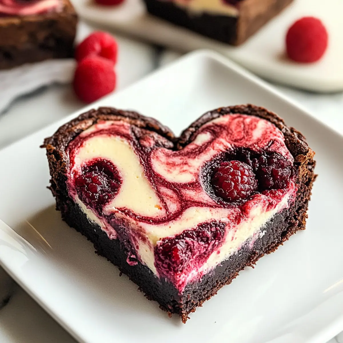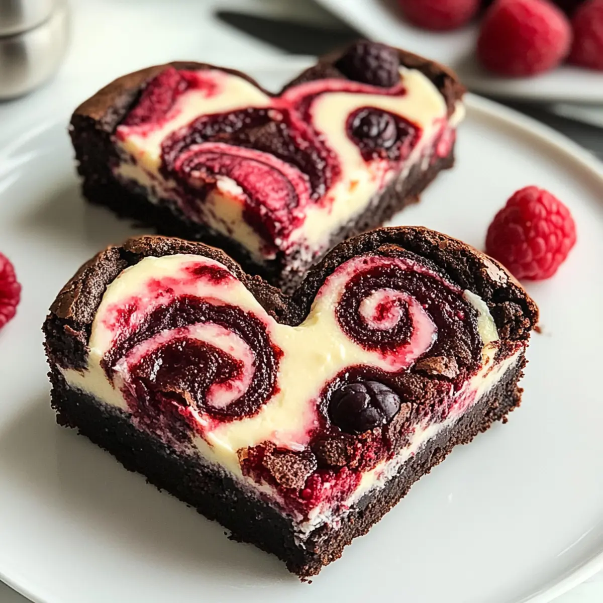 Es gibt Momente im Leben, die nach etwas Besonderem verlangen – und nichts sagt „Ich habe an dich gedacht“ besser als Herzförmige Brownies mit Himbeerwirbel & Käsekuchen. Wenn ich diese köstlichen, fudgy Brownies aus dem Ofen hole, erfüllt der süß-saure Duft von frischen Himbeeren die Luft und lässt es in meinem Herzen warm werden. Diese unwiderstehliche Kombination aus schokoladigem Brownie, fruchtigem Himbeerwirbel und cremigem Käsekuchen ist nicht nur der perfekte perfekte Leckerbissen für besondere Anlässe, sondern auch eine Freude für jeden Tag, an dem man sich etwas gönnen möchte. Und das Beste? Sie sind anpassbar – egal, ob Sie die Himbeeren gegen Erdbeeren oder Blaubeeren tauschen möchten. Bereit, diese süße Versuchung auszuprobieren? Dann lassen Sie uns mit dem Rezept beginnen, das Ihr Herz höher schlagen lässt! Warum sind diese Brownies so besonders? Einzigartiges Geschmackserlebnis: Diese Herzförmigen Brownies kombinieren die intensive Schokoladennote mit der Frische der Himbeeren und der Cremigkeit des Käsekuchens zu einem unvergesslichen Dessert. Einfache Zubereitung: Auch wenn sie opulent wirken, sind sie mit wenigen Schritten und grundlegenden Fähigkeiten schnell gemacht. Vielseitige Anpassungsmöglichkeiten: Tauschen Sie die Himbeeren gegen Erdbeeren oder Blaubeeren aus, um neue Geschmackskombinationen zu entdecken! Perfekt für besondere Anlässe: Ob zum Valentinstag oder als Geburtstagsüberraschung – diese Brownies sind immer ein Hit! Überraschend crowd-pleasing: Ihre Gäste werden begeistert sein, wenn sie diese schokoladige Köstlichkeit serviert bekommen. Genießen Sie auch die anpassbaren Möglichkeiten bei den Zutaten und entdecken Sie mehr darüber, wie Sie mit Less Sugar Option eine gesündere Alternative schaffen können. Herzförmige Brownies Zutaten Für den Brownie-Teig Ungesüßtes Kakaopulver – sorgt für einen intensiven Schokoladengeschmack; kann mit dunkler Schokolade ersetzt werden. Kristallzucker – verleiht Süße und Feuchtigkeit; alternativ kann Kokoszucker verwendet werden. Ungesalzene Butter (geschmolzen) – bringt Reichhaltigkeit und Feuchtigkeit; kann durch Pflanzenöl oder milchfreie Butter für eine vegane Option ersetzt werden. Große Eier – verbinden die Zutaten und geben Feuchtigkeit; keine direkte Alternative empfohlen, aber Flachseier können für eine vegane Version verwendet werden. Weizenmehl – fügt Struktur hinzu; verwenden Sie Mandelmehl für eine glutenfreie Option. Für die Himbeerfüllung Frische Himbeeren (zerdrückt) – bieten Frische und Farbe; gefrorene Himbeeren können verwendet werden, sollten aber gut abgetropft werden. Für die Käsekuchen-Schicht Frischkäse (weich) – sorgt für die cremige Käsekuchen-Schicht; veganen Frischkäse verwenden, wenn eine milchfreie Option gewünscht ist. Puderzucker – süßt die Käsekuchen-Mischung; für weniger Süße kann weniger Zucker oder ein Zuckersubstitut verwendet werden. Entdecken Sie diese köstlichen Herzförmigen Brownies mit Himbeerwirbel & Käsekuchen als das perfekte dekorative Dessert für jeden Anlass! Schritt-für-Schritt-Anleitung für Herzförmige Brownies mit Himbeerwirbel & Käsekuchen Step 1: Ofen vorheizen und Backform vorbereiten Heizen Sie den Ofen auf 175 °C vor und fetten Sie eine herzförmige Backform ein. Dies gewährleistet, dass die Herzförmigen Brownies mit Himbeerwirbel & Käsekuchen gleichmäßig backen und sich später leicht aus der Form lösen lassen. Stellen Sie sicher, dass der Backofen vorgeheizt ist, bevor Sie mit dem Teig beginnen. Step 2: Teig zubereiten In einer großen Schüssel die geschmolzene Butter und den Kristallzucker gut vermengen, bis die Mischung cremig ist. Fügen Sie die großen Eier nacheinander hinzu und rühren Sie nach jeder Zugabe gut um. Dieser Schritt sorgt für eine luftige Konsistenz, die wichtig für die fudgy Textur der Brownies ist. Step 3: Trockene Zutaten hinzufügen Streuen Sie das ungesüßte Kakaopulver und das Weizenmehl in die Butter-Zucker-Ei-Mischung. Rühren Sie die Zutaten vorsichtig zusammen, bis sie gerade so vermischt sind. Achten Sie darauf, nicht zu stark zu rühren, um die Fudge-Konsistenz der herzförmigen Brownies nicht zu beeinträchtigen. Step 4: Himbeermischung vorbereiten In einer separaten Schüssel die frischen Himbeeren mit einer Gabel zerdrücken, bis sie eine grobe Paste ergeben. Dies wird das fruchtige Element in Ihrer Herzförmigen Brownies mit Himbeerwirbel & Käsekuchen. Stellen Sie die Himbeermasse zur Seite, während Sie sich um die Käsekuchen-Schicht kümmern. Step 5: Käsekuchen-Mischung zubereiten In einer weiteren Schüssel den weichen Frischkäse und den Puderzucker cremig rühren, bis die Mischung glatt und gut vermengt ist. Fügen Sie ein Ei hinzu und verarbeiten Sie die Mischung erneut, bis sie eine gleichmäßige Konsistenz erreicht. Dies wird die köstliche Käsekuchen-Schicht in Ihrer Dessertkreation bilden. Step 6: Zusammensetzen der Zutaten Gießen Sie die Hälfte des Brownie-Teigs in die vorbereitete Backform und verteilen Sie die Hälfte der Himbeermischung gleichmäßig darüber. Anschließend die gesamte Käsekuchen-Mischung auf die Himbeer-Schicht geben und vorsichtig verstreichen. Decken Sie dies mit dem restlichen Brownie-Teig ab und geben Sie die restliche Himbeermischung darüber. Step 7: Backen und Abkühlen Backen Sie das gesamte Dessert für 30–35 Minuten im vorgeheizten Ofen. Überprüfen Sie die Herzförmigen Brownies mit einem Zahnstocher; wenn er sauber herauskommt, sind sie fertig. Lassen Sie die Brownies nach dem Backen in der Form auf einem Kuchengitter vollständig auskühlen, bevor Sie sie in Herzformen schneiden. Vorbereiten für stressfreie Tage Herzförmige Brownies mit Himbeerwirbel & Käsekuchen sind ideal für die Vorausplanung – sie sparen Zeit und Aufwand an hektischen Tagen! Sie können den Brownie-Teig und die Käsekuchen-Mischung bis zu 24 Stunden im Voraus zubereiten und im Kühlschrank a