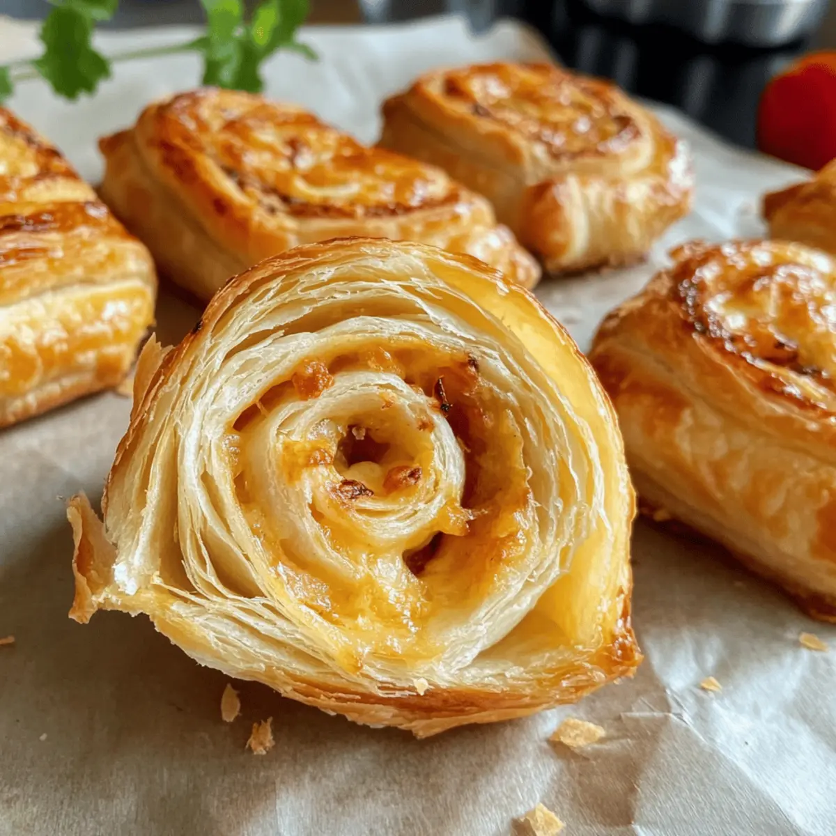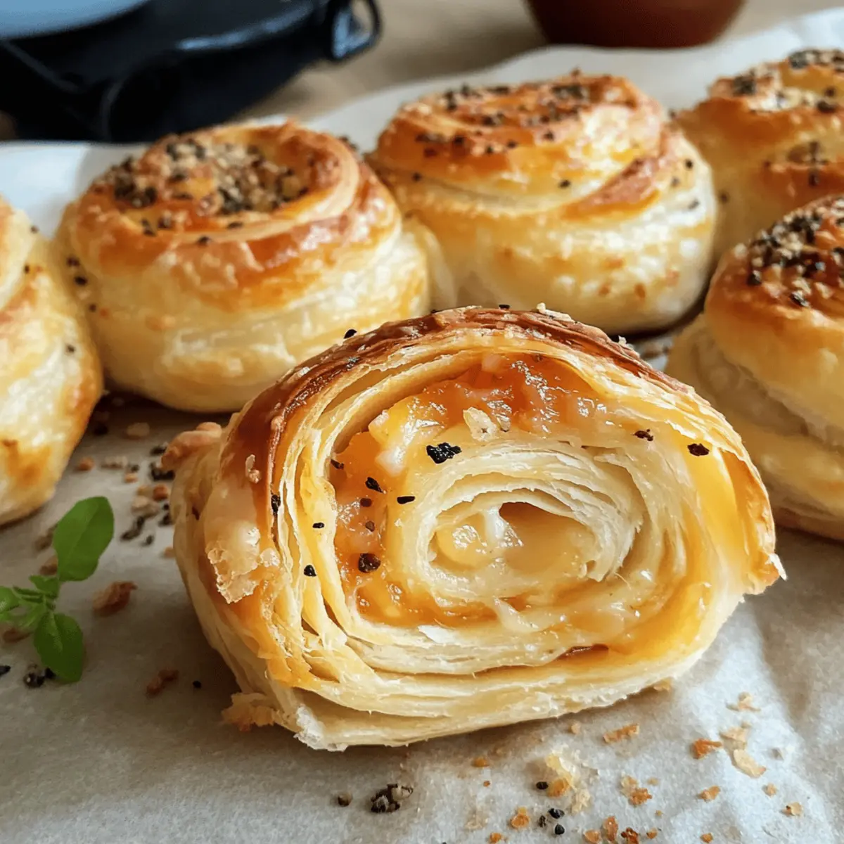Als ich neulich in der Küche stand und Teig für meine Lieblingssnacks zubereitete, überkam mich der Duft von frisch gebackenem Blätterteig. Dieses Rezept für herzhafte Blätterteigschnecken ist einfach unwiderstehlich und perfekt für jeden Anlass. In nur wenigen Minuten zauberst du diese knusprigen, flaumigen Rollen, die sowohl bei Kindern als auch bei Erwachsenen beliebt sind. Die Flexibilität, verschiedene Füllungen und Beläge zu verwenden, macht sie zu einem wahren Hit bei jeder Gelegenheit – sei es beim Picknick im Park oder als entspanntes Fingerfood für deine nächste Feier. Wer kann da widerstehen? Bist du bereit, deine eigenen köstlichen Blätterteigschnecken zu kreieren? Warum wirst du diese Blätterteigschnecken lieben? Einfachheit, die beeindruckt: Die Zubereitung dieser herzhafte Blätterteigschnecken ist kinderleicht und benötigt nur wenige Zutaten. Vielfältige Variationen: Ob vegetarisch, mit Schinken oder feinen Kräutern, du kannst sie ganz nach deinem Geschmack anpassen. Schnell und unkompliziert: In weniger als 30 Minuten sind sie fertig und ideal für unerwartete Gäste oder spontane Snacks. Ideale Snack-Option: Perfekt für Partys oder Picknicks, und die Kinder werden sie lieben! Diese Snacks werden schnell zu einem Lieblingsrezept, das du immer wieder gerne machen wirst. Herzhafte Blätterteigschnecken Zutaten • Hier sind die benötigten Zutaten für die perfekte Zubereitung dieser herzhafte Blätterteigschnecken. Für den Teig Blätterteig – Nutze am besten fertigen Blätterteig aus dem Gefrierfach für eine zeitsparende Zubereitung. Für die Füllung Passierte Tomaten – Sie sorgen für die nötige Feuchtigkeit und ein herzhaftes Aroma; du kannst auch Tomatensauce verwenden. Geriebener Käse – Verleiht den Schnecken eine tolle Cremigkeit; probiere verschiedene Sorten wie Mozzarella oder Cheddar. Pizzakräuter – Diese verleihen den Schnecken ein köstliches italienisches Flair; du kannst auch Oregano oder Basilikum verwenden. Optional Eier – Ein verquirltes Ei zum Bestreichen sorgt für eine goldene, glänzende Oberfläche. Gemüse – Füge fein gehacktes Gemüse hinzu, um den Snack noch gesünder und abwechslungsreicher zu gestalten. Mit diesen Zutaten bist du bereit, köstliche herzhafte Blätterteigschnecken zu zaubern, die jeder lieben wird! Schritt-für-Schritt-Anleitung für Herzhafte Blätterteigschnecken Step 1: Ofen vorheizen Heize deinen Ofen auf 200°C vor, gemäß den Anweisungen auf der Blätterteigverpackung. Dies gewährleistet, dass die herzhafte Blätterteigschnecken gleichmäßig backen und eine schöne goldbraune Farbe erhalten. Bereite ein Backblech vor, indem du es mit Backpapier auslegst, um ein Ankleben der Schnecken zu vermeiden. Step 2: Blätterteig ausrollen Nimm den Blätterteig aus dem Kühlschrank oder Gefrierfach und rolle ihn auf einer leicht bemehlten Arbeitsfläche vorsichtig aus. Achte darauf, dass der Teig etwa 3 mm dick ist, um die perfekte Textur zu erzielen. Visuell sollte der Teig gleichmäßig und ohne Risse sein, während du ihn ausrollst. Step 3: Tomaten verteilen Verteile eine gleichmäßige Schicht passierter Tomaten über den ausgerollten Blätterteig. Verwende einen Löffel oder eine Kelle, um die Tomaten so zu verteilen, dass der ganze Teig gut bedeckt ist, aber vermeide zu viel Flüssigkeit. Diese Schicht sorgt dafür, dass deine herzhafte Blätterteigschnecken einen reichhaltigen, deftigen Geschmack erhalten. Step 4: Käse und Gewürze hinzufügen Bestreue die Tomatenschicht gleichmäßig mit geriebenem Käse und Pizzakräutern. Experimentiere gerne mit der Menge, um die perfekte Balance für deinen Geschmack zu finden. Du kannst auch andere Käsesorten oder Kräuter verwenden, um die herzhafte Blätterteigschnecken nach deinem Wunsch zu variieren. Step 5: Teig aufrollen Beginne an einer langen Seite des Blätterteigs und rolle ihn vorsichtig, aber fest auf, um eine logartige Form zu erhalten. Achte darauf, dass der Teig eng gerollt wird, damit die Füllung beim Backen nicht herausläuft. Die Rolle sollte gleichmäßig und stabil sein, um optimale Ergebnisse zu erzielen. Step 6: Schneiden und anrichten Schneide die Rolle in gleichmäßige Stücke von etwa 1-2 cm Dicke. Lege die Stücke mit der Schnittfläche nach oben auf dein Backblech. Achte darauf, etwas Abstand zwischen den Schnecken zu lassen, damit sie beim Backen genug Platz zum Aufgehen haben. Step 7: Optionales Bestreichen Wenn gewünscht, bestreiche die Oberflächen der Blätterteigschnecken mit verquirltem Ei. Dies sorgt für eine goldene, glänzende Oberfläche und macht deine herzhafte Blätterteigschnecken besonders ansprechend. Verwende einen Pinsel, um die Ei-Mischung gleichmäßig zu verteilen. Step 8: Backen Schiebe das Backblech in den vorgeheizten Ofen und backe die herzhafte Blätterteigschnecken für etwa 15-20 Minuten. Achte darauf, dass sie goldbraun und aufgebläht sind; die perfekte Konsistenz zeigt sich in einem knusprigen Äußeren und einer weichen, käsegefüllten Mitte. Step 9: Abkühlen und Servieren Nimm die herzhafte Blätterteigschnecken aus dem Ofen und lasse sie kurz auf dem Blech abkühlen. Serviere sie warm, idealerweise mit dips wie Marinara oder einer anderen Soße deiner Wahl. Diese Köstlichkeiten sind perfekt als Snack oder Fingerfood für jede Gelegenheit! Expertentipps für Herzhafte Blätterteigschnecken Teig richtig aufrollen: Achte darauf, den Blätterteig fest und gleichmäßig zu rollen, damit die Füllung beim Backen nicht ausläuft. Variabel belegen: Experimentiere mit verschiedenen Käsesorten oder füge fein gehacktes Gemüse hinzu, um deine herzhafte Blätterteigschnecken noch abwechslungsreicher zu gestalten. Ofen vorheizen: Stelle sicher, dass dein Ofen auf die richtige Temperatur vorgeheizt ist, um die perfekte goldbraune Kruste zu erzielen. Platz lassen: Schneide die Rollen in gleichmäßige Stücke und lasse genügend Abstand auf dem Backblech, damit sich die Schnecken beim Backen 