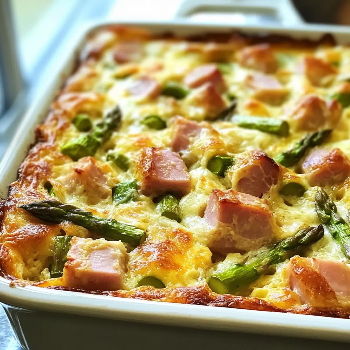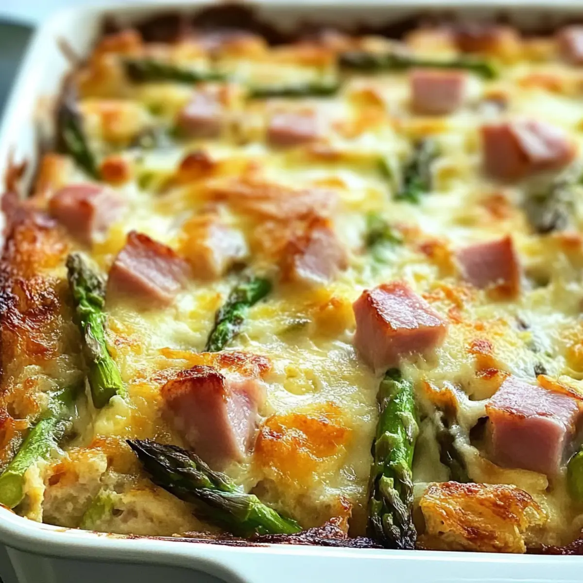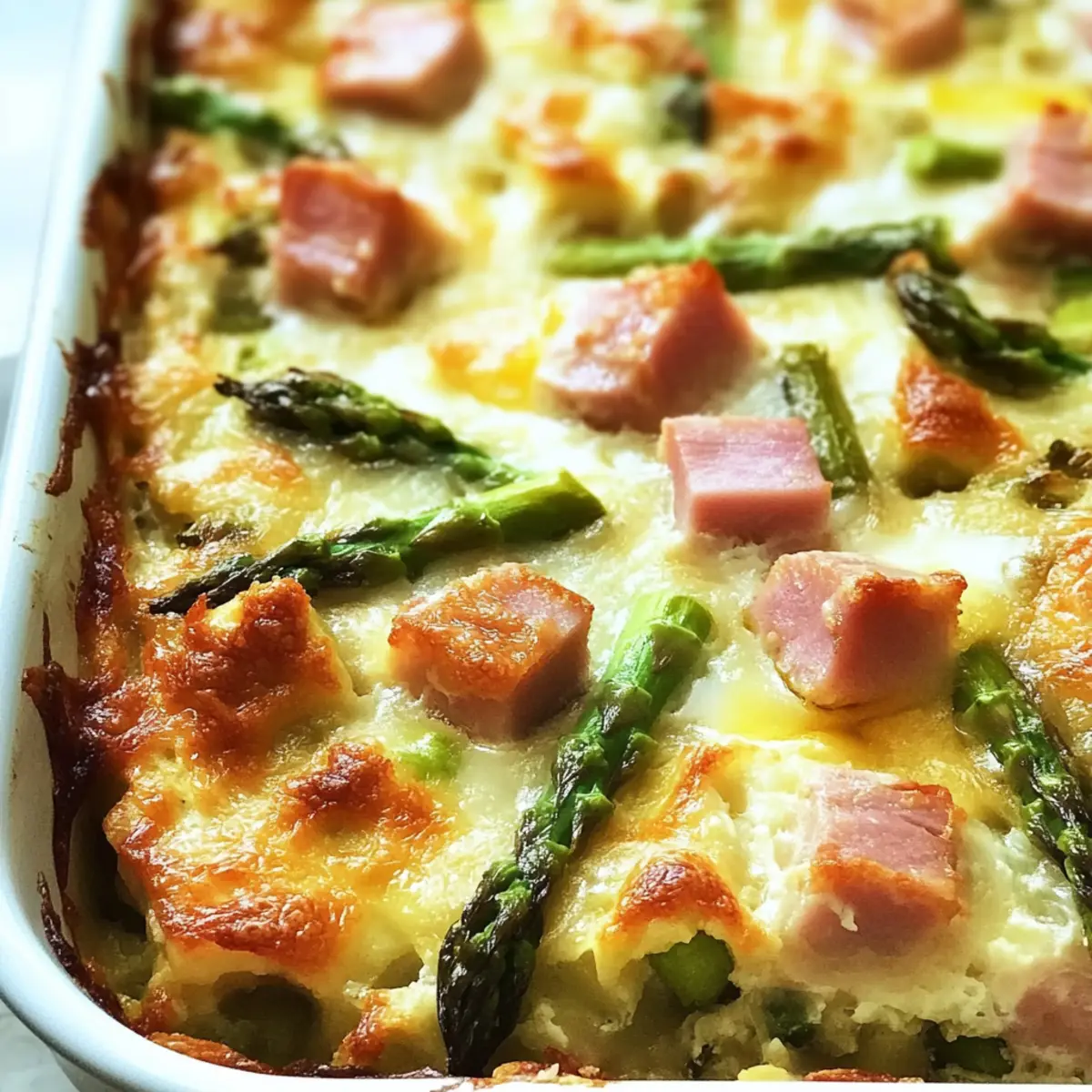 Es gibt Momente, die einfach nach einem besonderen Frühstück verlangen. An einem sonnigen Sonntagmorgen, als der Duft von frisch gebackenem Brot die Küche erfüllt, ist es Zeit für eine wunderbare Verwandlung: der herzhafter Schinken und Spargel Strata. Diese schichtweise angeordnete Köstlichkeit kombiniert fluffiges Brot, zarten Spargel und würzigen Schinken in einer cremigen Eimischung – ideal für ein entspanntes Brunch mit Freunden oder als Festtagsfrühstück. Was mir an diesem Rezept besonders gefällt, ist die Möglichkeit, mit verschiedenen übrig gebliebenen Zutaten zu experimentieren, sodass es immer wieder neu schmeckt. Darüber hinaus lässt es sich hervorragend im Voraus zubereiten, was mehr Zeit für die schönen Dinge im Leben schafft. Also, bereit für ein köstliches Frühstücksabenteuer? Warum lieben Sie diesen Schinken-Strata? Einfachheit: Die Zubereitung ist kinderleicht und benötigt keine besonderen Backfähigkeiten. Perfekt für Anfänger und erfahrene Köche! Vielfältige Variationen: Experimentieren Sie mit verschiedenen Gemüsesorten oder Käsesorten. Ob übrig gebliebenes Gemüse oder alternative Proteine – die Möglichkeiten sind endlos! Zeitsparend: Bereiten Sie den Strata bereits am Abend zuvor vor, sodass Sie am Morgen mehr Zeit für Ihre Gäste haben. Köstlicher Geschmack: Diese Kombination aus cremigen Eiern, zartem Spargel und herzhaftem Schinken sorgt für einen unverwechselbaren Genuss. Schick & Einladend: Servieren Sie ihn auf einem schönen Teller und beeindrucken Sie Ihre Freunde mit einem eleganten, köstlichen Gericht. Genießen Sie dazu einen frischen Obstsalat oder knusprige Hash Browns und machen Sie Ihr Brunch-Erlebnis komplett! Herzhafter Schinken und Spargel Strata Zutaten • Entdecken Sie die perfekten Zutaten für dieses köstliche Frühstück! Für das Brot Italienisches oder französisches Brot – Stellt die Basis dar und sorgt für Stabilität; verwenden Sie am besten altes Brot für optimale Absorption. Für die Füllung Gehackter gekochter Schinken – Fügt Proteine und herzhaften Geschmack hinzu; ideal, um übrig gebliebenen Festschinken zu verwerten. Spargel – Bringt Frische und Textur; dünne Stangen benötigen kein Vorkochen. Rote Paprika – Steigert die visuelle Attraktivität und den Geschmack; fein gewürfelt für eine gleichmäßige Verteilung. Für die Eimischung 2% Milch – Bindet die Eimischung; kann auch durch Vollmilch oder pflanzliche Alternativen wie Mandelmilch ersetzt werden. Große Eier – Essentiell für die Bindung des Strata; sorgen beim Backen für Struktur. Schweizer Käse – Bringt eine cremige oberste Schicht; kann je nach Vorliebe durch Cheddar oder Mozzarella ersetzt werden. Salz und Pfeffer – Grundgewürze, die den Gesamtgeschmack verstärken; nach Geschmack anpassen. Für die Garnitur Frühlingszwiebeln – Für einen Hauch von Frische und optische Aufwertung; fein gehackt als Garnitur verwenden. Denken Sie daran, dass dieser herzhafter Schinken und Spargel Strata eine wunderbare Grundlage für kreative Variationen bietet! Step-by-Step Instructions für Herzhafter Schinken und Spargel Strata Step 1: Brot vorbereiten Zuerst das italienische oder französische Brot in etwa 2,5 cm große Würfel schneiden. Diese Würfel gleichmäßig in eine 8×11 Zoll große Auflaufform schichten. Achten Sie darauf, dass das Brot am besten alt ist, damit es die Eimischung gut aufnehmen kann. Step 2: Füllung schichten Nun den gewürfelten Schinken gleichmäßig auf dem Brot verteilen. Darauf folgen die fein gehackten Spargelstücke und die rote Paprika, die die Farben und den Geschmack der Füllung bereichern. Diese schichten Sie sorgfältig, damit jede Bissportion den köstlichen herzhafter Schinken und Spargel Strata voll zur Geltung bringt. Step 3: Eier und Milch verquirlen In einer großen Schüssel die Eier mit der Milch verquirlen. Salz und Pfeffer nach Geschmack hinzufügen und alles gut vermengen, bis eine glatte Mischung entsteht. Diese Eimischung wird später über die geschichteten Zutaten gegossen und sorgt für die cremige Konsistenz, die diesen Strata auszeichnet. Step 4: Schichten kombinieren Gießen Sie die Eimischung gleichmäßig über die Brot- und Füllungsschichten in der Auflaufform. Nutzen Sie einen Spatel, um die Zutaten vorsichtig nach unten zu drücken, damit das Brot die Flüssigkeit gut aufnehmen kann. Dies stellt sicher, dass jede Schicht geschmacklich harmoniert und ordentlich verbunden wird. Step 5: Mit Käse belegen Jetzt die Auflaufform mit Scheiben von Schweizer Käse belegen, sodass die gesamte Oberfläche bedeckt ist. Der Käse wird beim Backen schmelzen und eine köstliche, cremige Kruste bilden, die Ihrem herzhafter Schinken und Spargel Strata den letzten Schliff verleiht. Step 6: Kühlen Decken Sie die Form mit Aluminiumfolie ab und stellen Sie sie mindestens für 2 Stunden oder über Nacht in den Kühlschrank. Dies erlaubt den Aromen, sich zu entfalten und sorgt dafür, dass der Strata beim Backen gleichmäßig und perfekt verkocht. Step 7: Ofen vorheizen Am Tag des Backens den Ofen auf 190°C vorheizen. Dies ist wichtig, um eine gleichmäßige Hitzeverteilung zu gewährleisten, die erforderlich ist, damit der herzhafter Schinken und Spargel Strata gleichmäßig garen und eine schöne goldene Farbe annehmen kann. Step 8: Backen Die Folie von der Auflaufform entfernen und den Strata für 40-50 Minuten im vorgeheizten Ofen backen. Achten Sie darauf, dass die Oberseite goldbraun wird und die Mitte fest ist. Eine schön gebräunte Oberfläche ist ein Indikator dafür, dass der Strata perfekt durchgebacken ist. Step 9: Garnieren und Servieren Lassen Sie den Strata nach dem Backen etwas abkühlen, bevor Sie ihn in Stücke schneiden. Zum Servieren mit frisch gehackten Frühlingszwiebeln garnieren, die einen zusätzlichen Frischekick geben und das Gericht optisch aufwerten. So bleibt jeder Biss köstlich und einladend! Expertentipps für den Herzhafter Schinken und Sparg